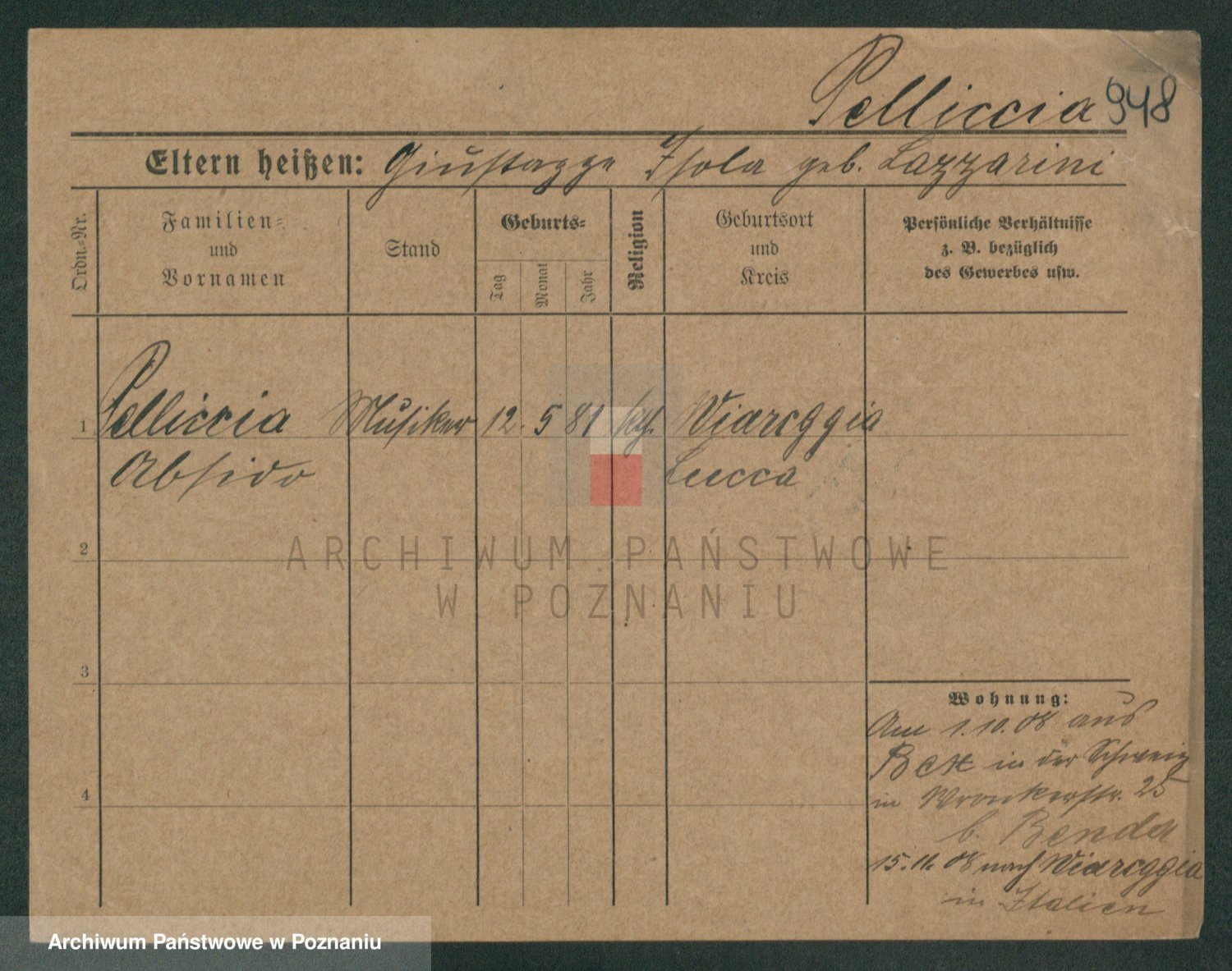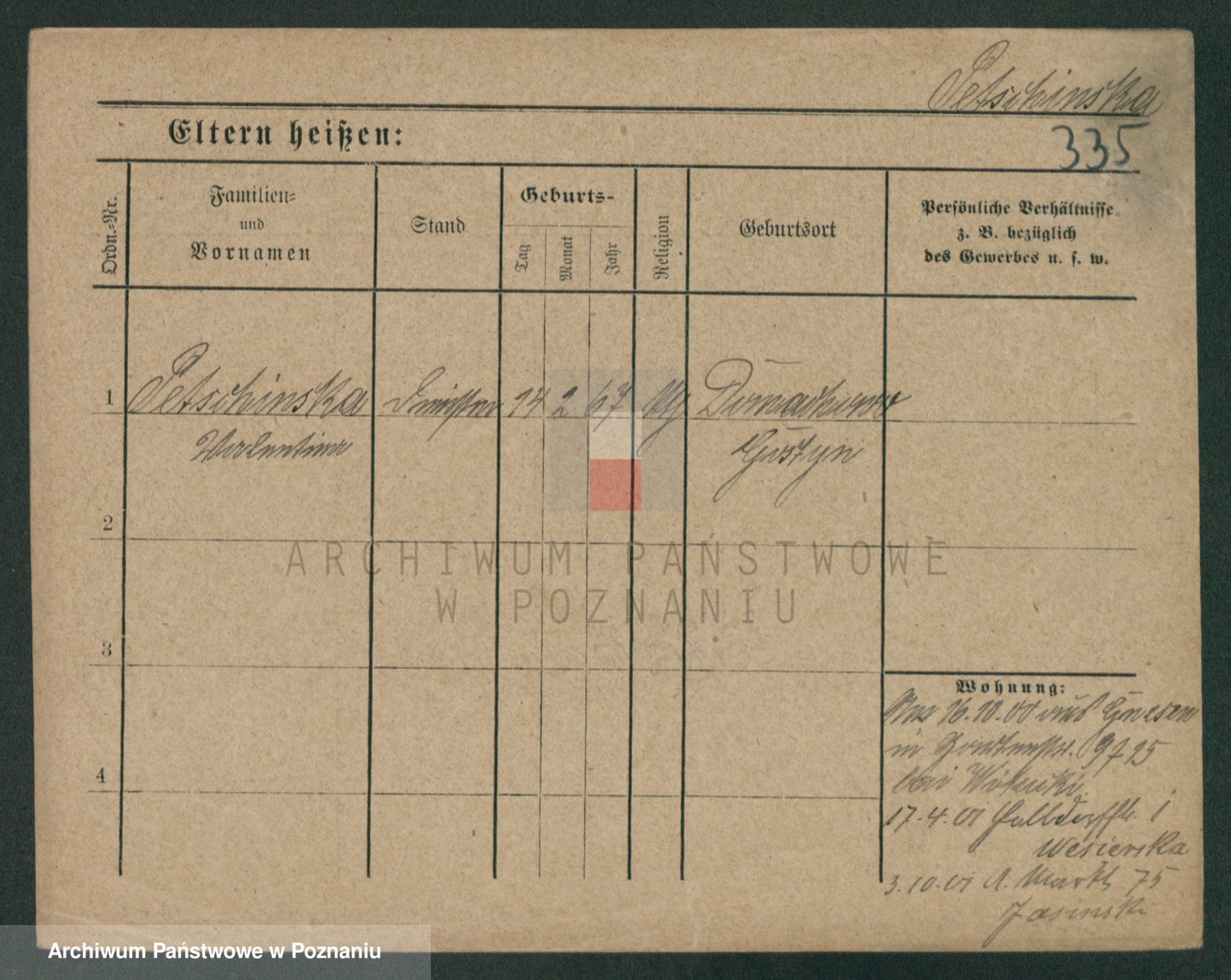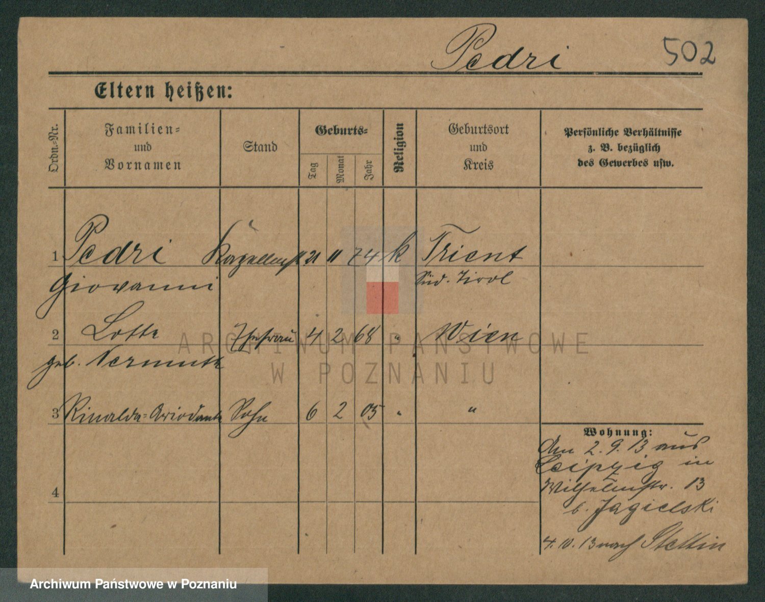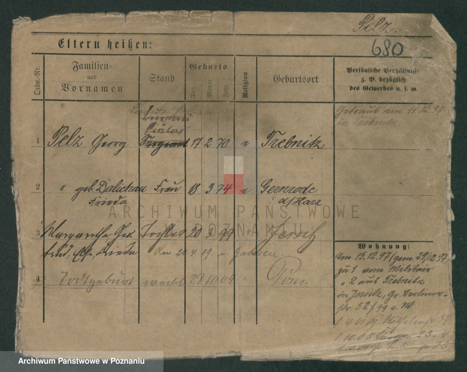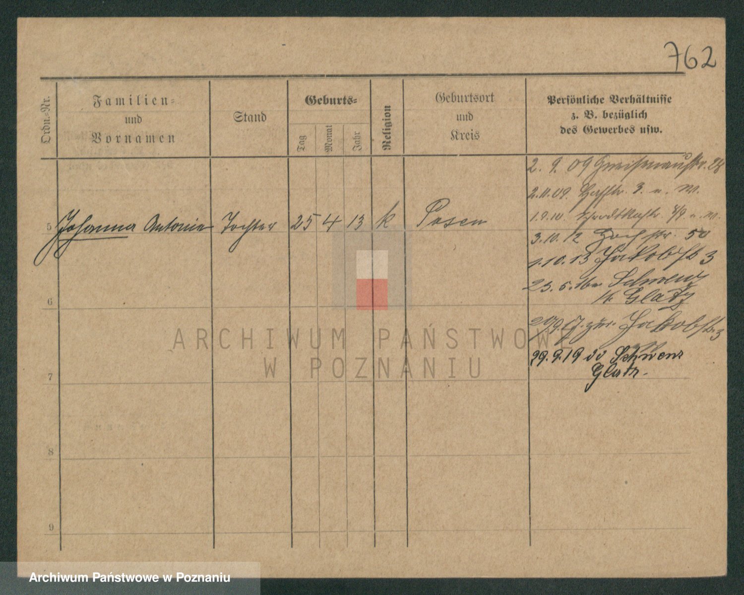 Podgląd karty osobowej dostępny jest po kliknięciu na nazwisko lub ikonkę karty. Można dokonywać powiększenia (ikony na górze) lub przechodzić między kolejnymi skanami (strzałki po bokach).