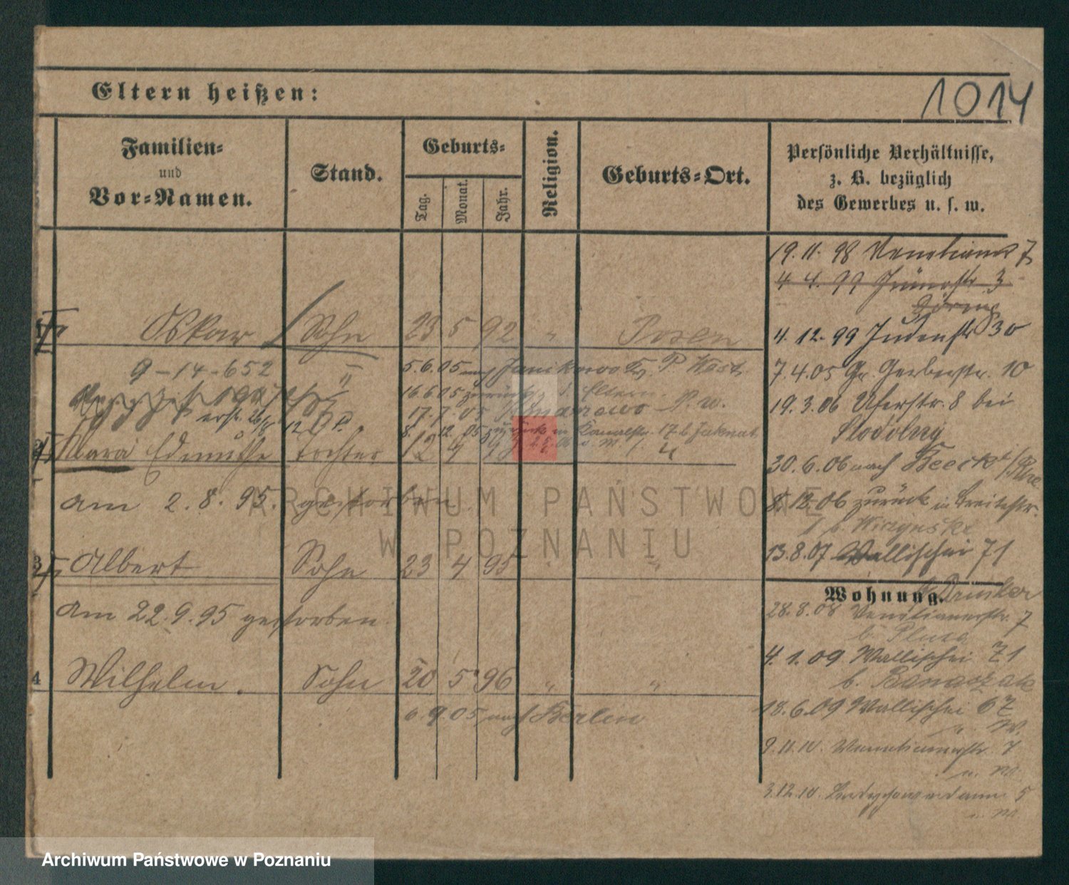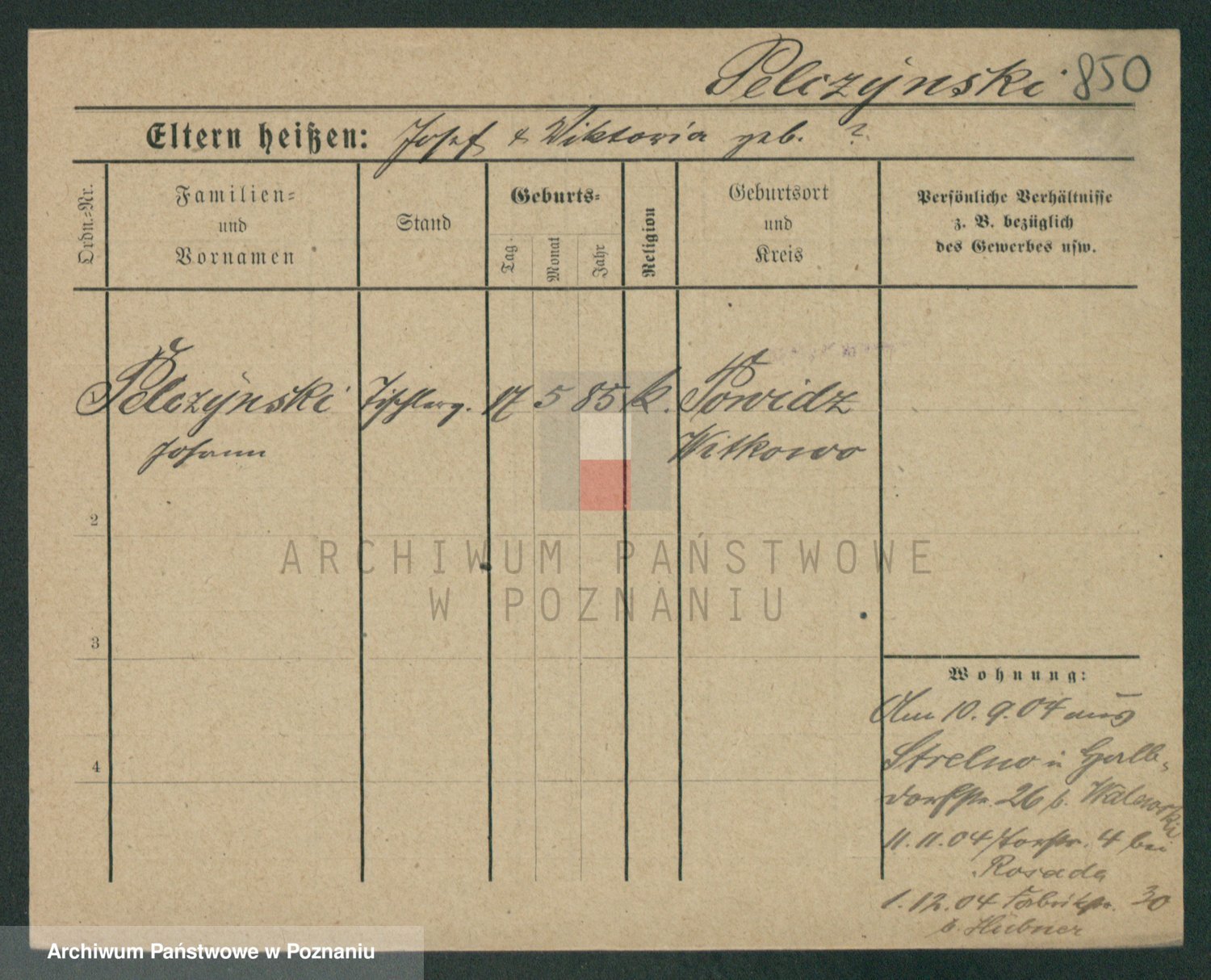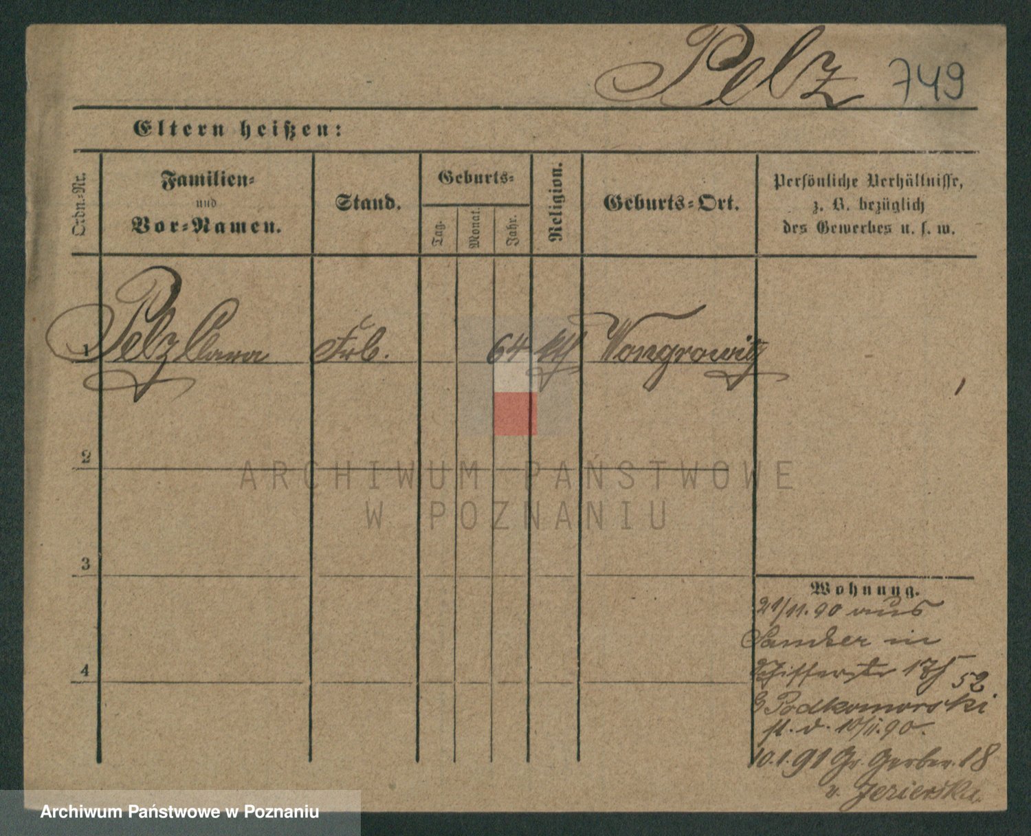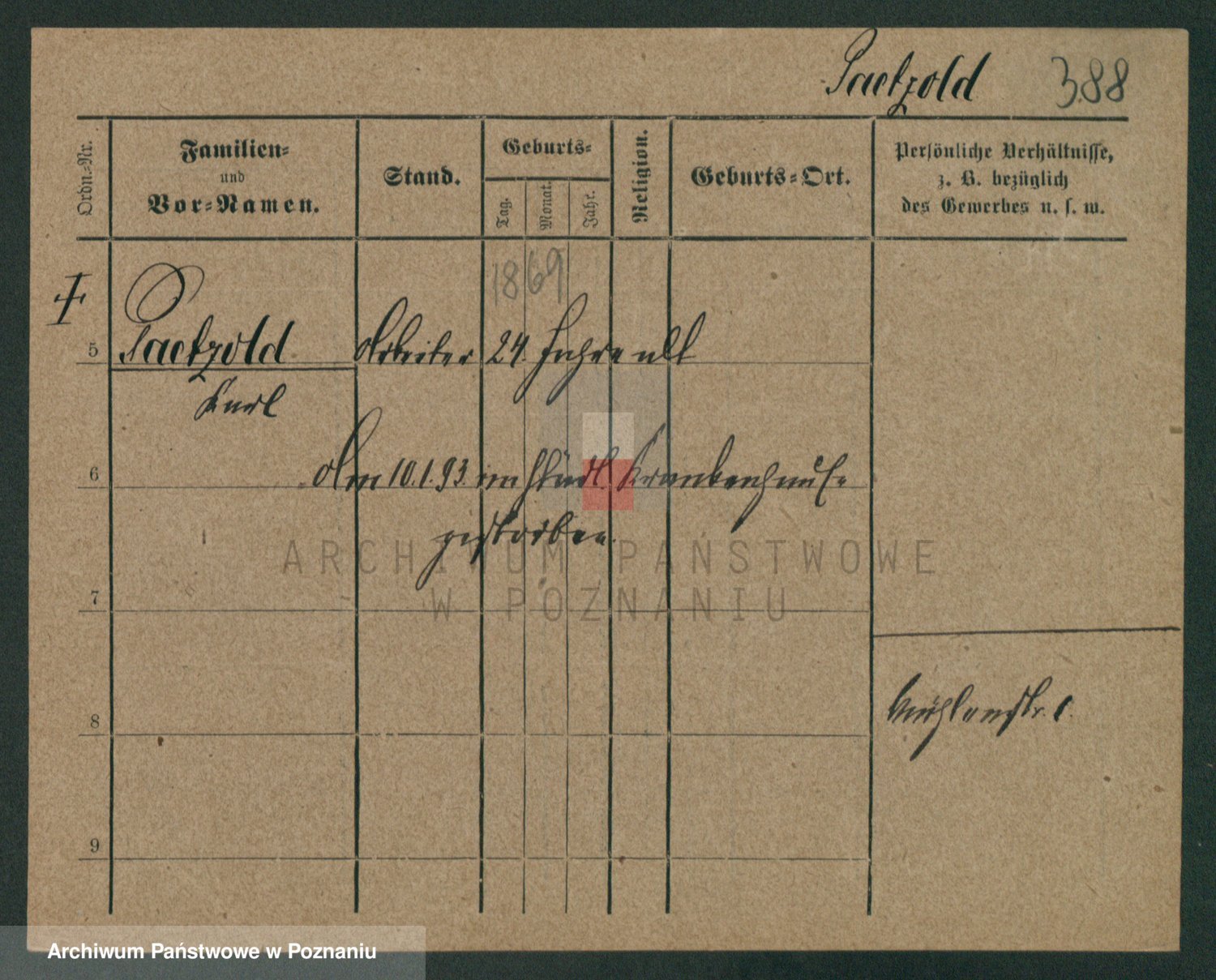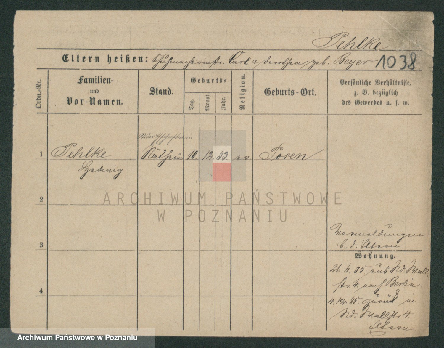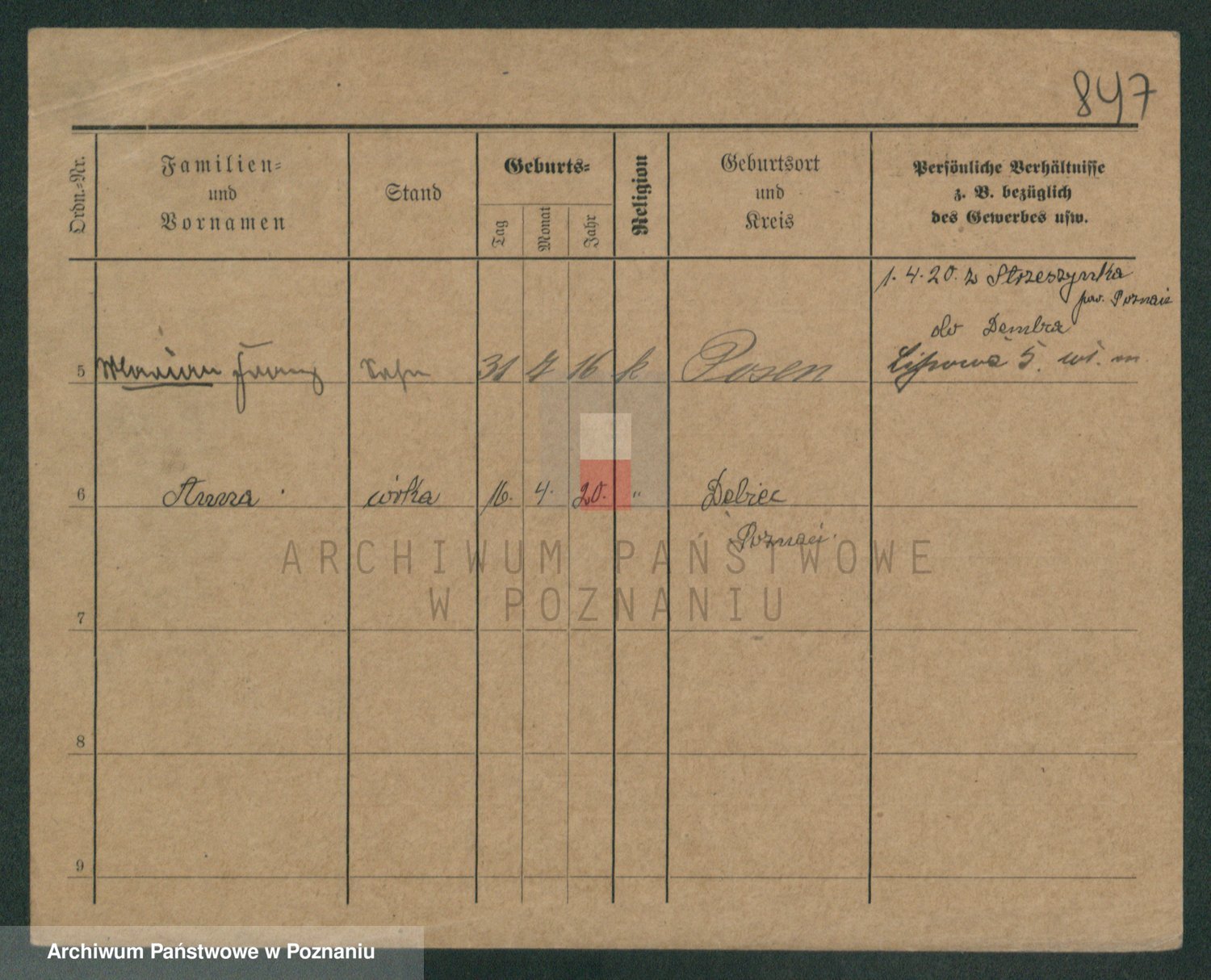 Podgląd karty osobowej dostępny jest po kliknięciu na nazwisko lub ikonkę karty. Można dokonywać powiększenia (ikony na górze) lub przechodzić między kolejnymi skanami (strzałki po bokach).