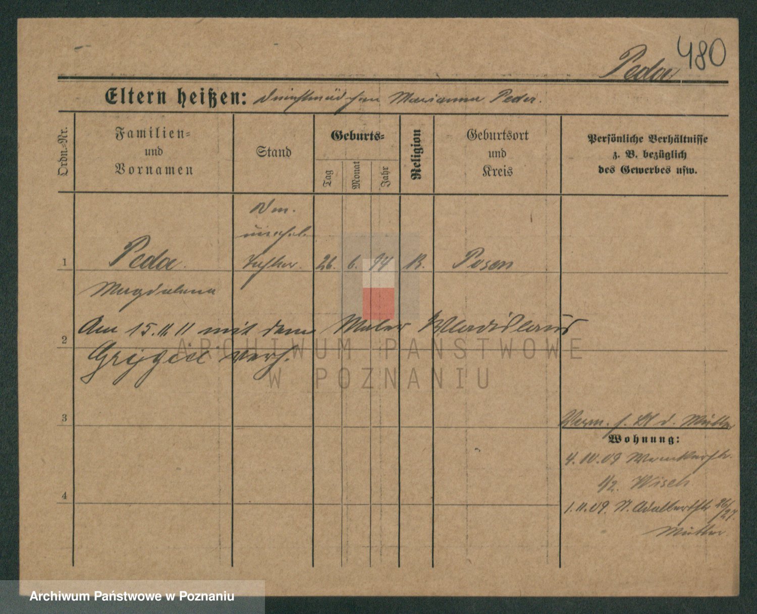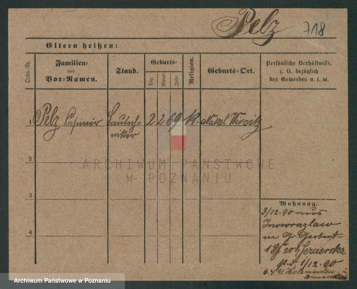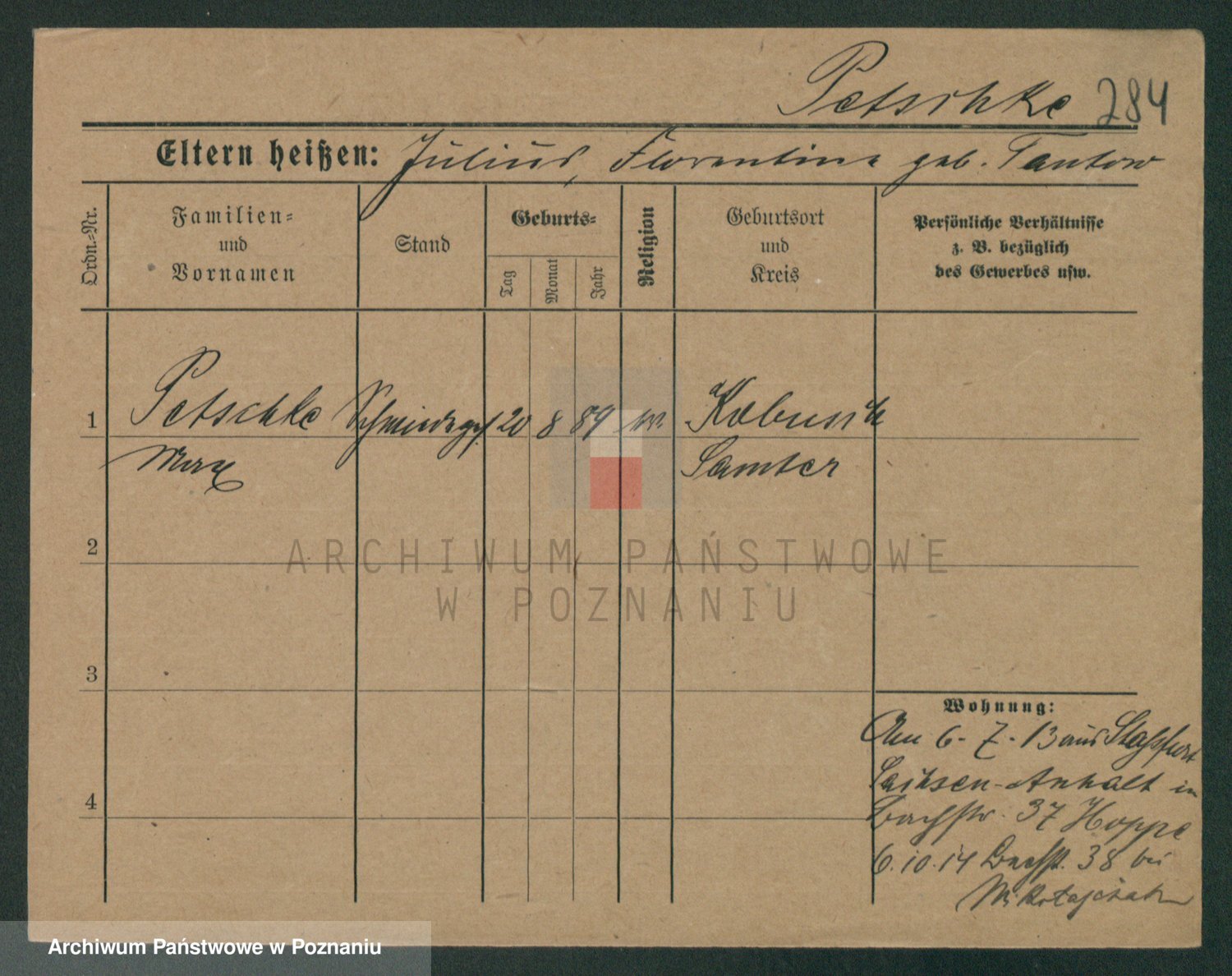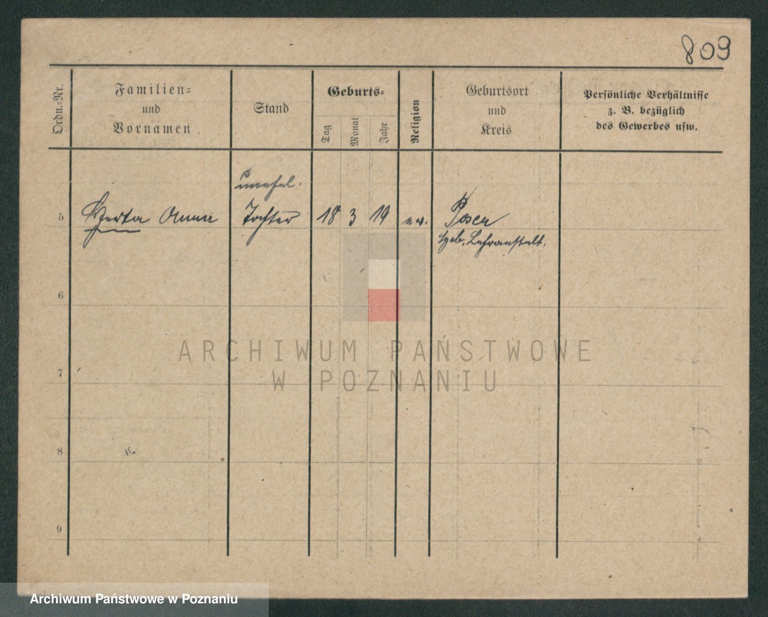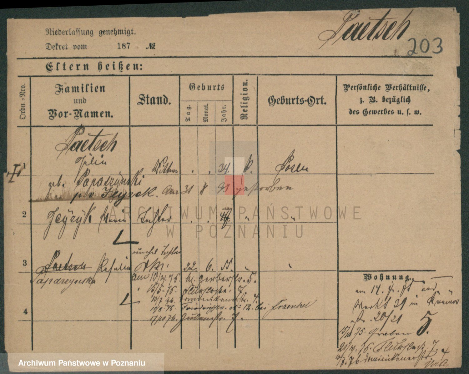 Podgląd karty osobowej dostępny jest po kliknięciu na nazwisko lub ikonkę karty. Można dokonywać powiększenia (ikony na górze) lub przechodzić między kolejnymi skanami (strzałki po bokach).