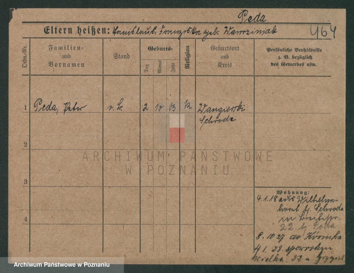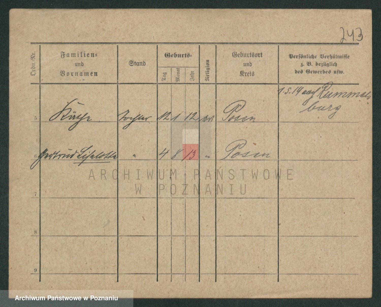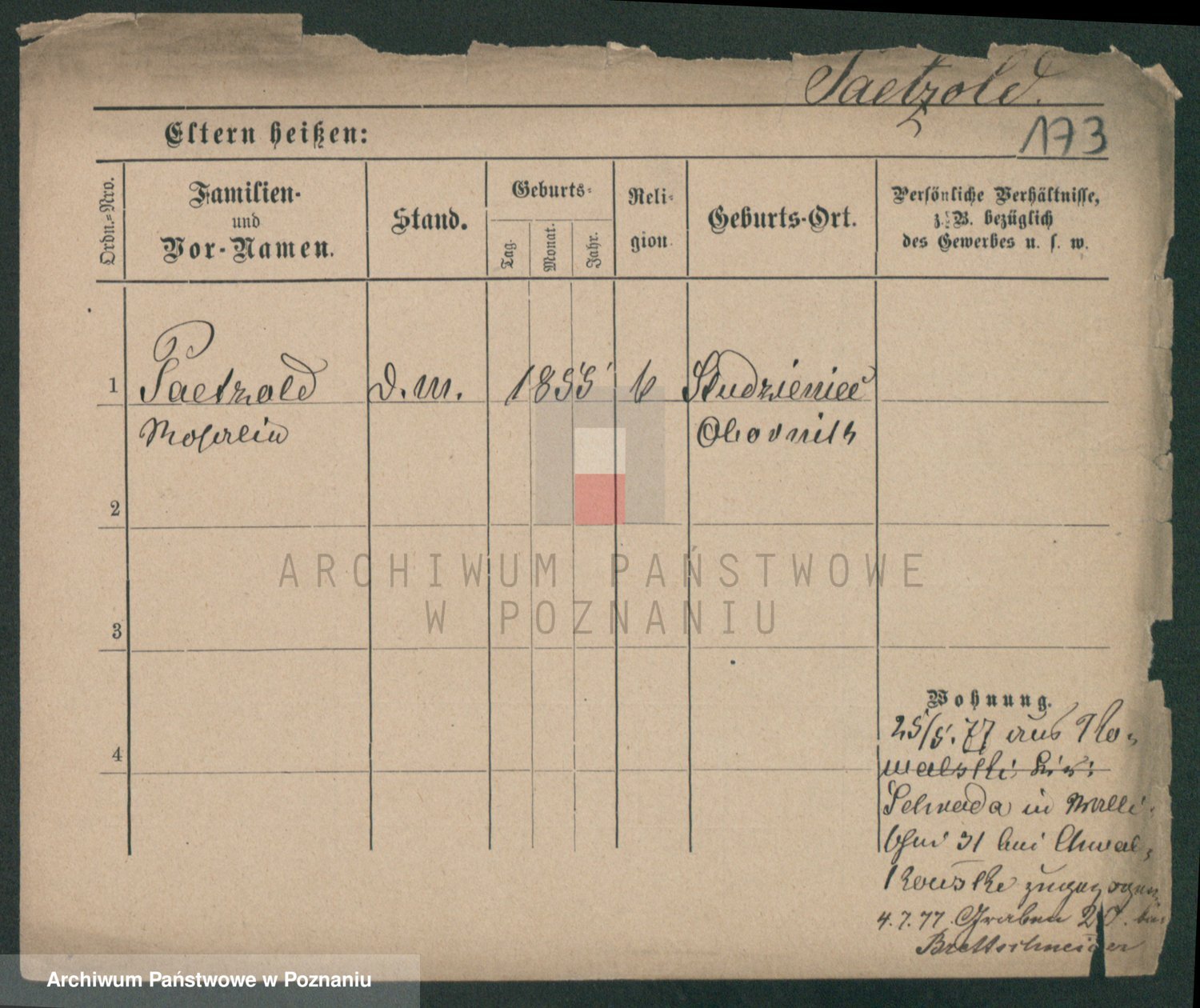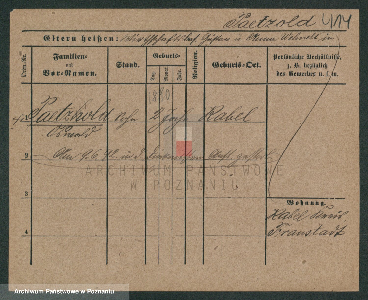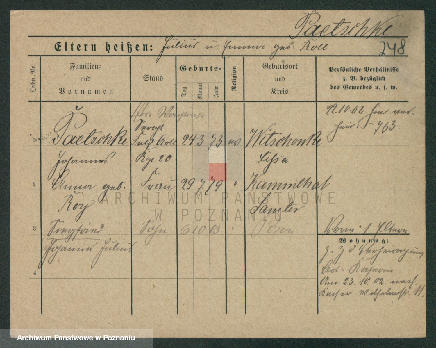 Podgląd karty osobowej dostępny jest po kliknięciu na nazwisko lub ikonkę karty. Można dokonywać powiększenia (ikony na górze) lub przechodzić między kolejnymi skanami (strzałki po bokach).
