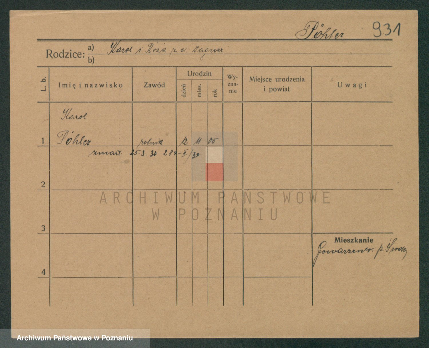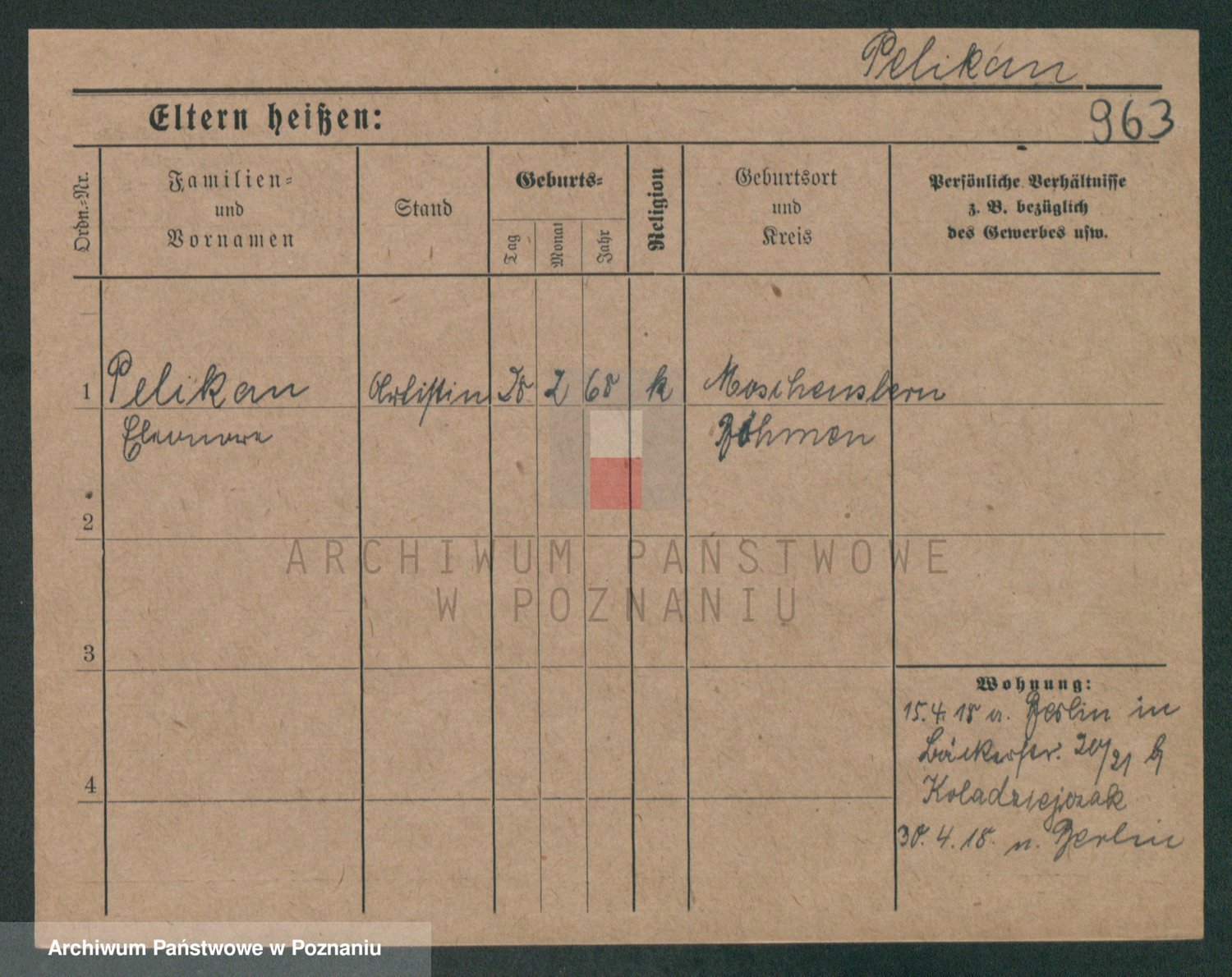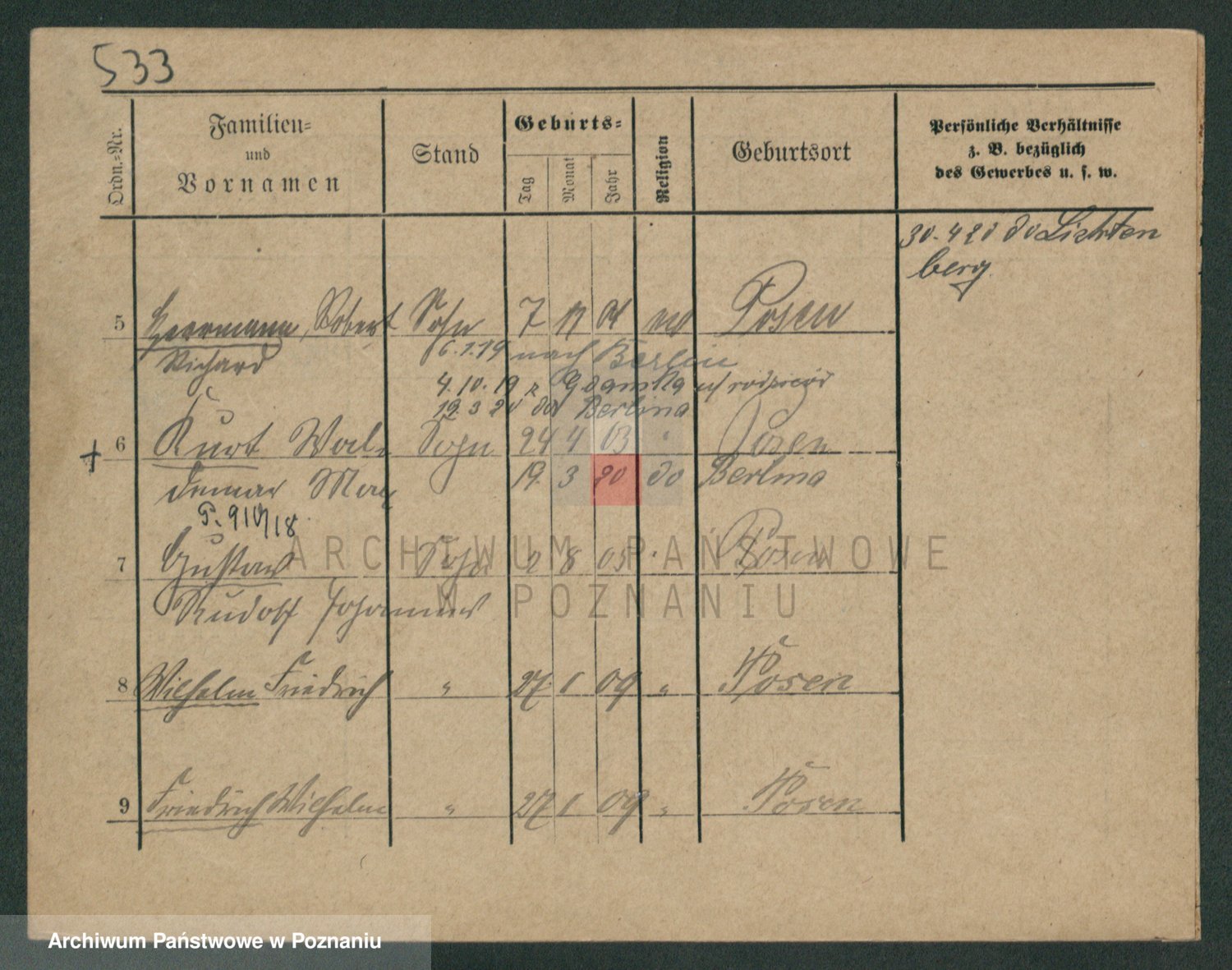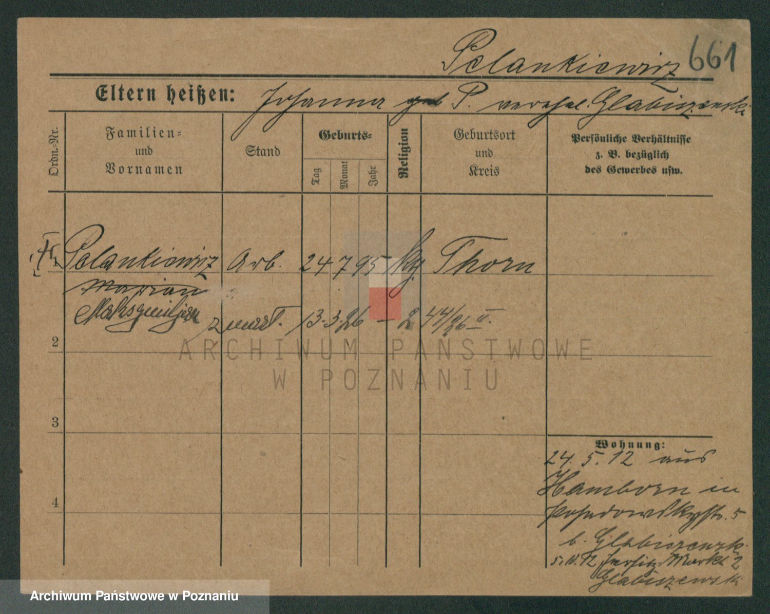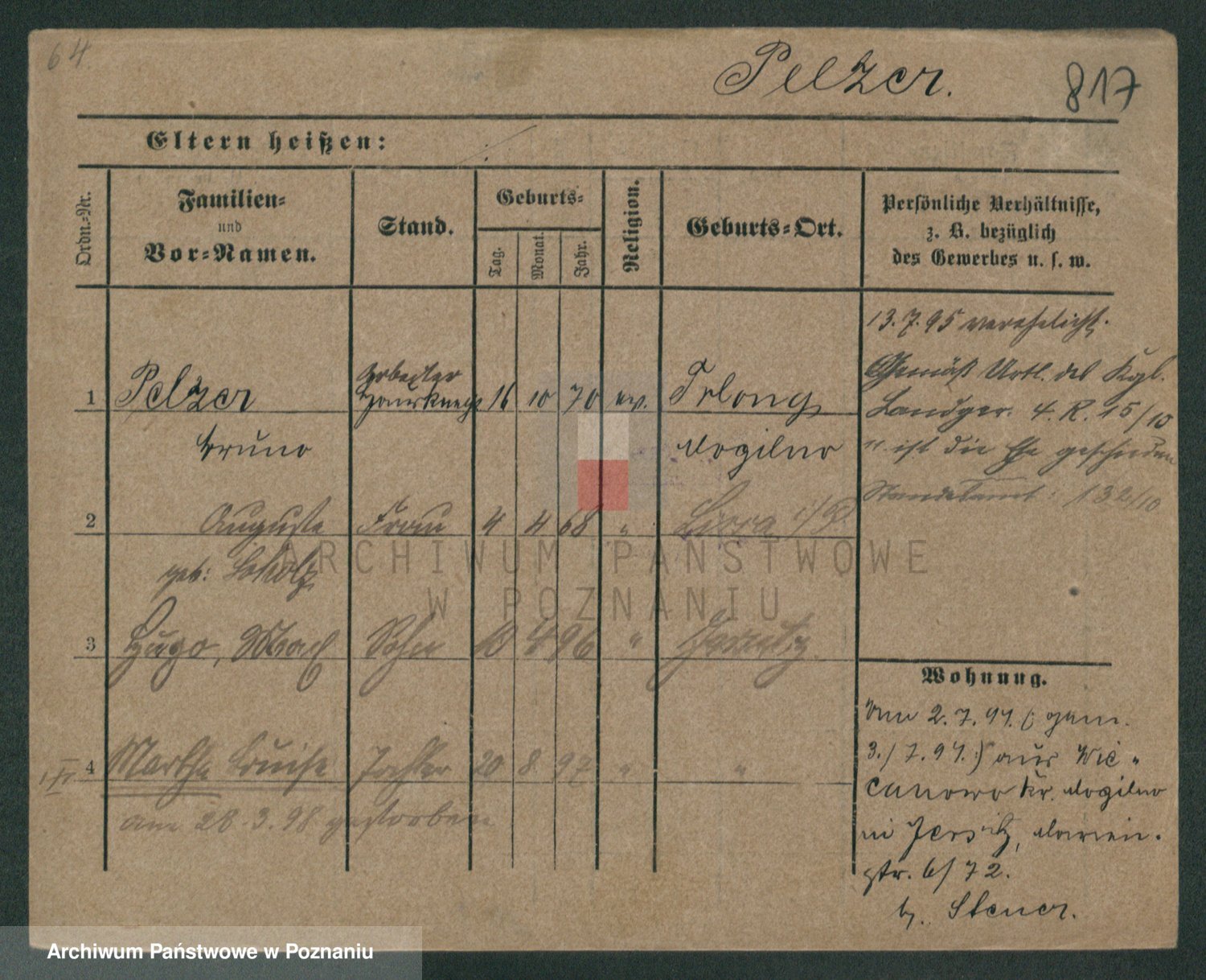 Podgląd karty osobowej dostępny jest po kliknięciu na nazwisko lub ikonkę karty. Można dokonywać powiększenia (ikony na górze) lub przechodzić między kolejnymi skanami (strzałki po bokach).