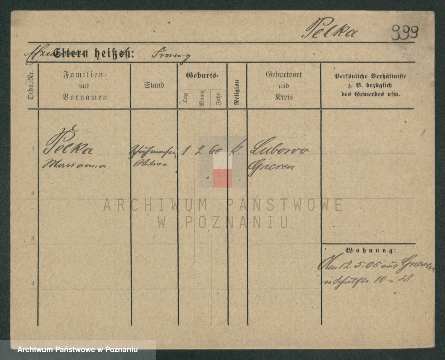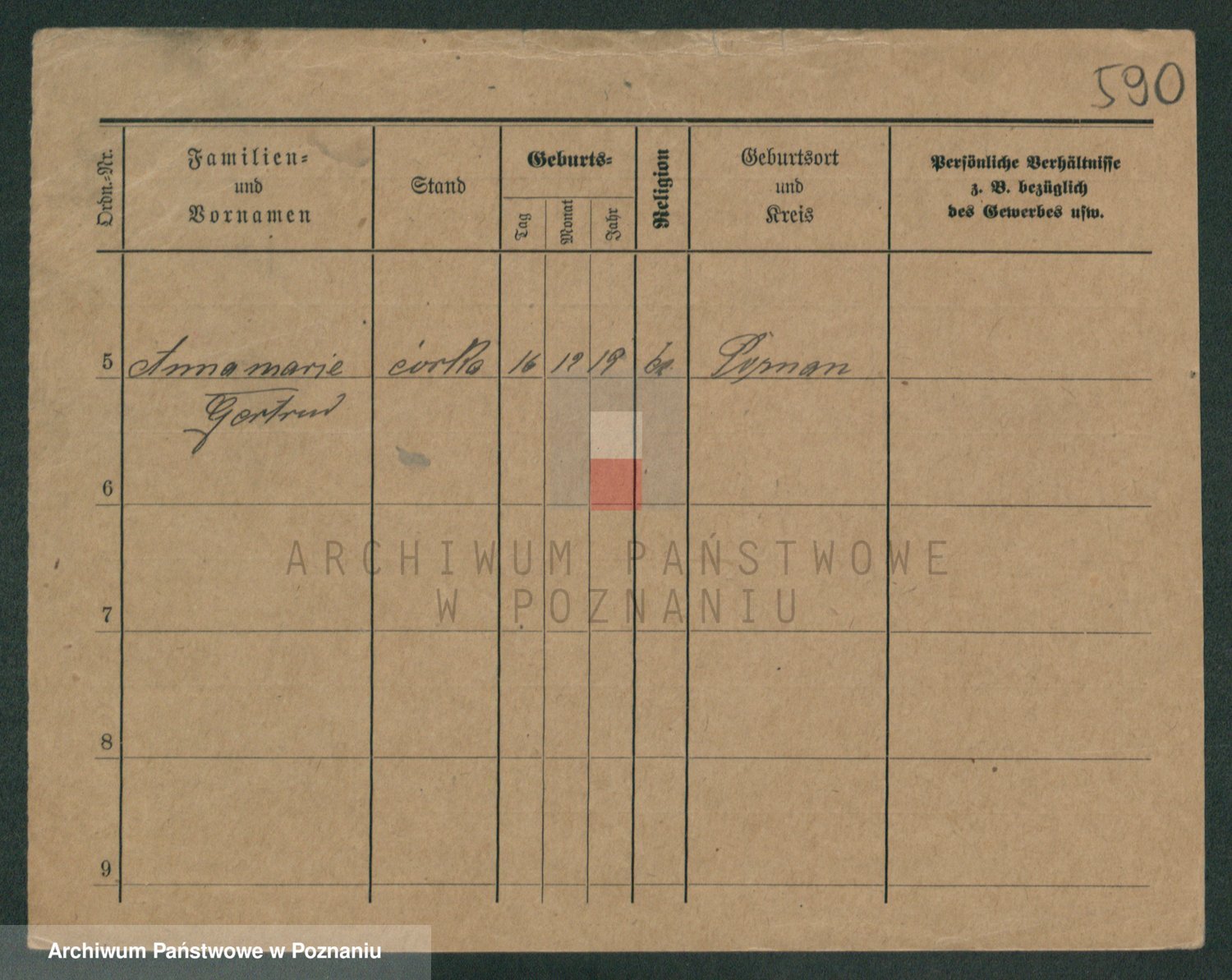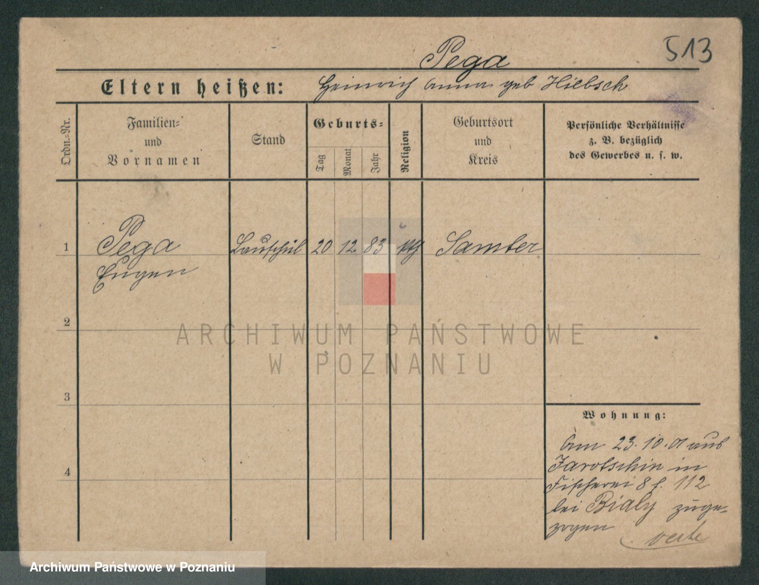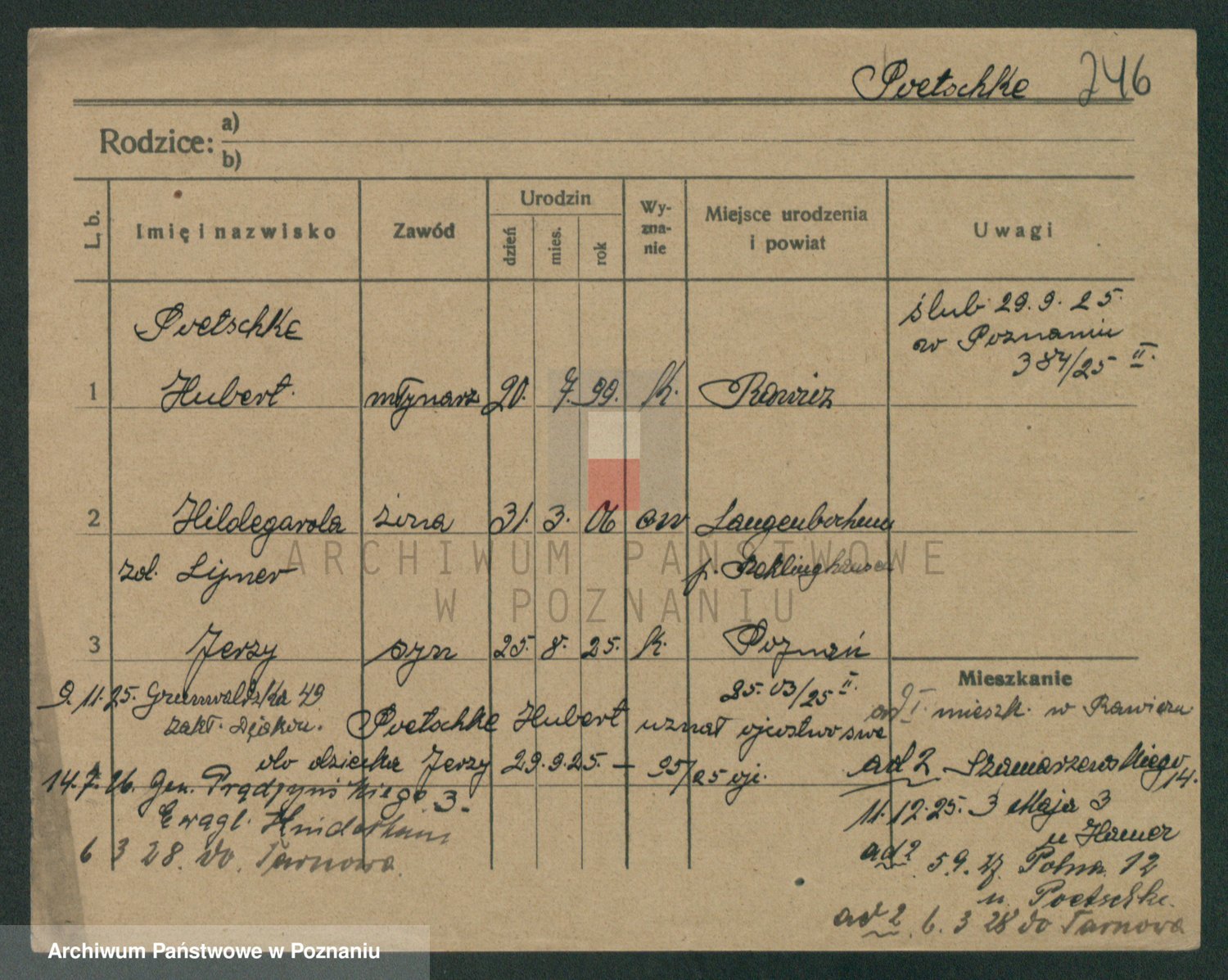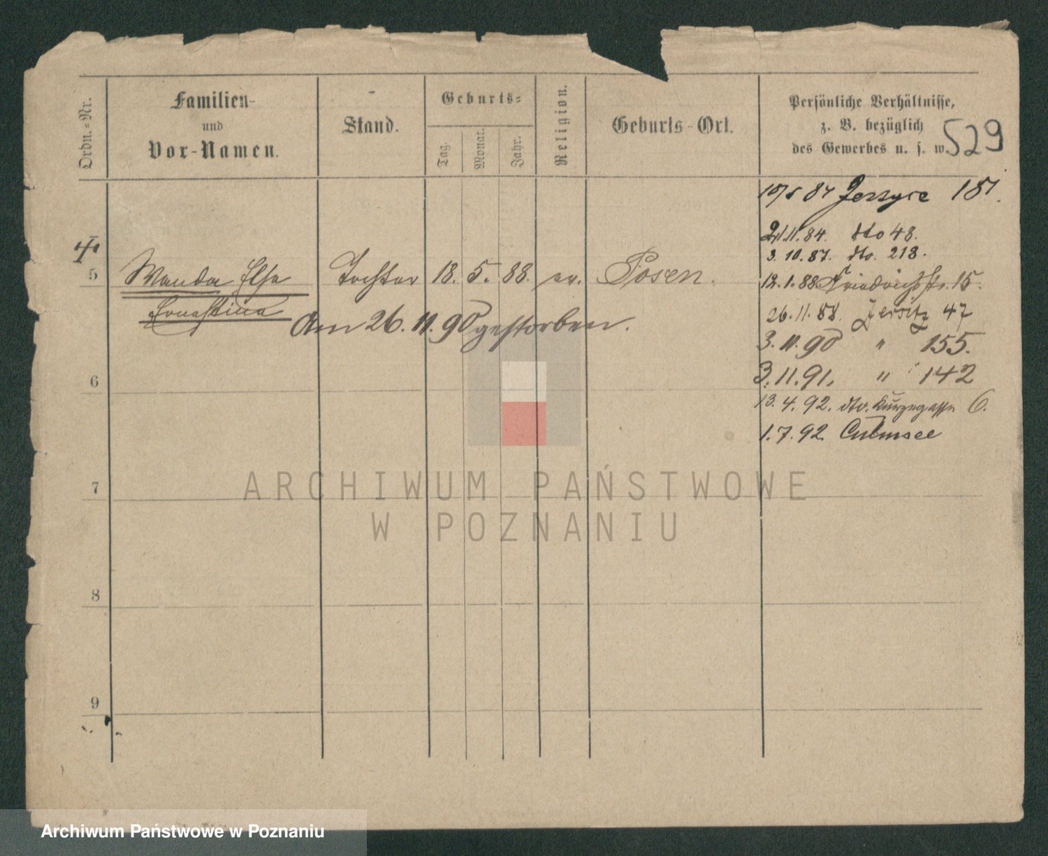 Podgląd karty osobowej dostępny jest po kliknięciu na nazwisko lub ikonkę karty. Można dokonywać powiększenia (ikony na górze) lub przechodzić między kolejnymi skanami (strzałki po bokach).