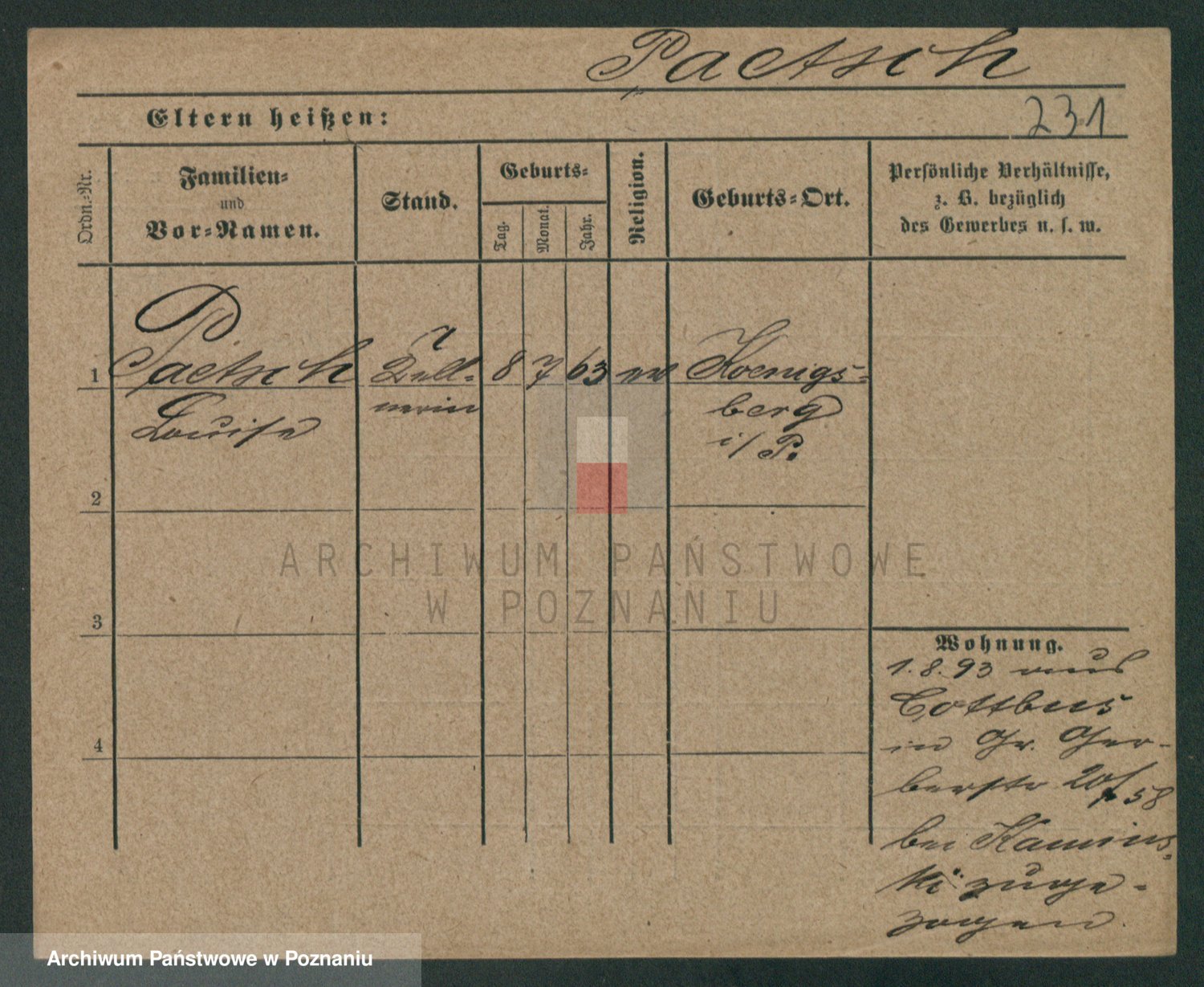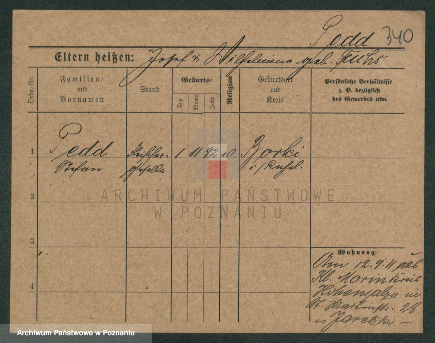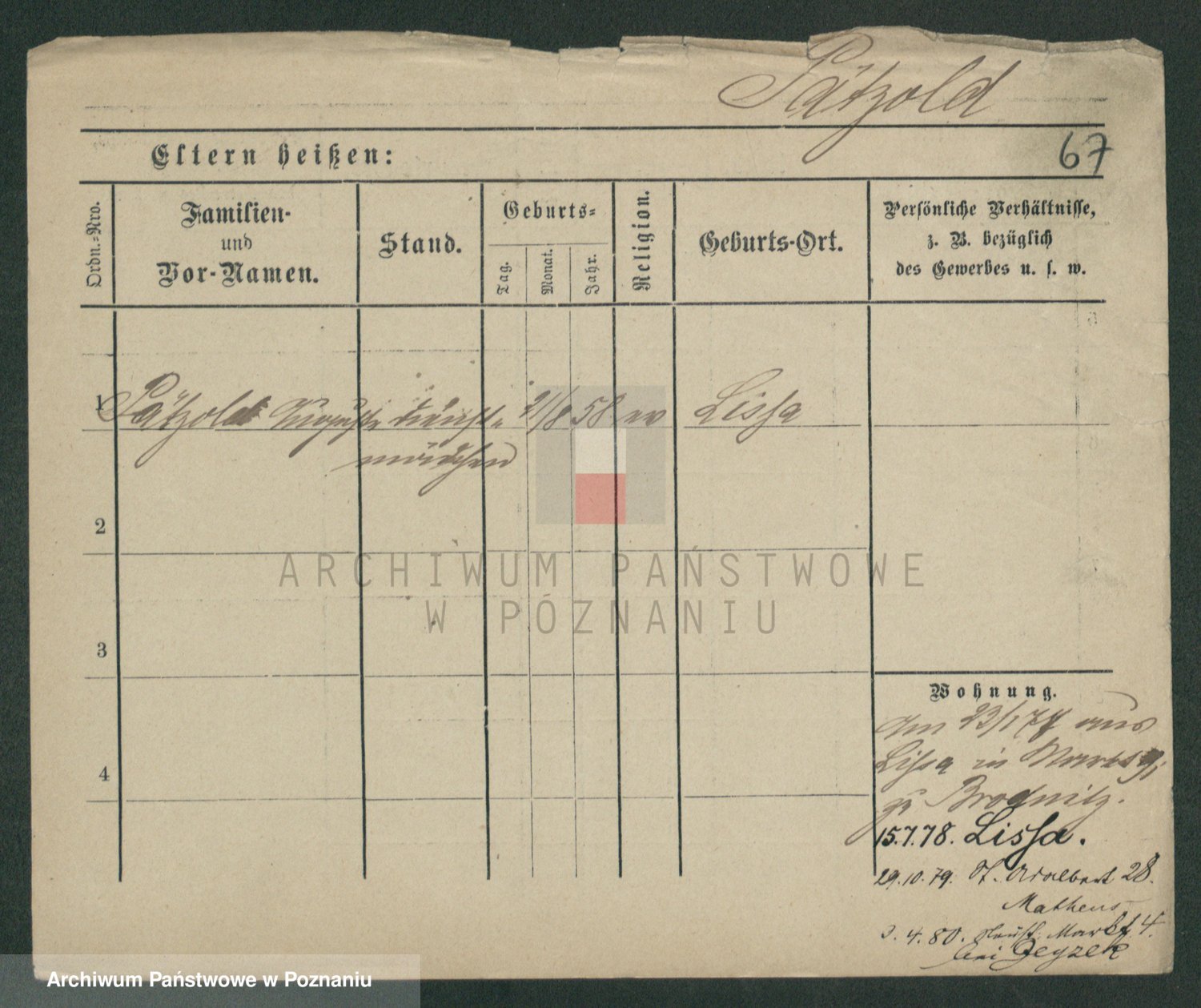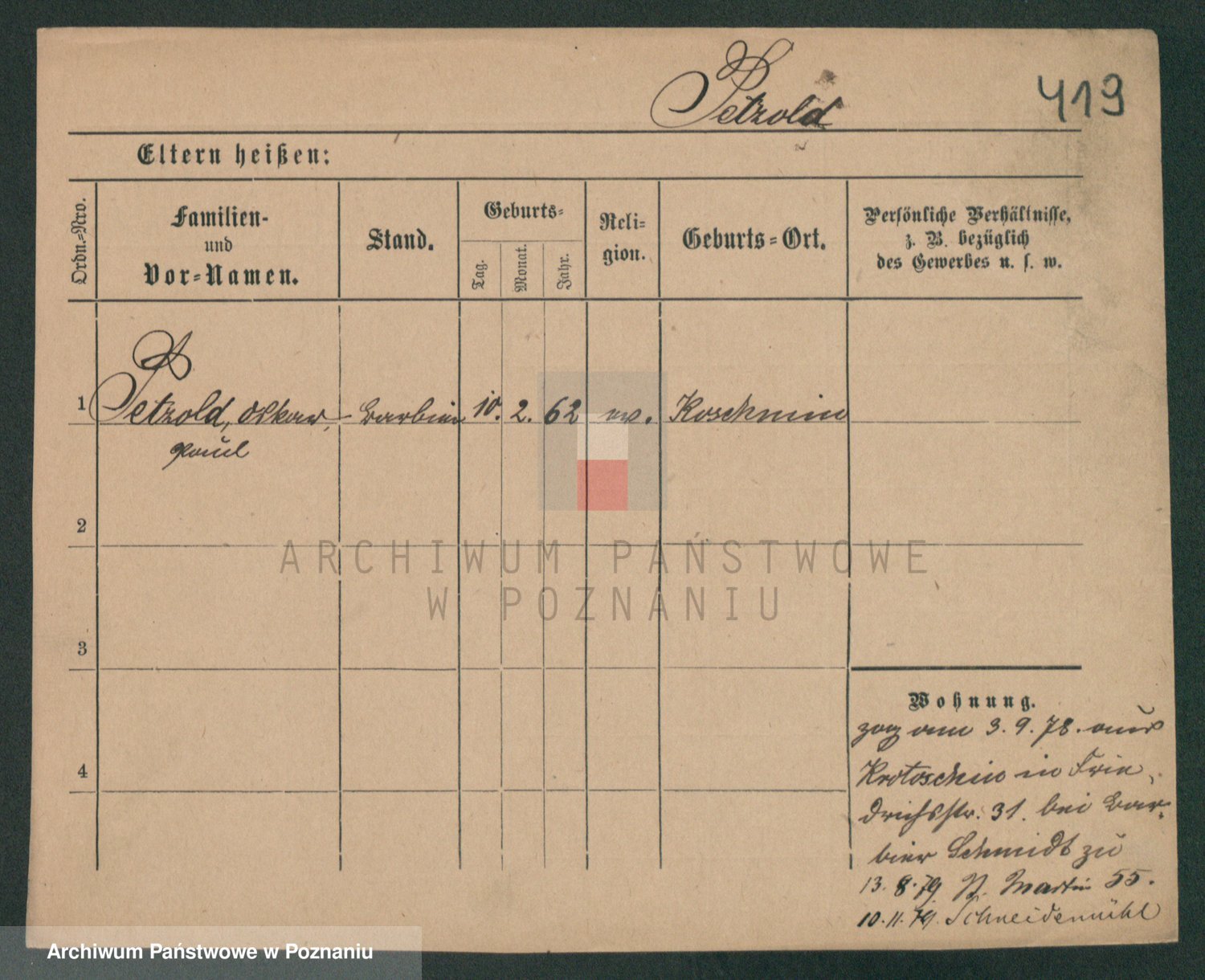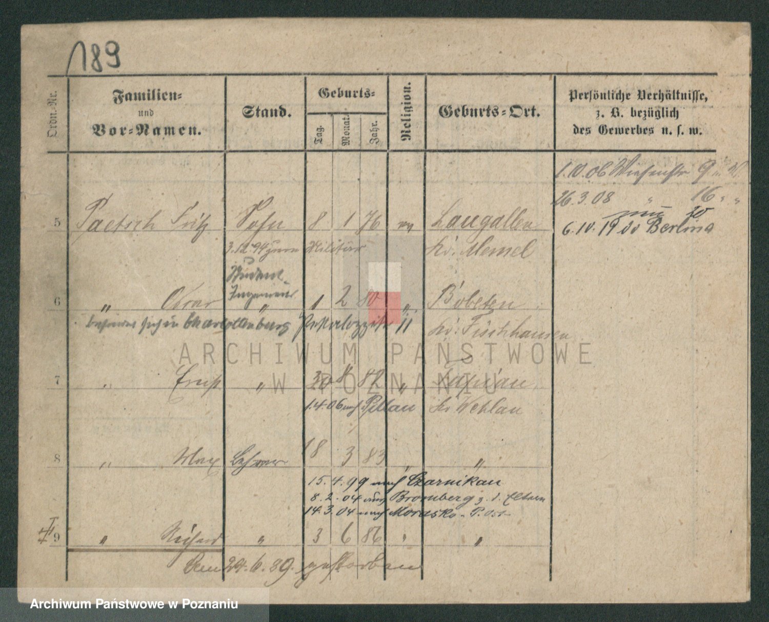 Podgląd karty osobowej dostępny jest po kliknięciu na nazwisko lub ikonkę karty. Można dokonywać powiększenia (ikony na górze) lub przechodzić między kolejnymi skanami (strzałki po bokach).