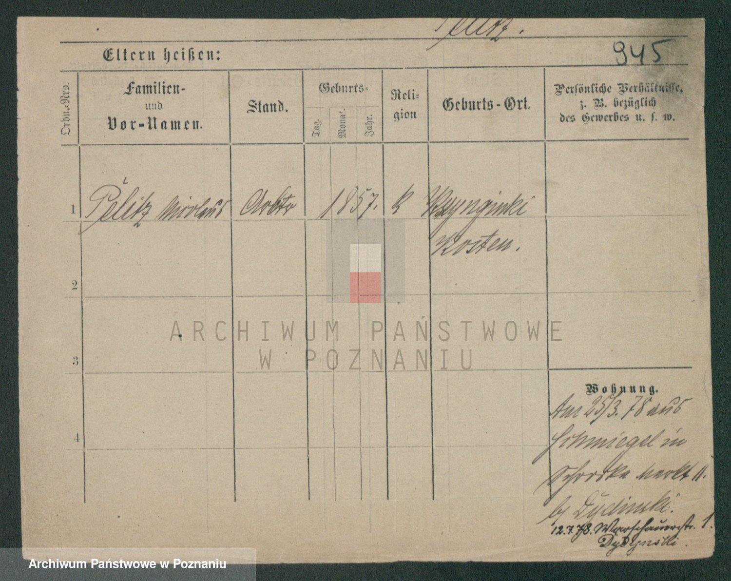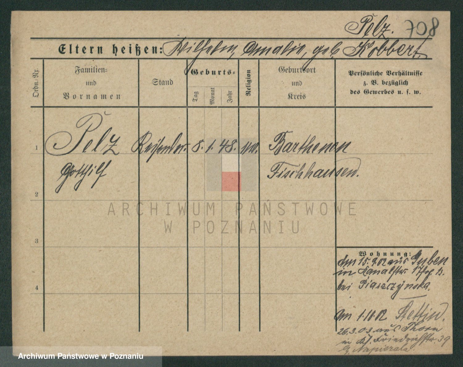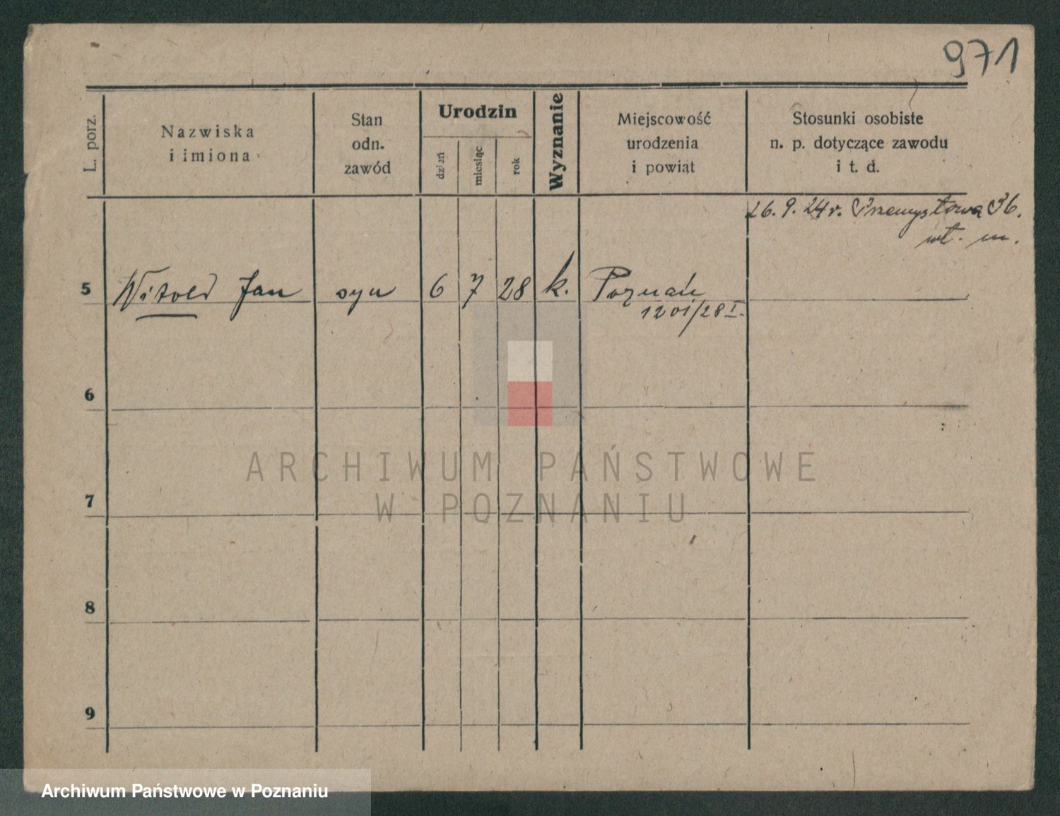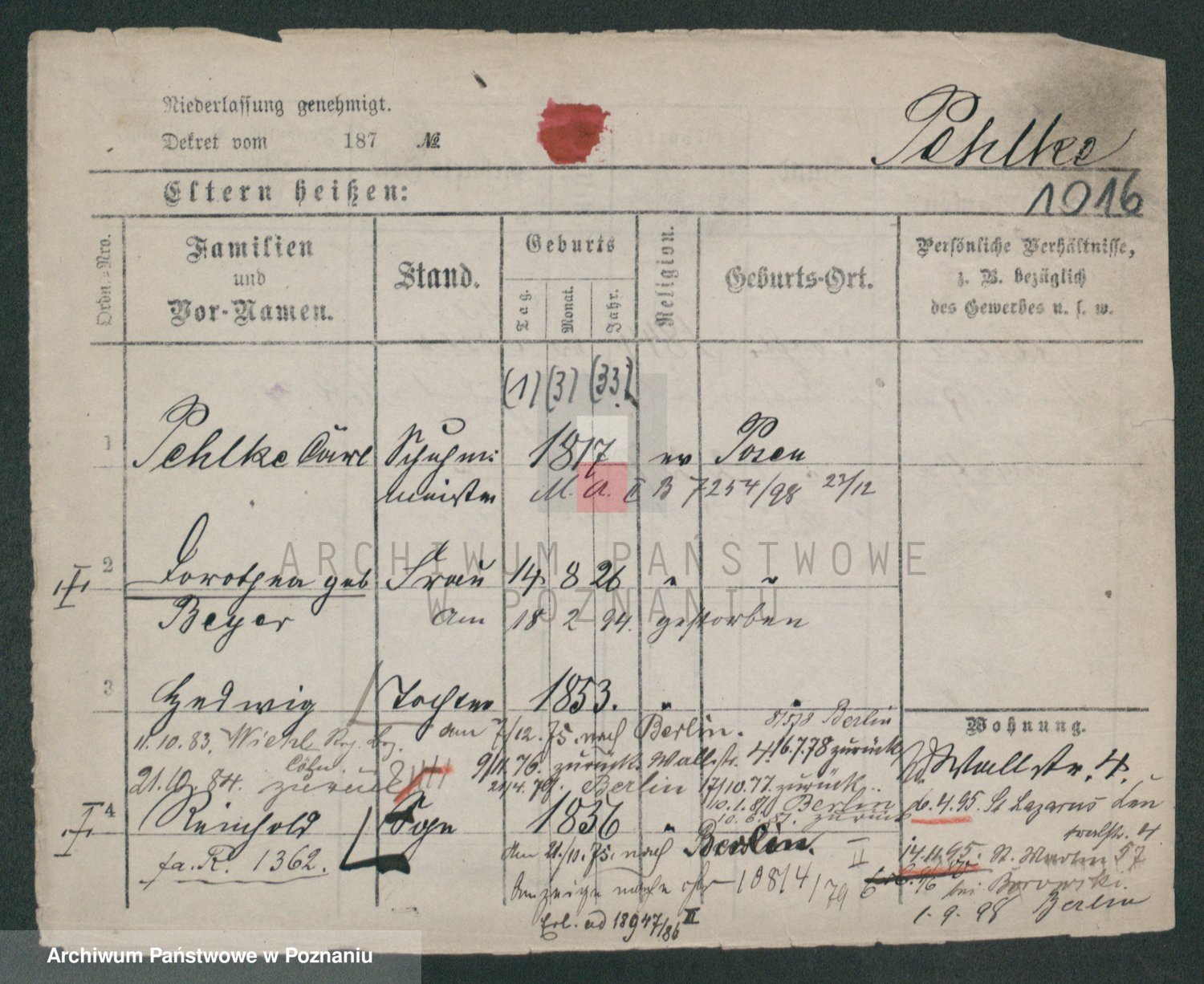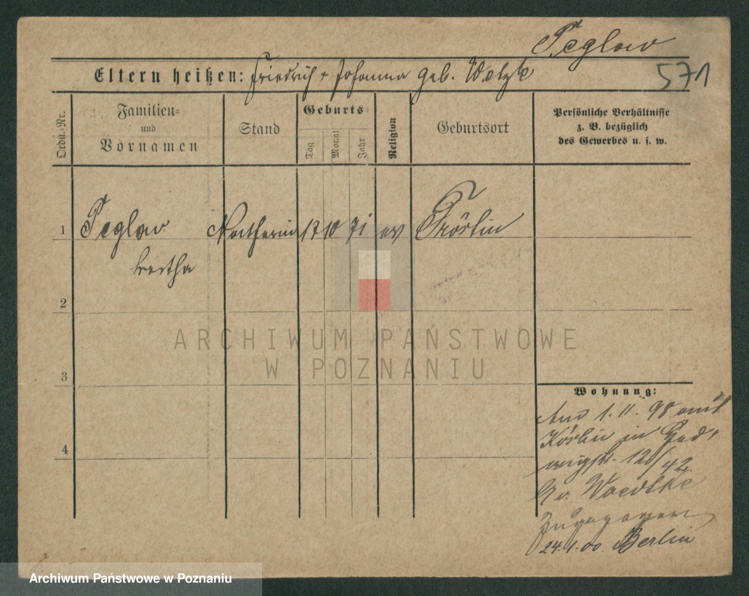 Podgląd karty osobowej dostępny jest po kliknięciu na nazwisko lub ikonkę karty. Można dokonywać powiększenia (ikony na górze) lub przechodzić między kolejnymi skanami (strzałki po bokach).