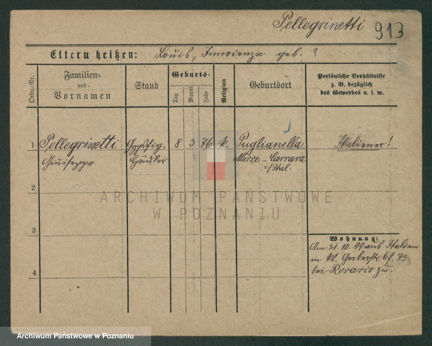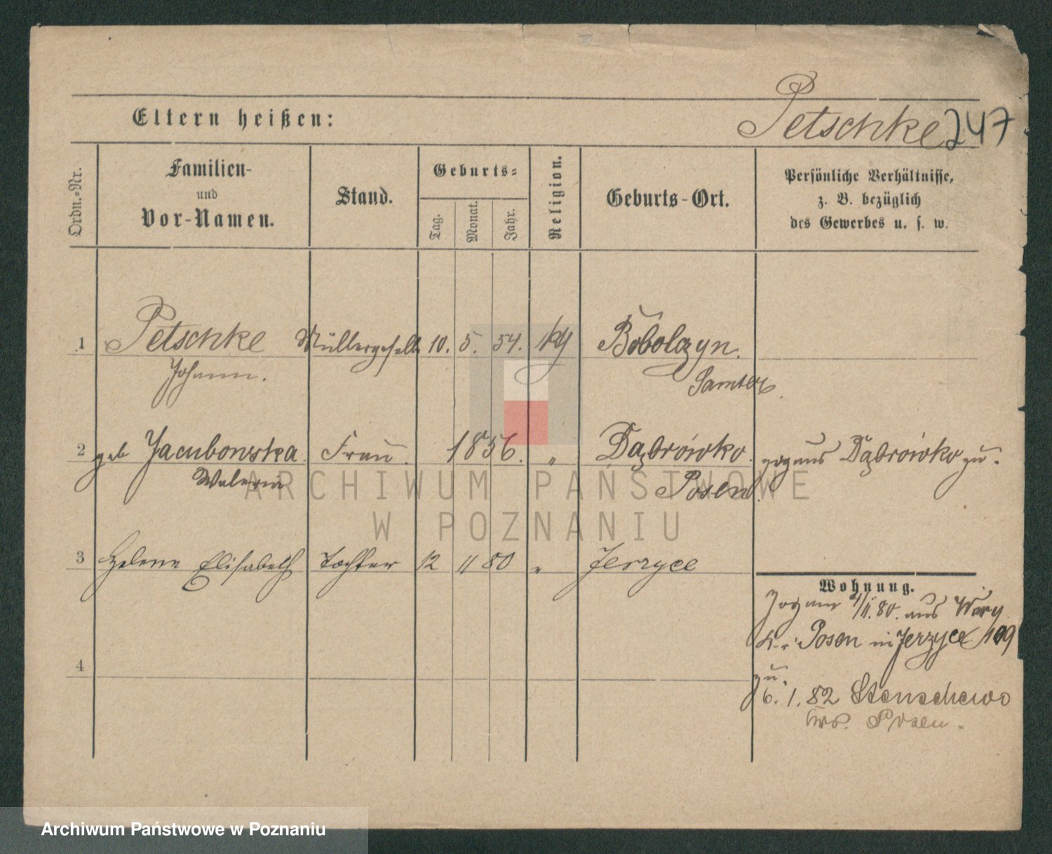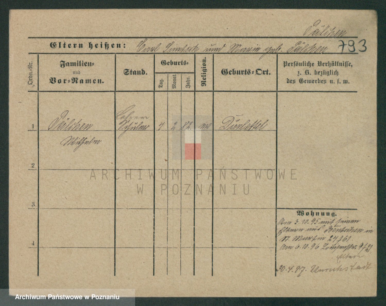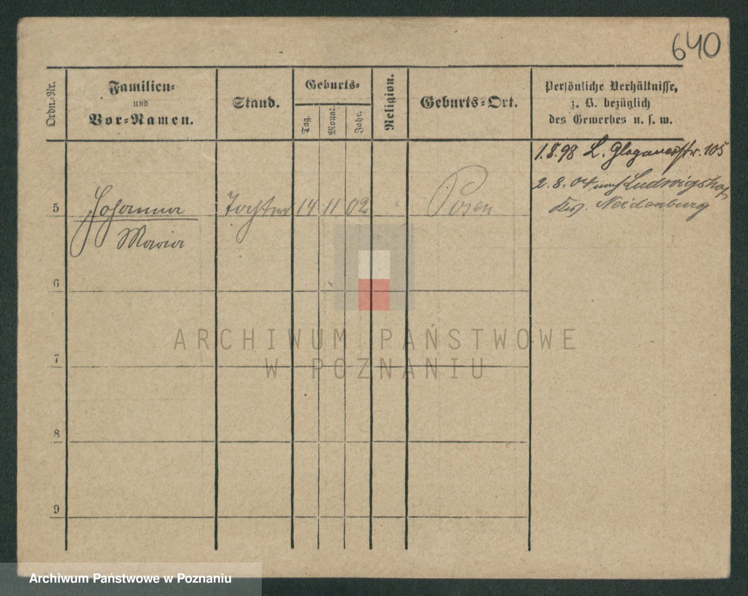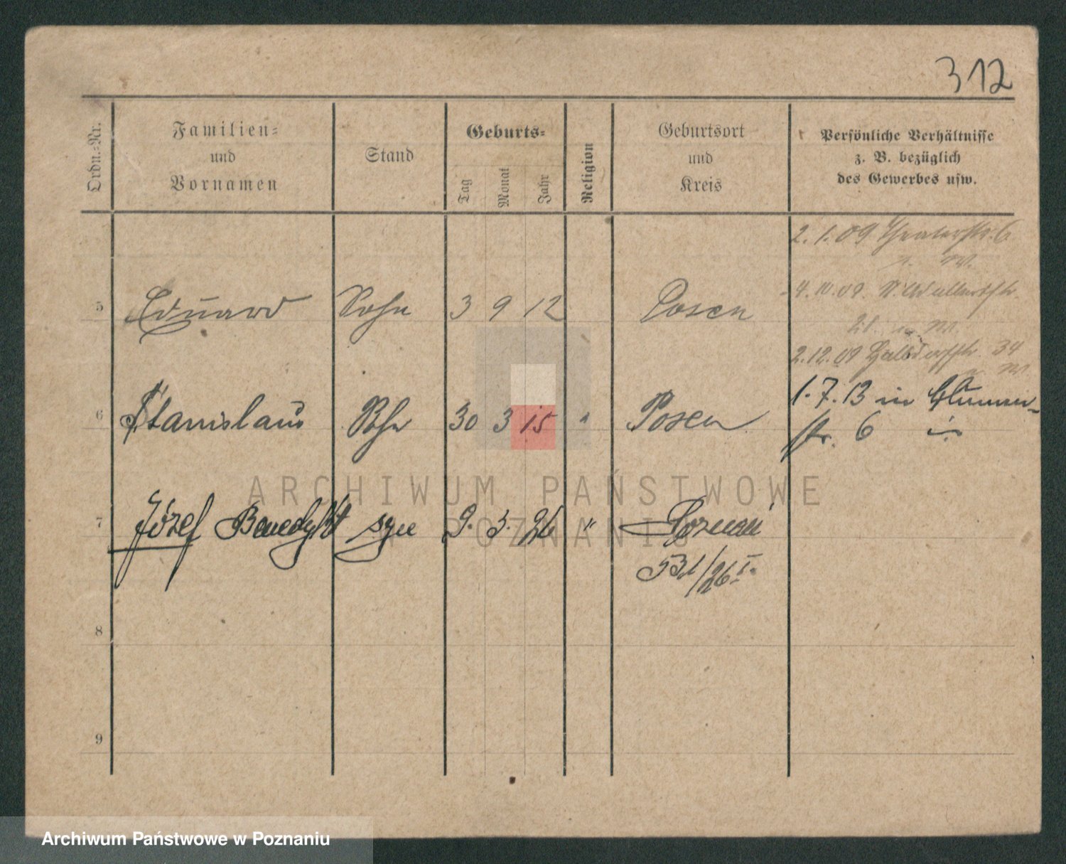 Podgląd karty osobowej dostępny jest po kliknięciu na nazwisko lub ikonkę karty. Można dokonywać powiększenia (ikony na górze) lub przechodzić między kolejnymi skanami (strzałki po bokach).