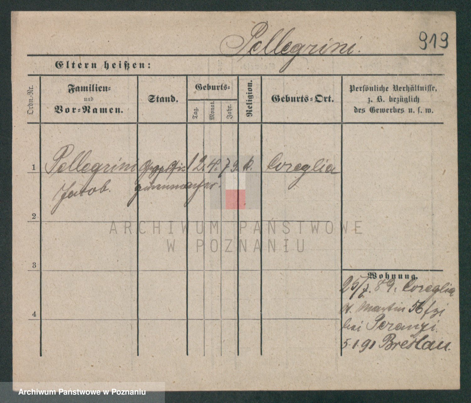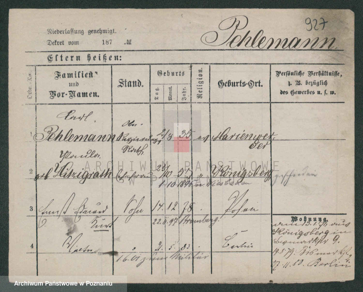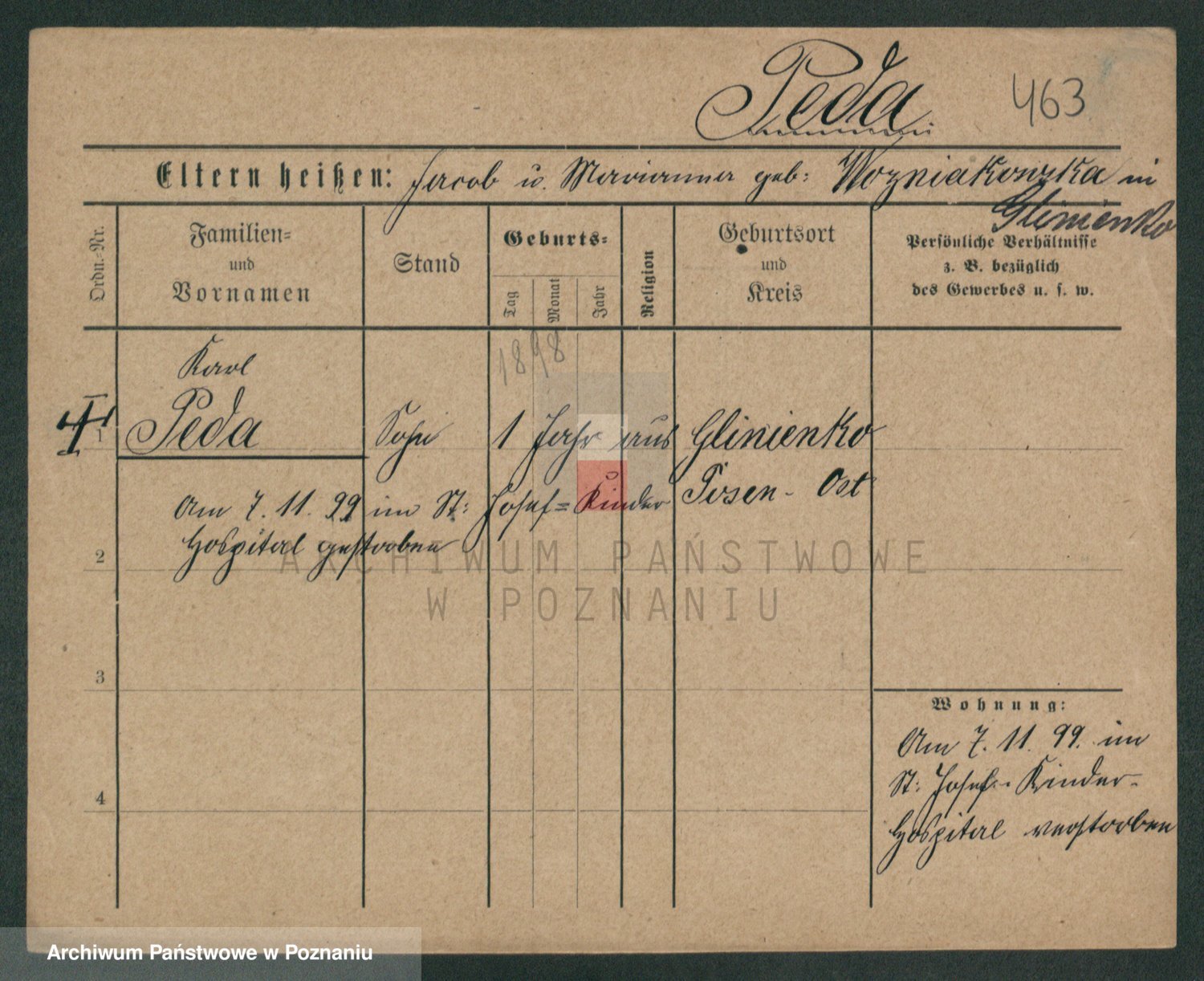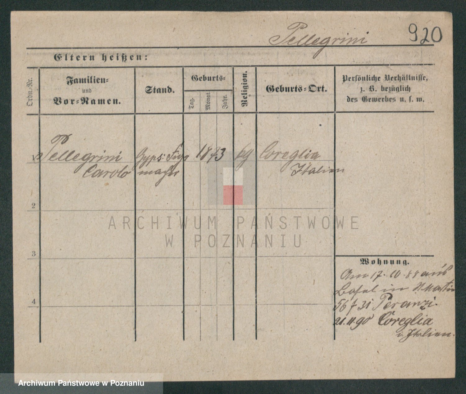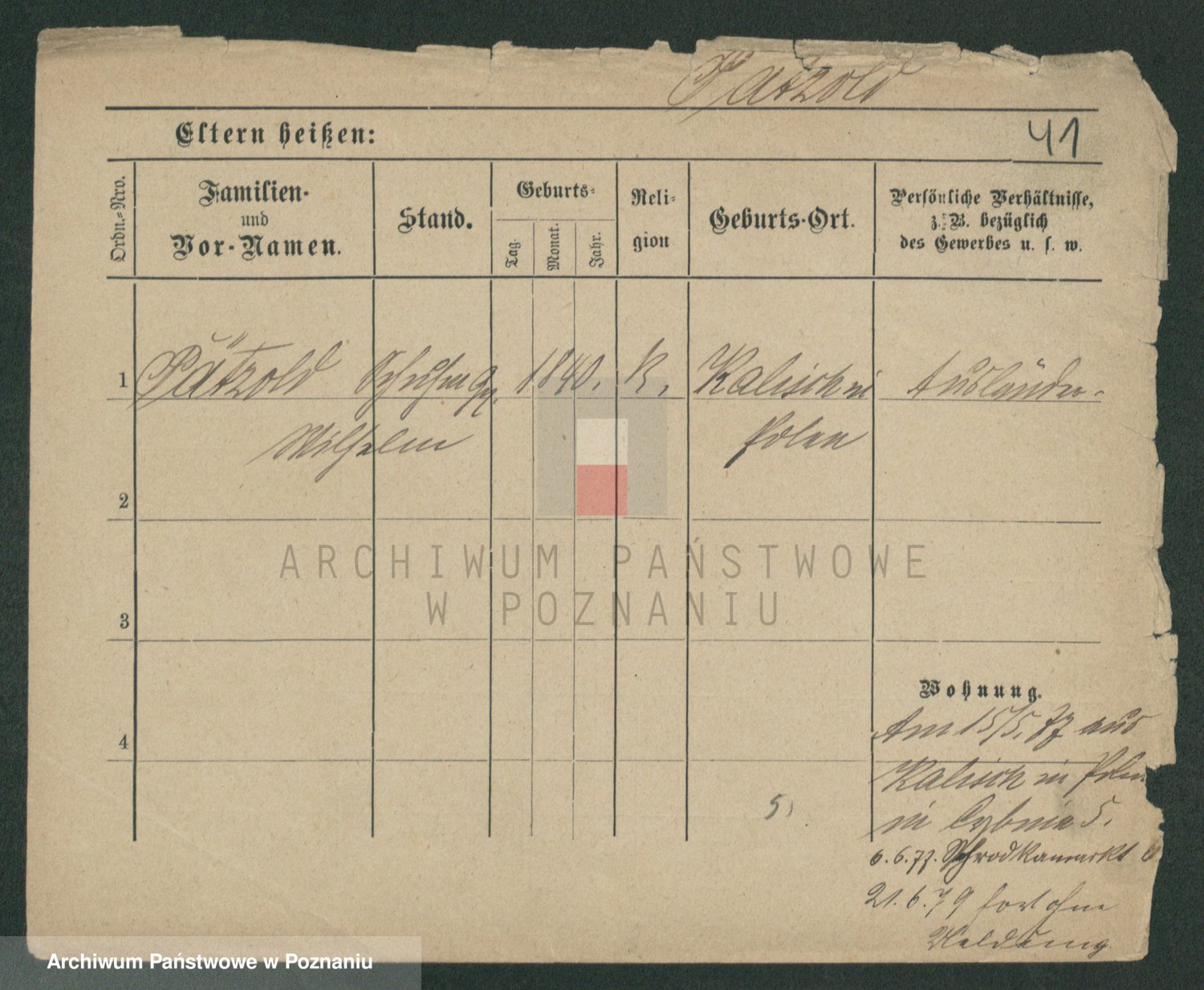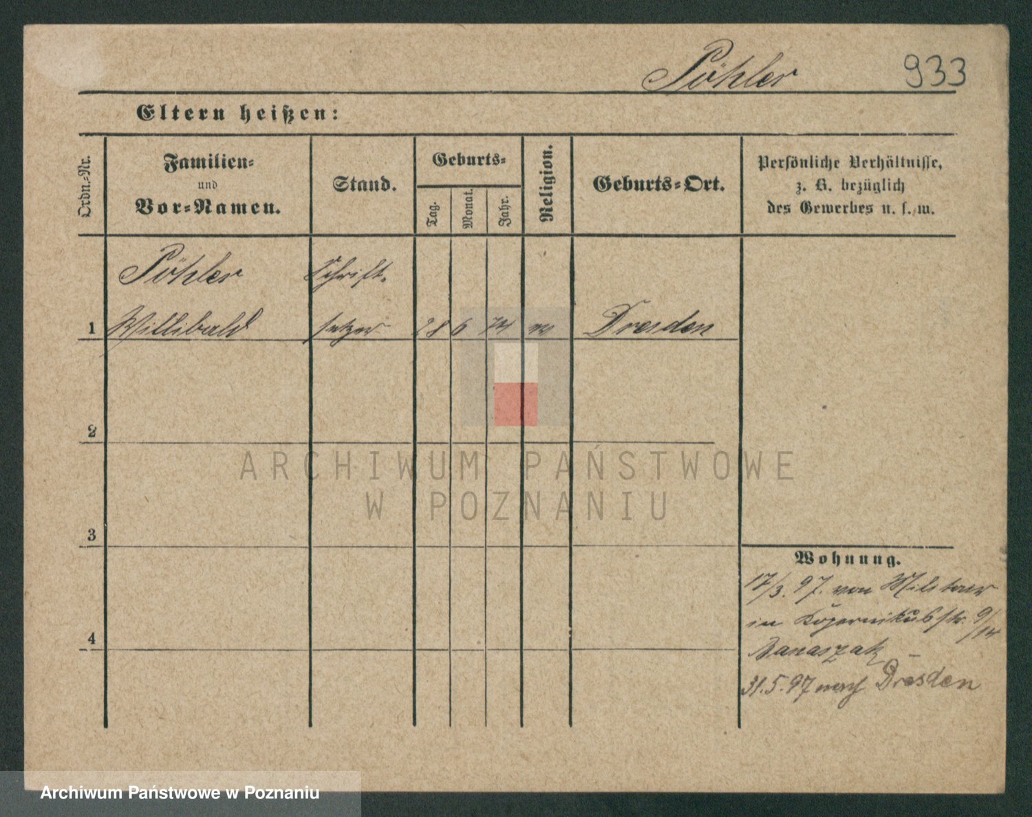 Podgląd karty osobowej dostępny jest po kliknięciu na nazwisko lub ikonkę karty. Można dokonywać powiększenia (ikony na górze) lub przechodzić między kolejnymi skanami (strzałki po bokach).