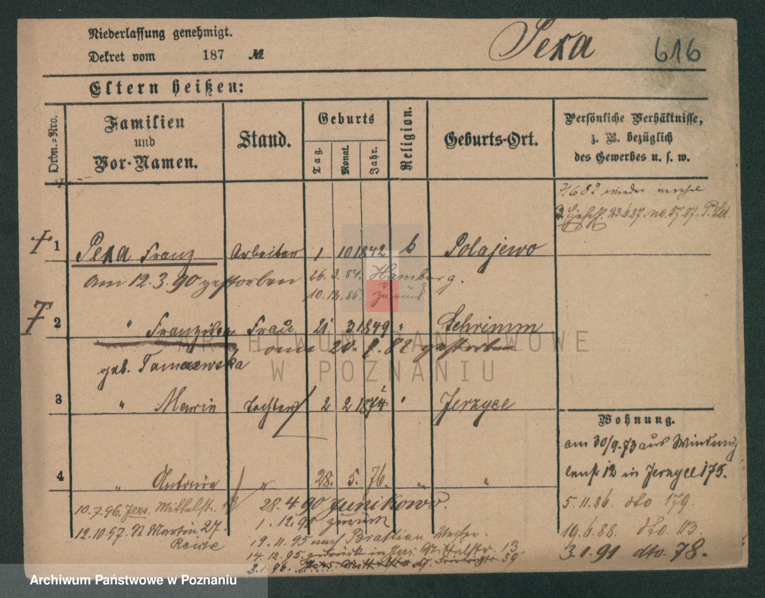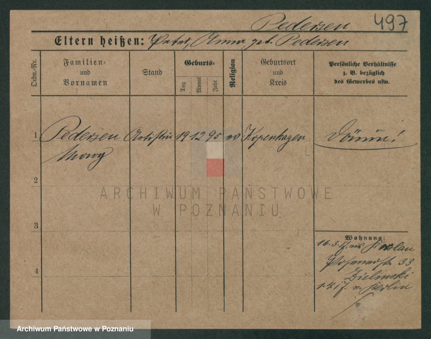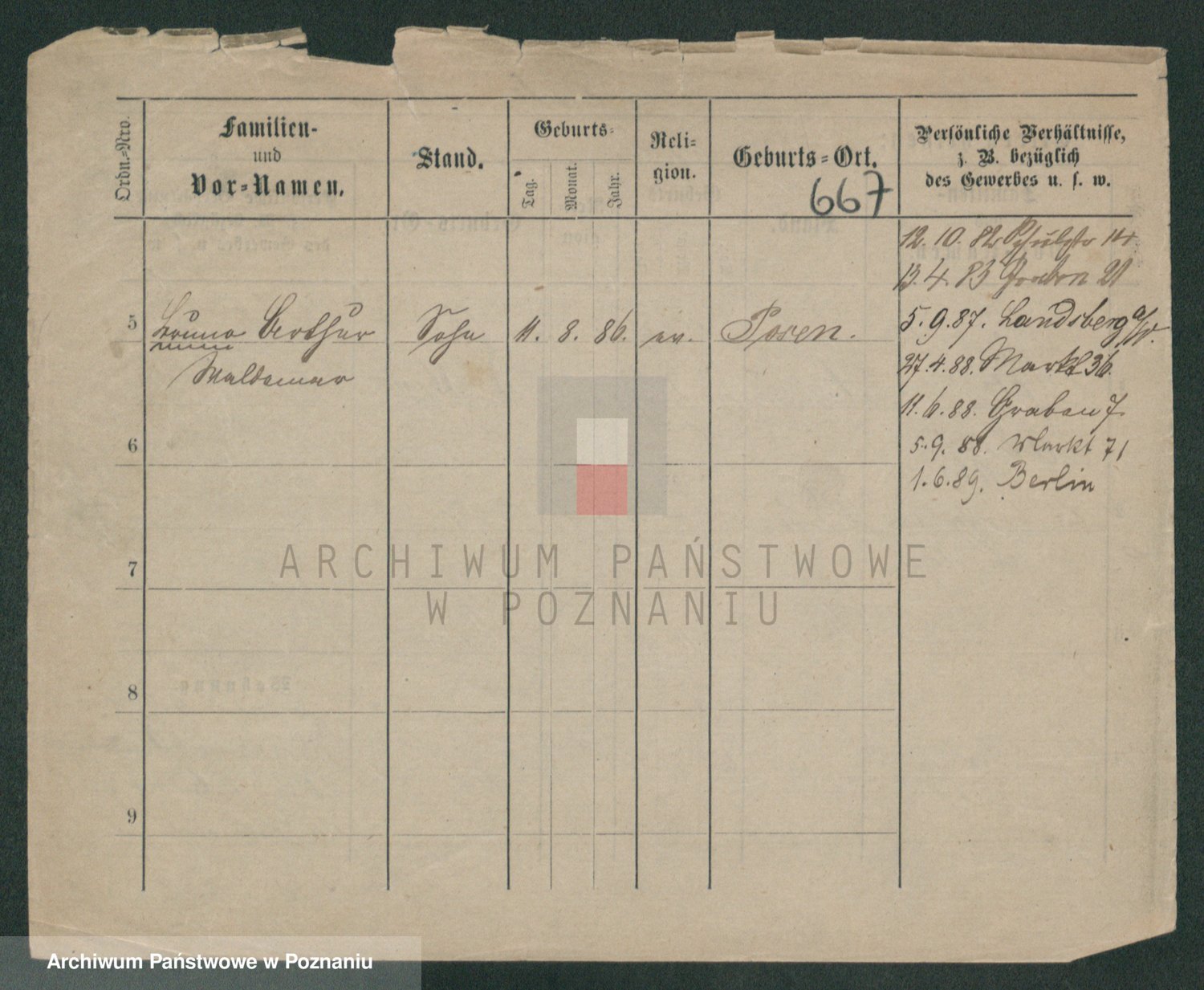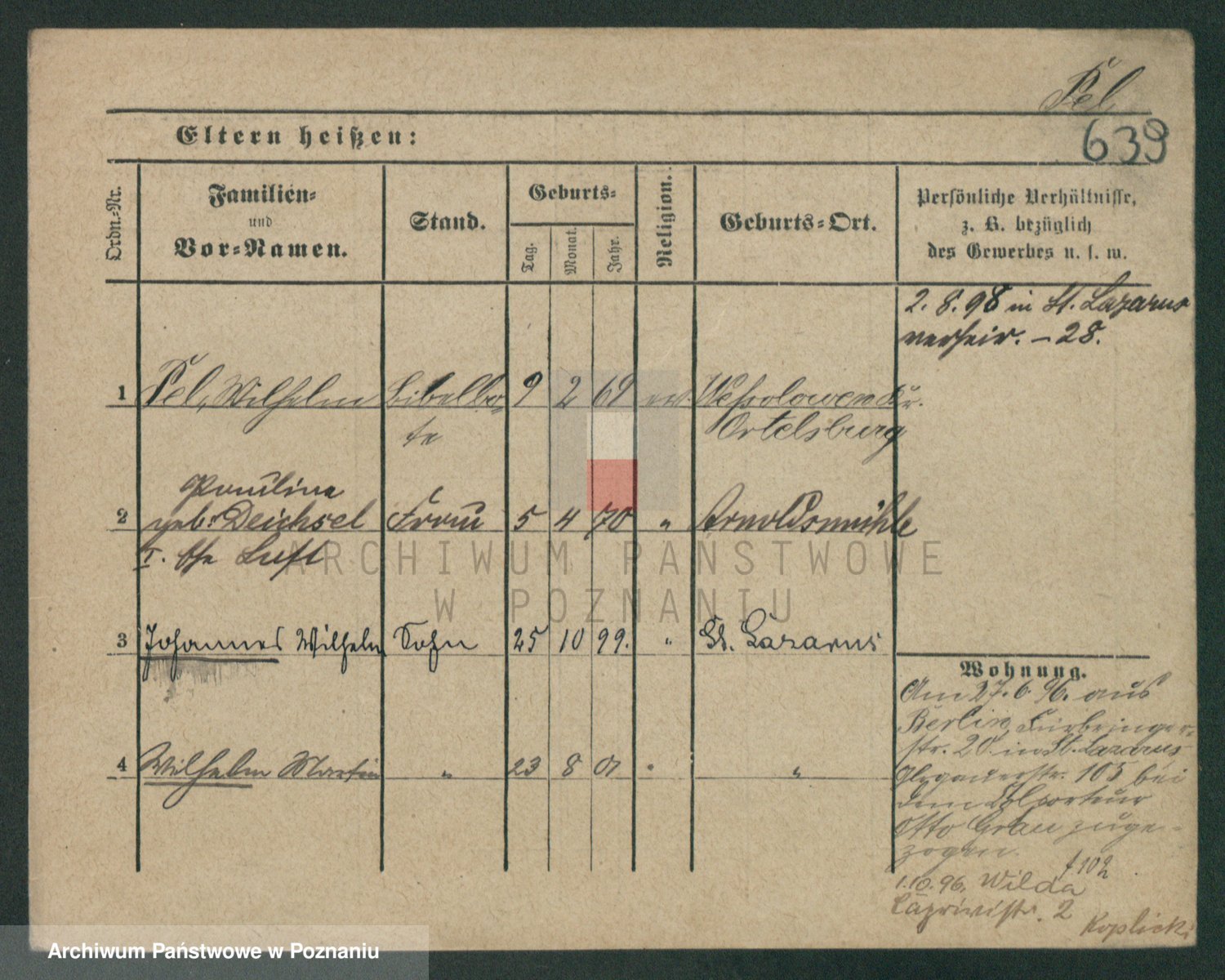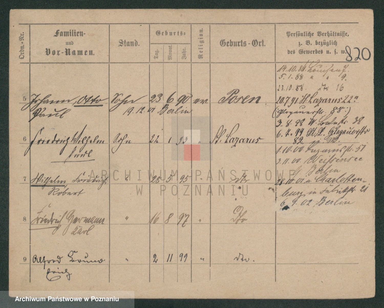 Podgląd karty osobowej dostępny jest po kliknięciu na nazwisko lub ikonkę karty. Można dokonywać powiększenia (ikony na górze) lub przechodzić między kolejnymi skanami (strzałki po bokach).