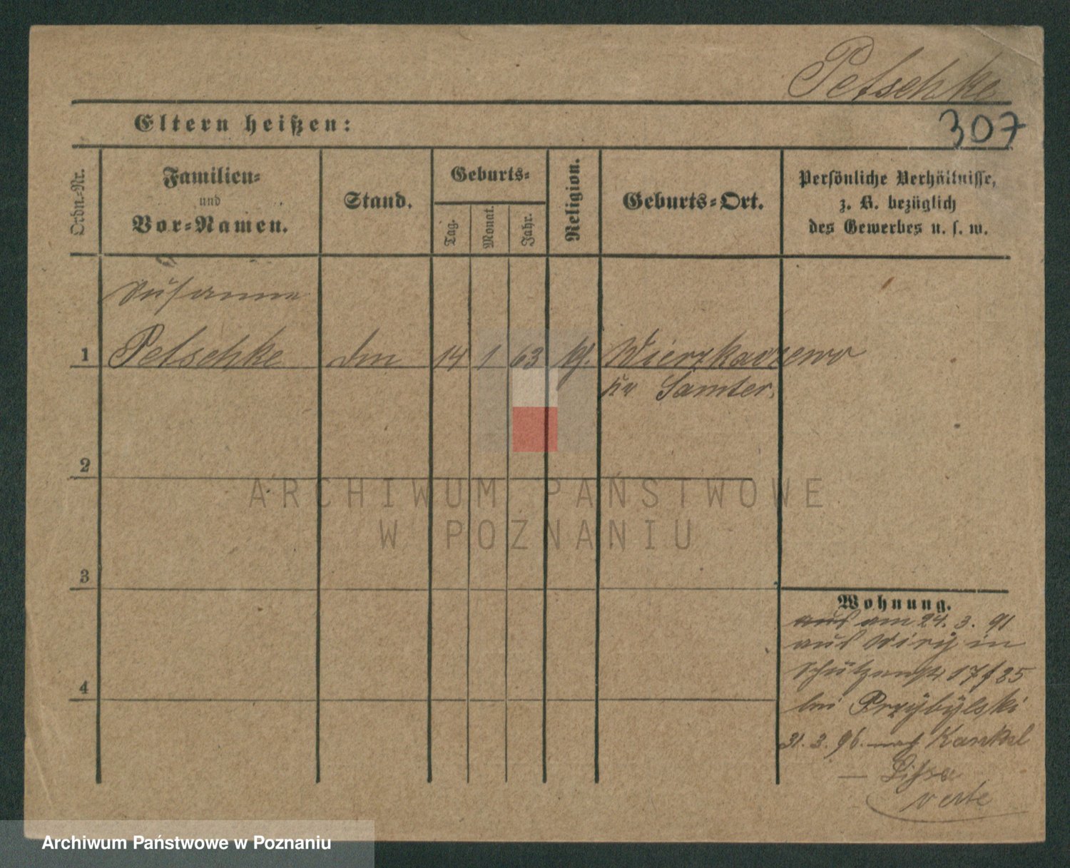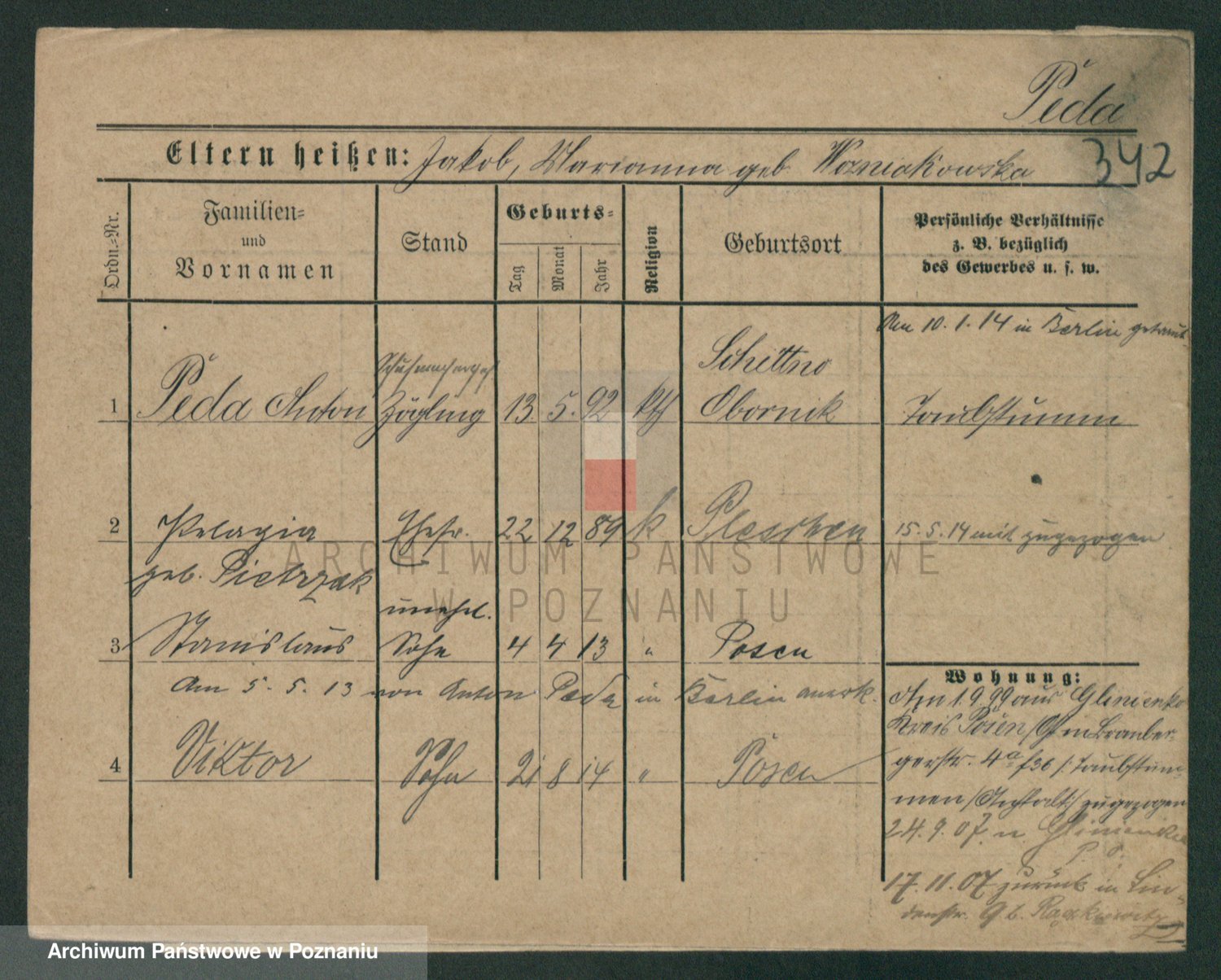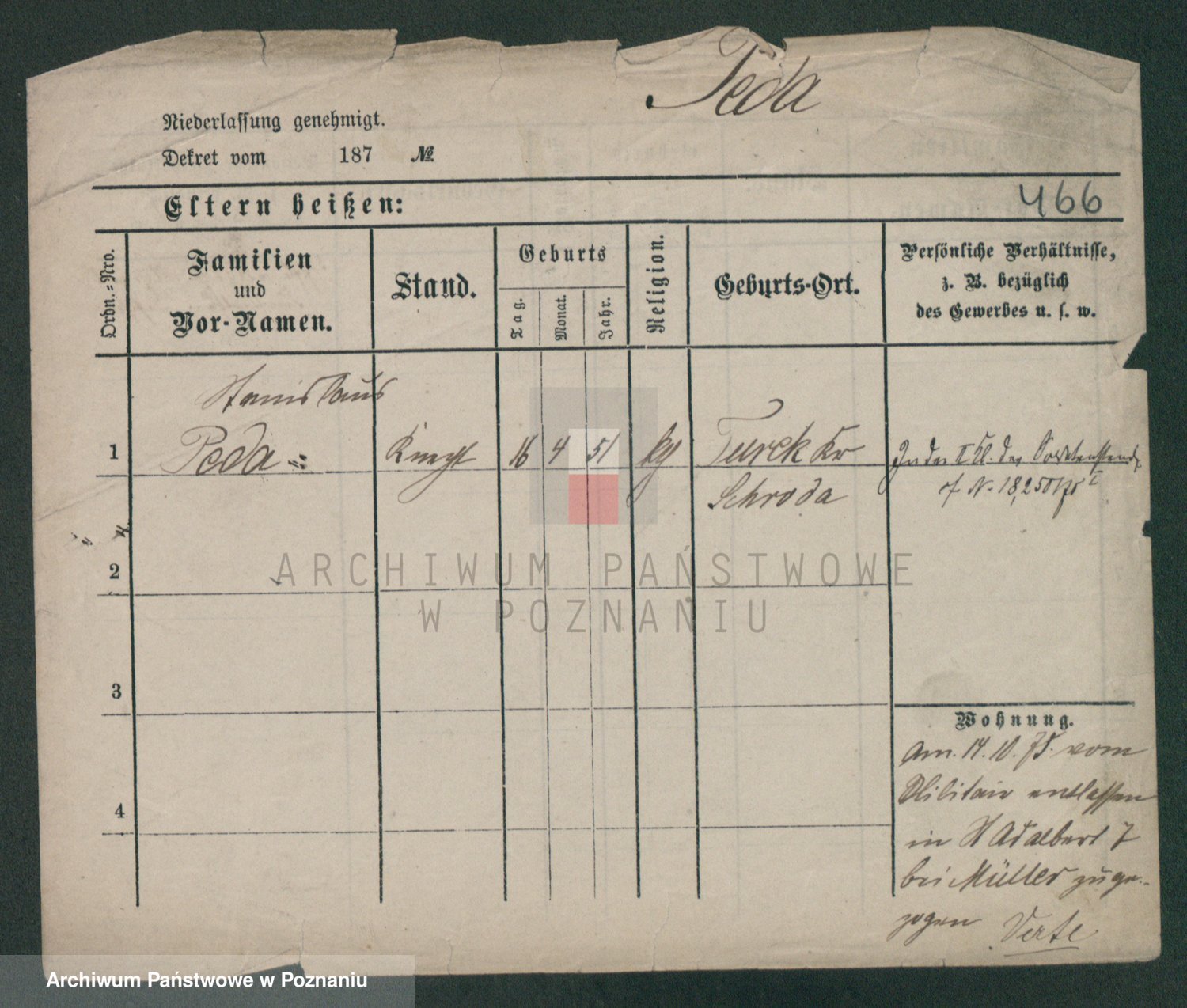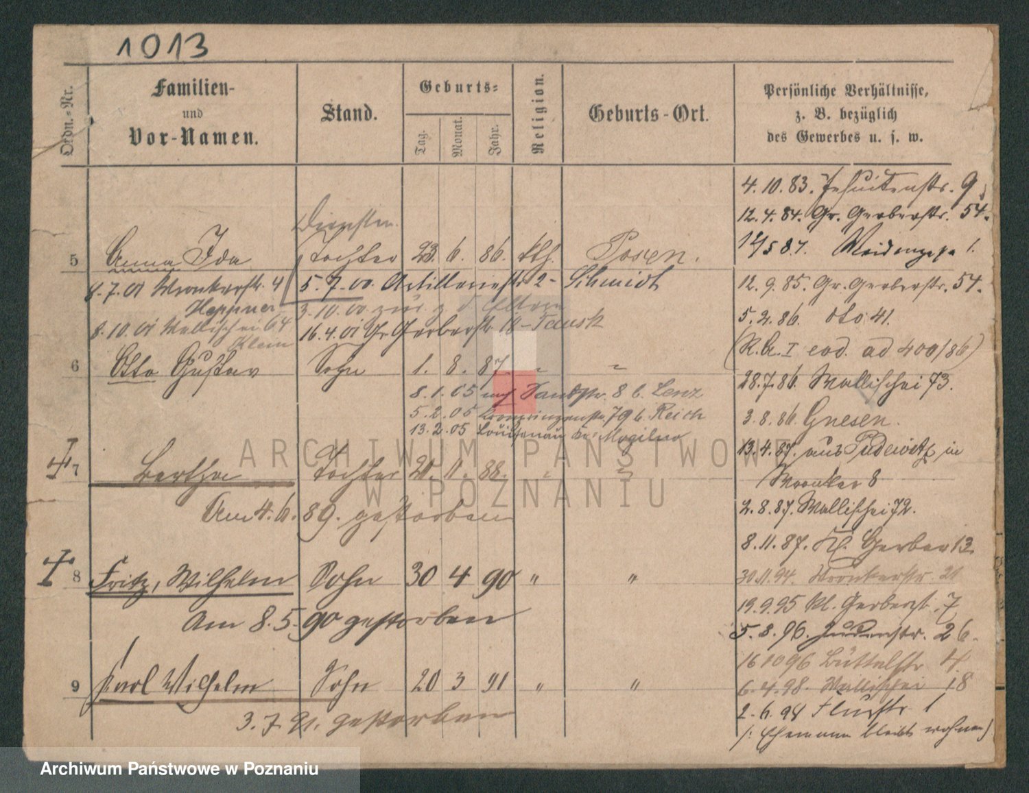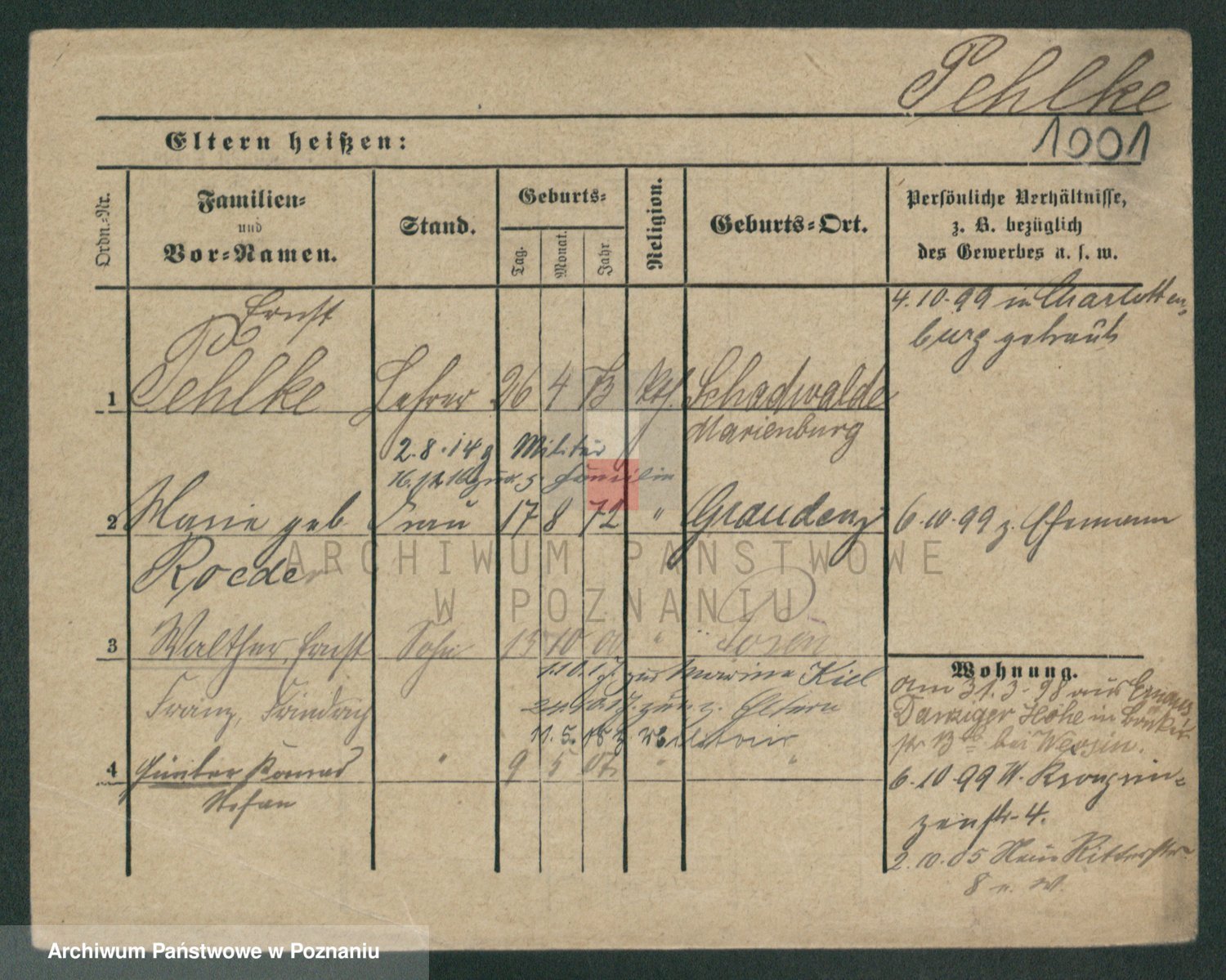 Podgląd karty osobowej dostępny jest po kliknięciu na nazwisko lub ikonkę karty. Można dokonywać powiększenia (ikony na górze) lub przechodzić między kolejnymi skanami (strzałki po bokach).