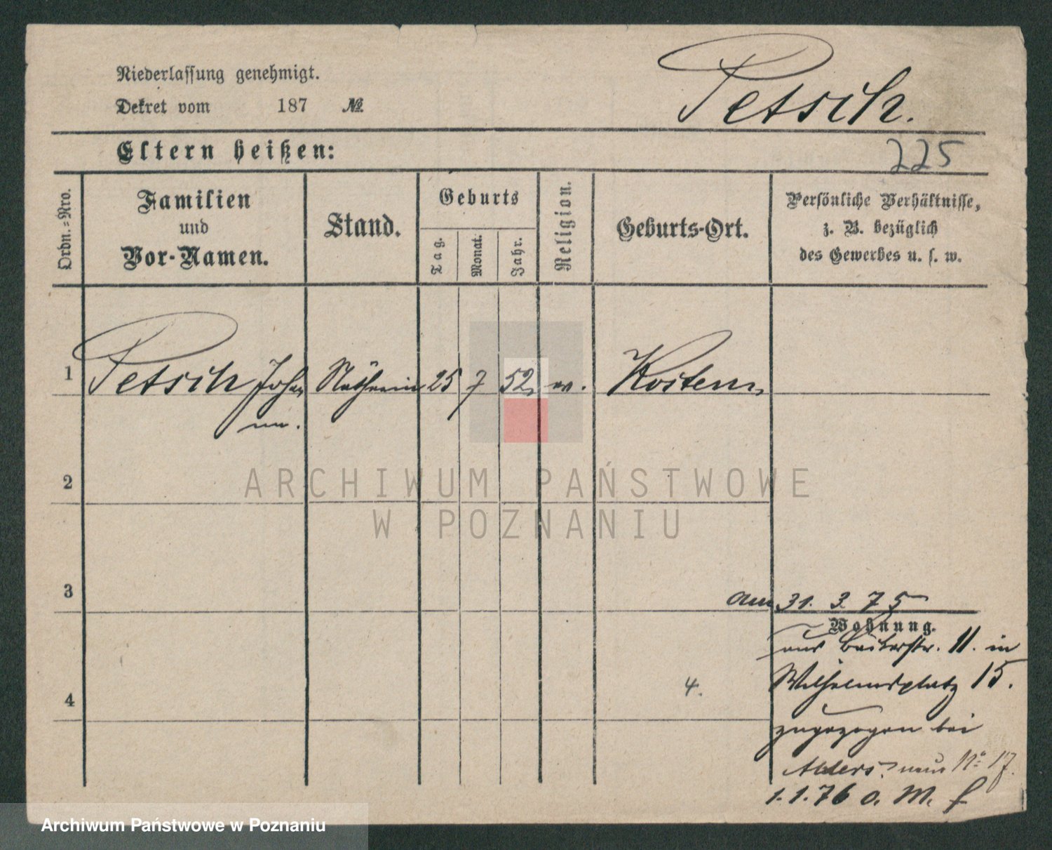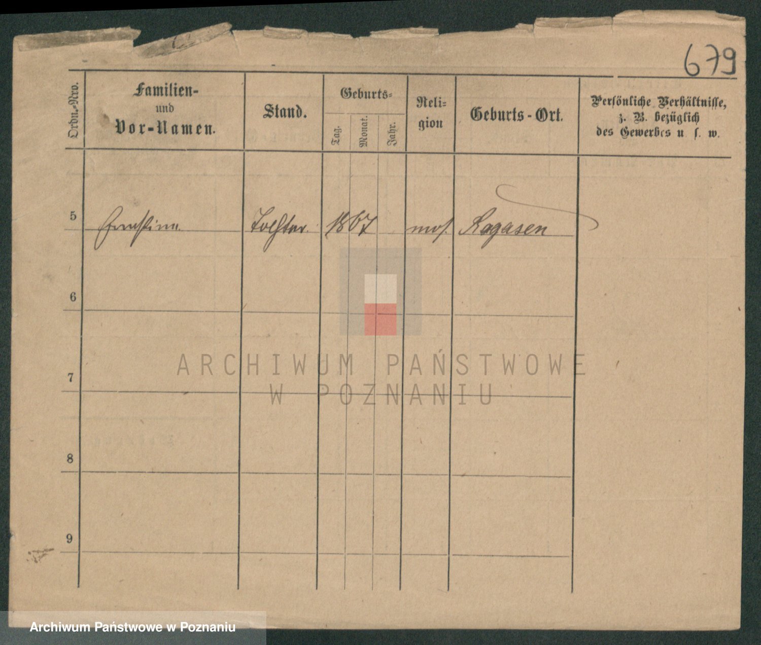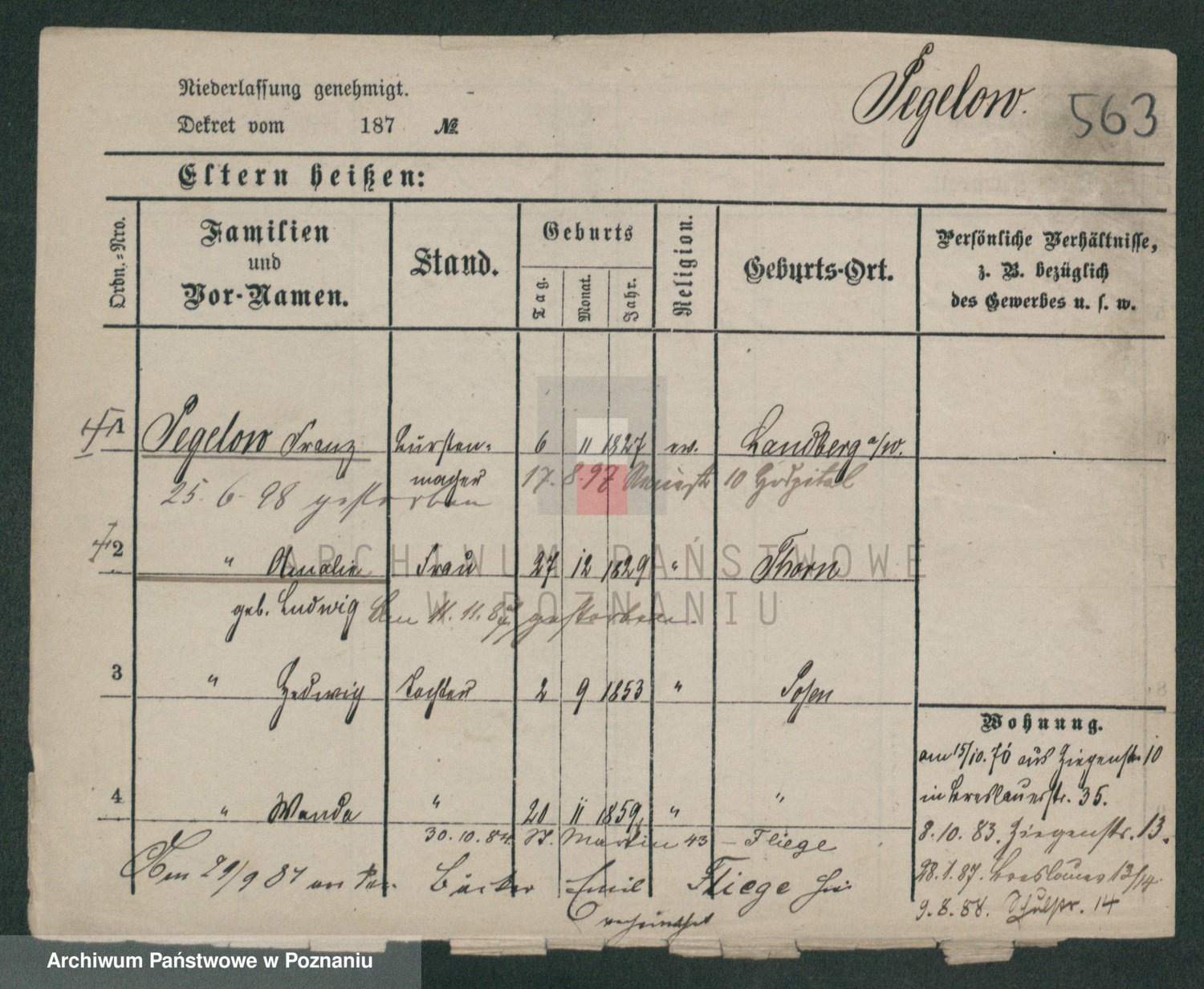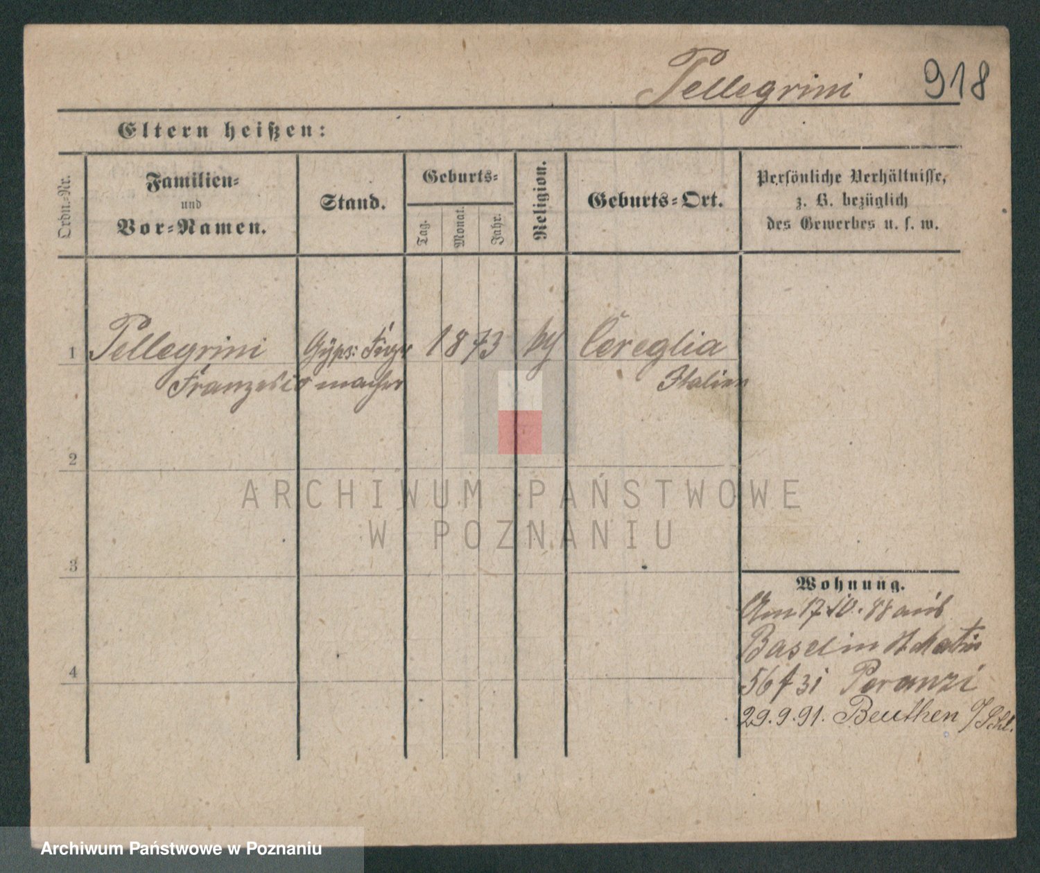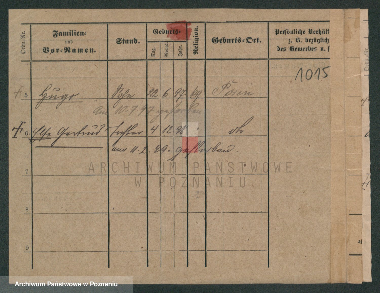 Podgląd karty osobowej dostępny jest po kliknięciu na nazwisko lub ikonkę karty. Można dokonywać powiększenia (ikony na górze) lub przechodzić między kolejnymi skanami (strzałki po bokach).