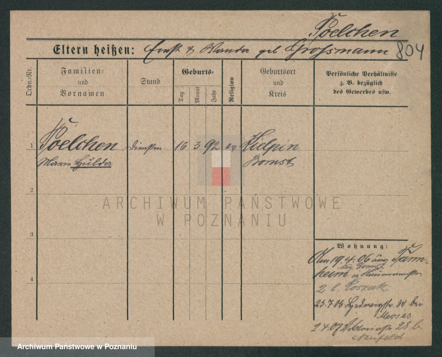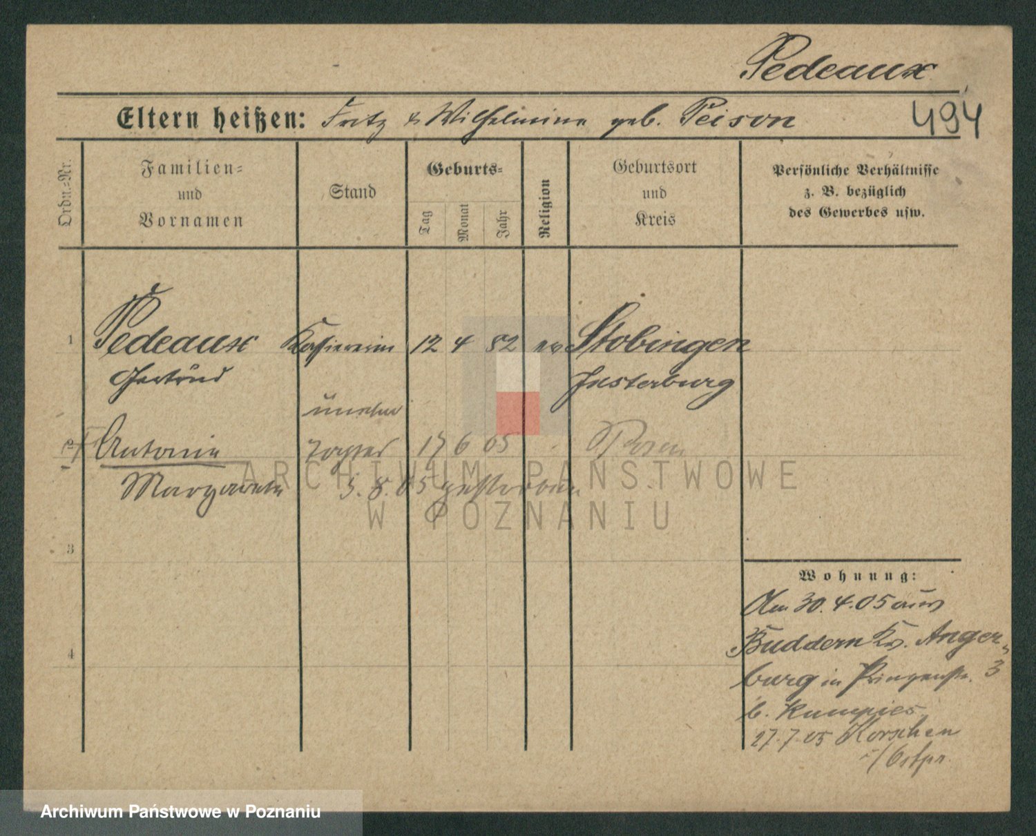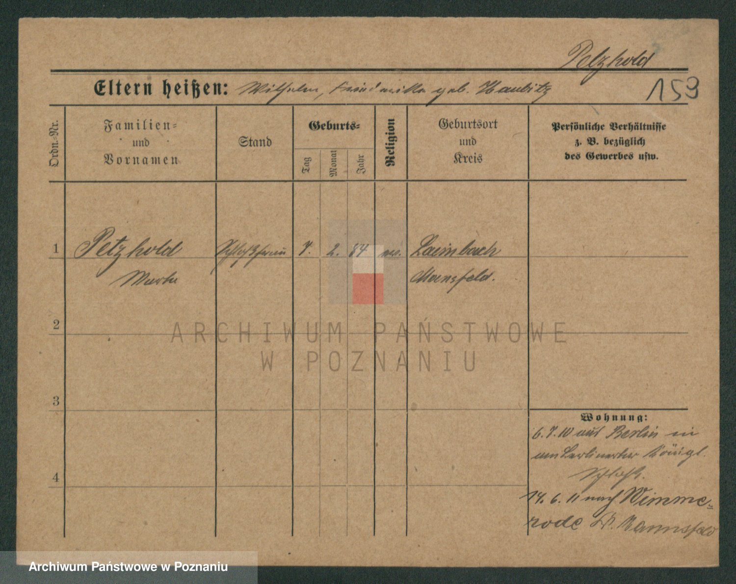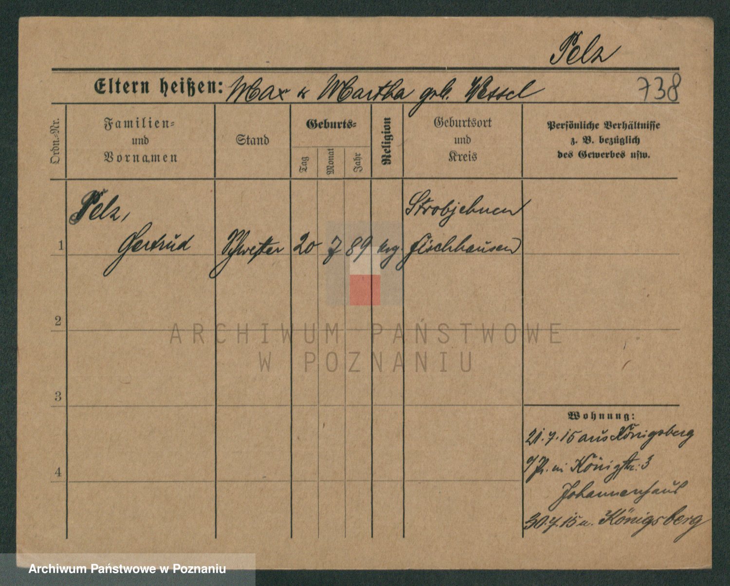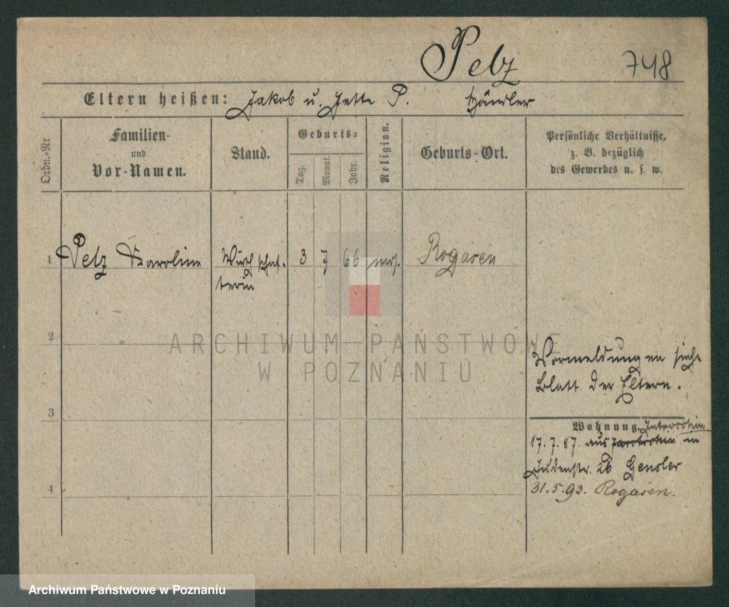 Peltesohn z.d. Casse, Pauline