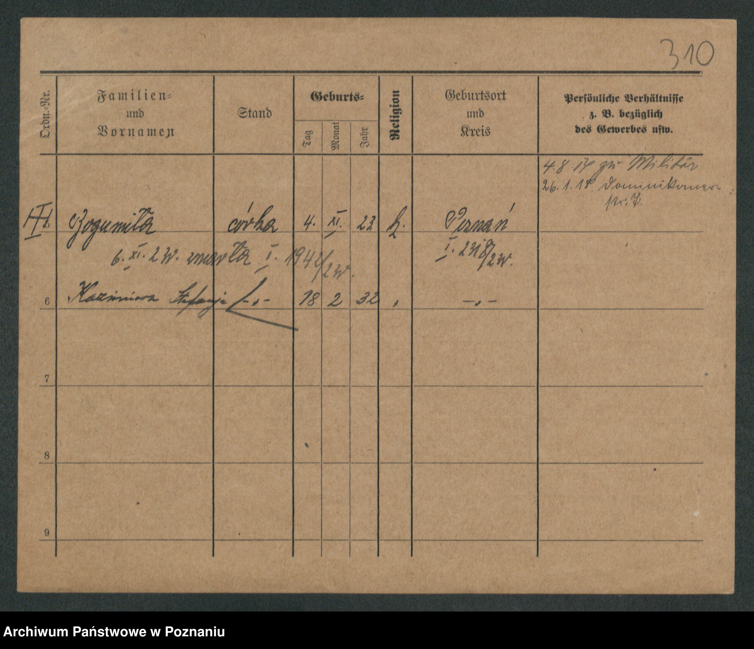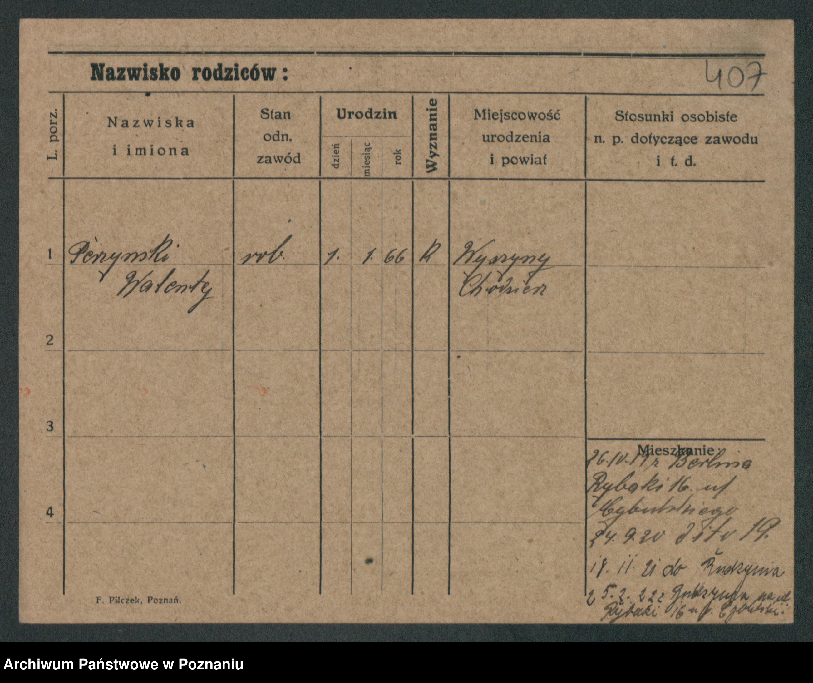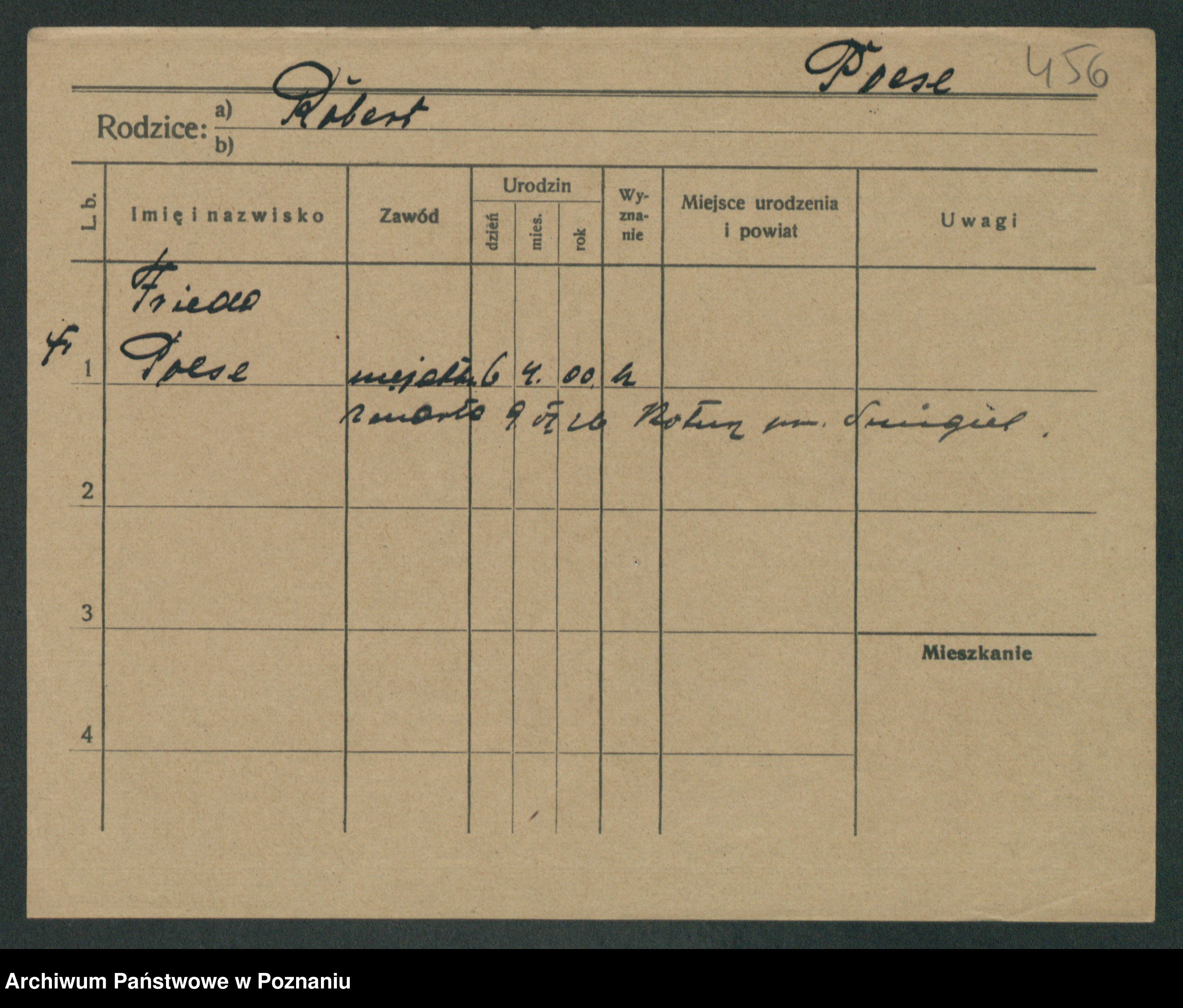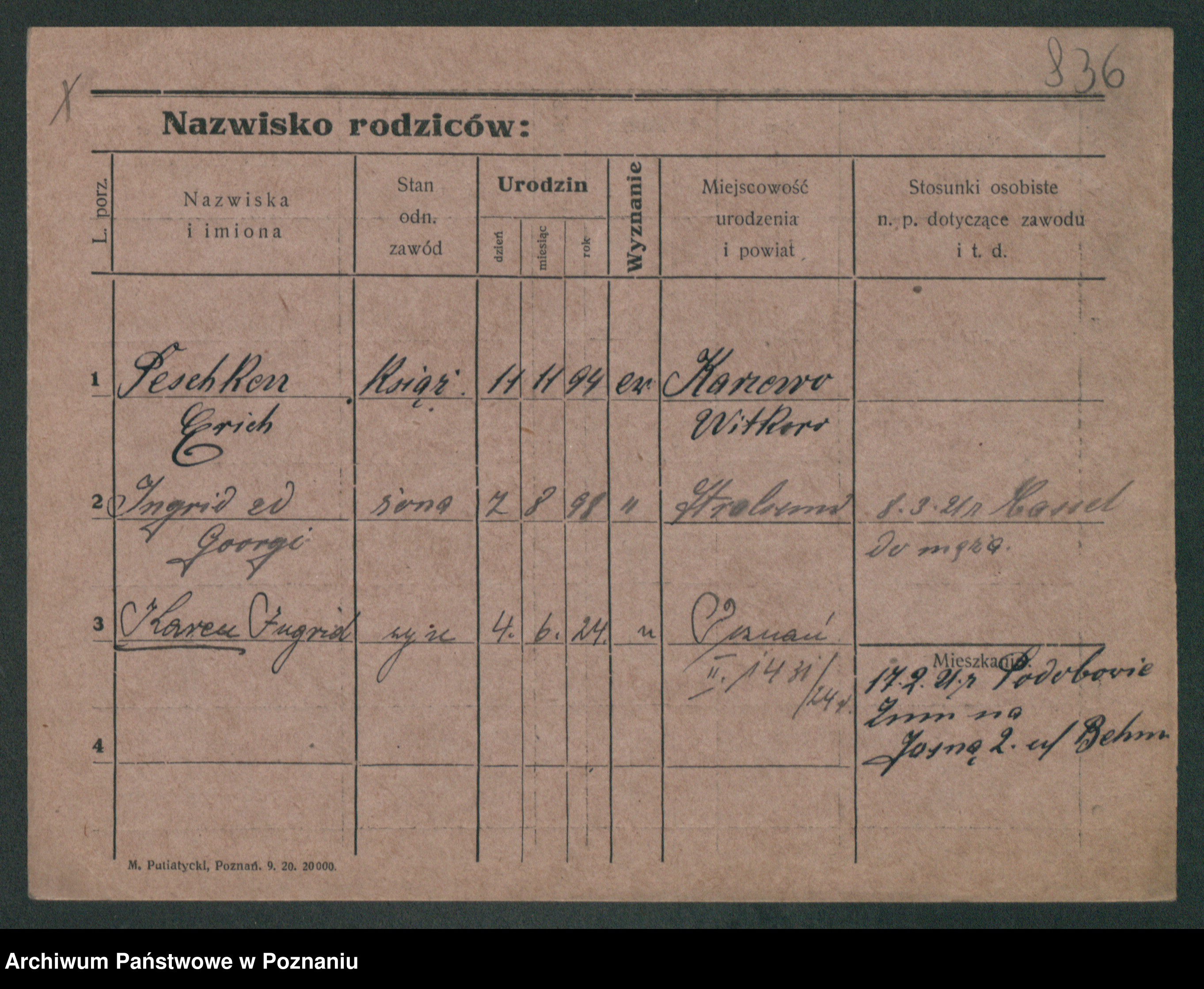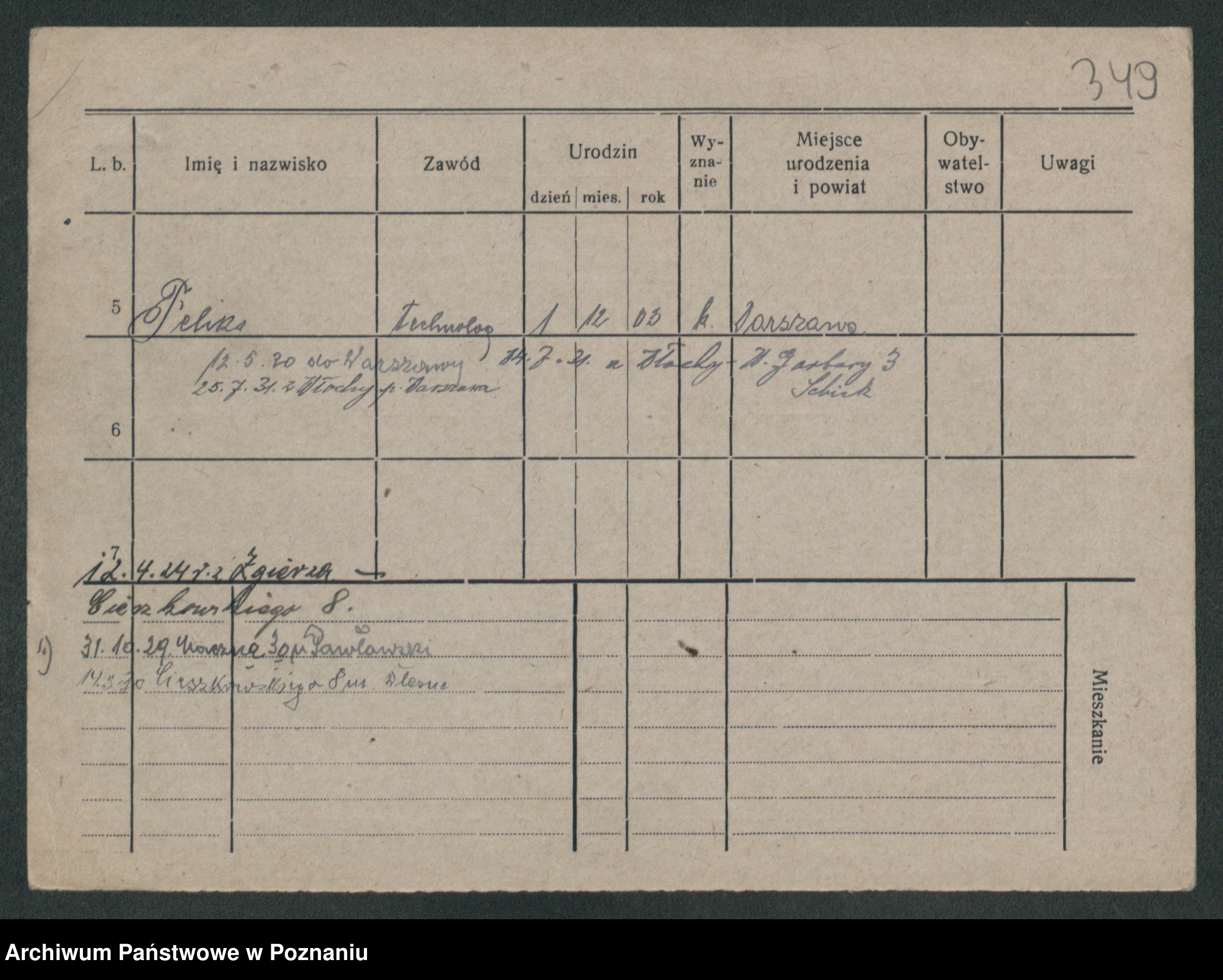 Podgląd karty osobowej dostępny jest po kliknięciu na nazwisko lub ikonkę karty. Można dokonywać powiększenia (ikony na górze) lub przechodzić między kolejnymi skanami (strzałki po bokach).