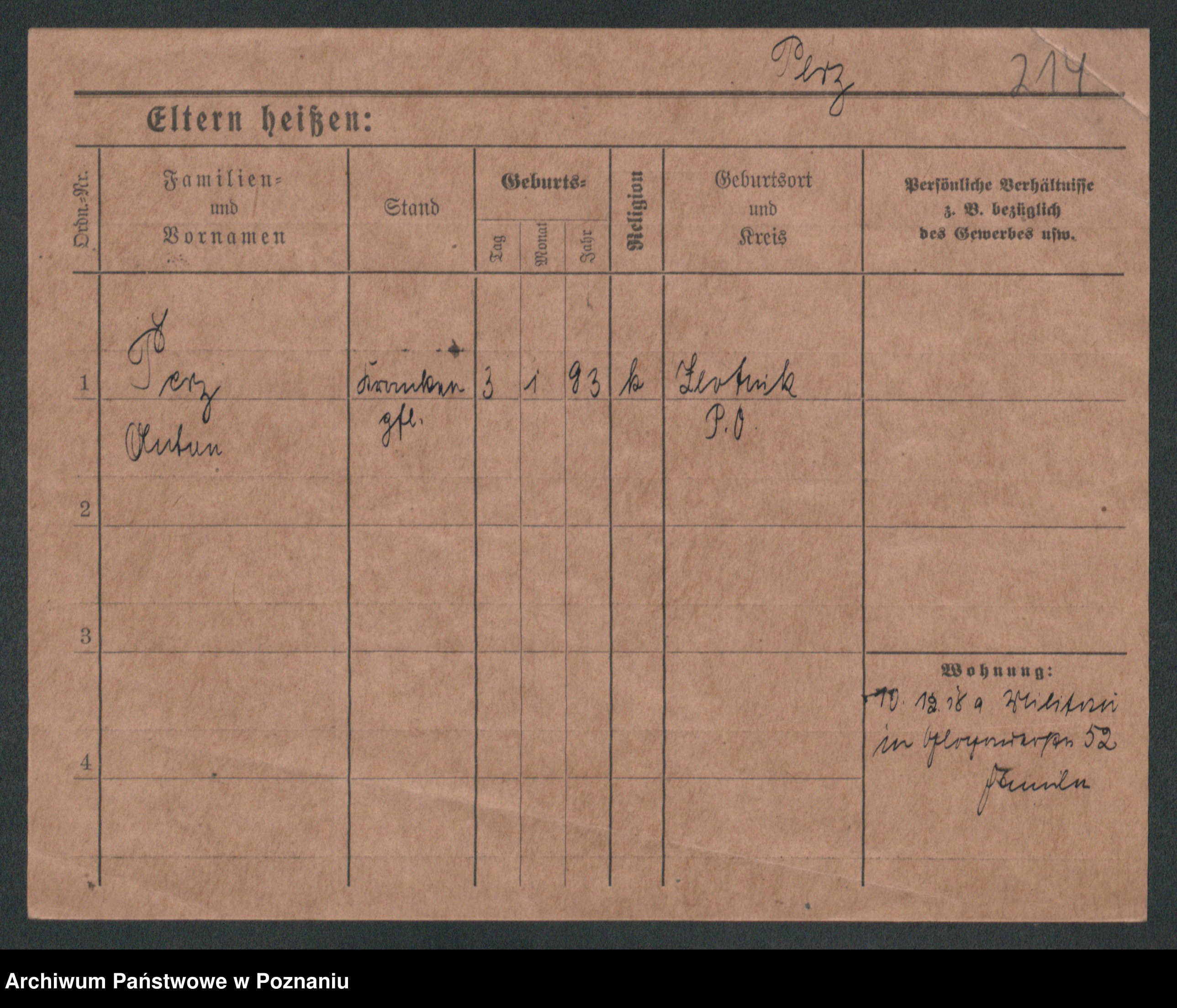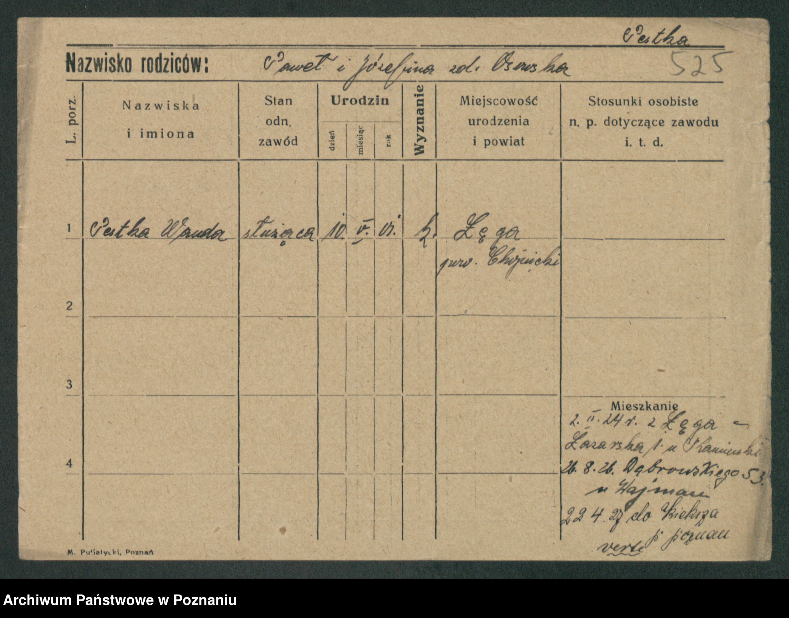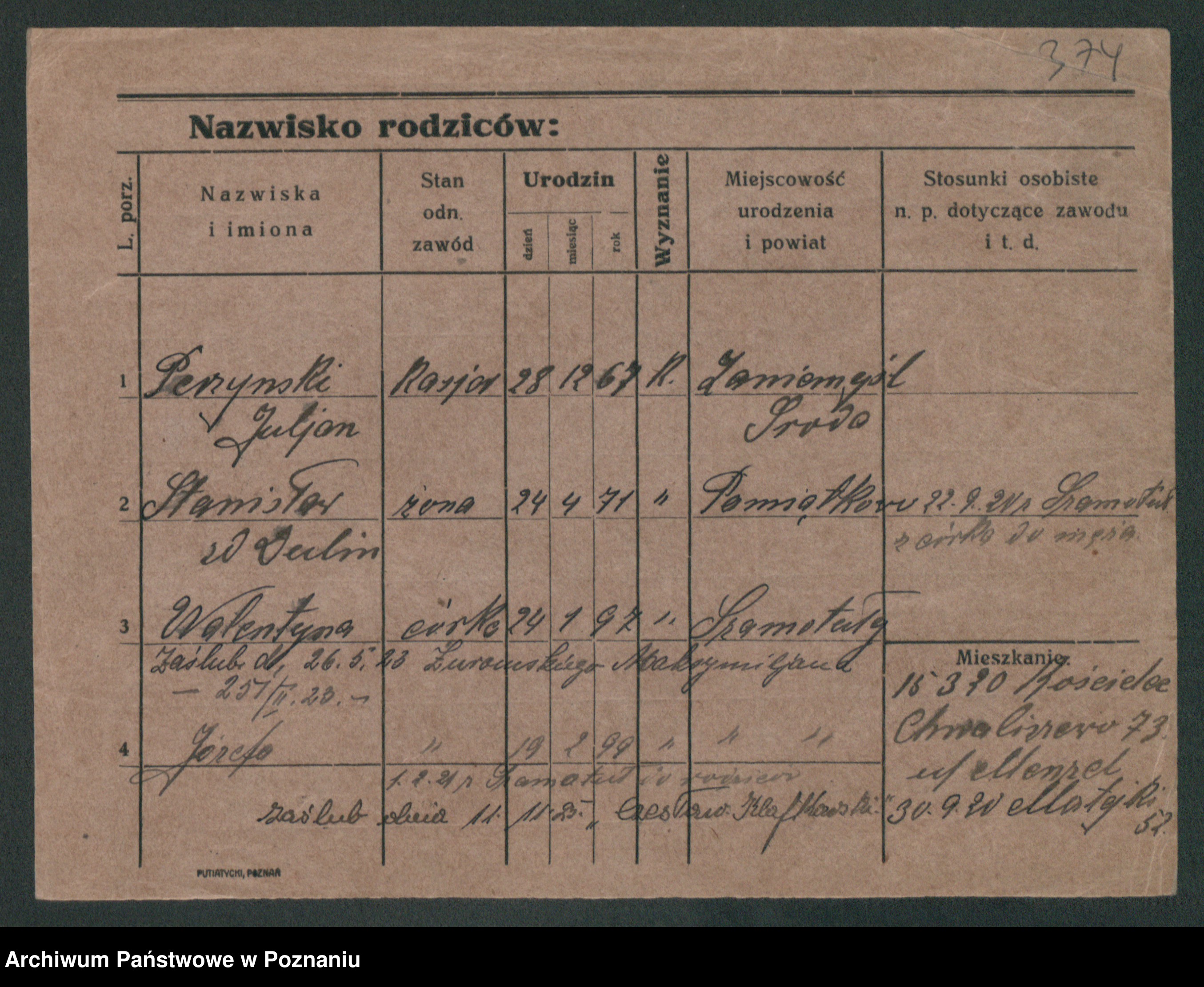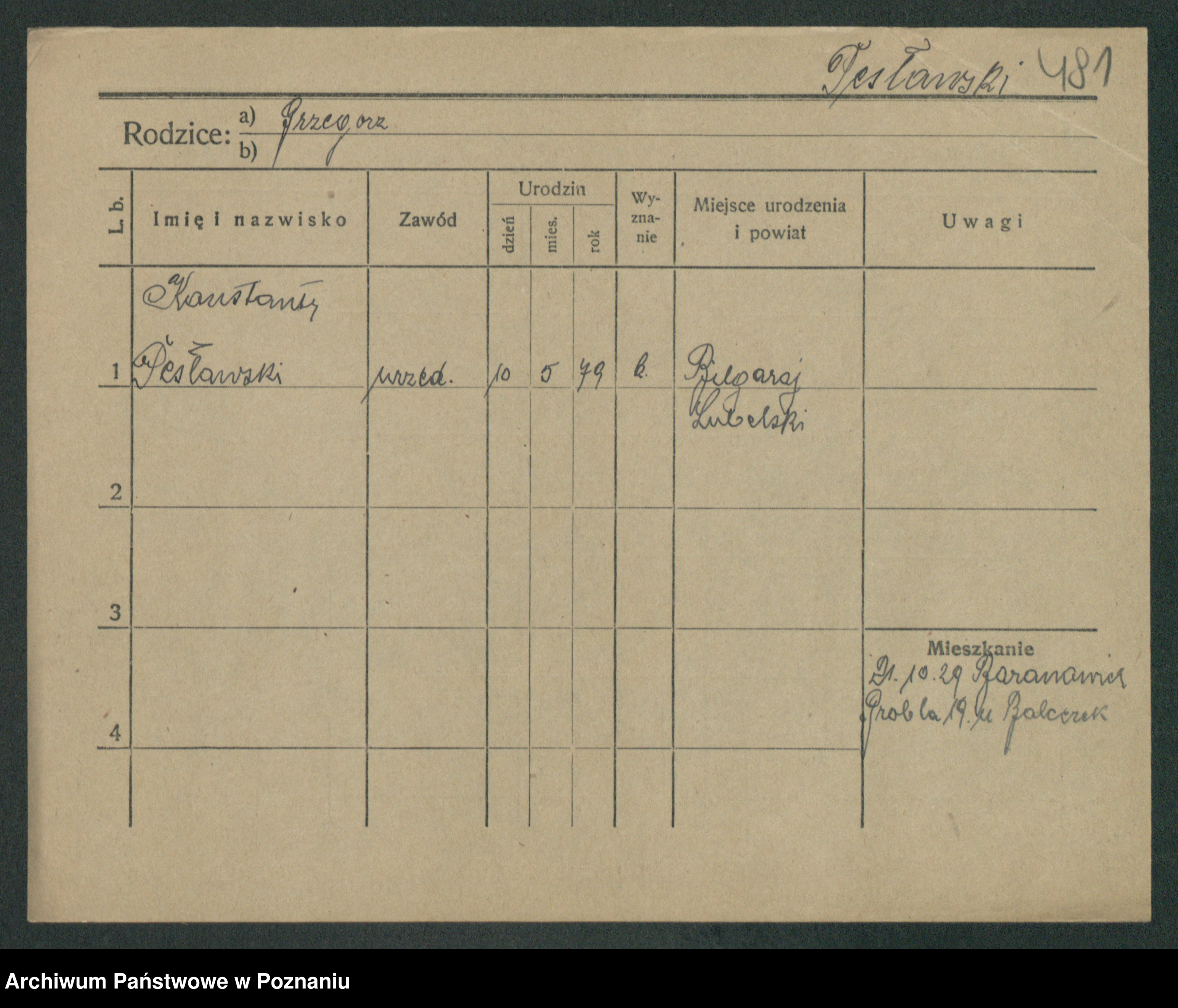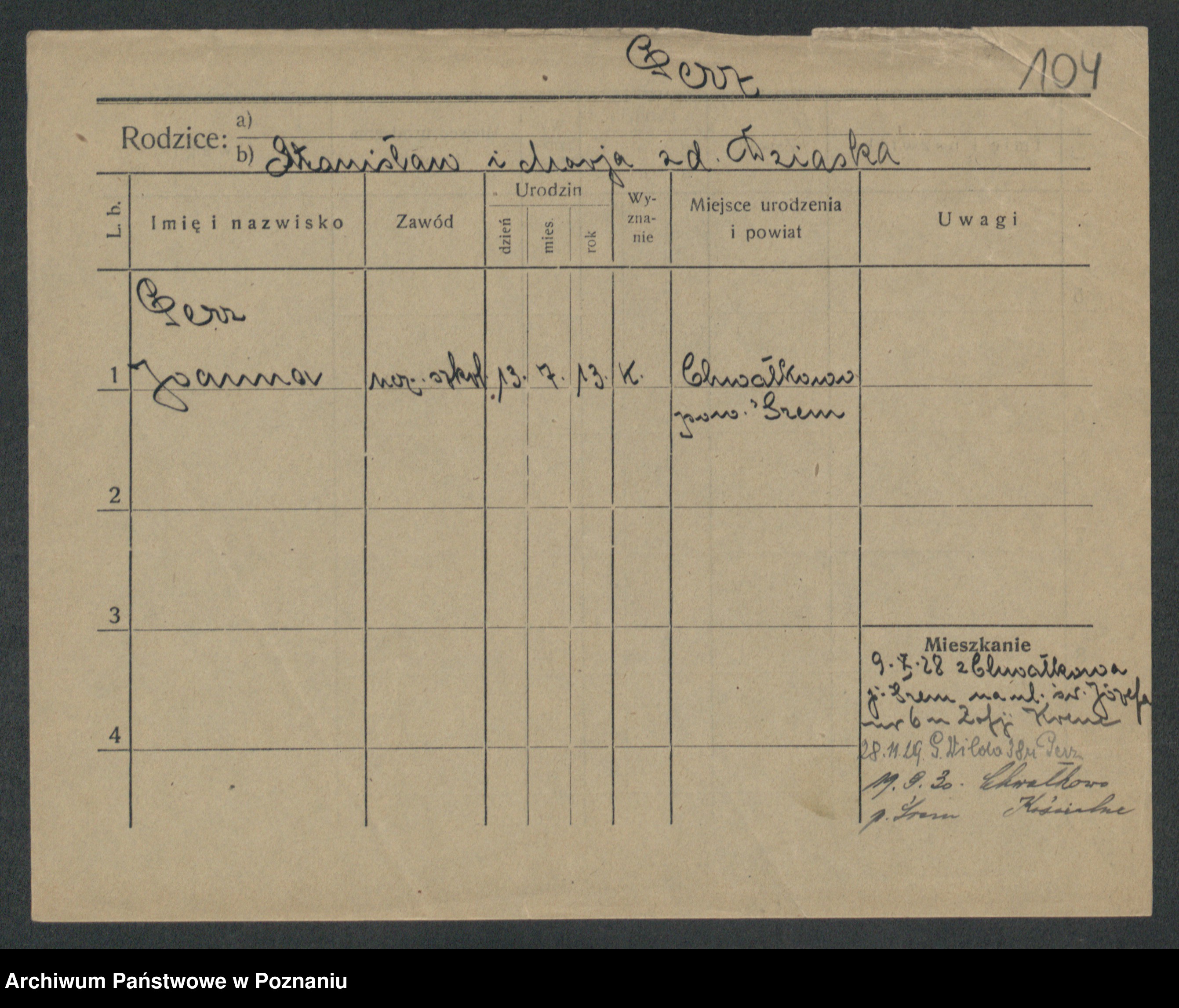 Podgląd karty osobowej dostępny jest po kliknięciu na nazwisko lub ikonkę karty. Można dokonywać powiększenia (ikony na górze) lub przechodzić między kolejnymi skanami (strzałki po bokach).
