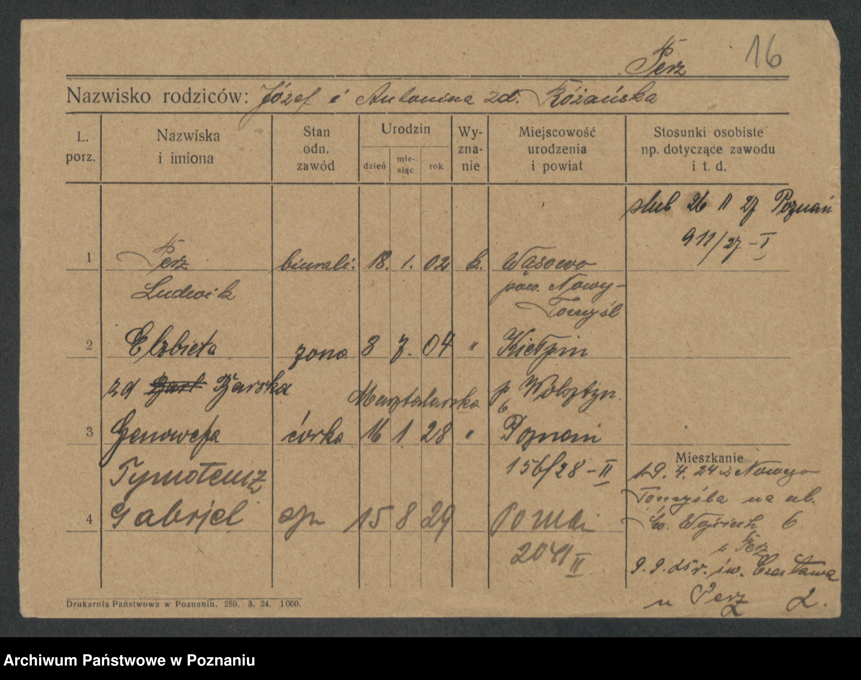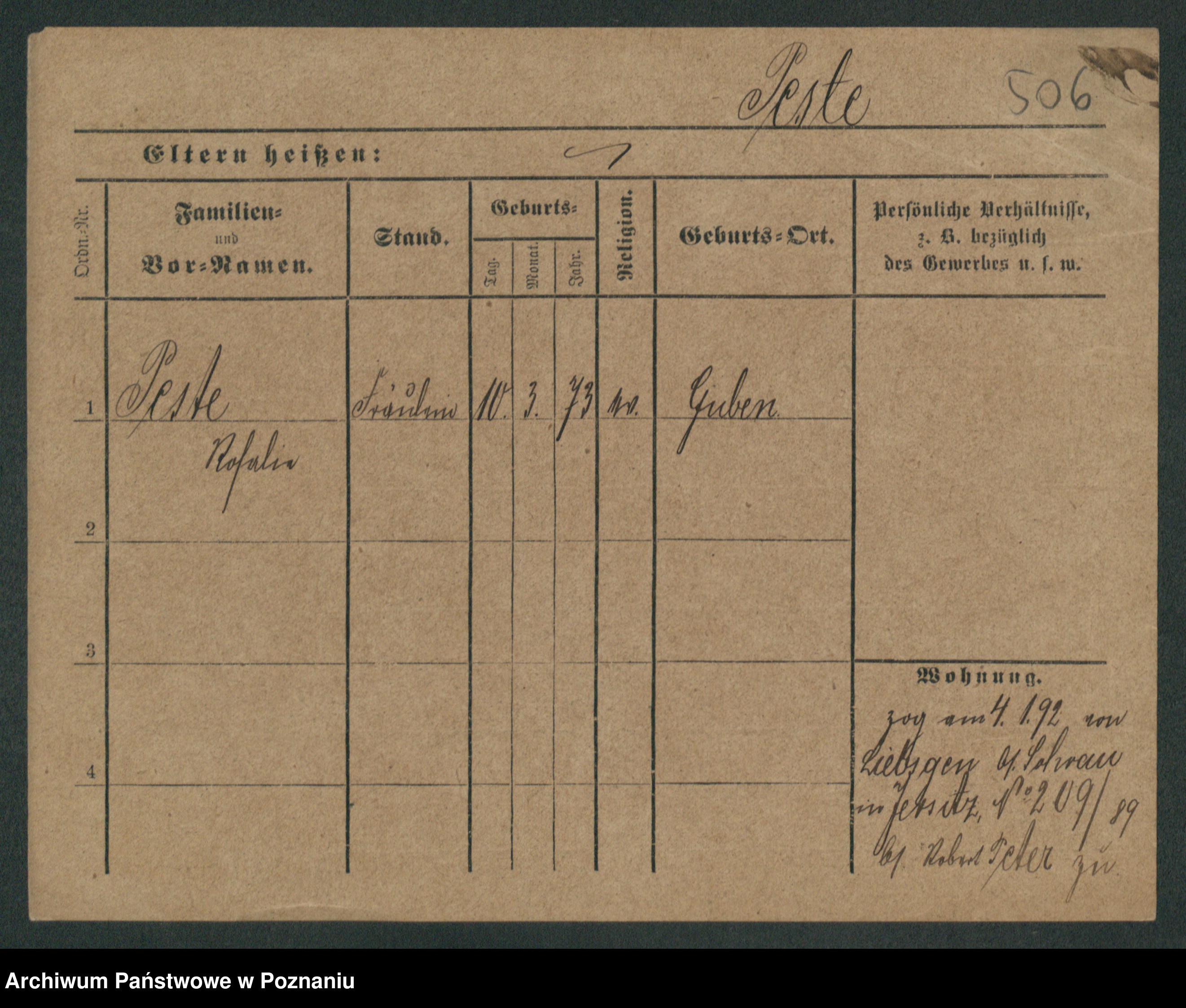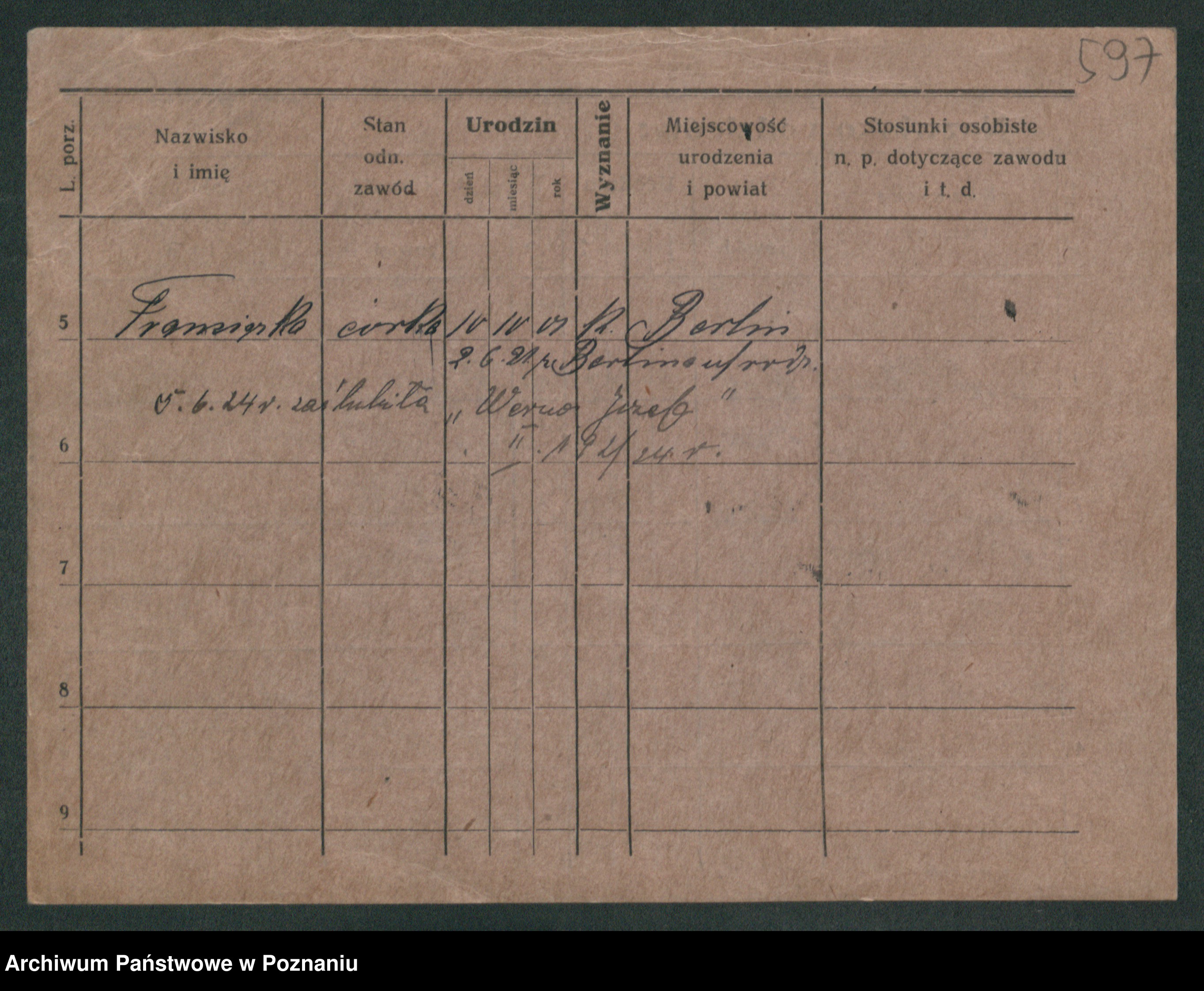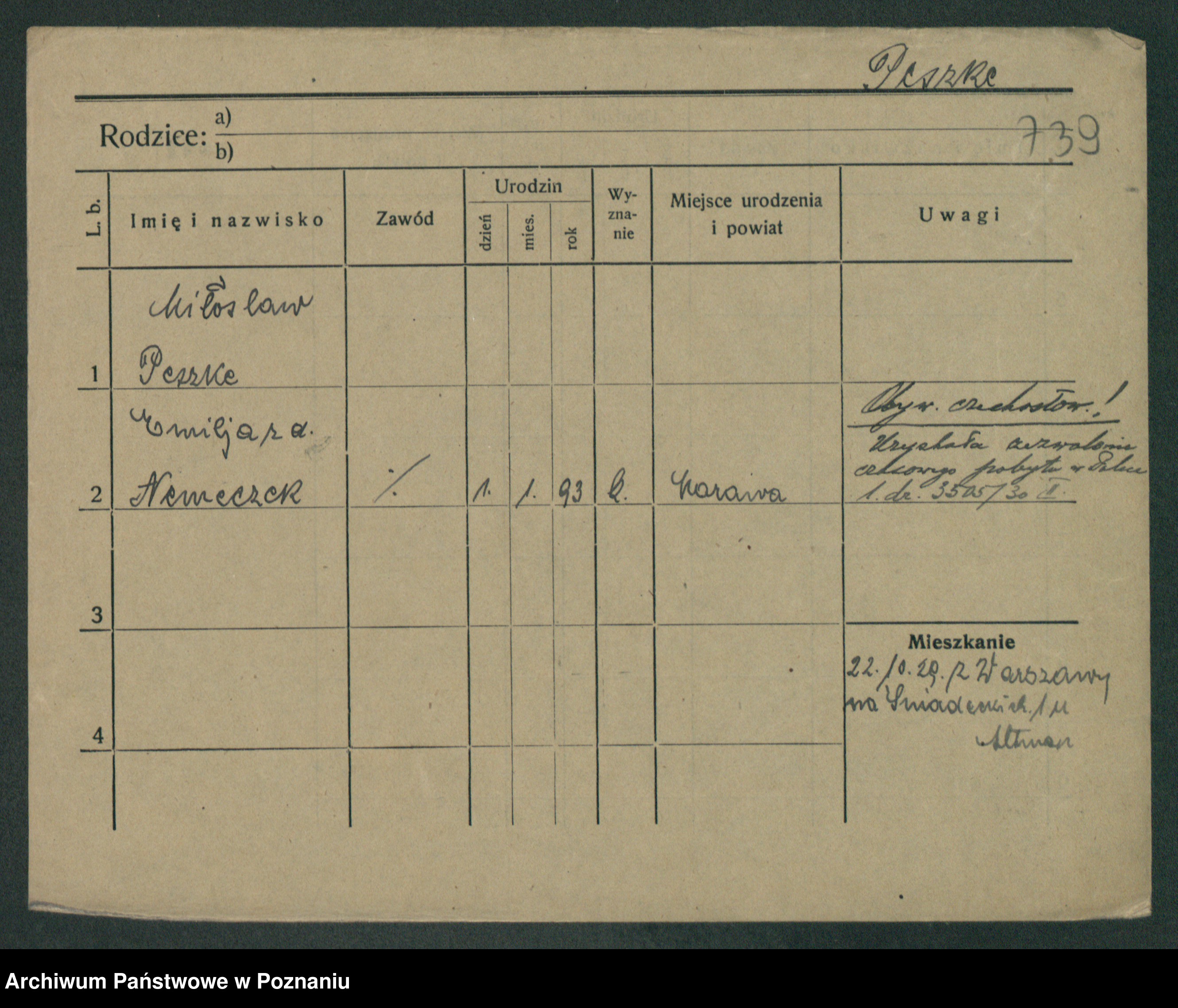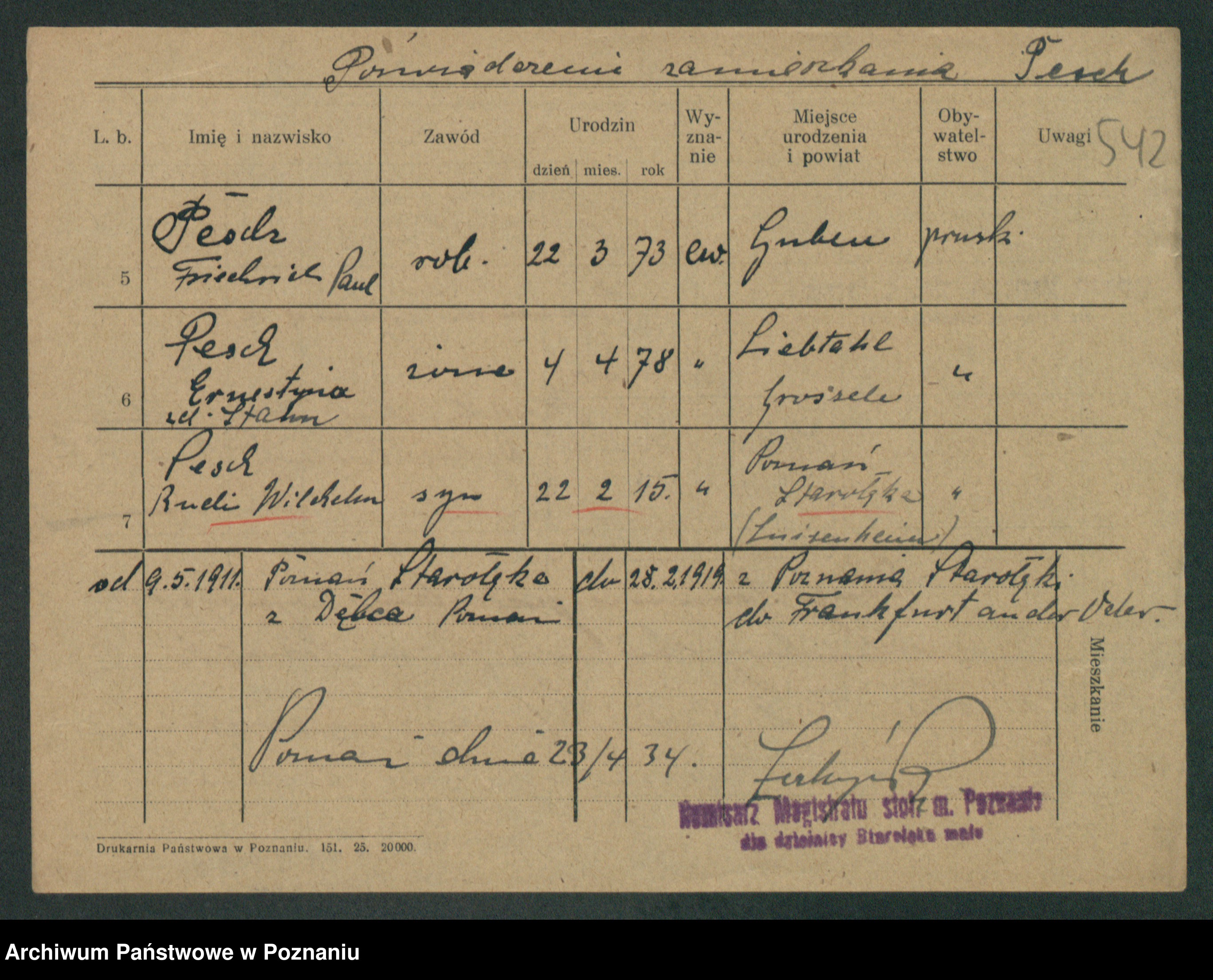 Podgląd karty osobowej dostępny jest po kliknięciu na nazwisko lub ikonkę karty. Można dokonywać powiększenia (ikony na górze) lub przechodzić między kolejnymi skanami (strzałki po bokach).