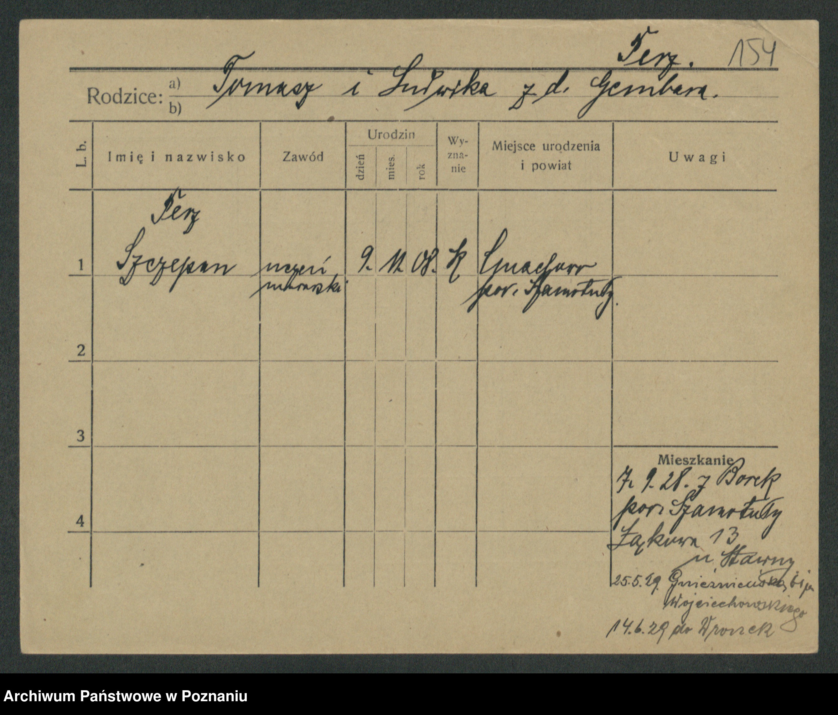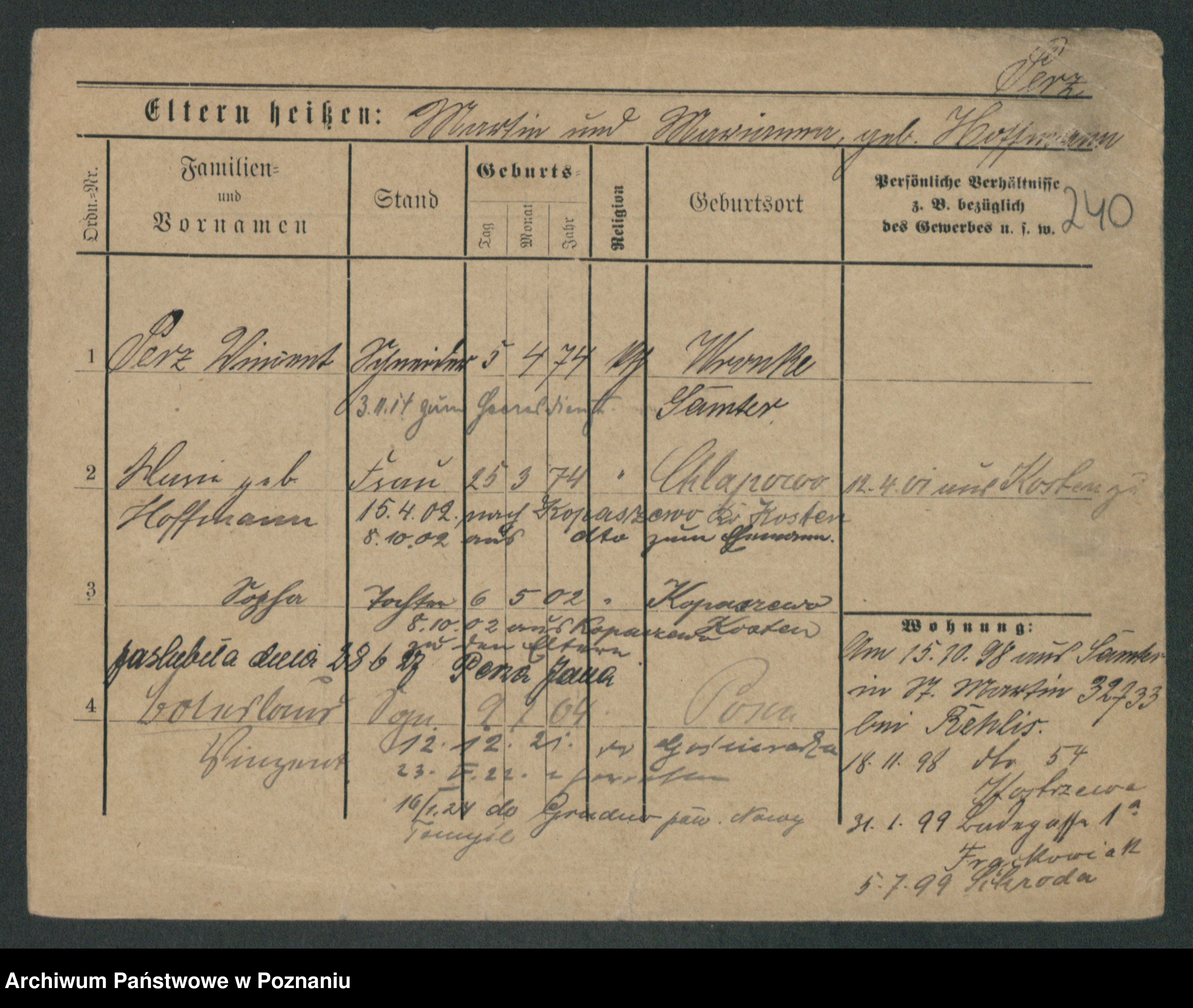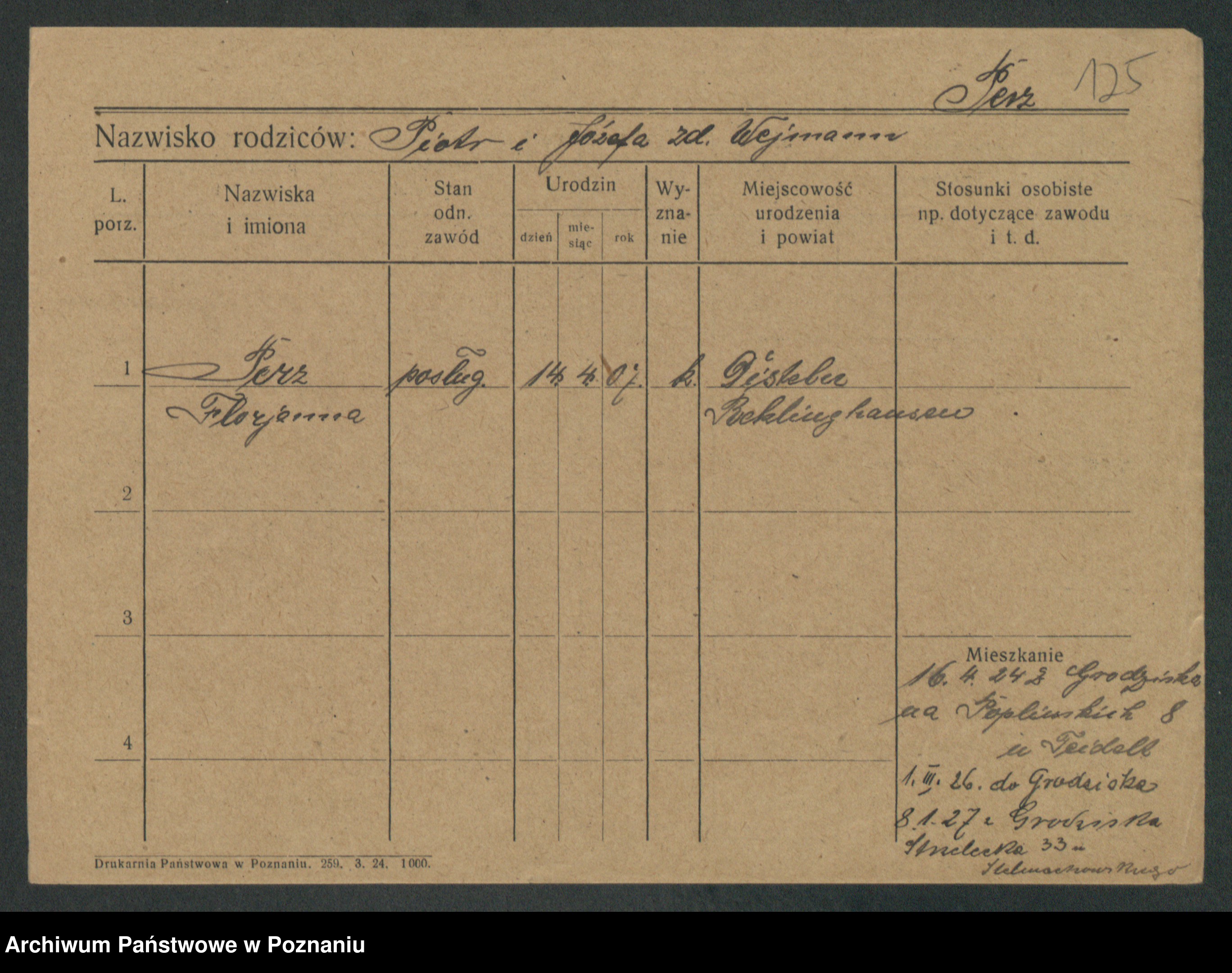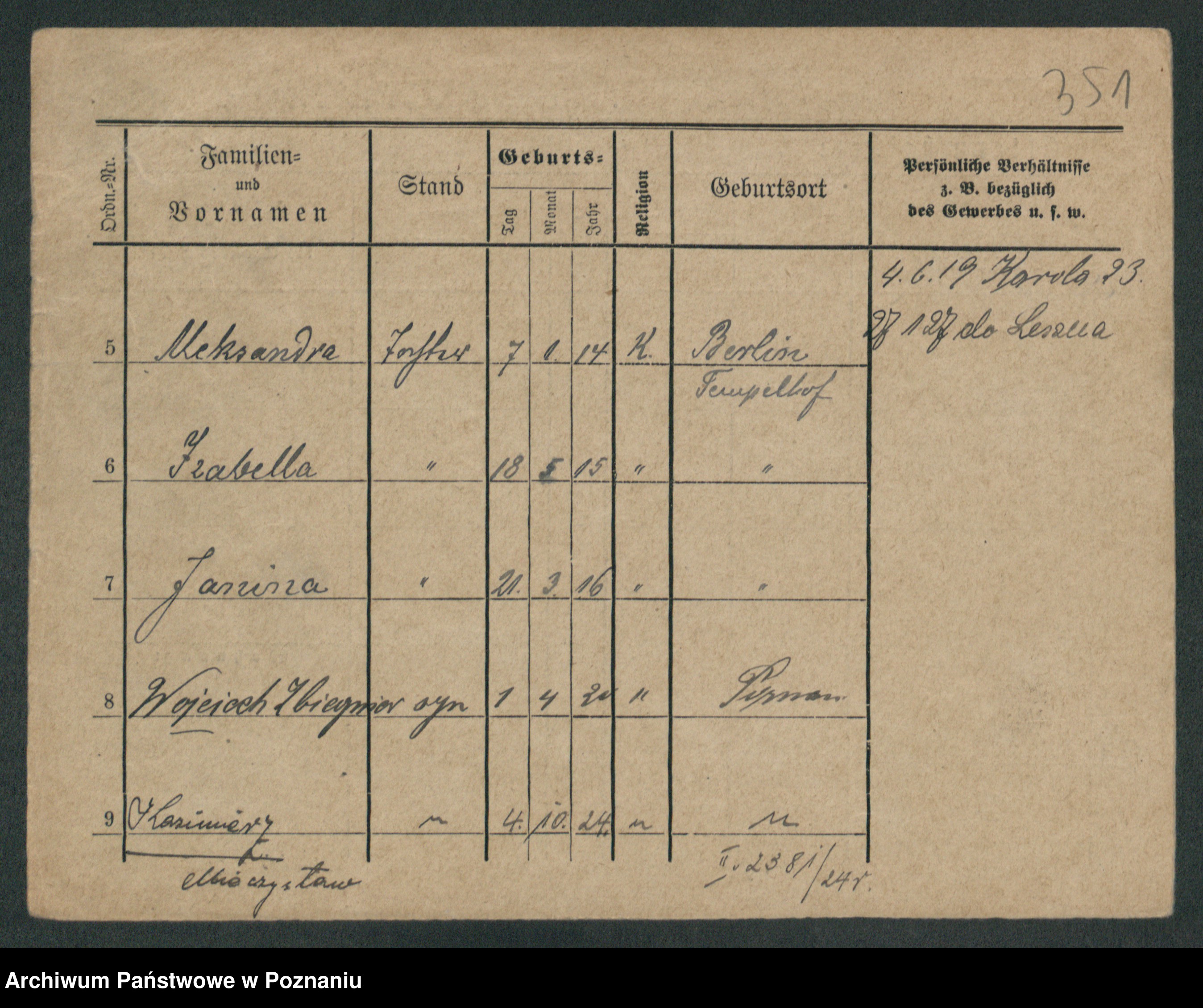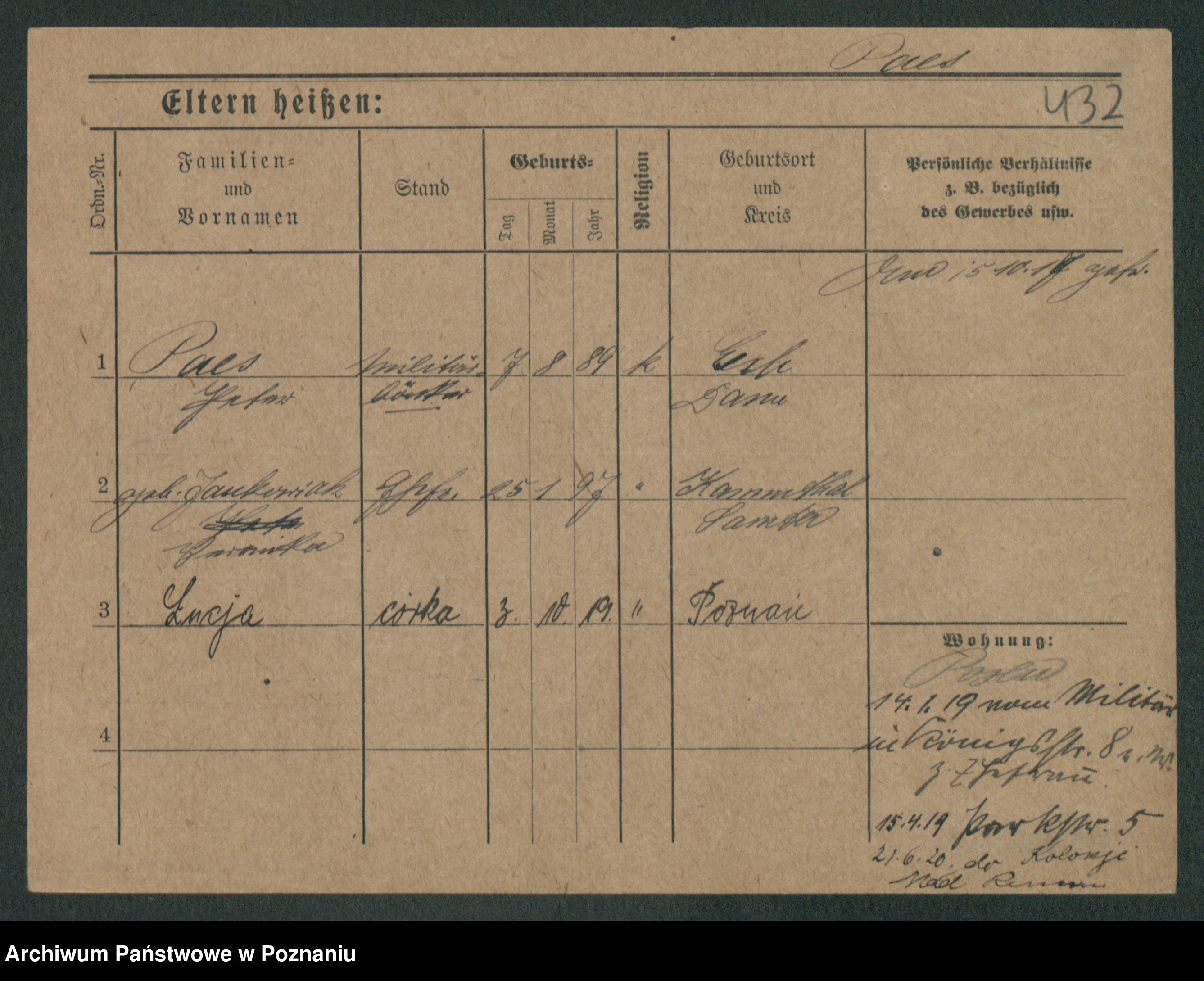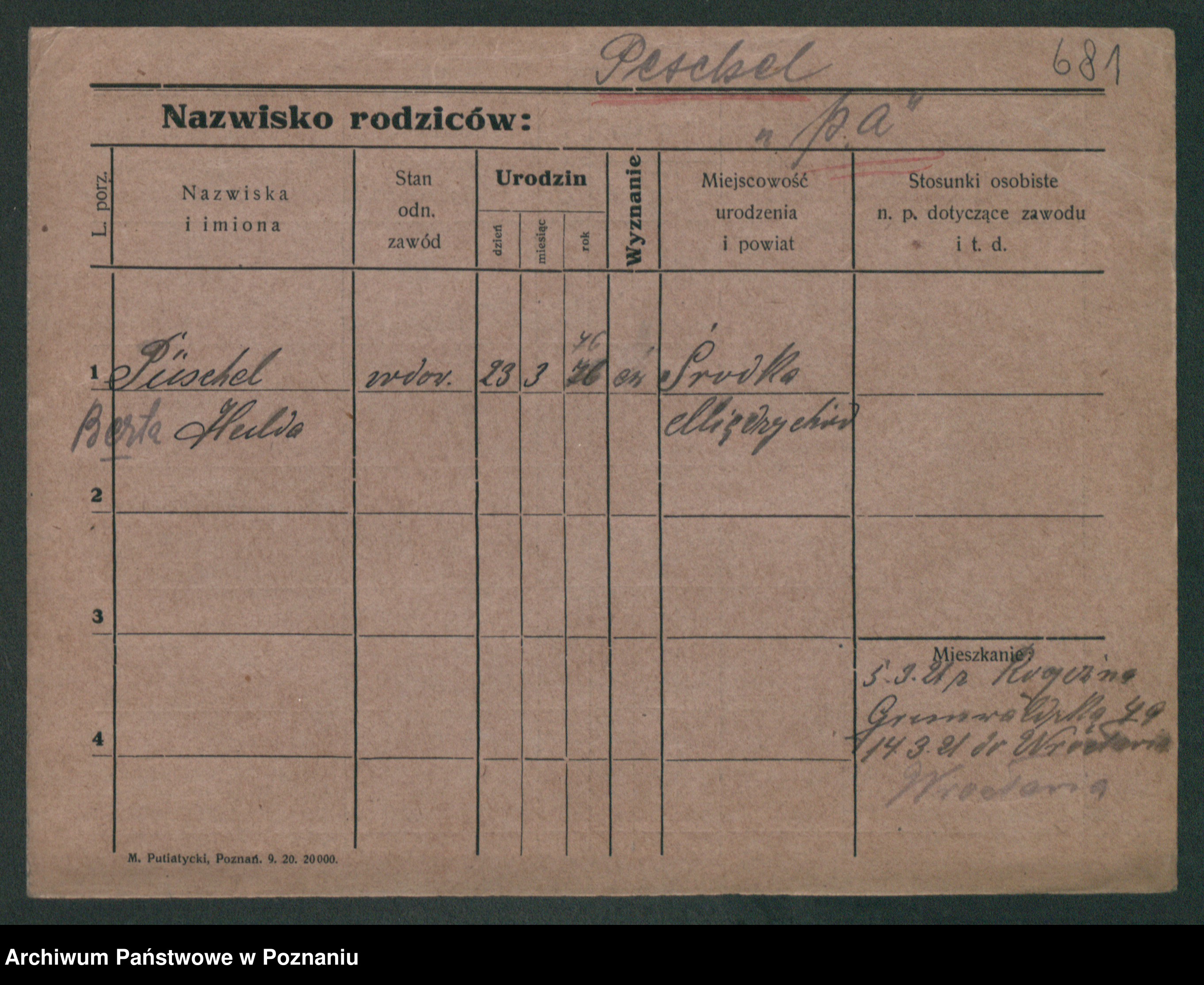 Podgląd karty osobowej dostępny jest po kliknięciu na nazwisko lub ikonkę karty. Można dokonywać powiększenia (ikony na górze) lub przechodzić między kolejnymi skanami (strzałki po bokach).