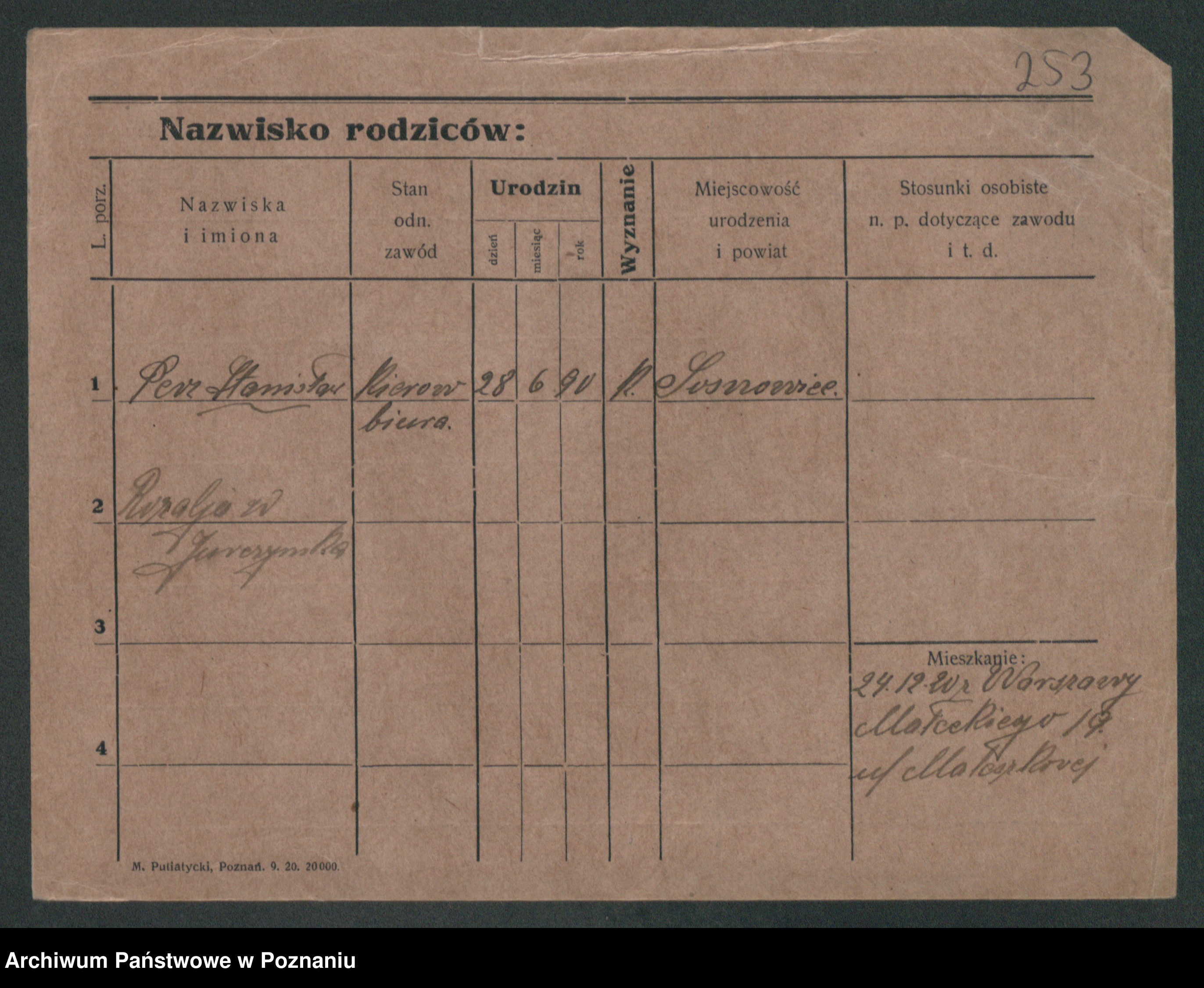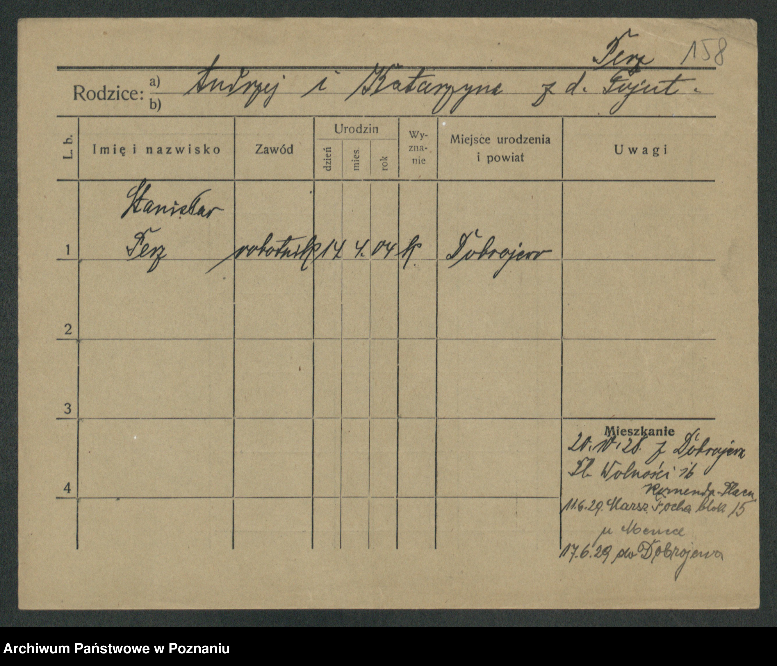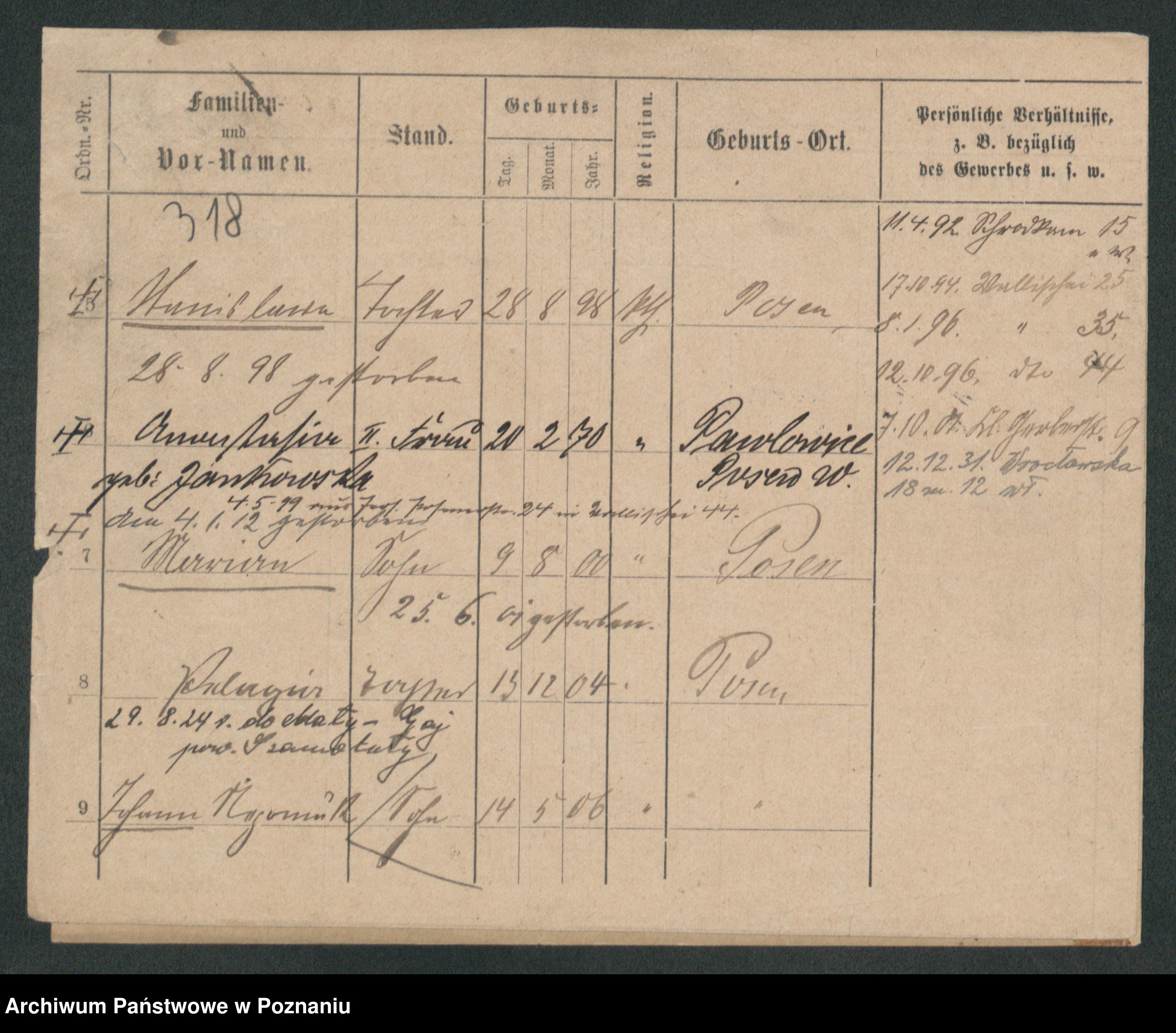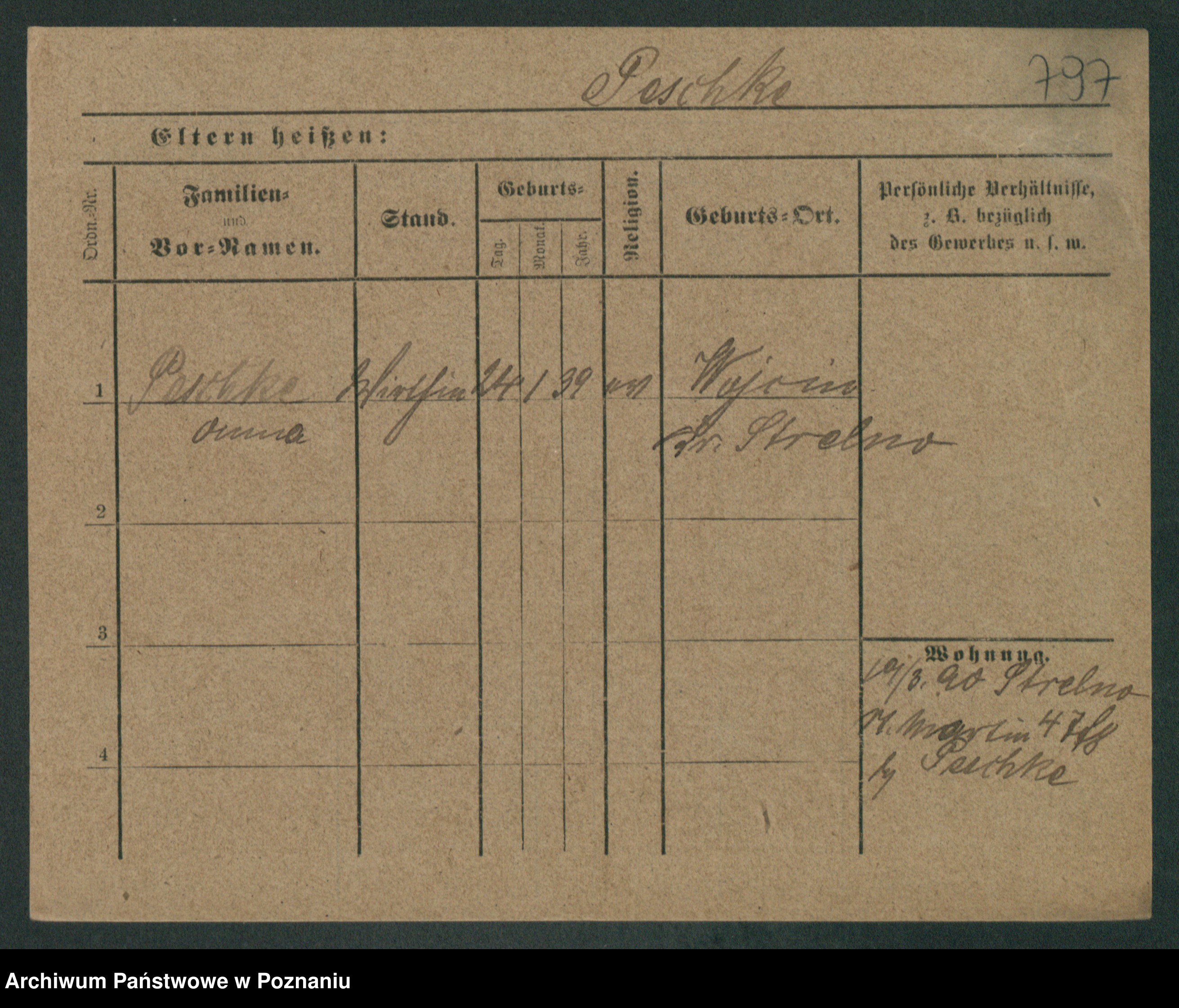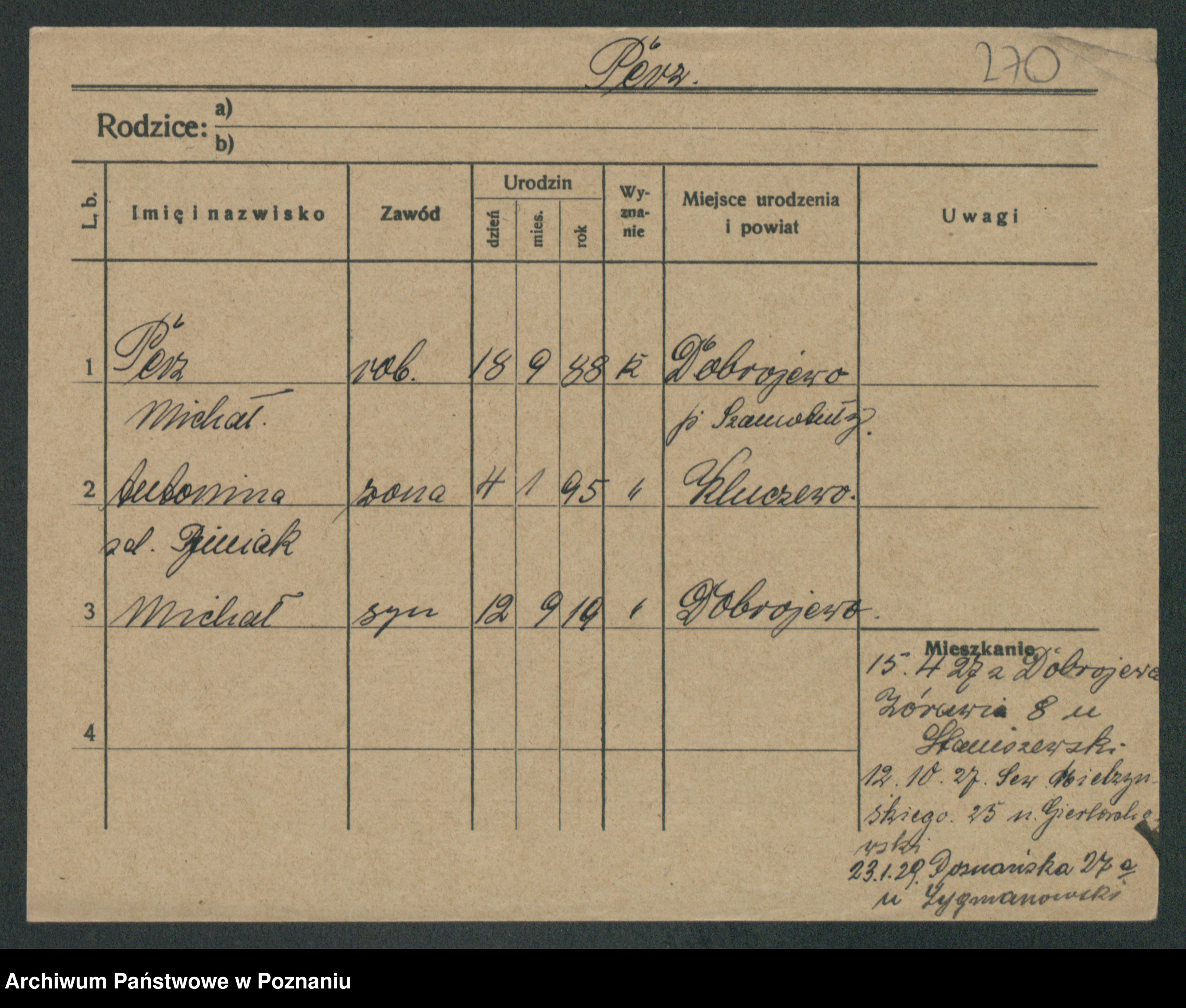 Podgląd karty osobowej dostępny jest po kliknięciu na nazwisko lub ikonkę karty. Można dokonywać powiększenia (ikony na górze) lub przechodzić między kolejnymi skanami (strzałki po bokach).