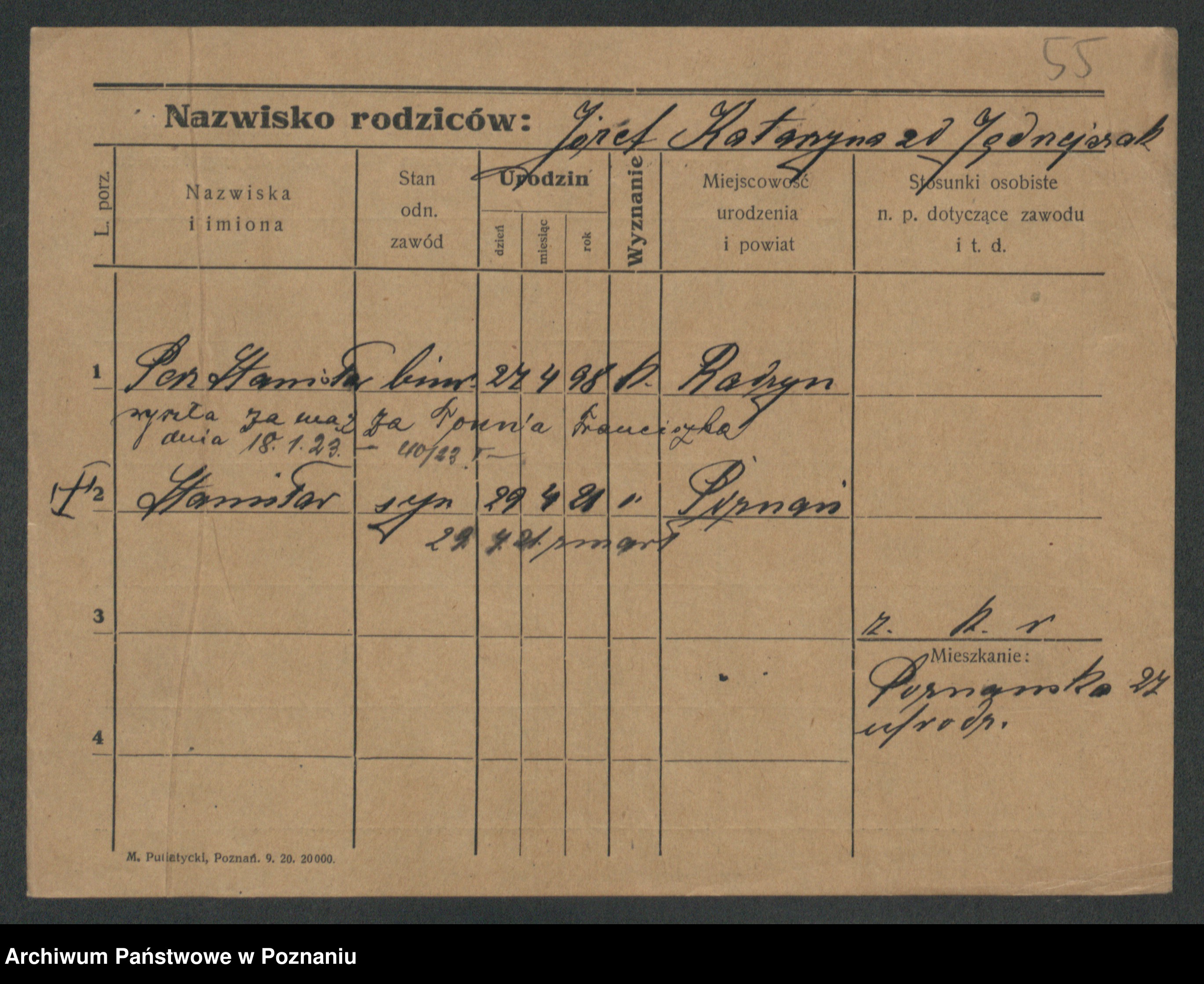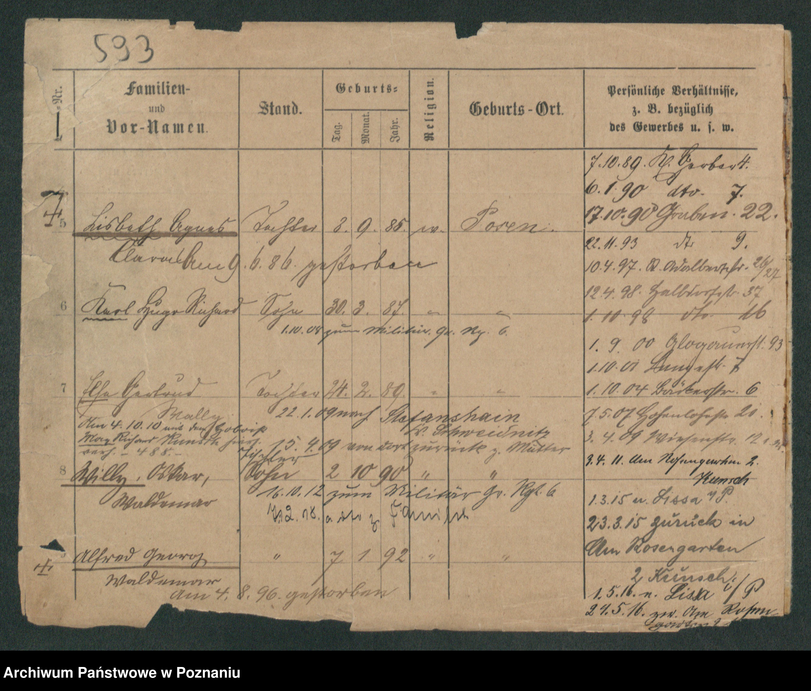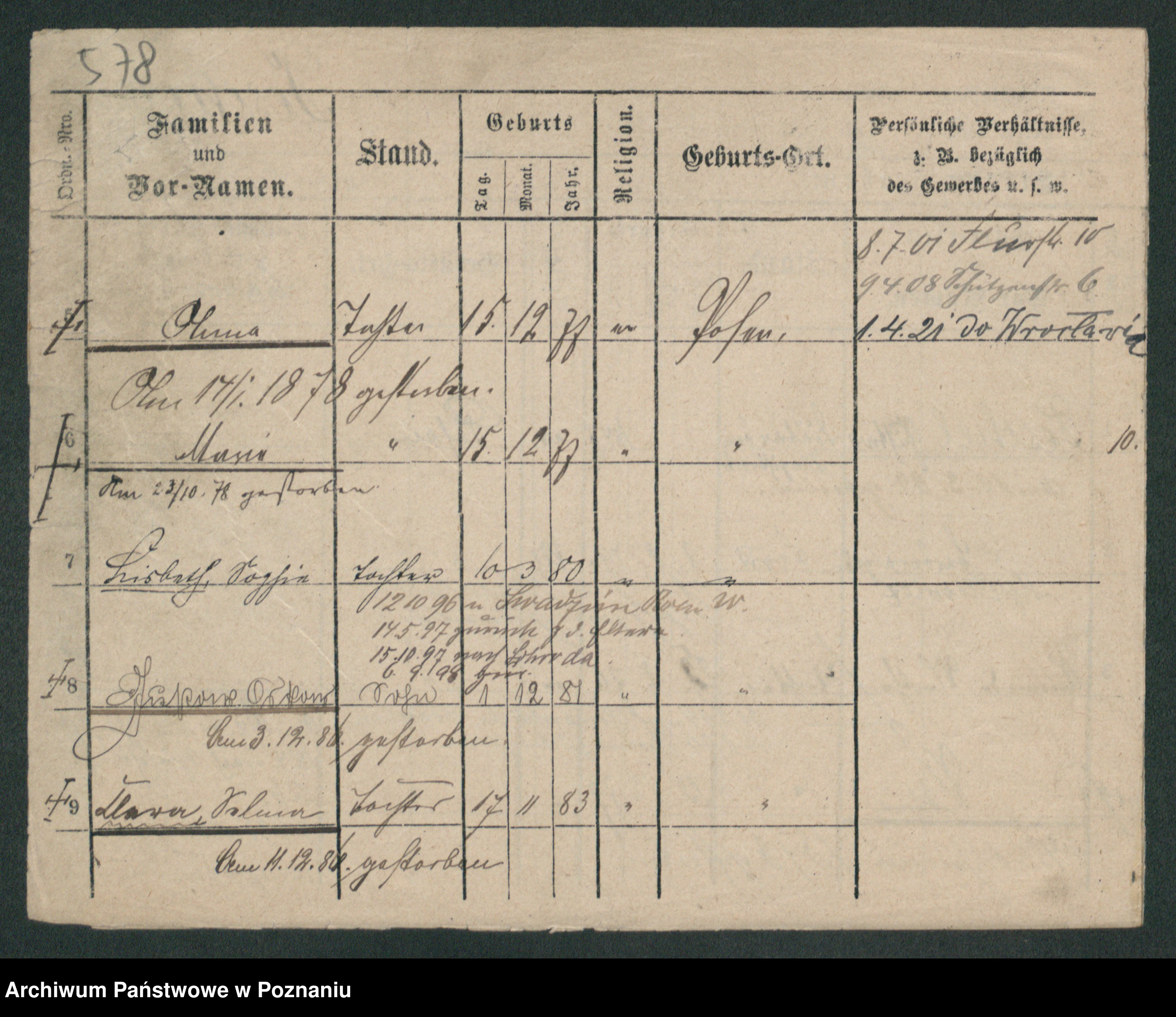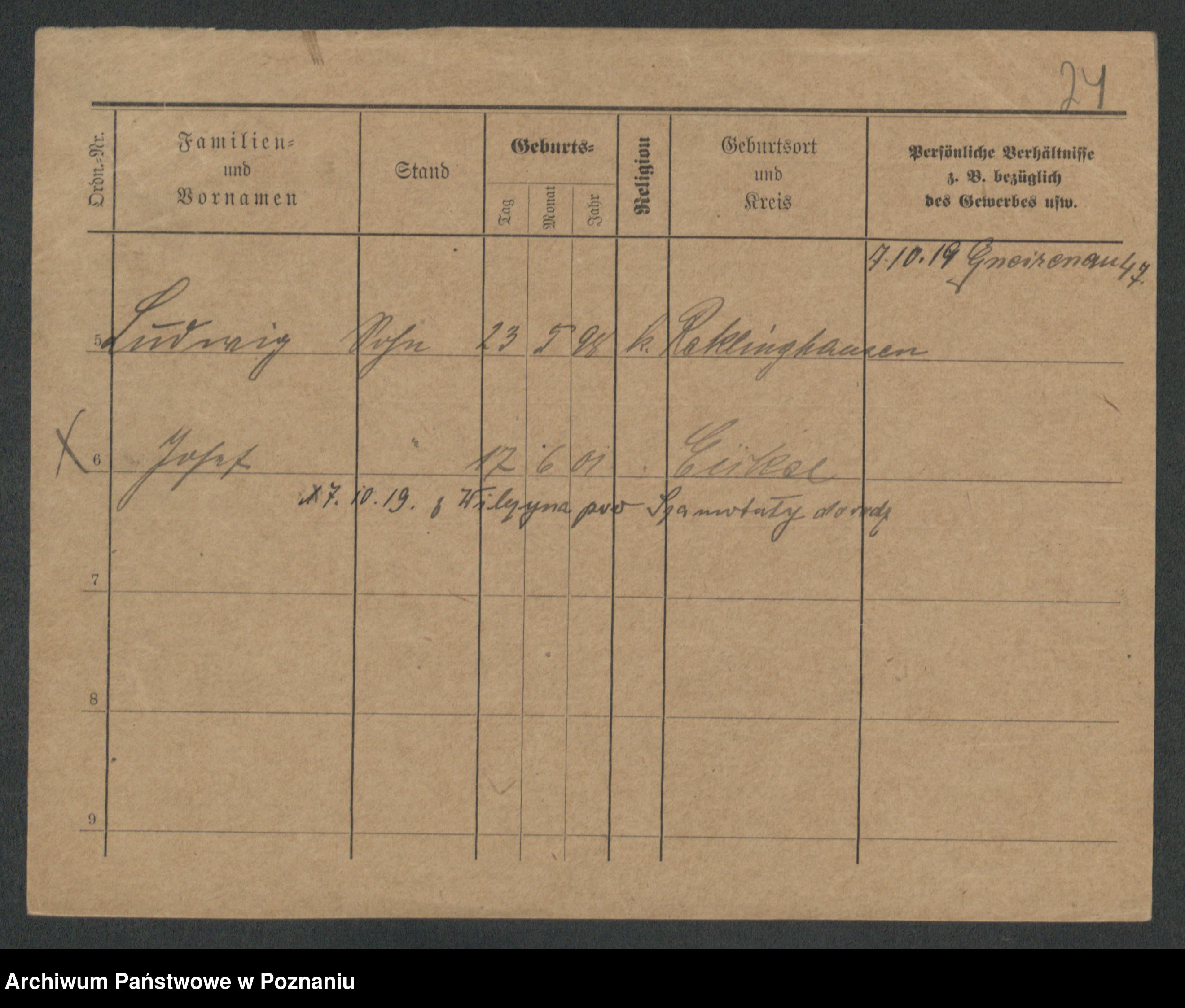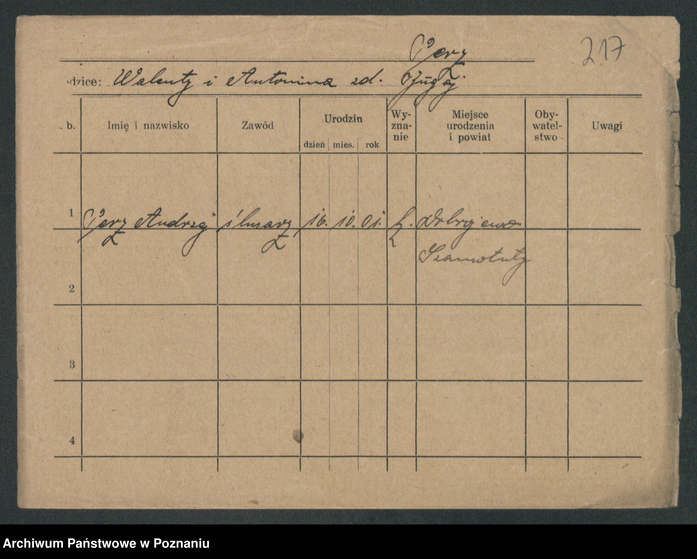 Podgląd karty osobowej dostępny jest po kliknięciu na nazwisko lub ikonkę karty. Można dokonywać powiększenia (ikony na górze) lub przechodzić między kolejnymi skanami (strzałki po bokach).