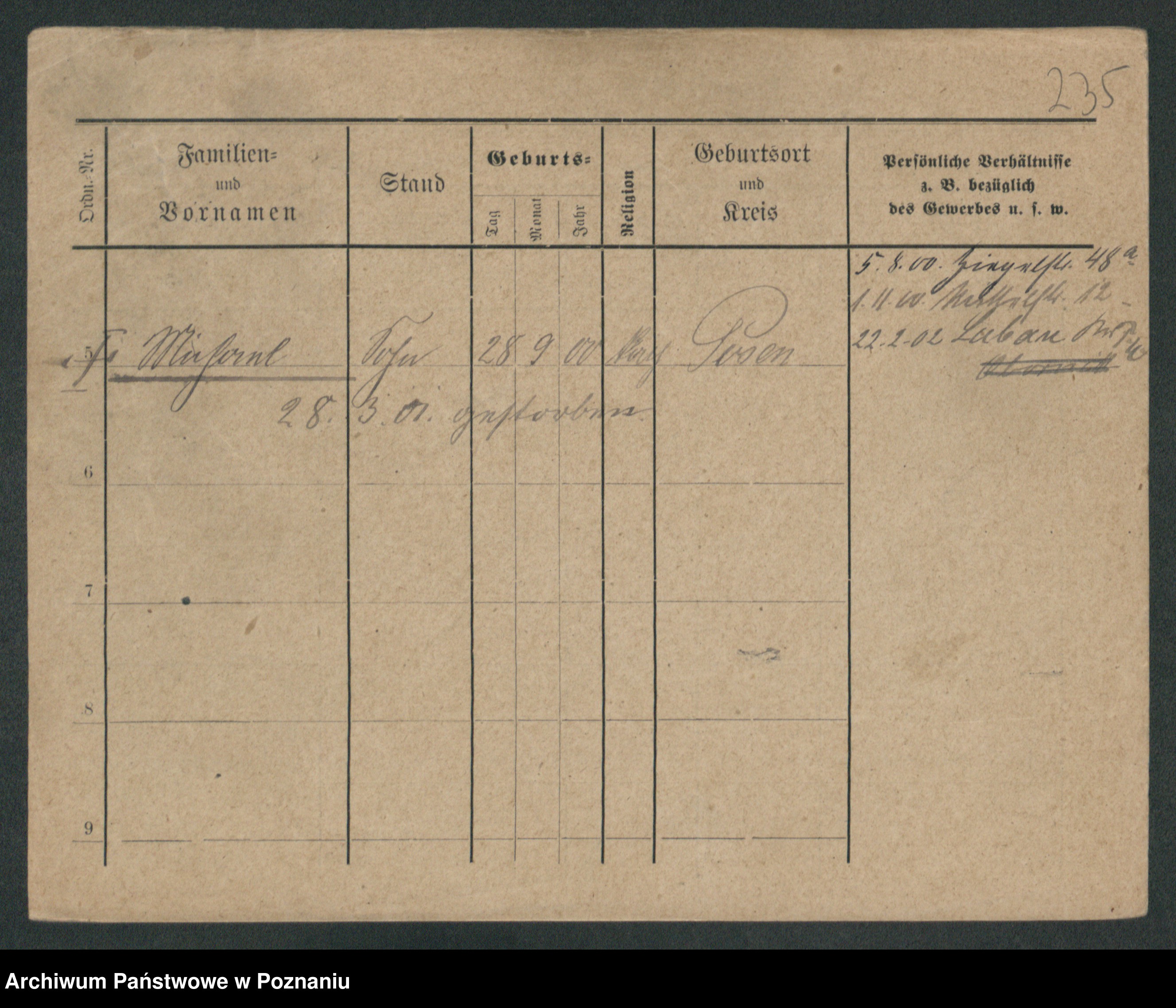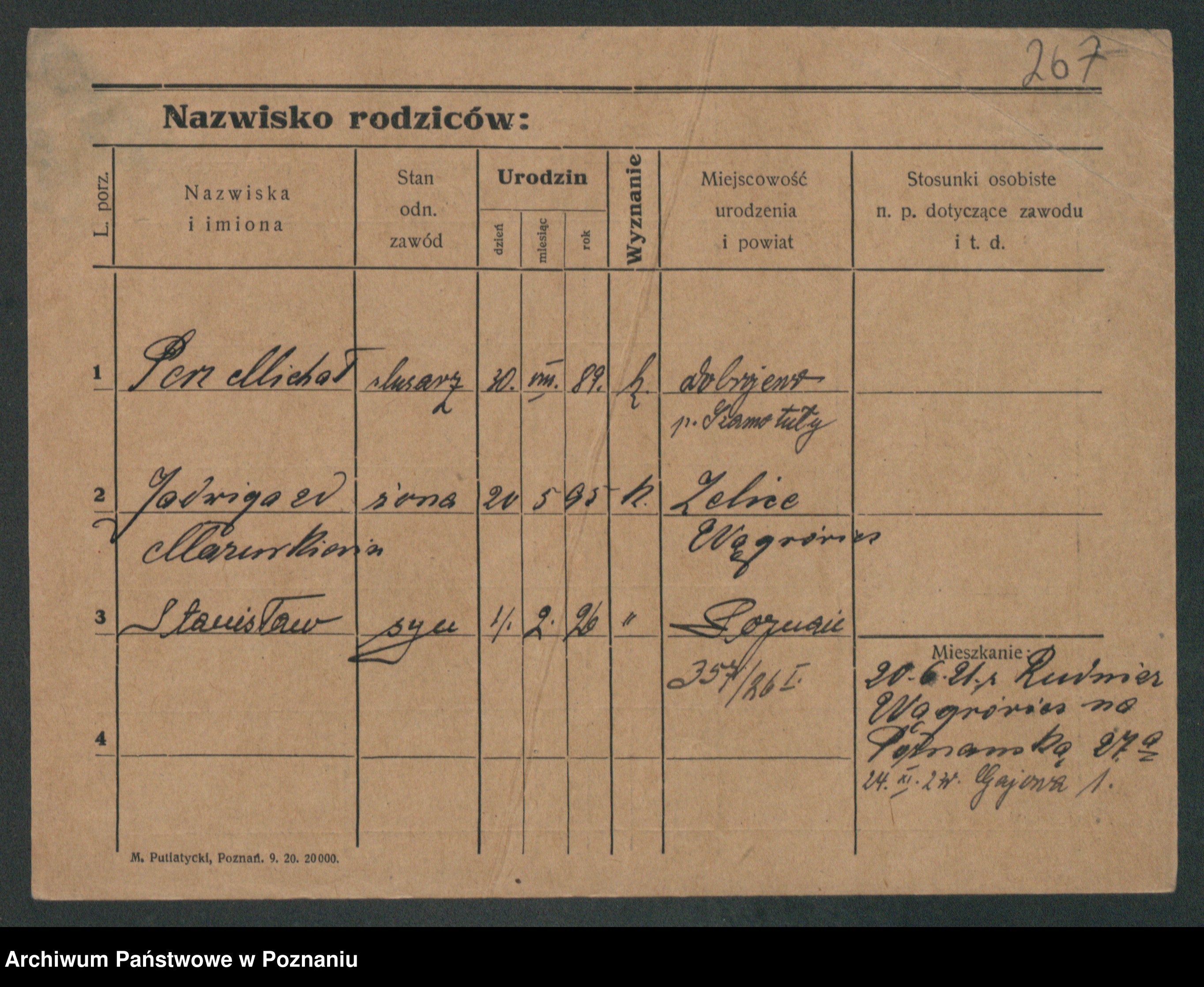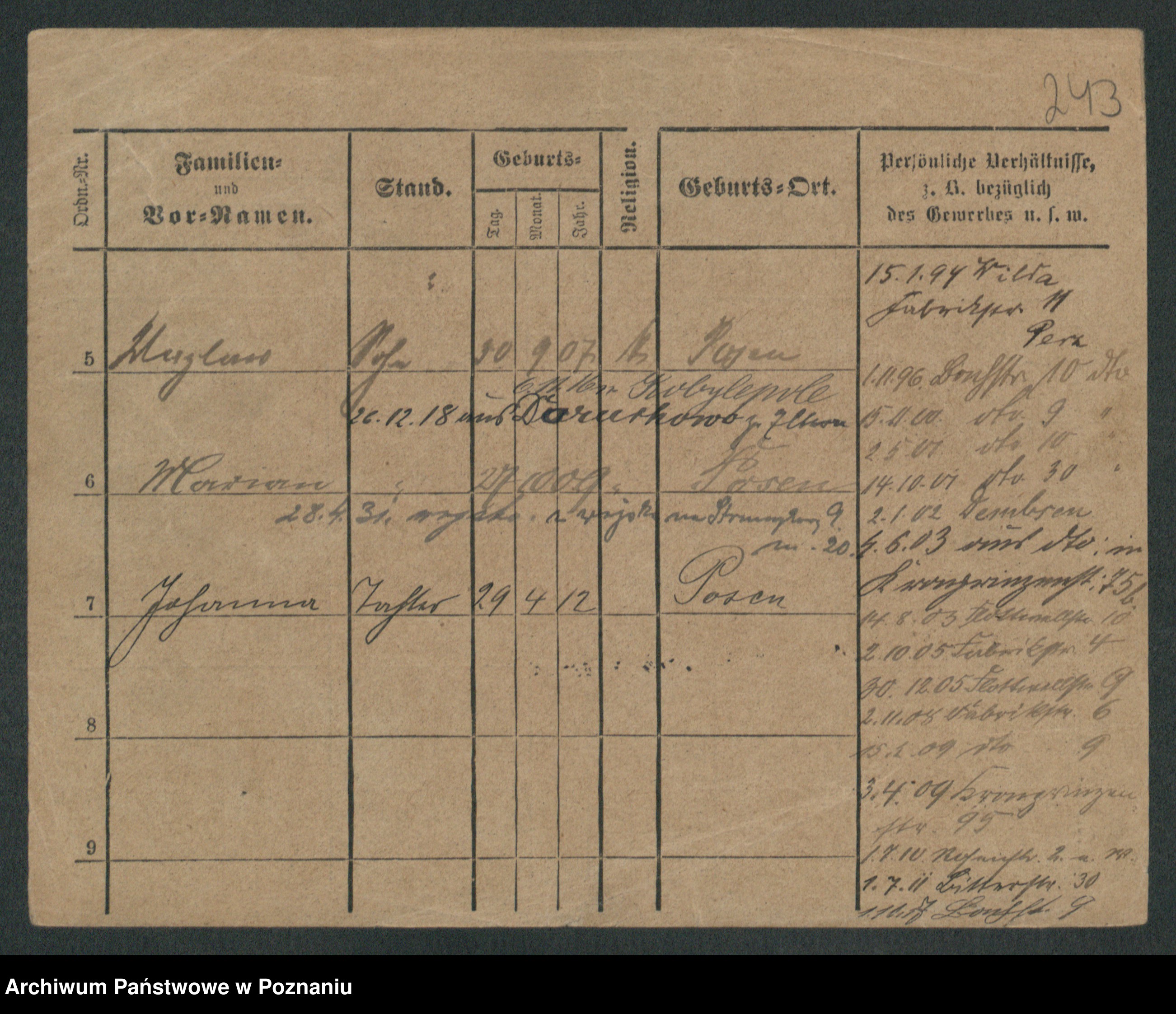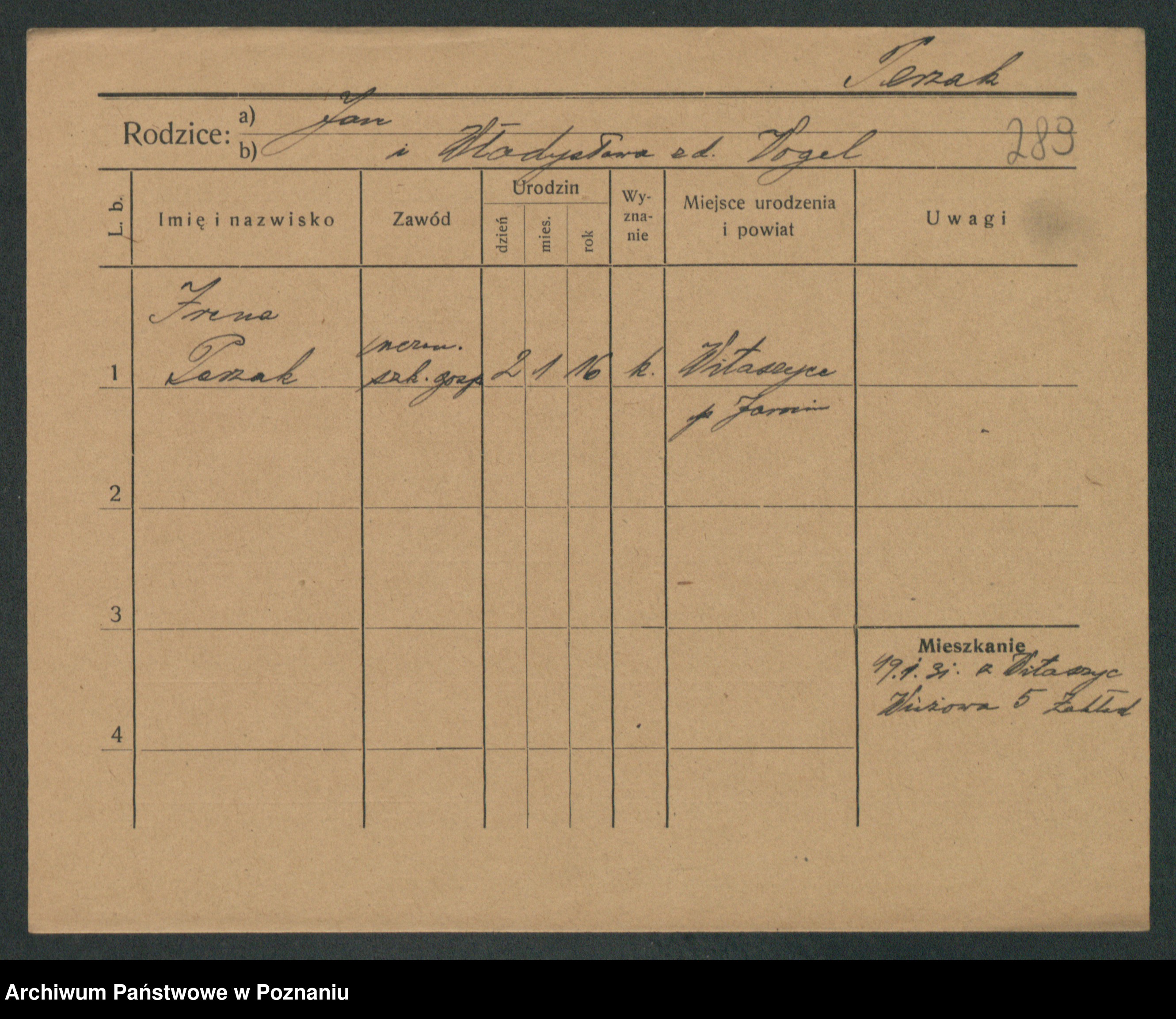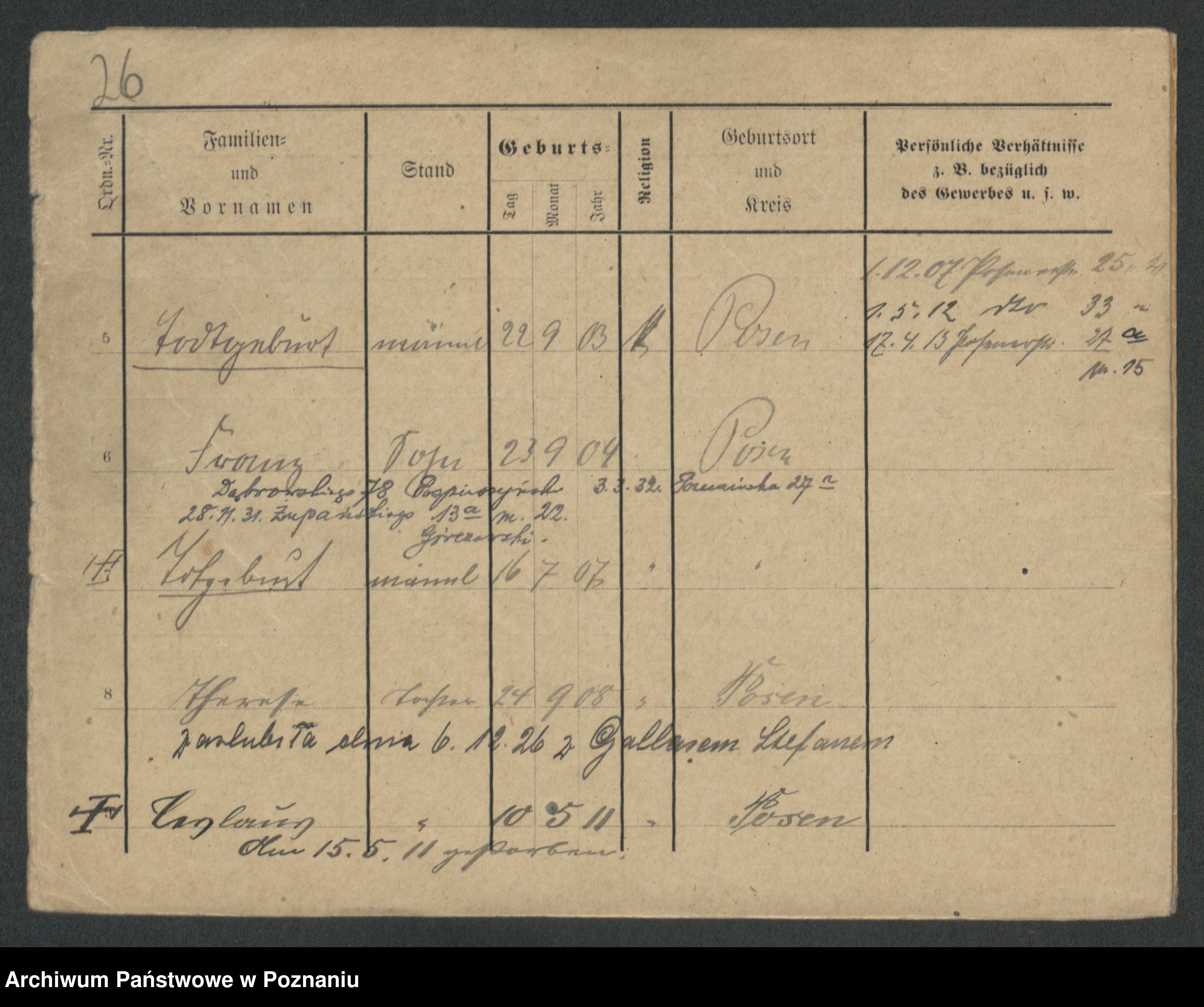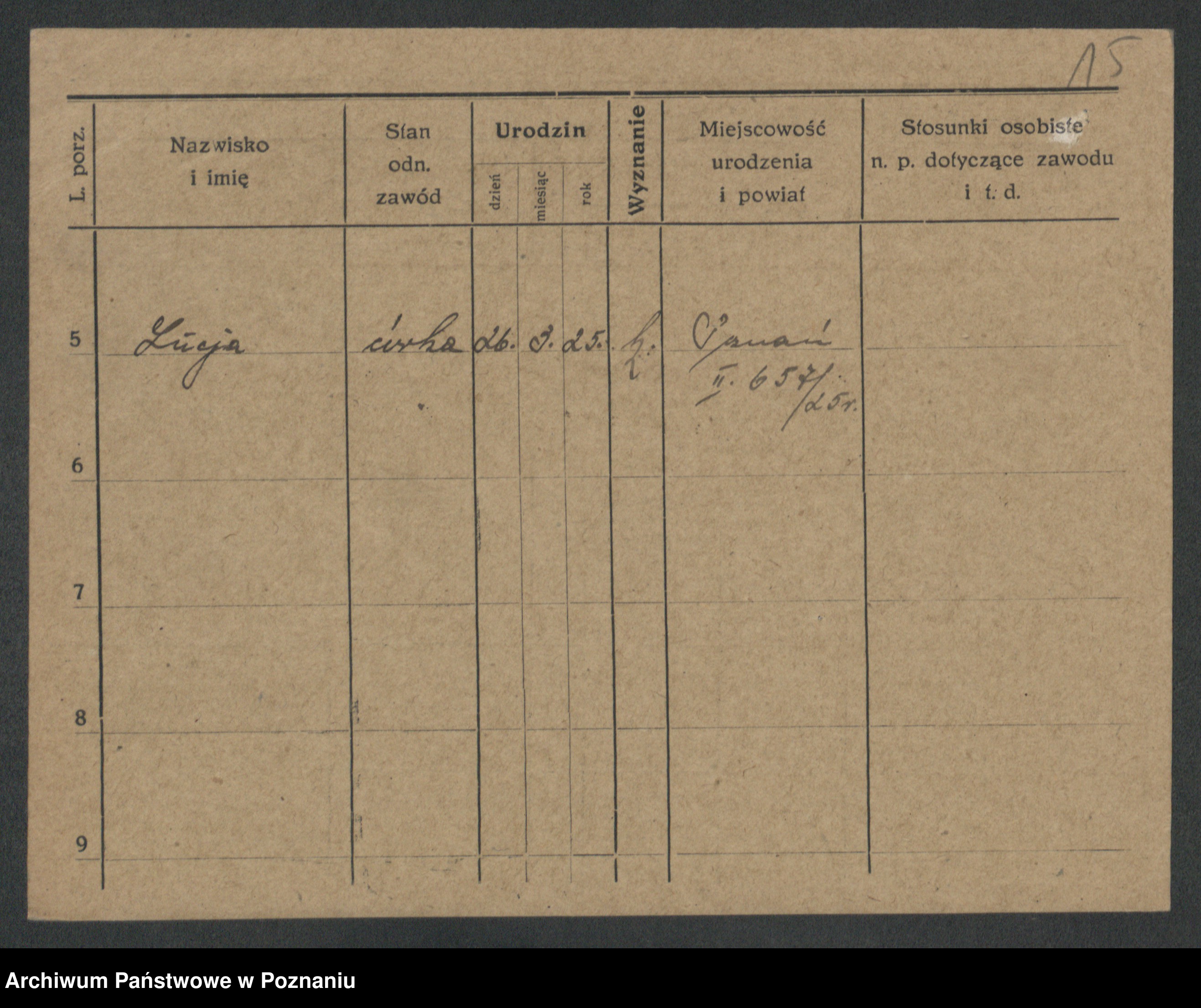 Podgląd karty osobowej dostępny jest po kliknięciu na nazwisko lub ikonkę karty. Można dokonywać powiększenia (ikony na górze) lub przechodzić między kolejnymi skanami (strzałki po bokach).