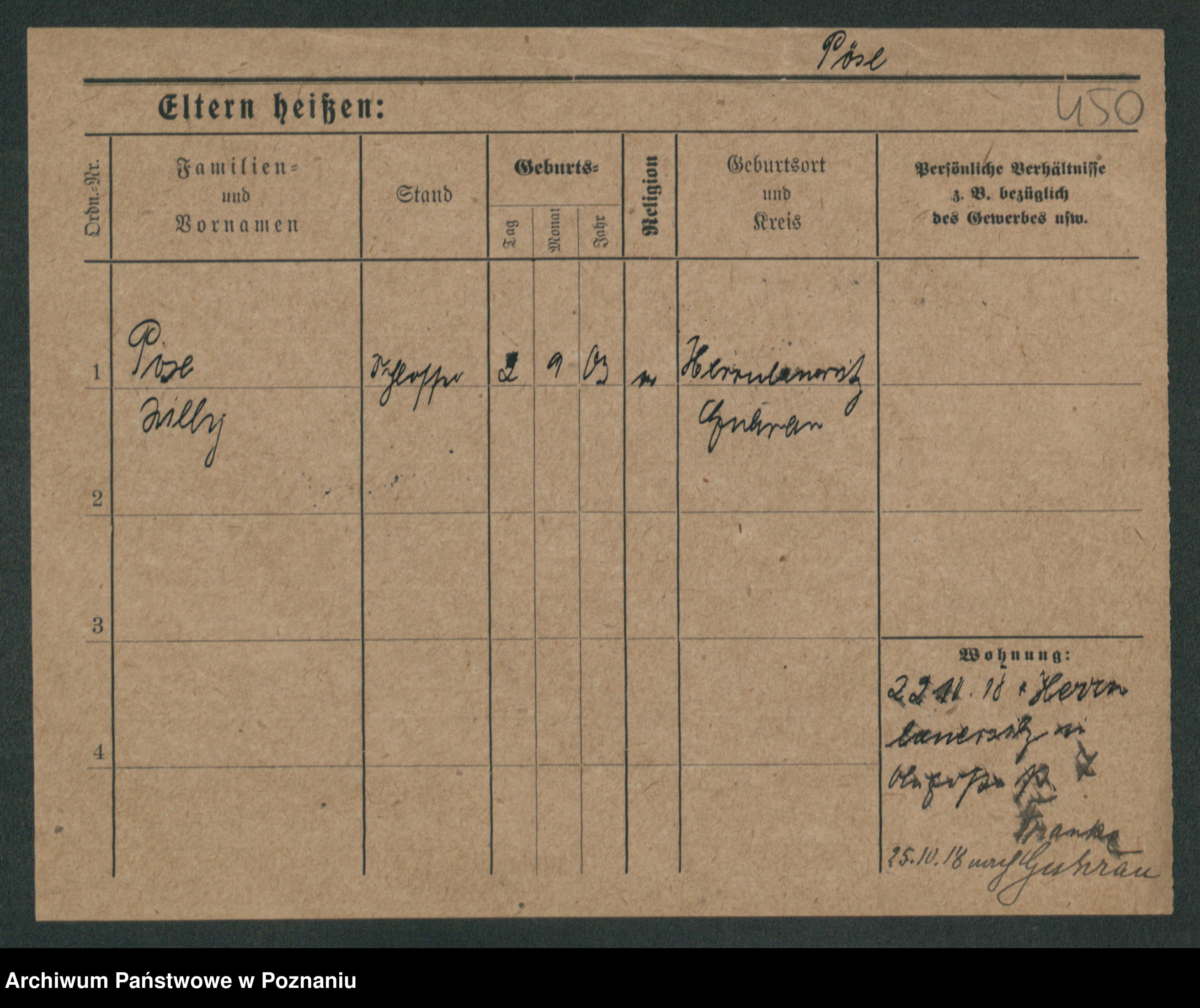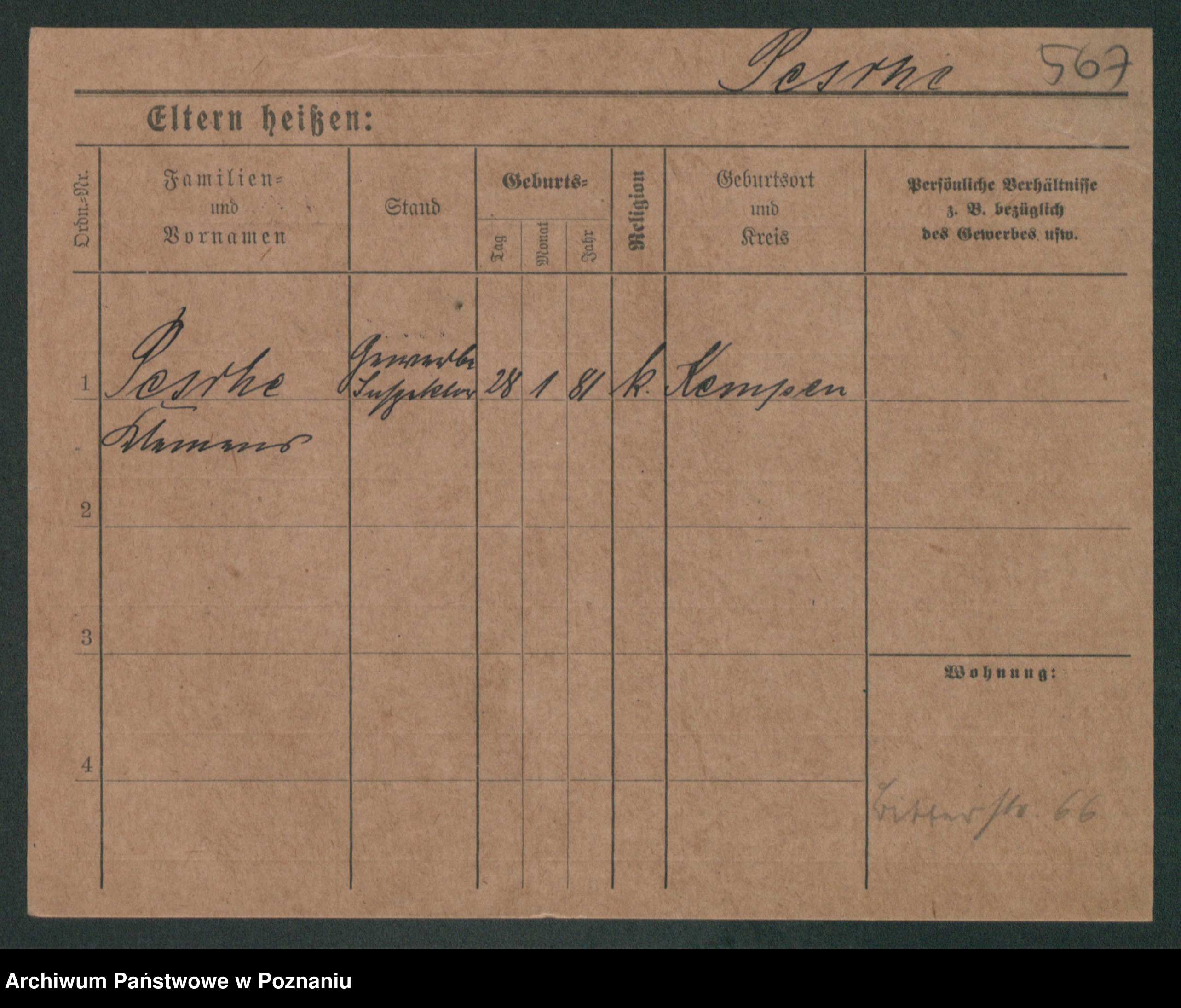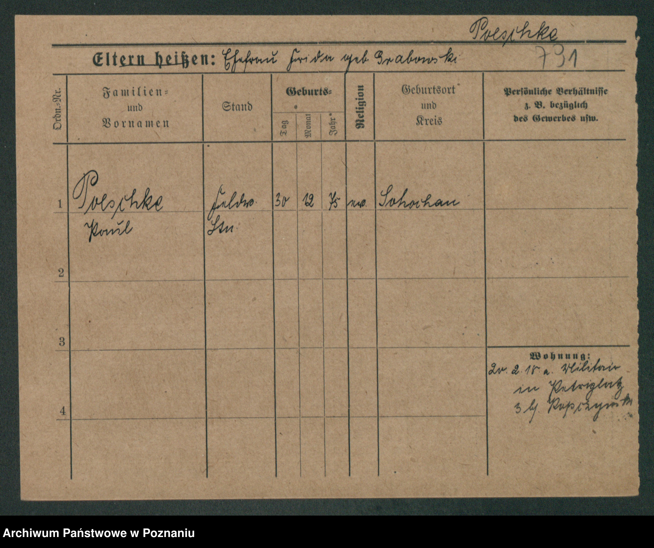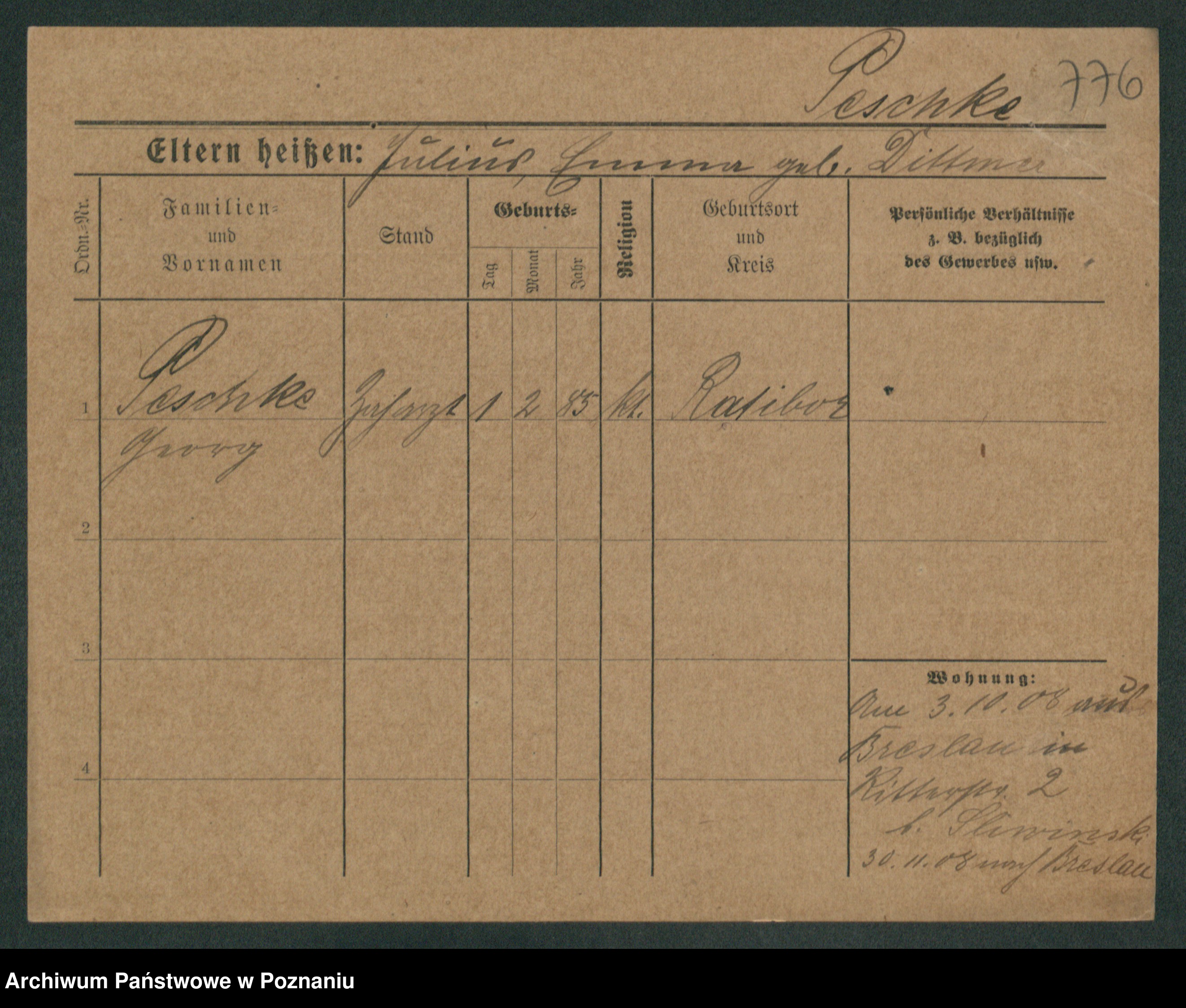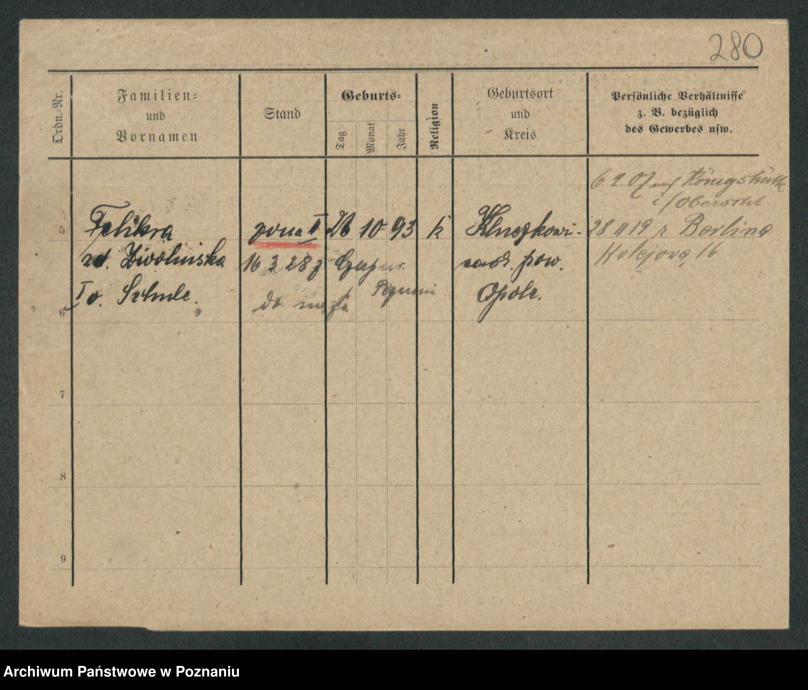 Podgląd karty osobowej dostępny jest po kliknięciu na nazwisko lub ikonkę karty. Można dokonywać powiększenia (ikony na górze) lub przechodzić między kolejnymi skanami (strzałki po bokach).
