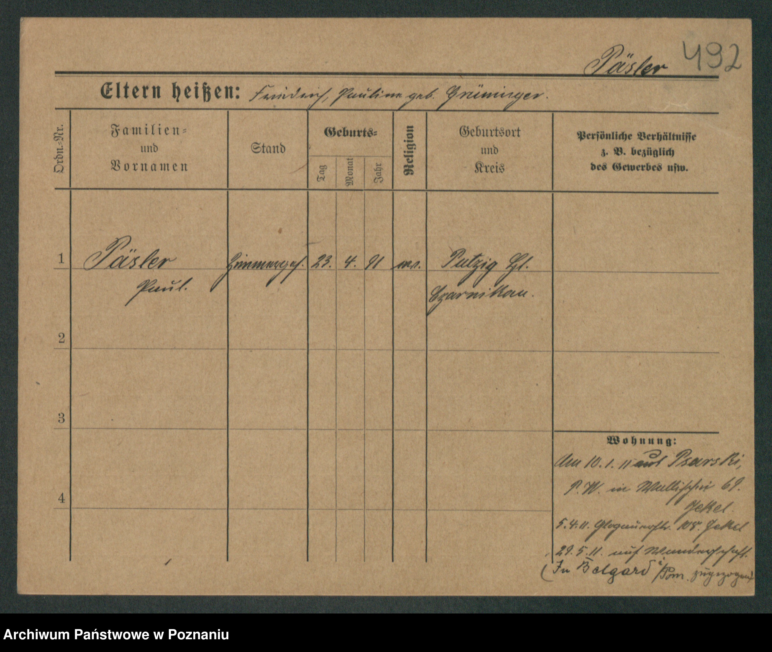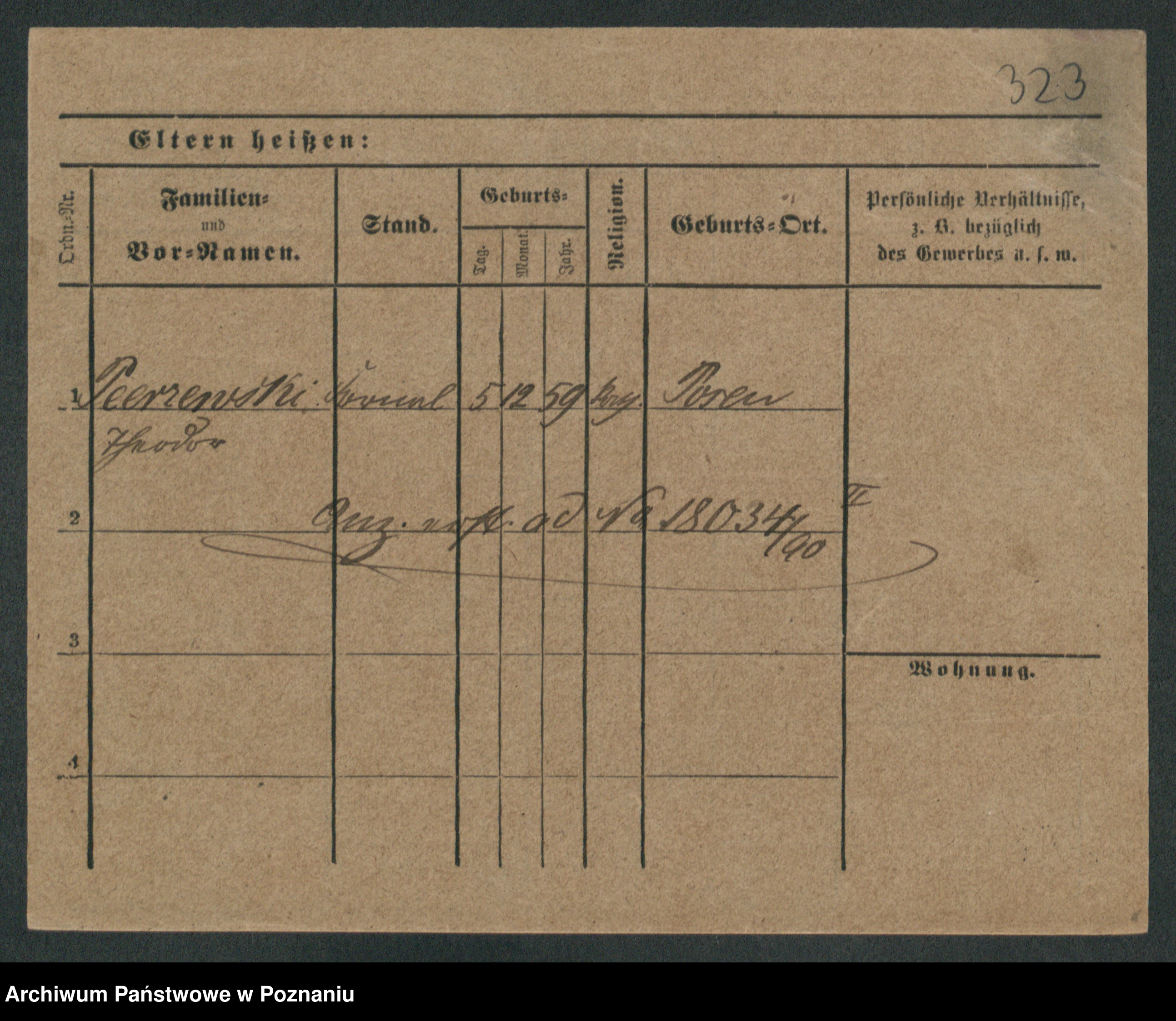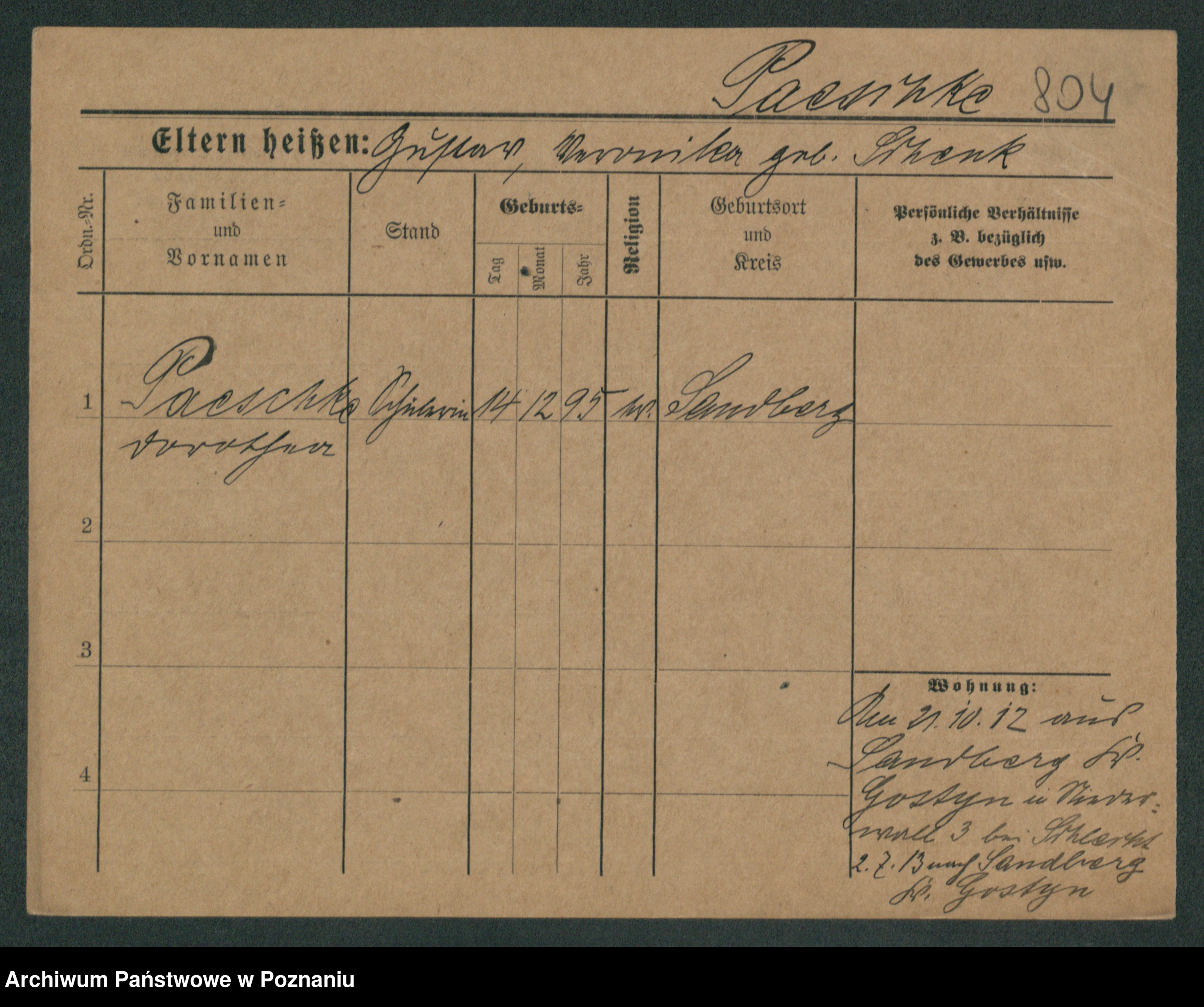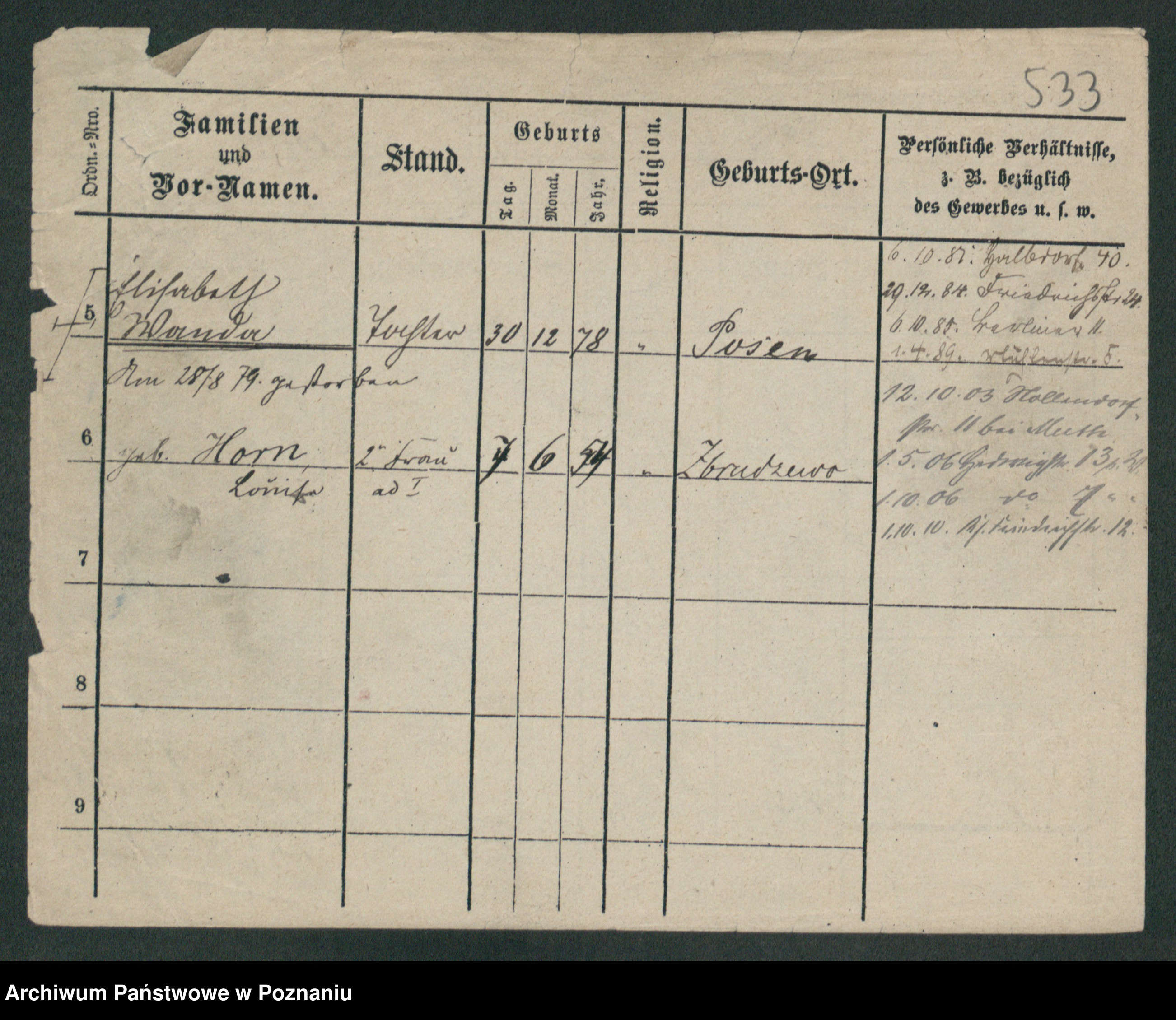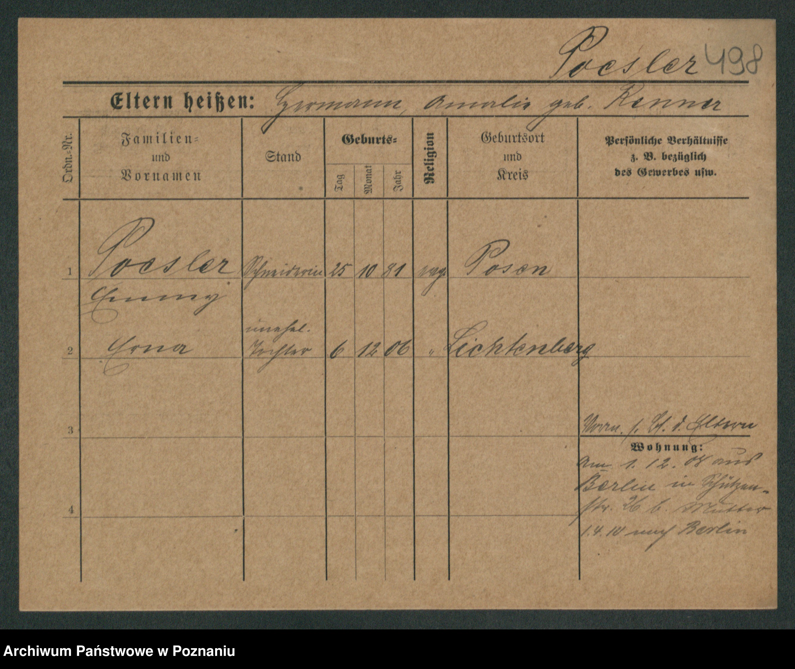 Podgląd karty osobowej dostępny jest po kliknięciu na nazwisko lub ikonkę karty. Można dokonywać powiększenia (ikony na górze) lub przechodzić między kolejnymi skanami (strzałki po bokach).