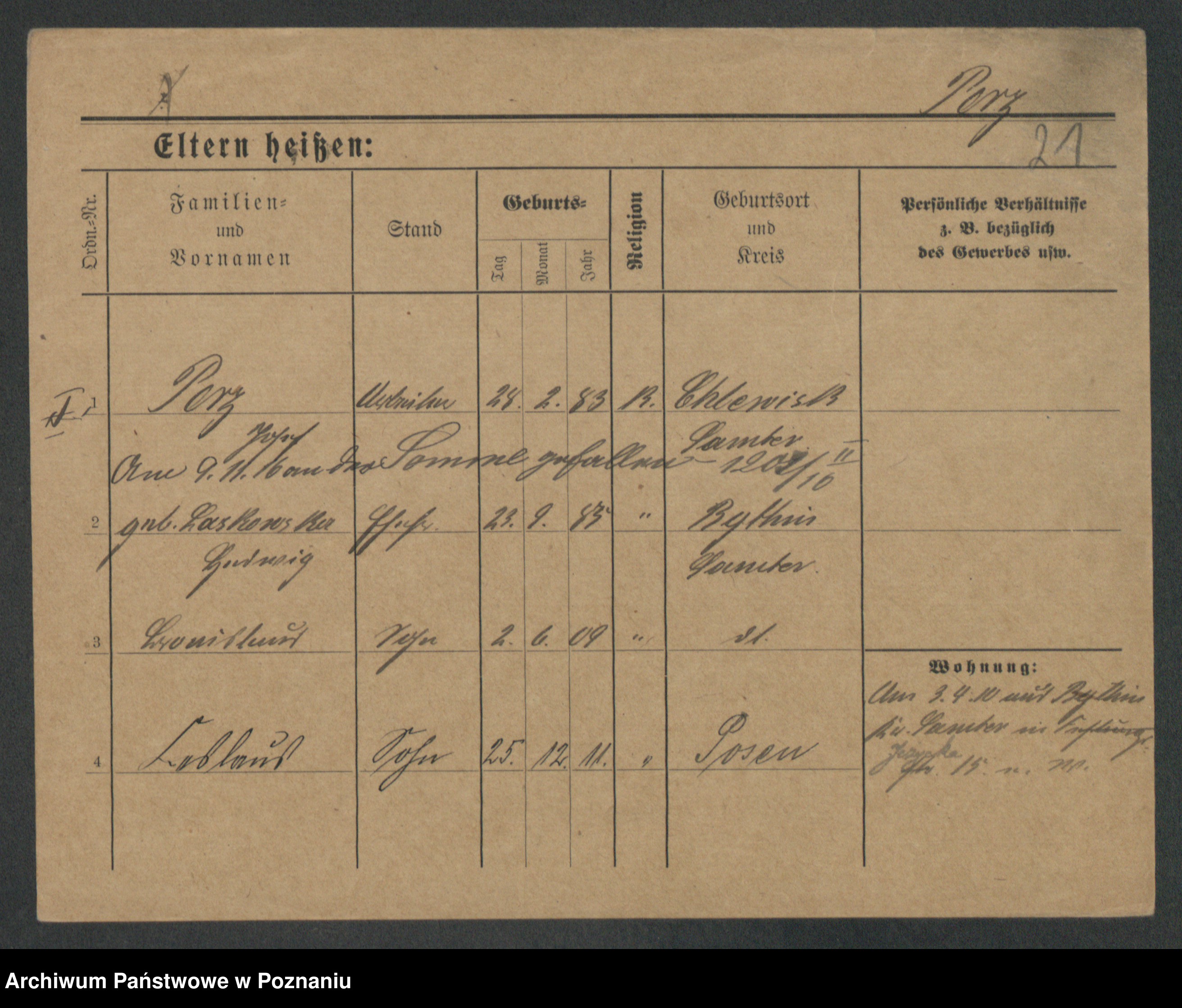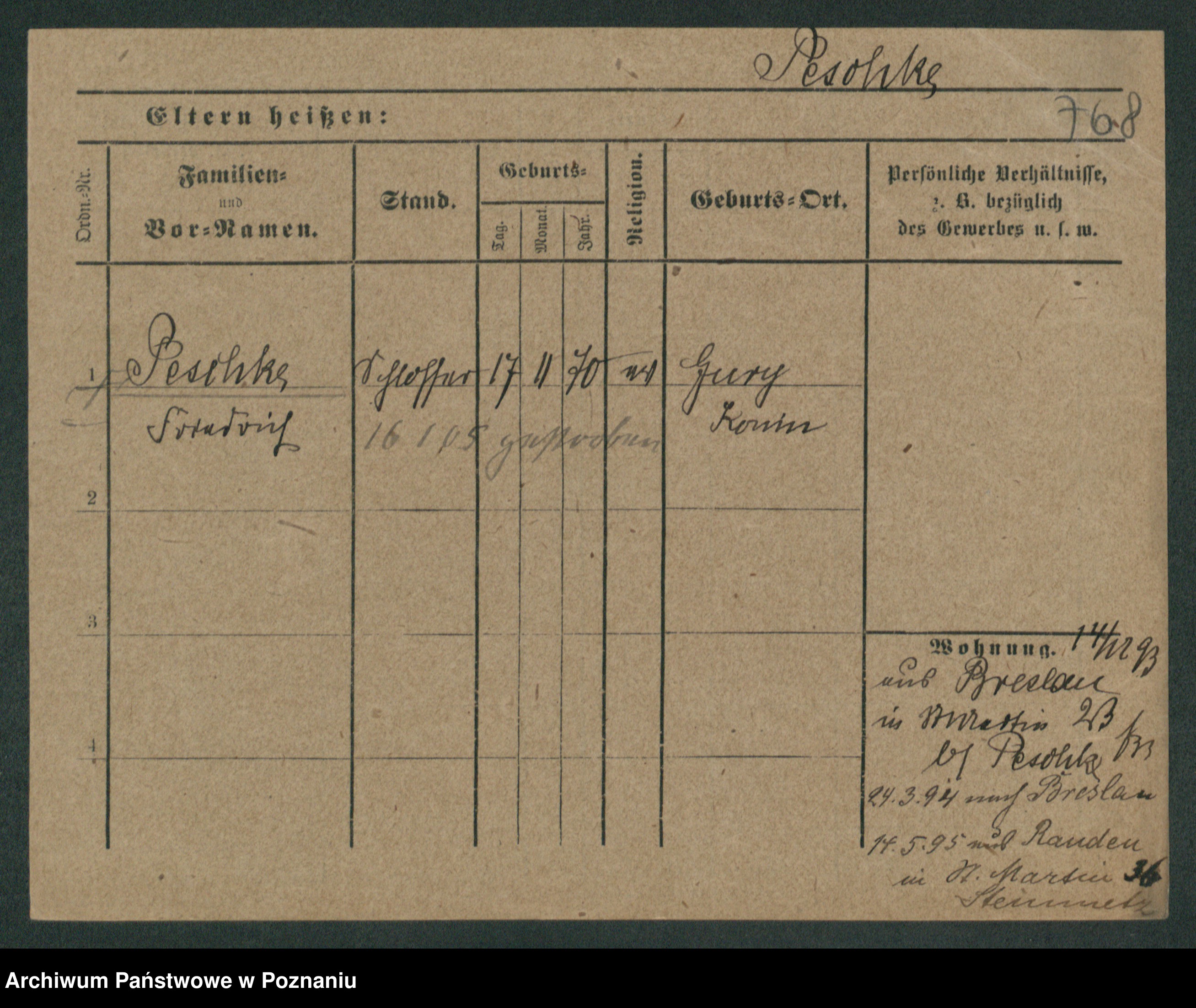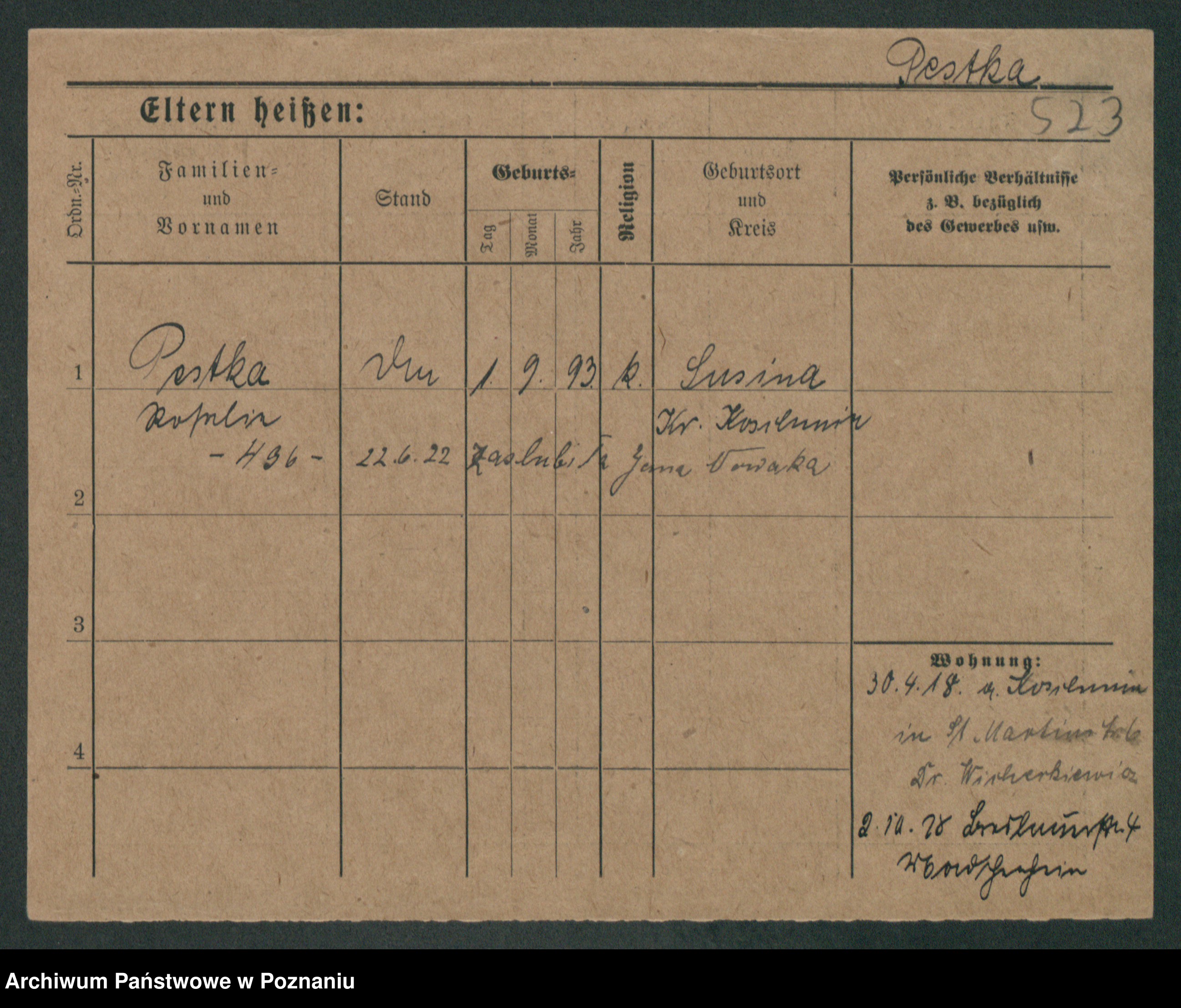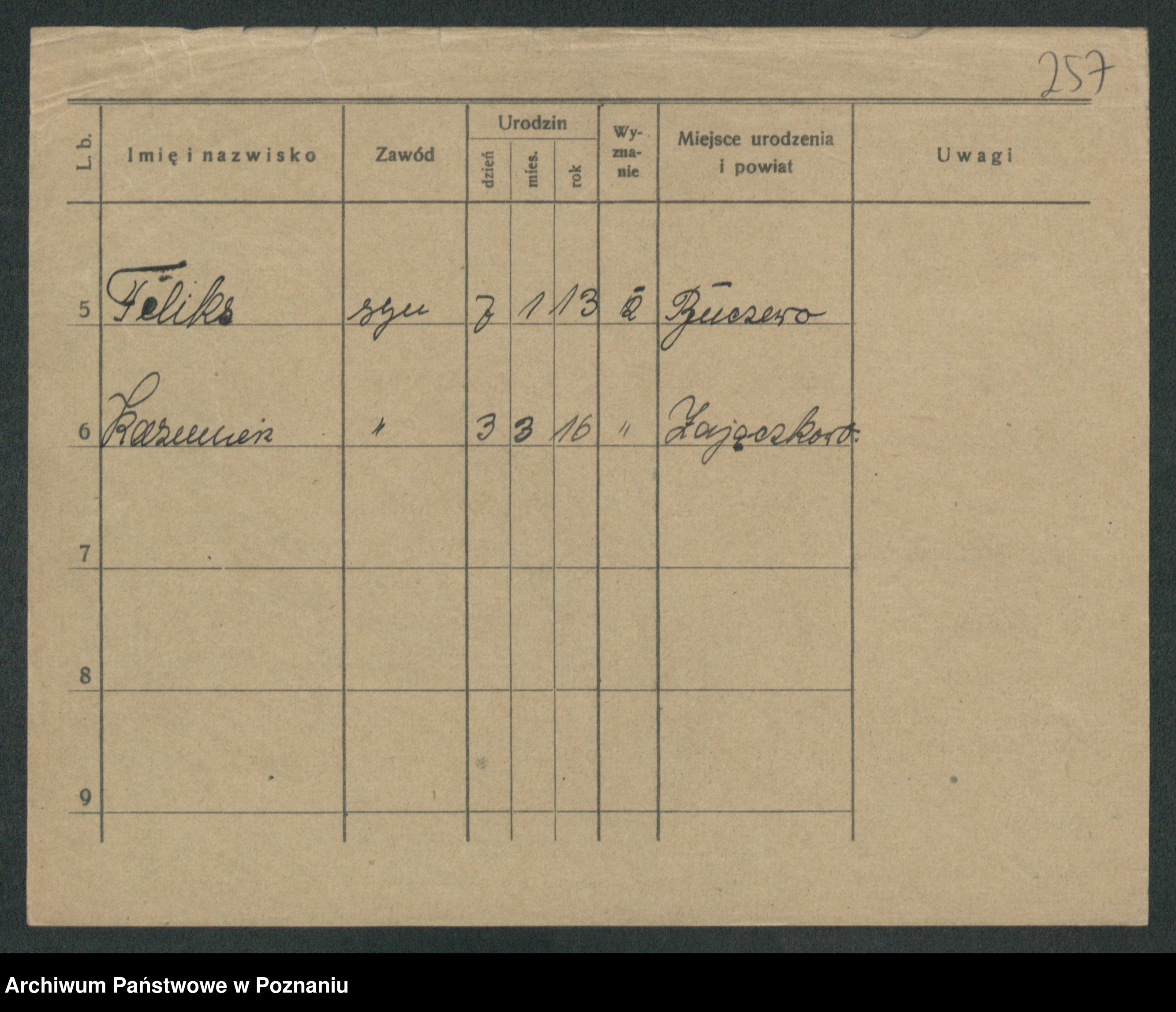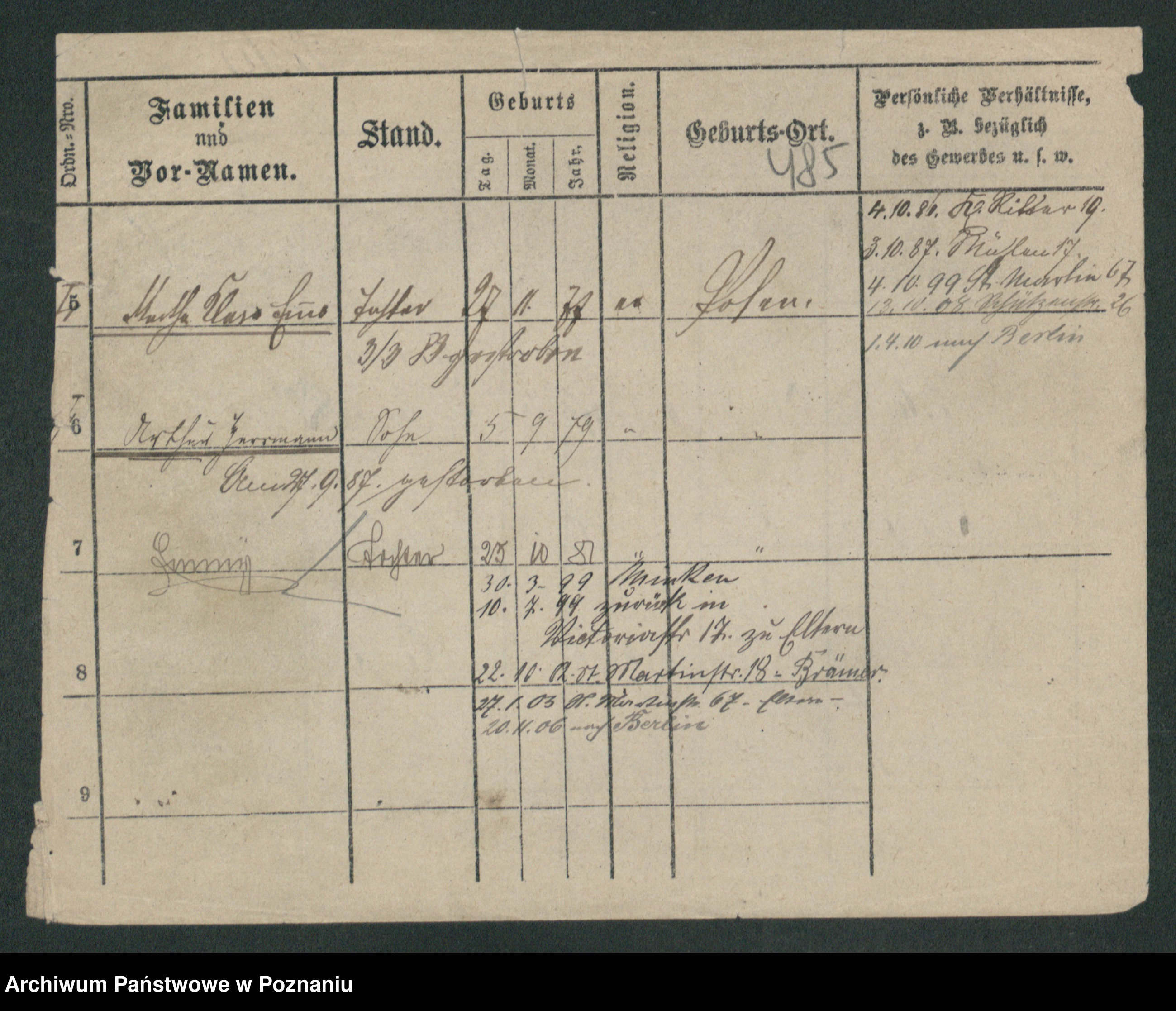 Podgląd karty osobowej dostępny jest po kliknięciu na nazwisko lub ikonkę karty. Można dokonywać powiększenia (ikony na górze) lub przechodzić między kolejnymi skanami (strzałki po bokach).