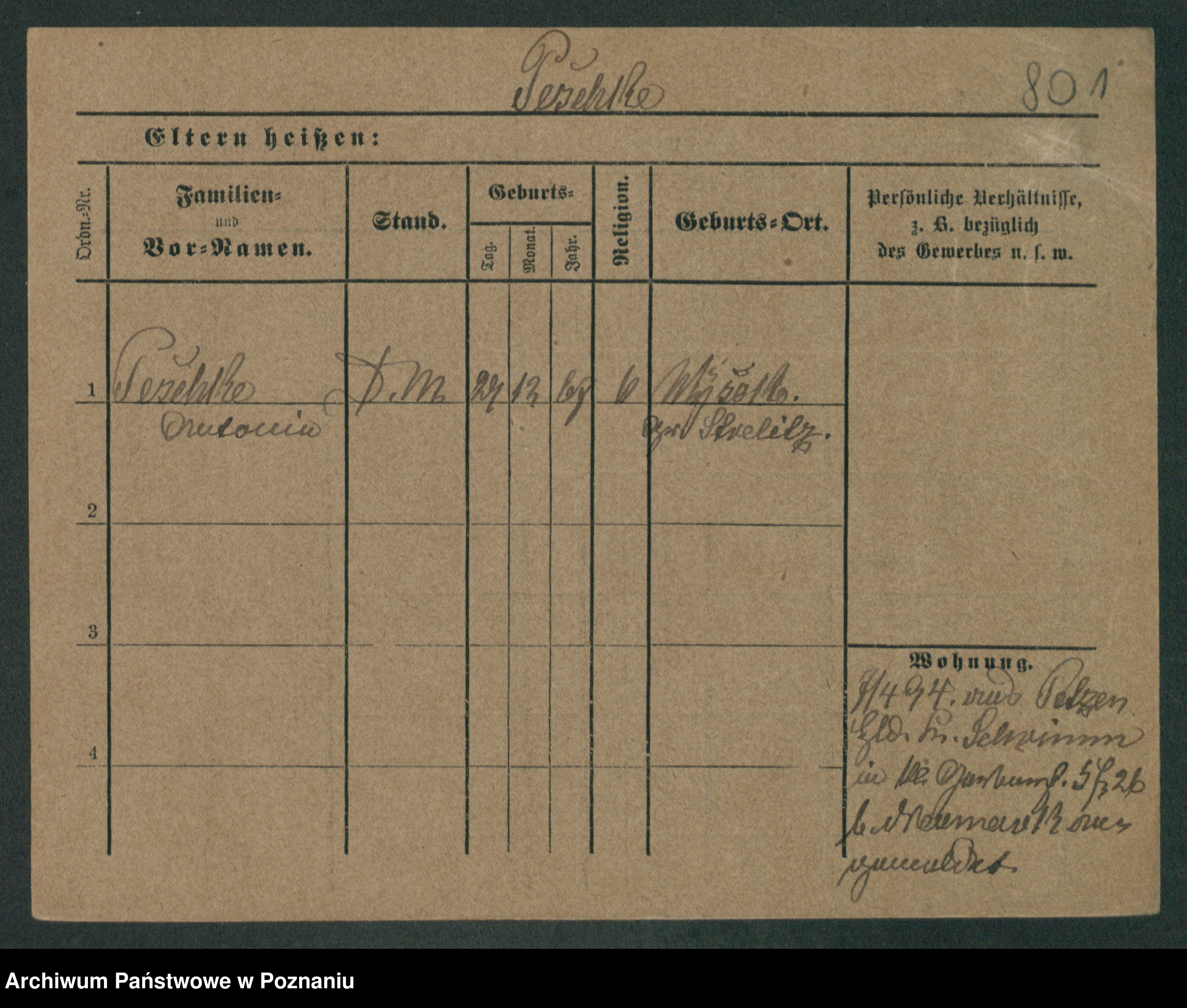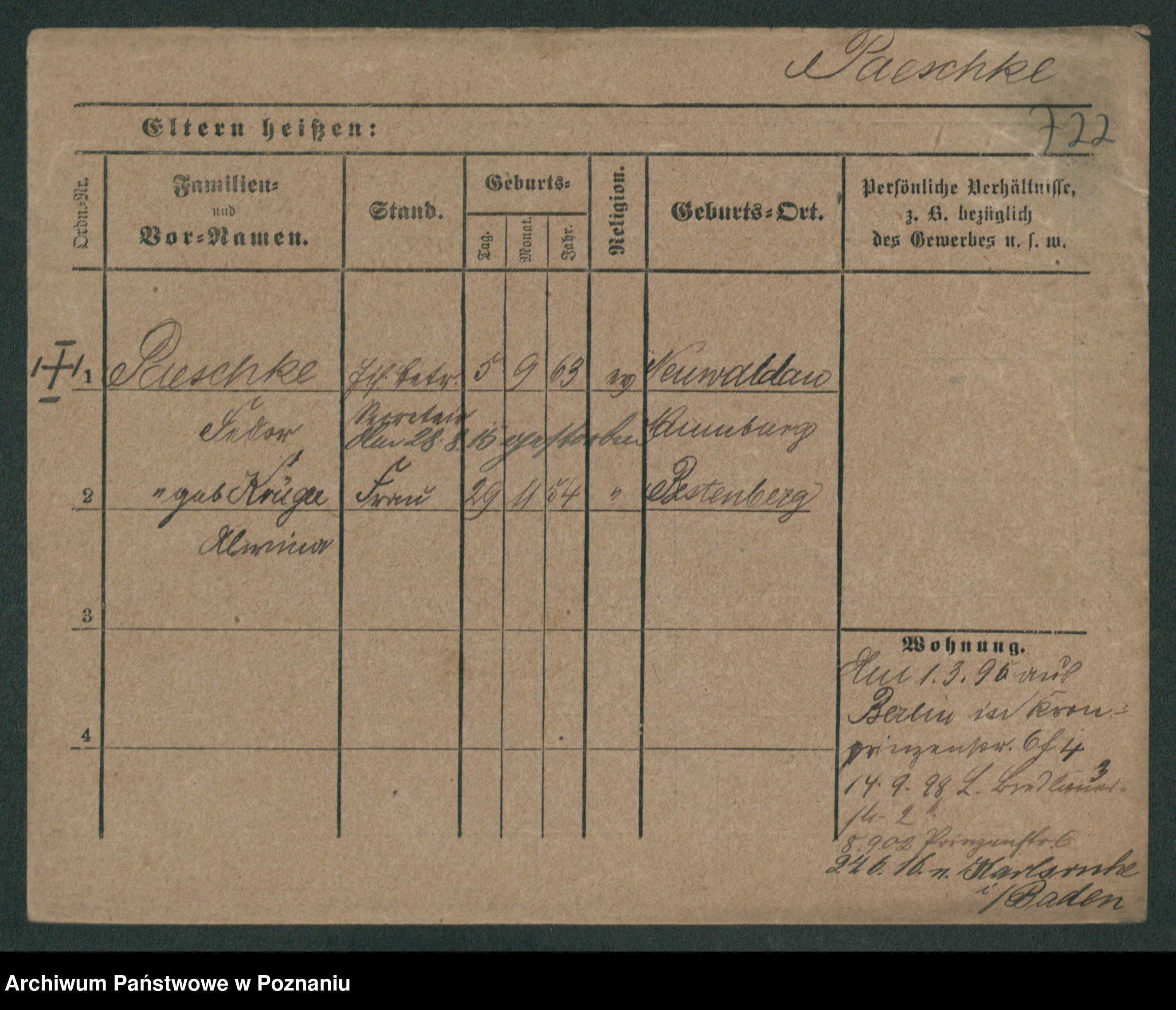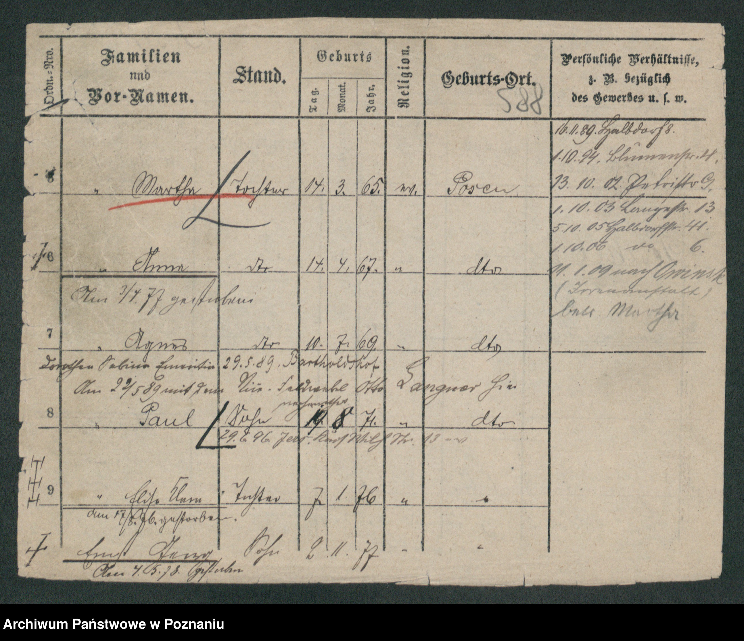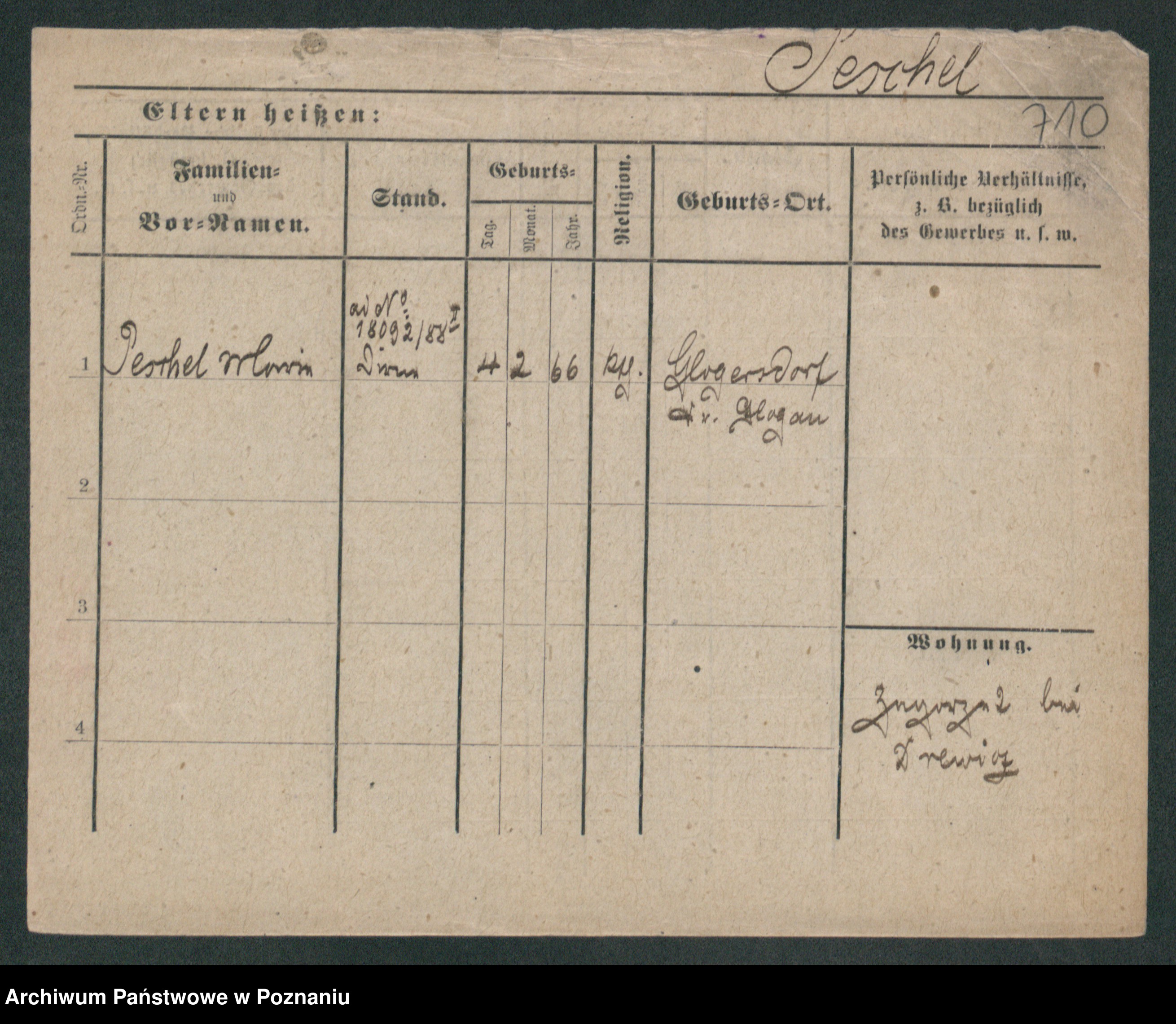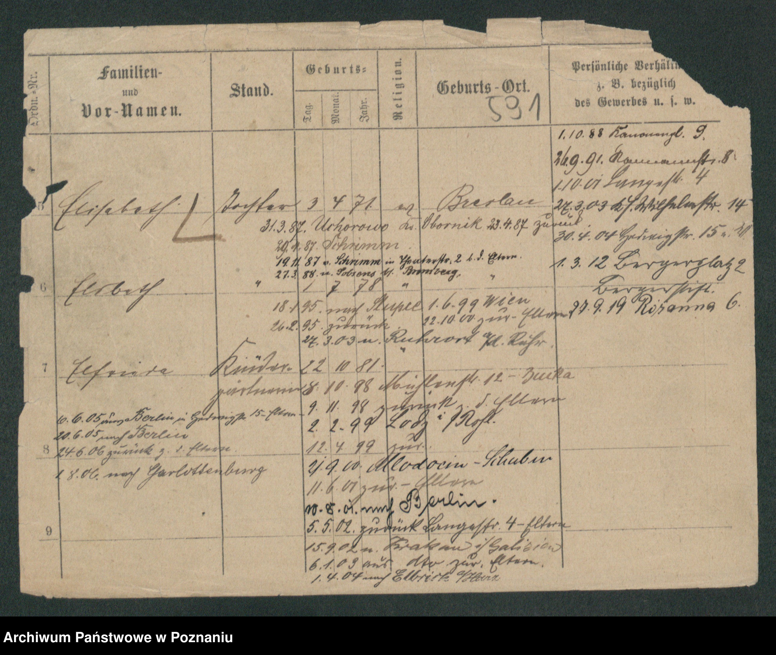 Podgląd karty osobowej dostępny jest po kliknięciu na nazwisko lub ikonkę karty. Można dokonywać powiększenia (ikony na górze) lub przechodzić między kolejnymi skanami (strzałki po bokach).