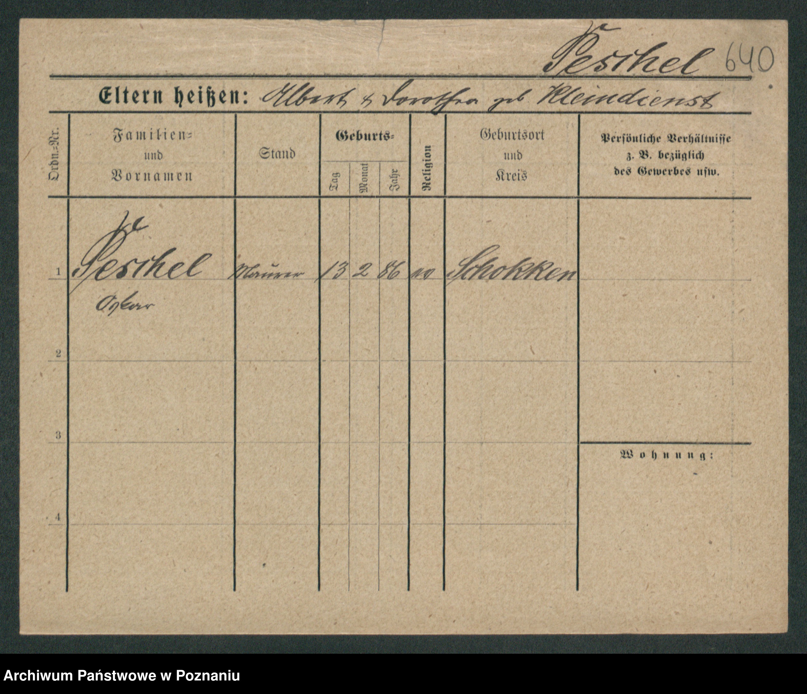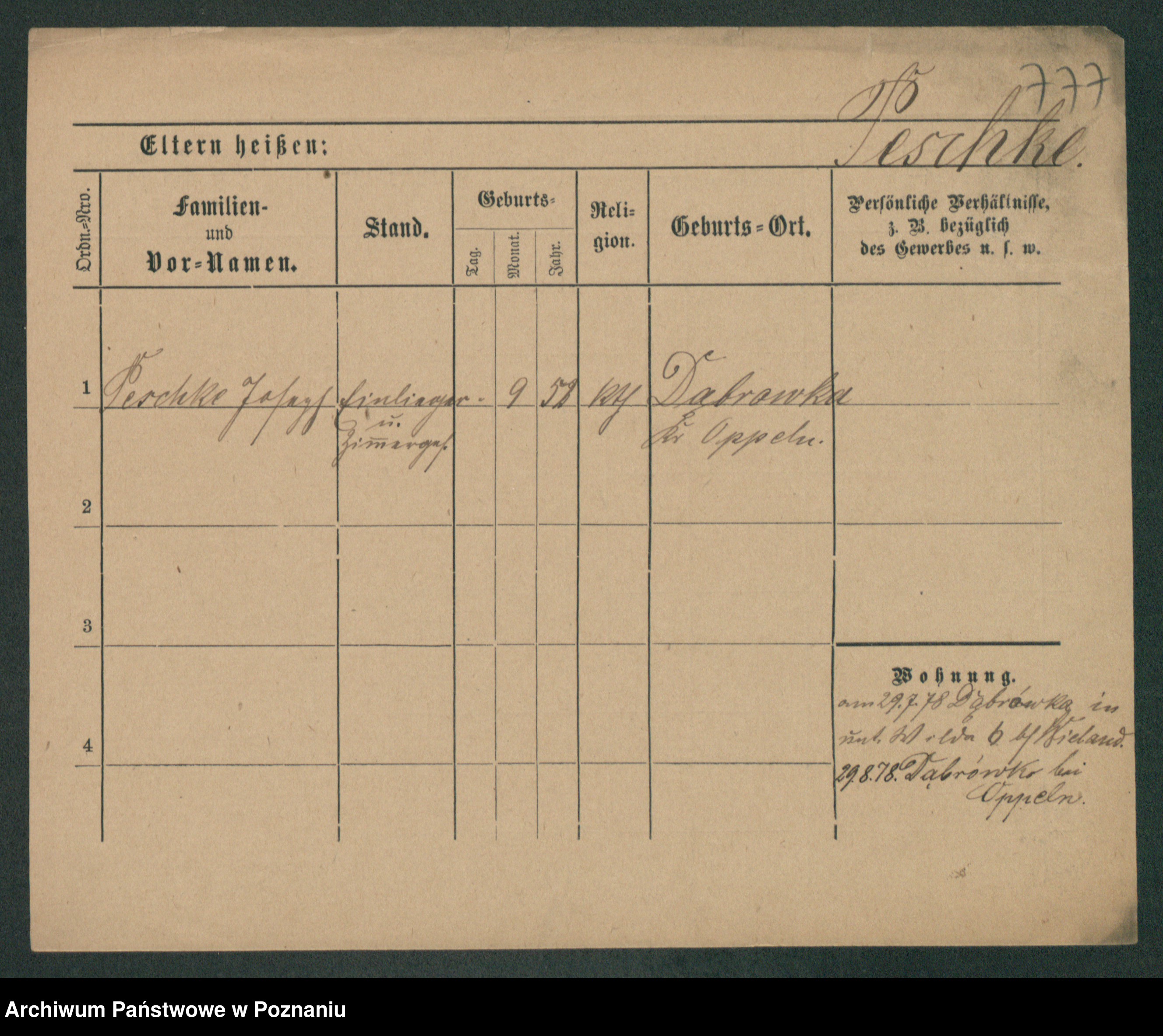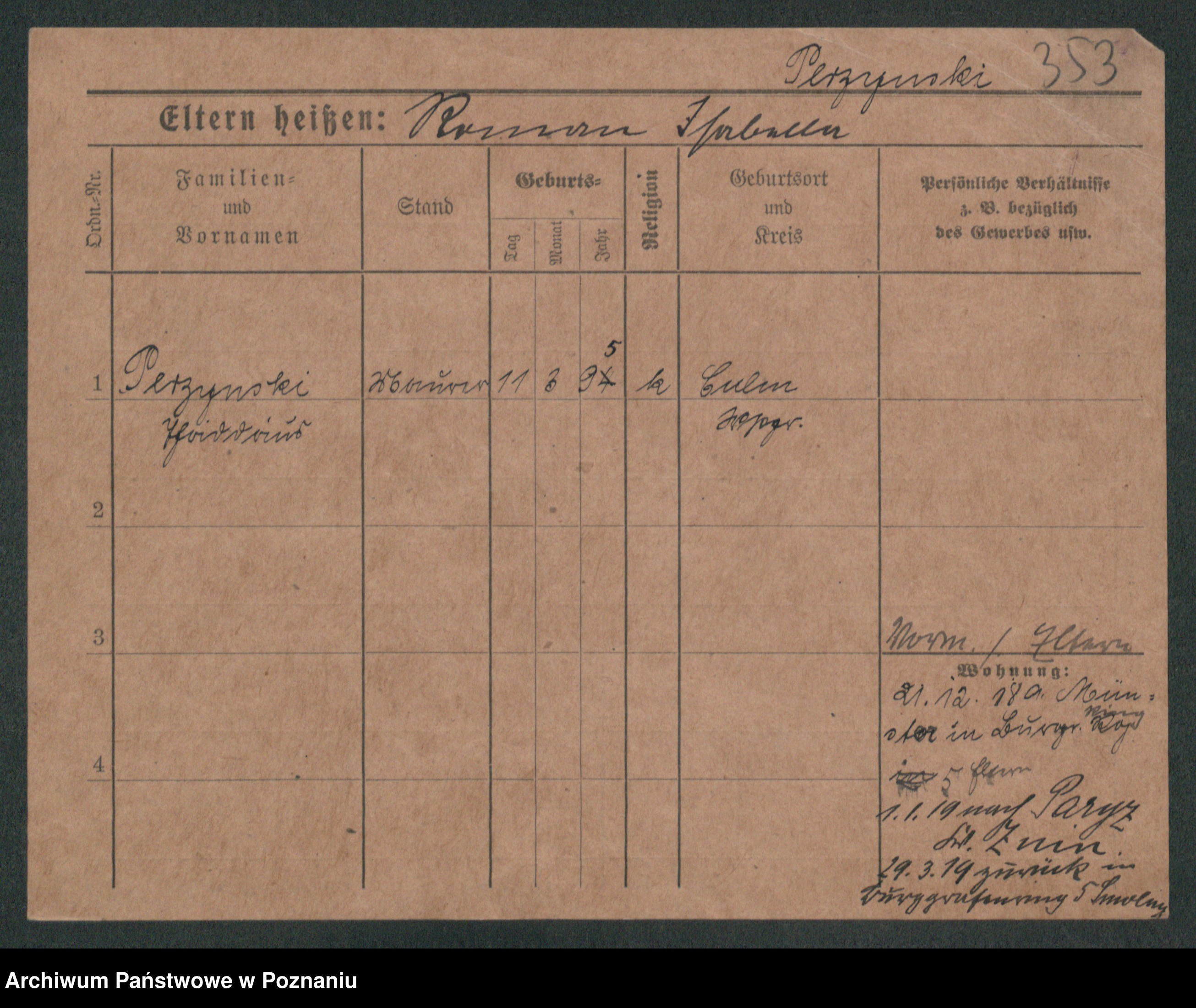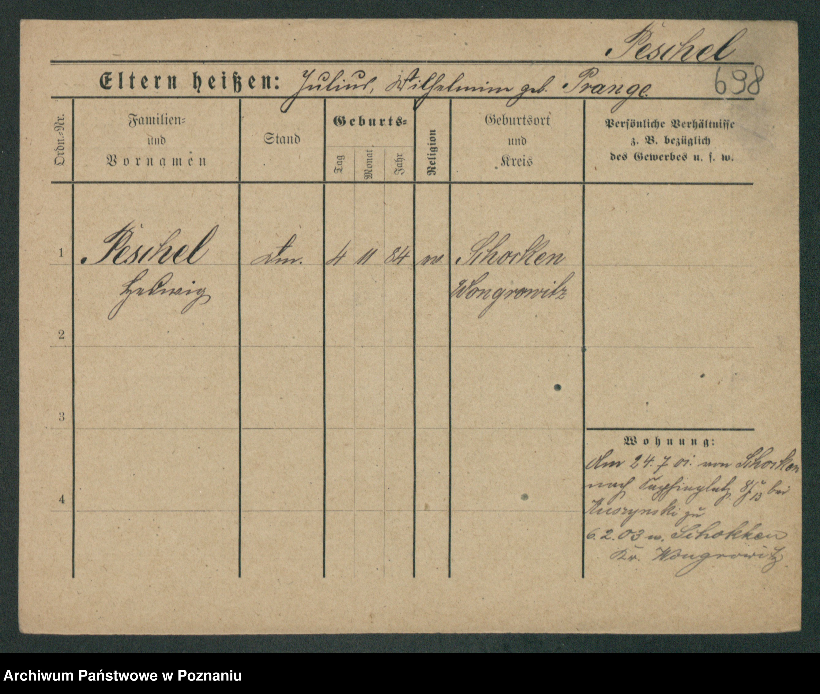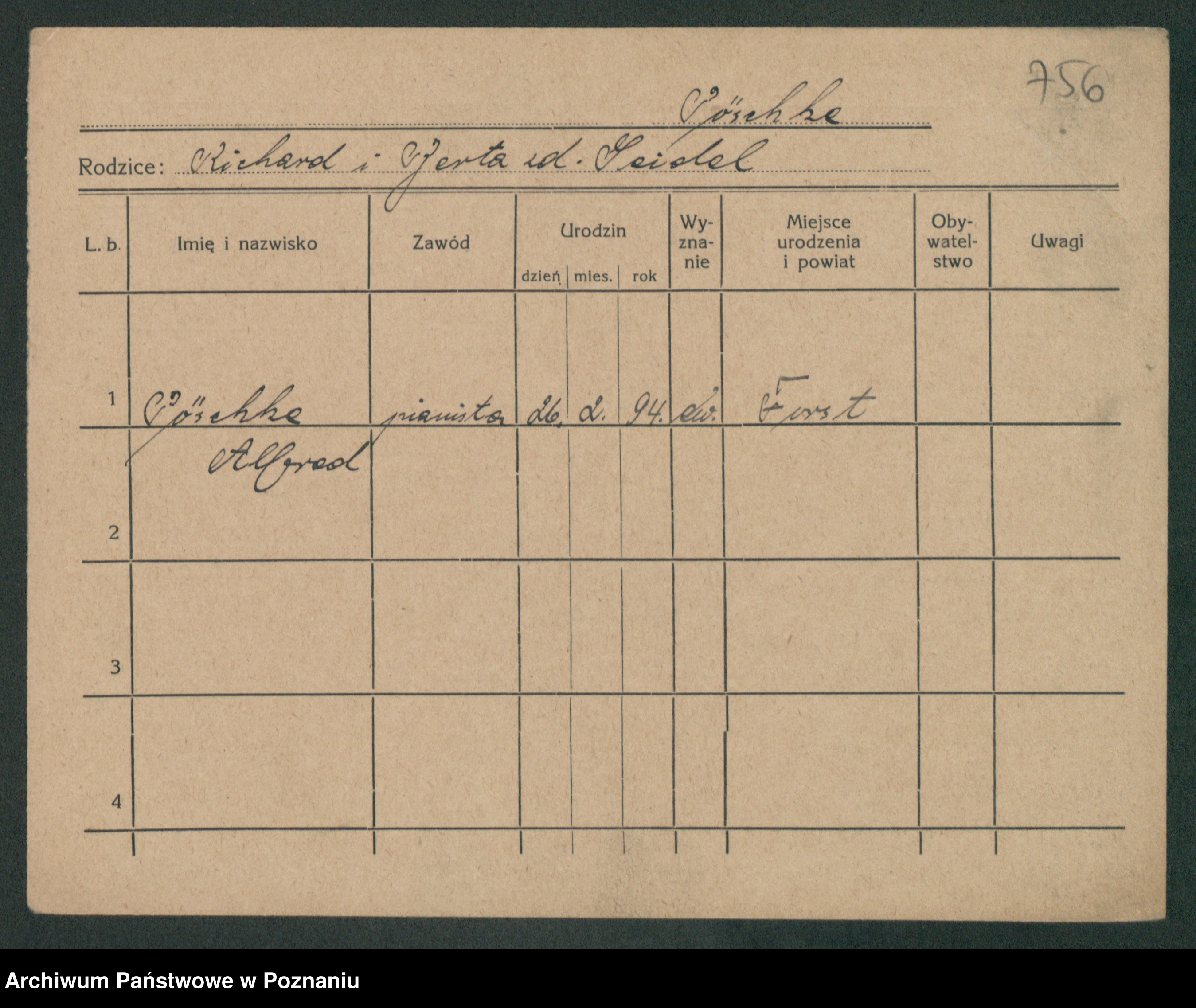 Podgląd karty osobowej dostępny jest po kliknięciu na nazwisko lub ikonkę karty. Można dokonywać powiększenia (ikony na górze) lub przechodzić między kolejnymi skanami (strzałki po bokach).