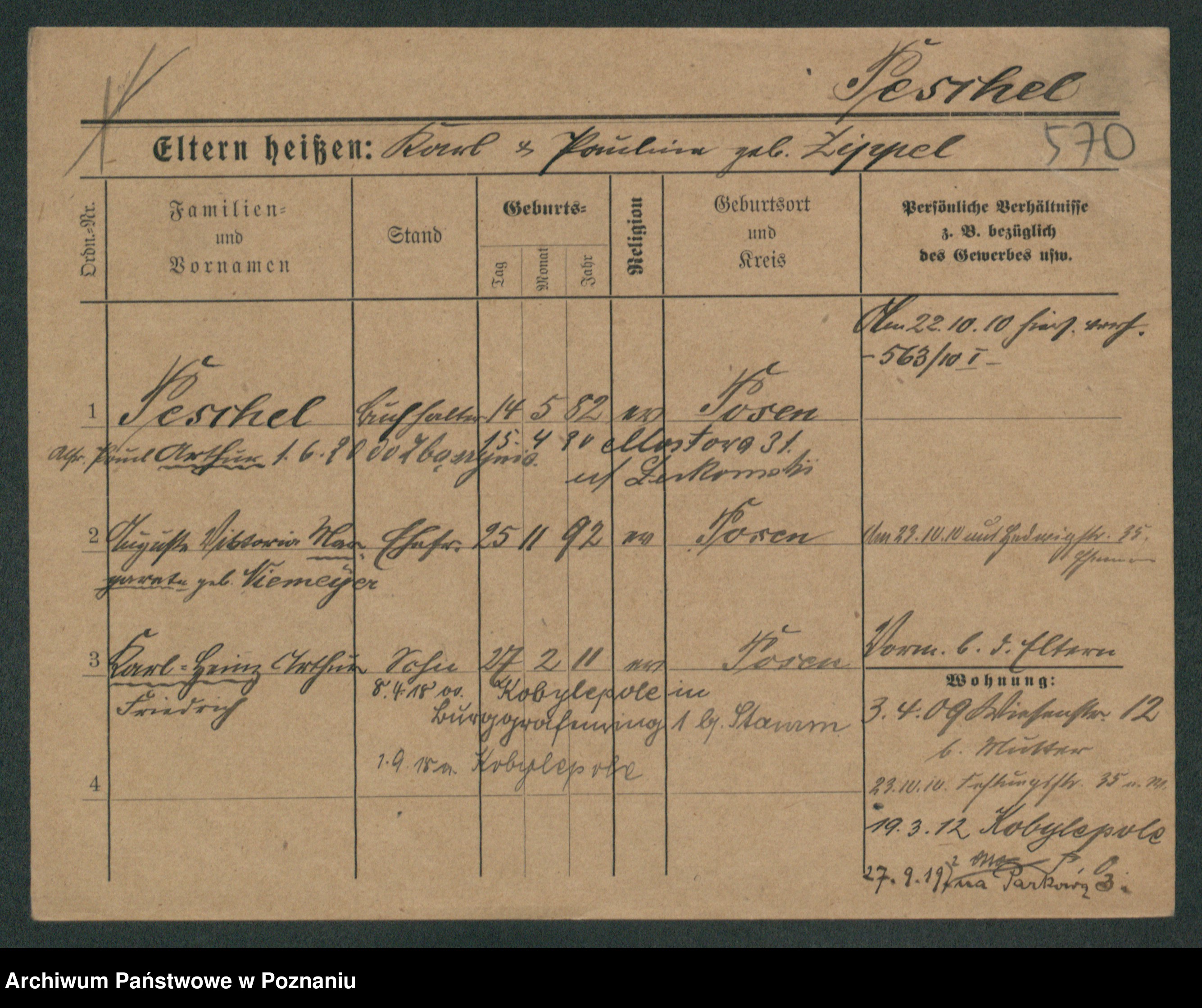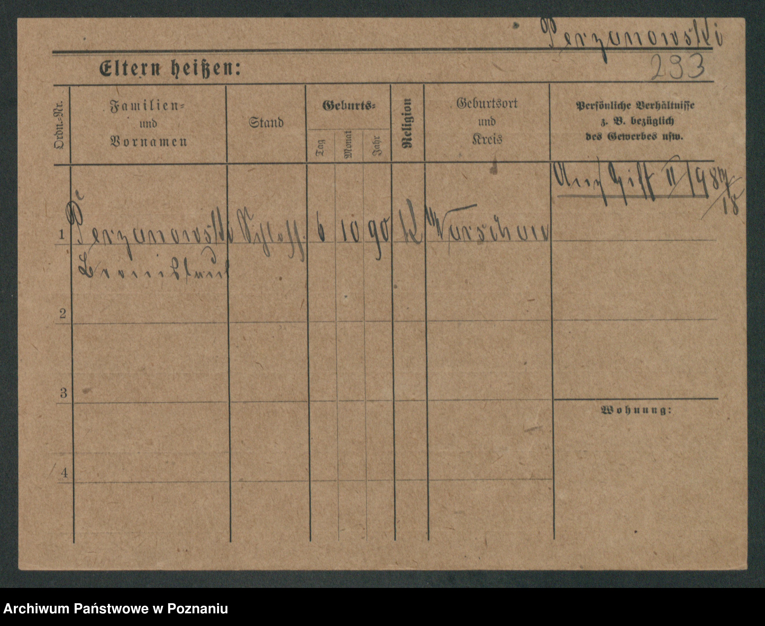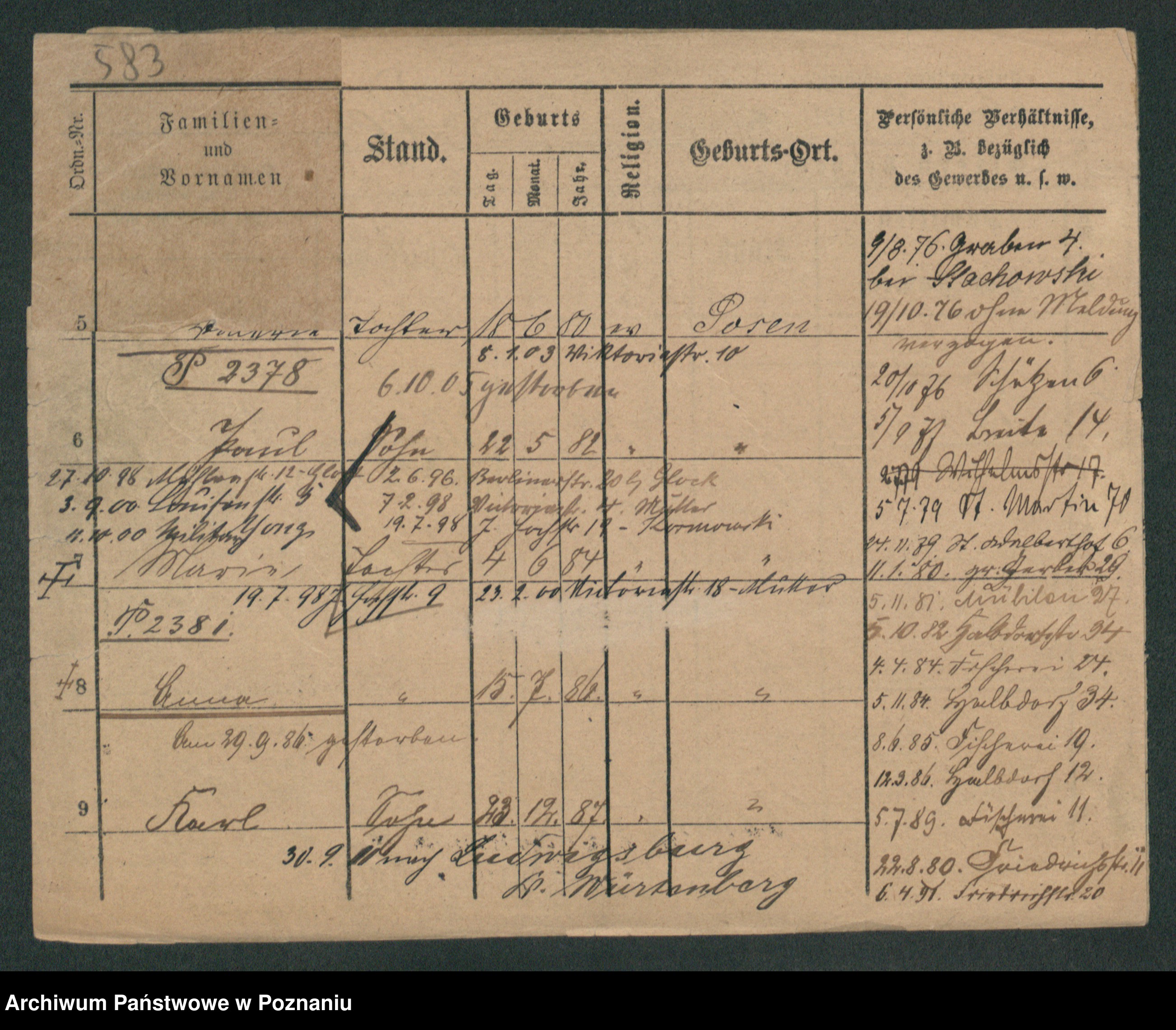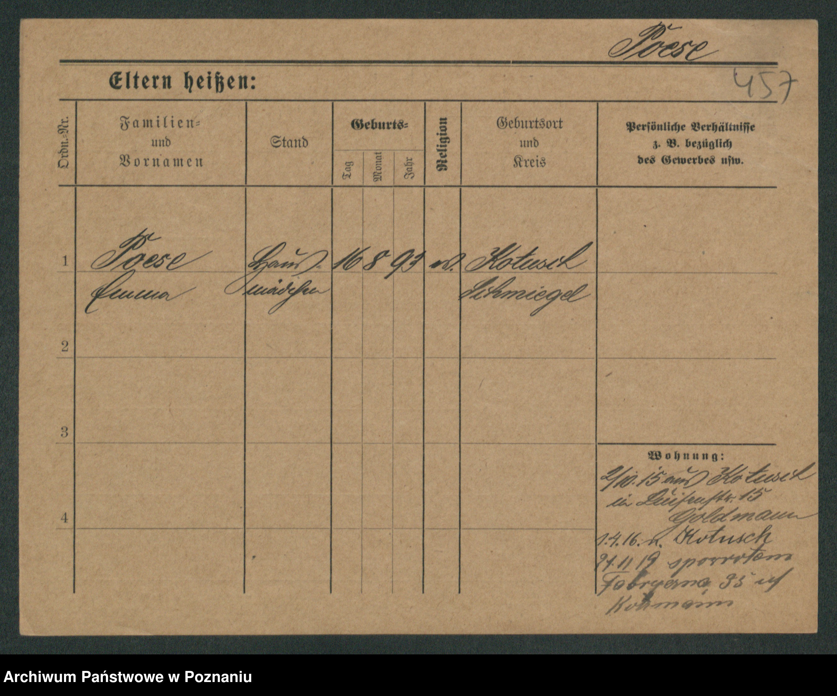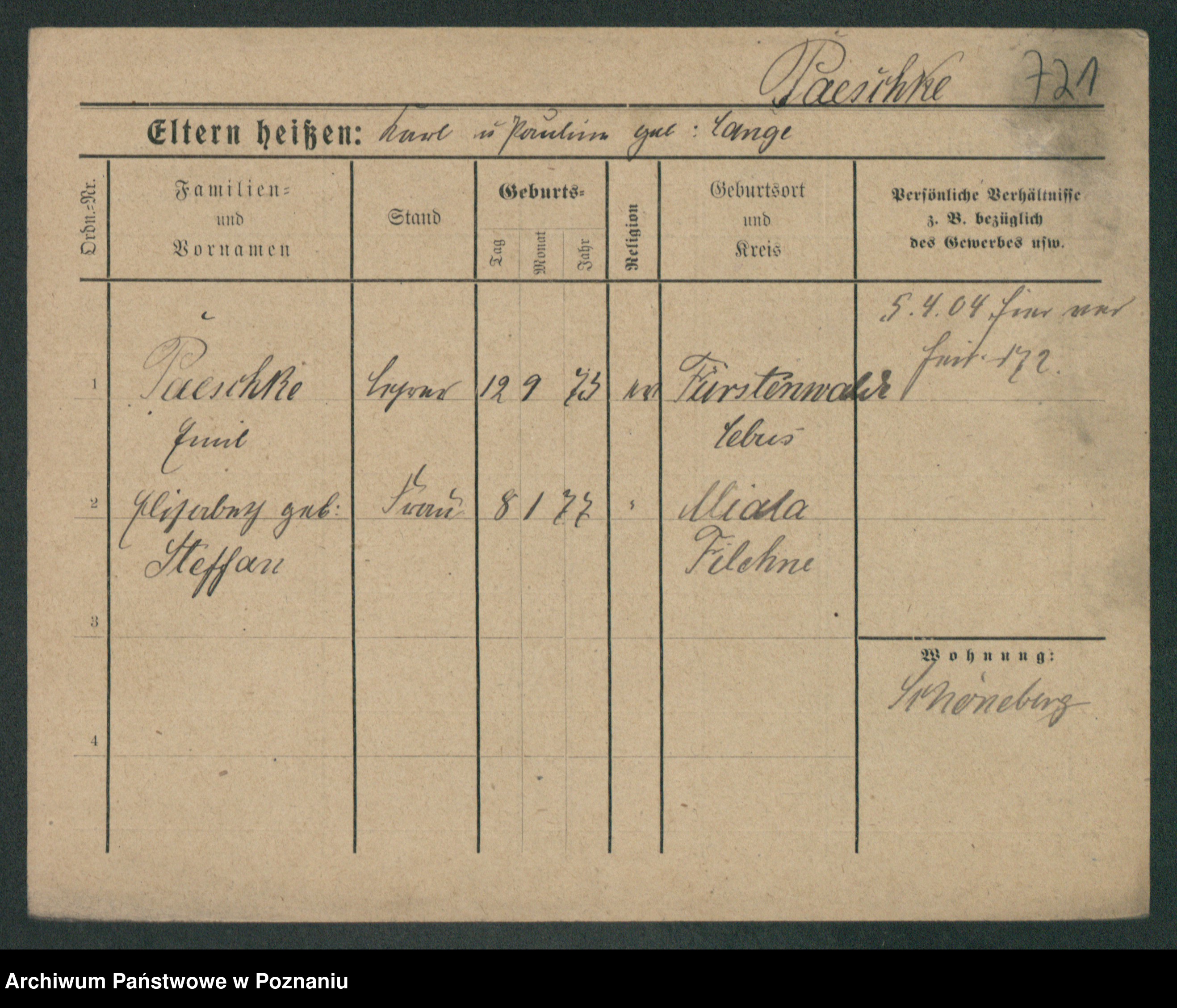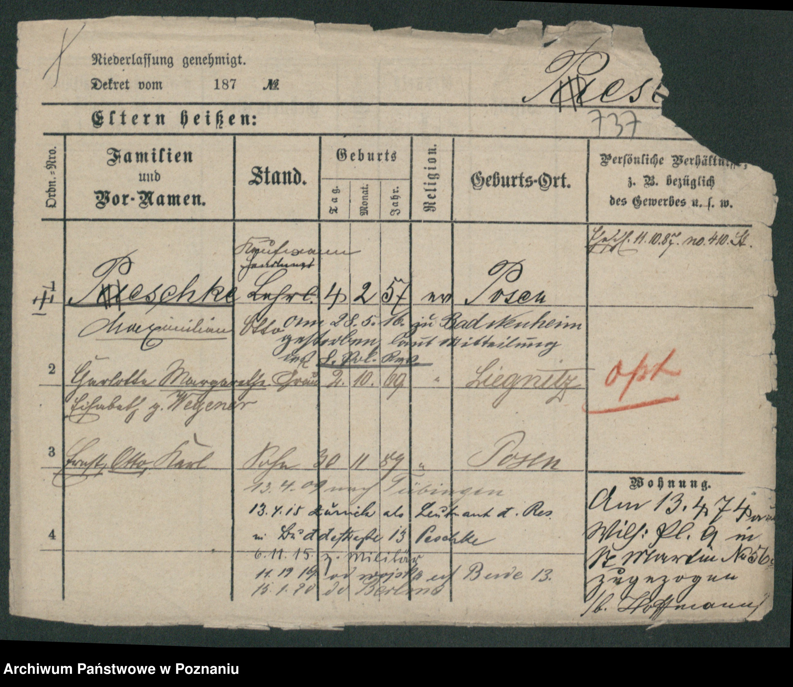 Podgląd karty osobowej dostępny jest po kliknięciu na nazwisko lub ikonkę karty. Można dokonywać powiększenia (ikony na górze) lub przechodzić między kolejnymi skanami (strzałki po bokach).