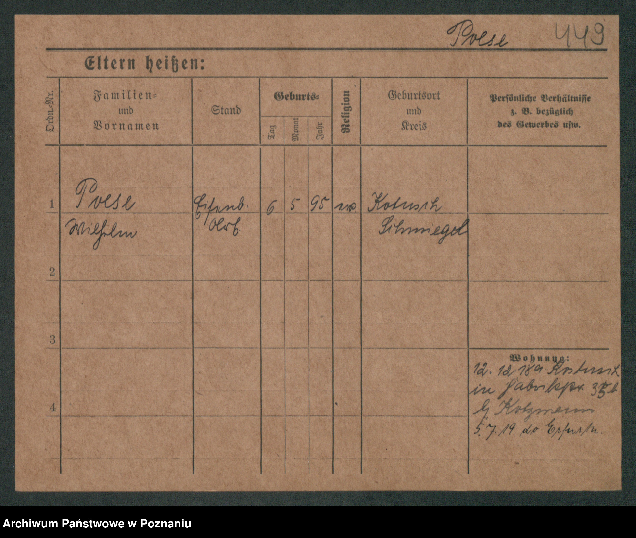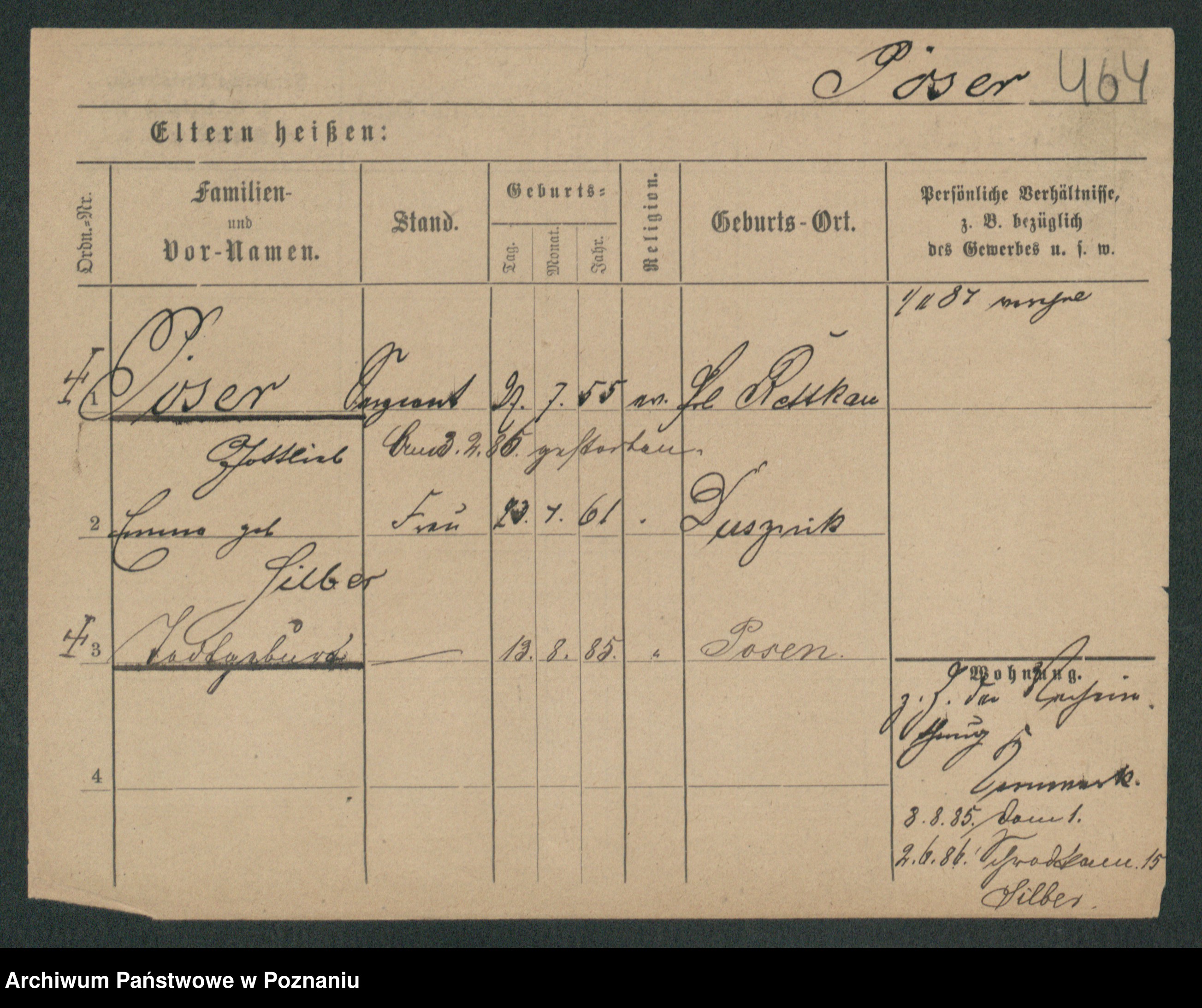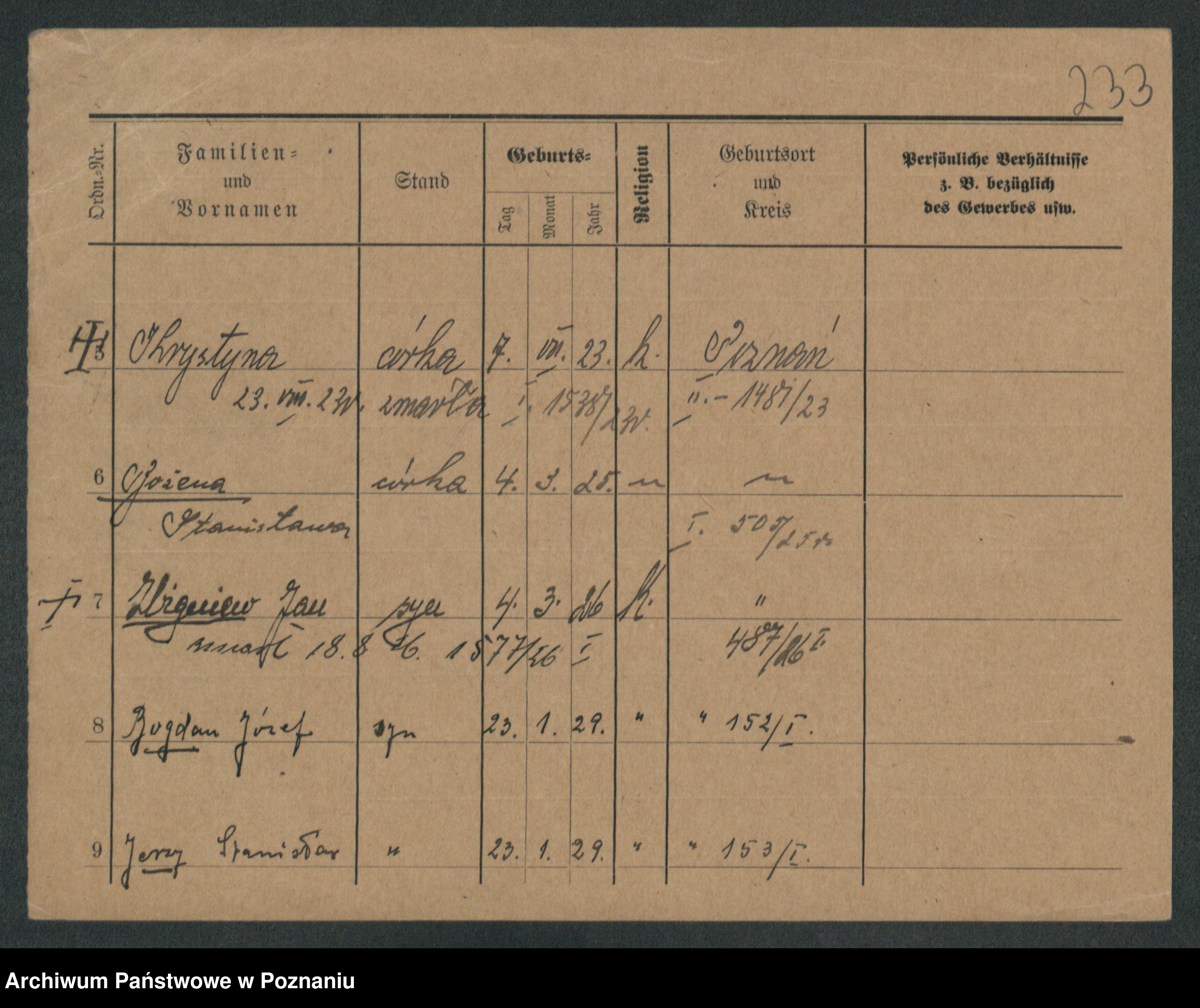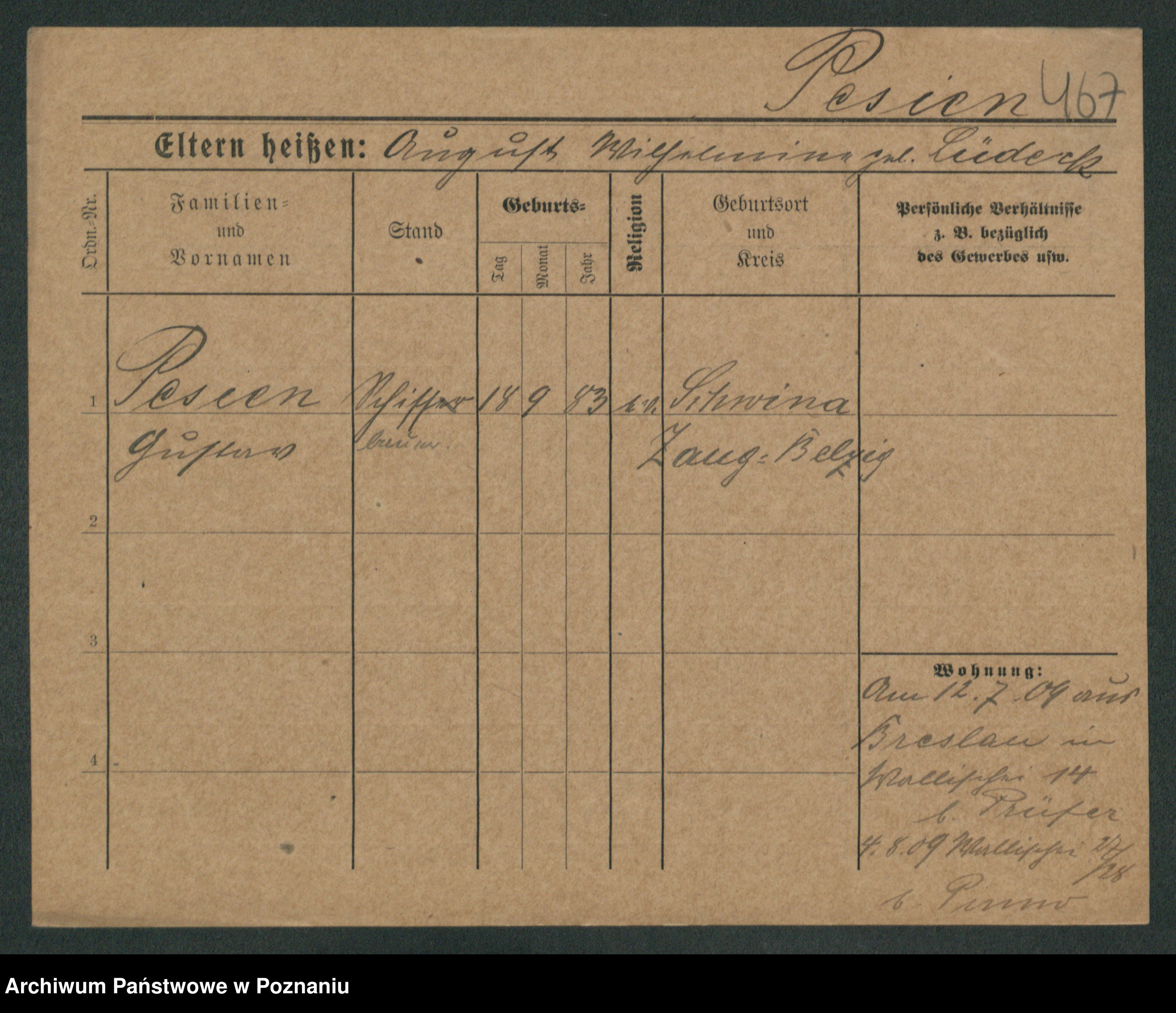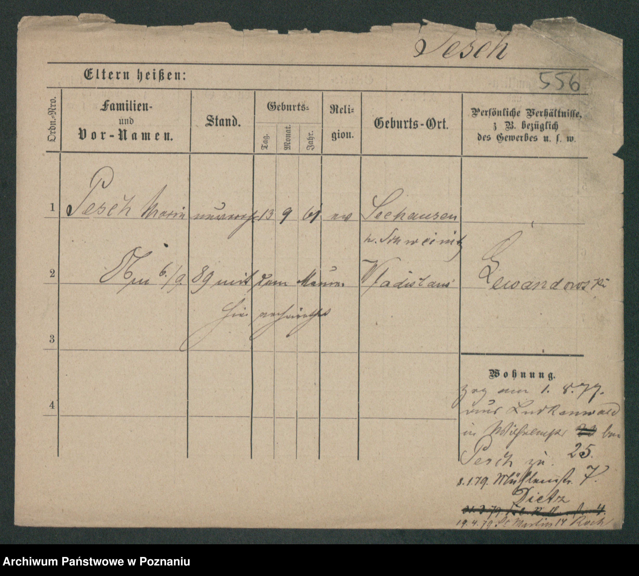 Podgląd karty osobowej dostępny jest po kliknięciu na nazwisko lub ikonkę karty. Można dokonywać powiększenia (ikony na górze) lub przechodzić między kolejnymi skanami (strzałki po bokach).