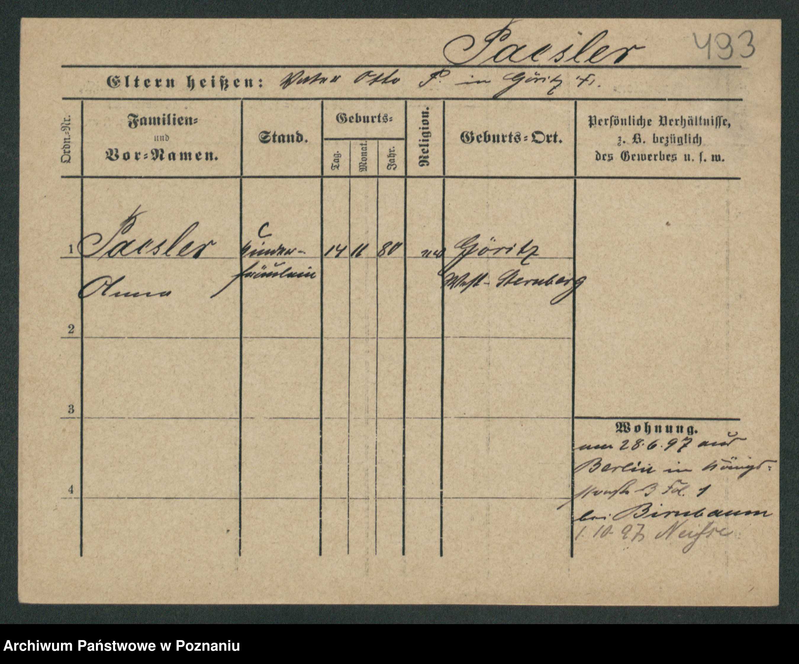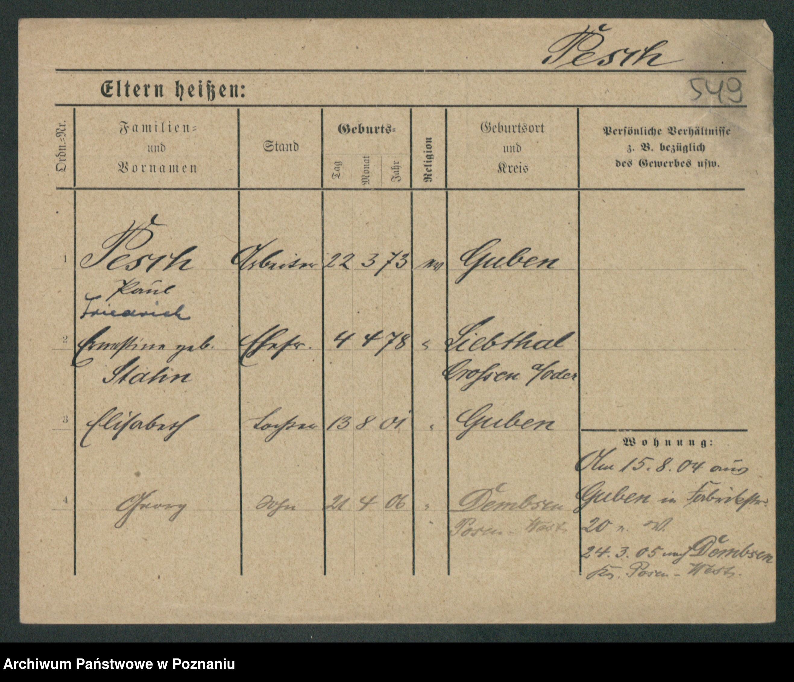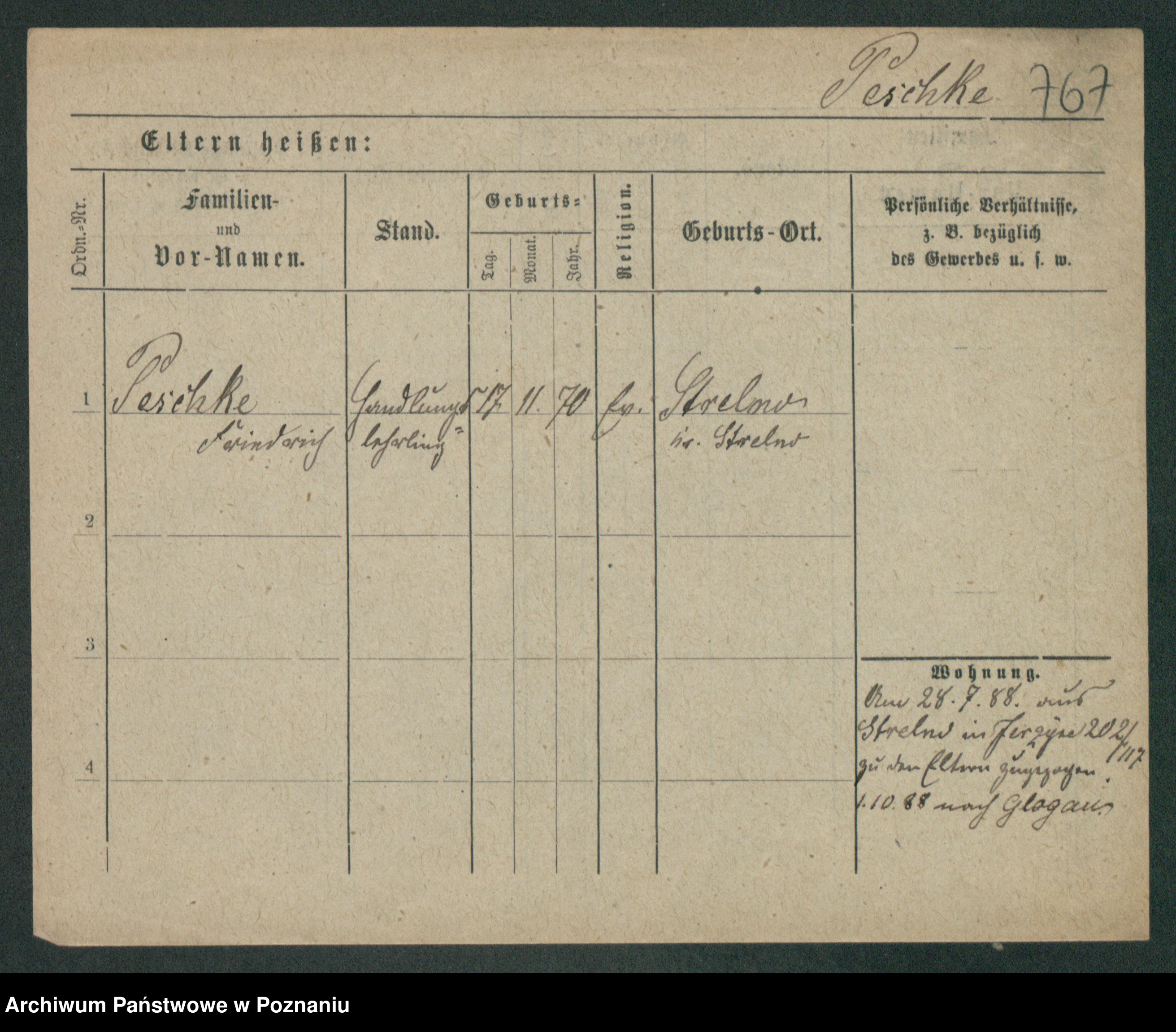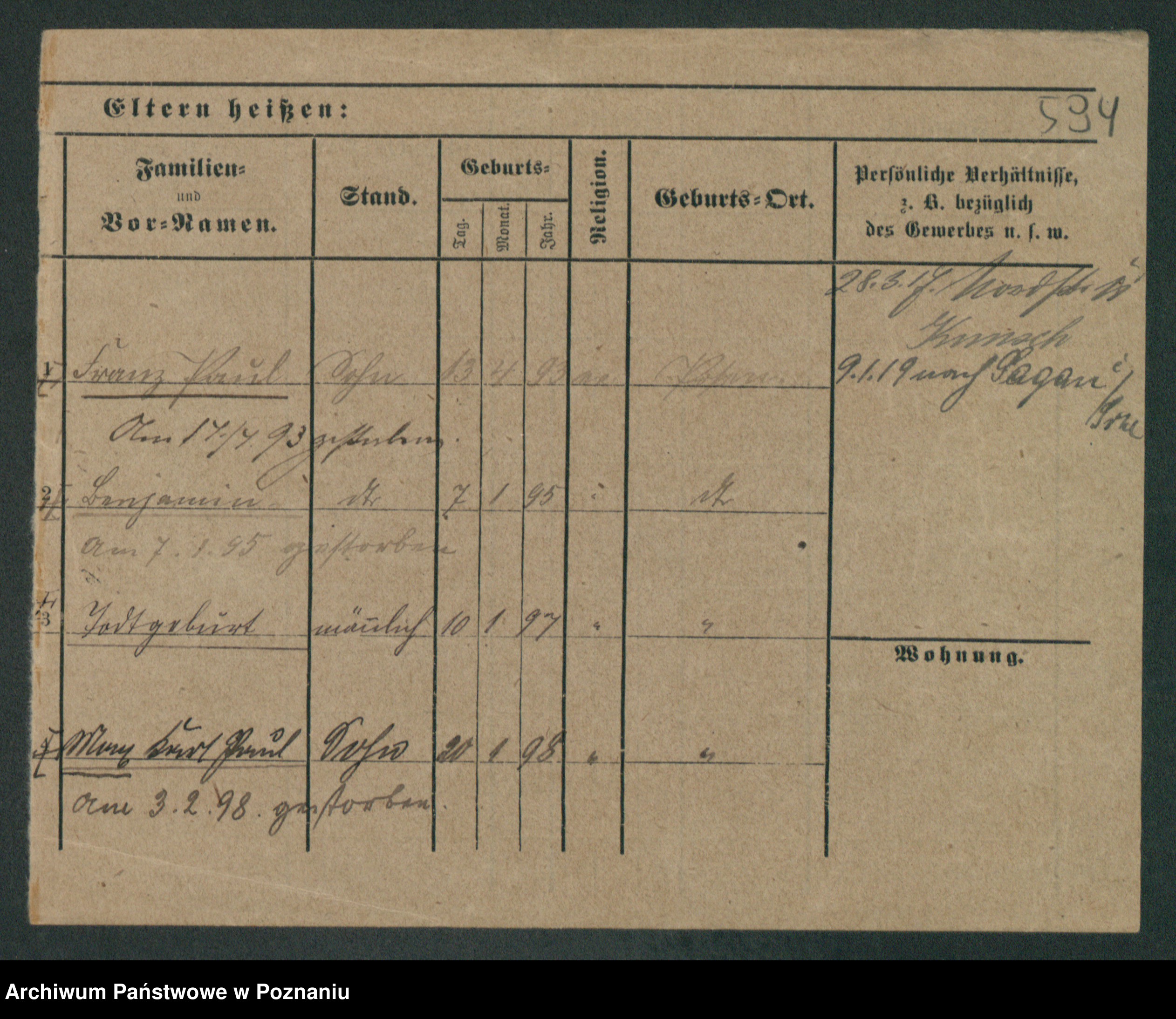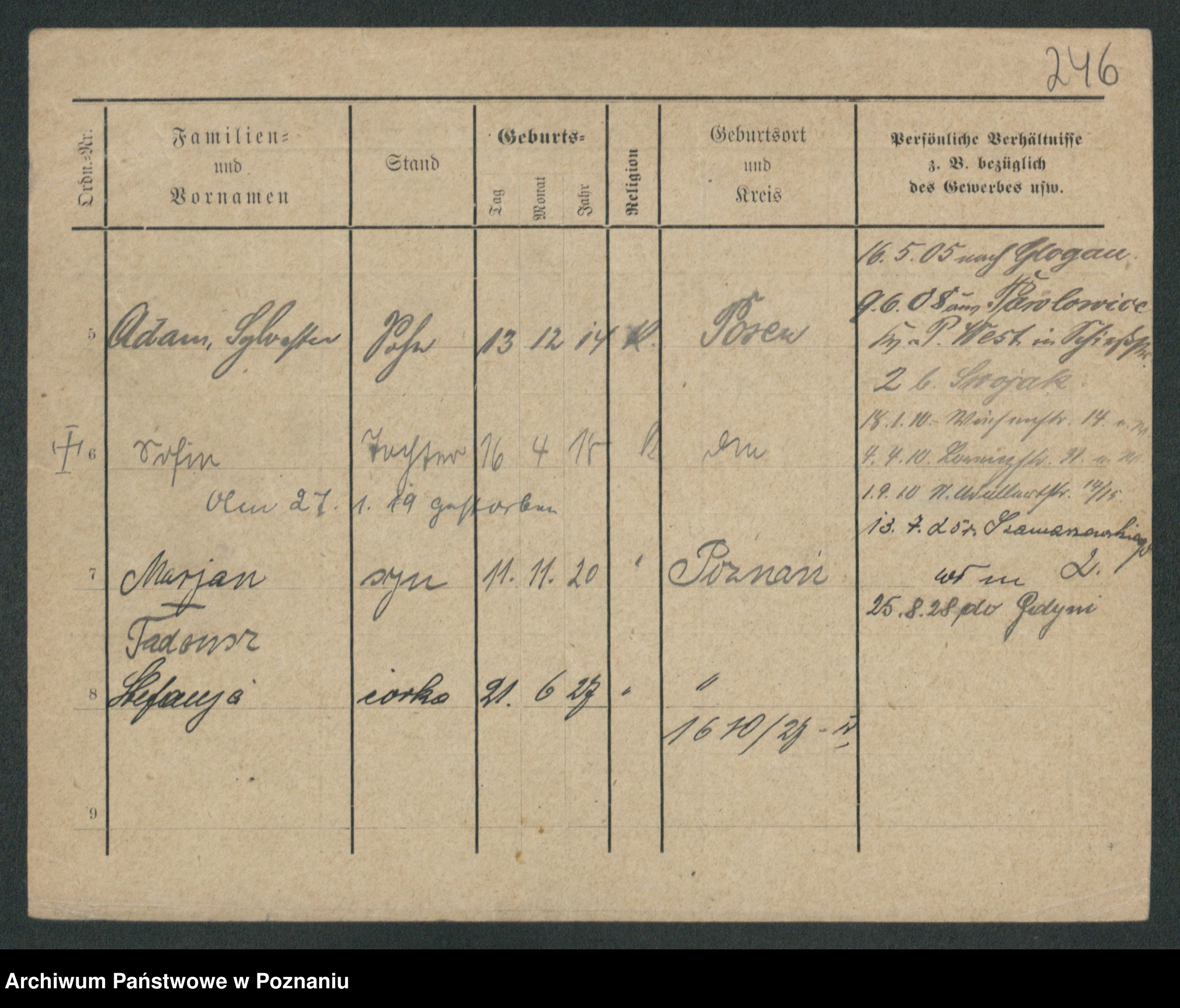 Podgląd karty osobowej dostępny jest po kliknięciu na nazwisko lub ikonkę karty. Można dokonywać powiększenia (ikony na górze) lub przechodzić między kolejnymi skanami (strzałki po bokach).