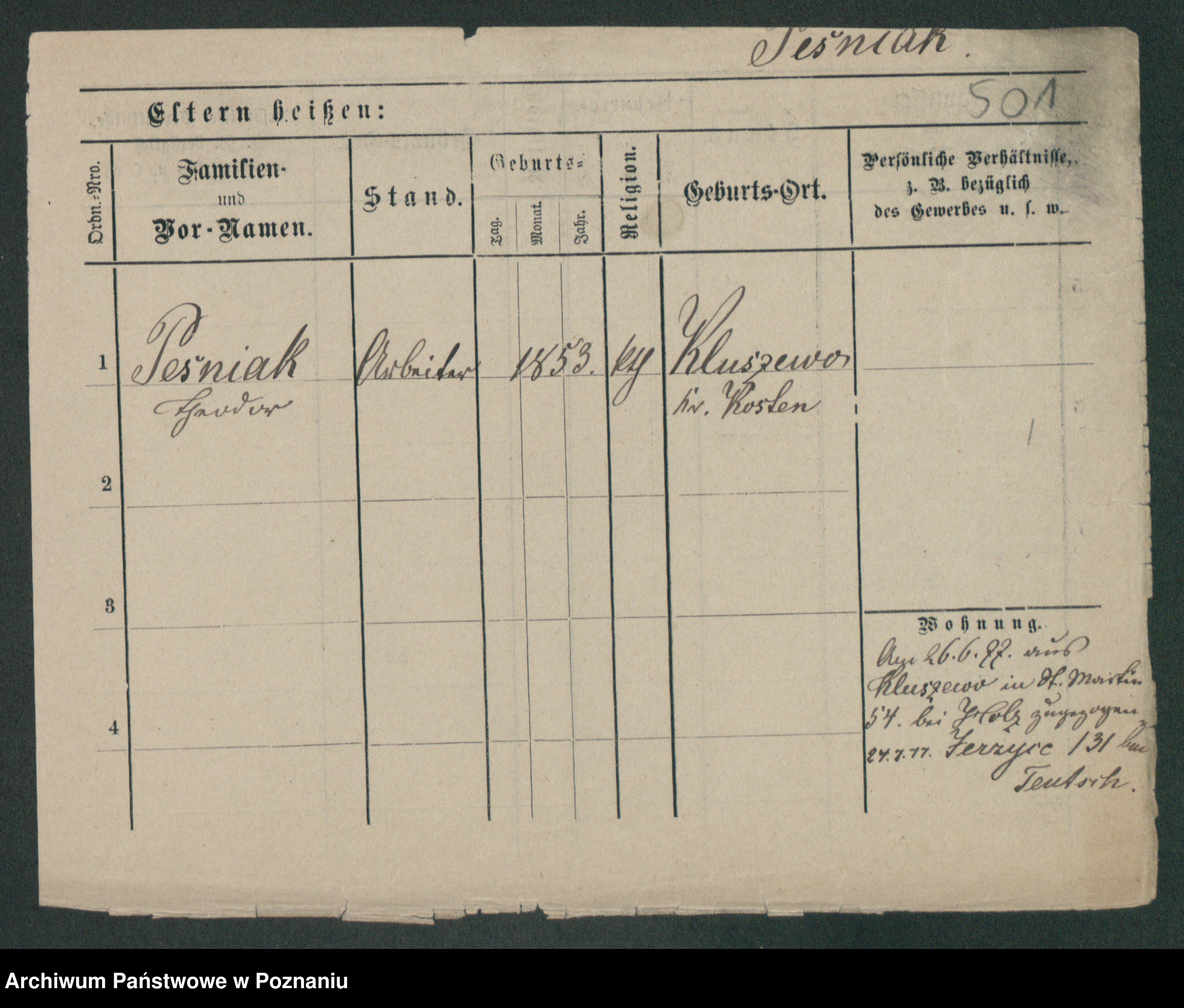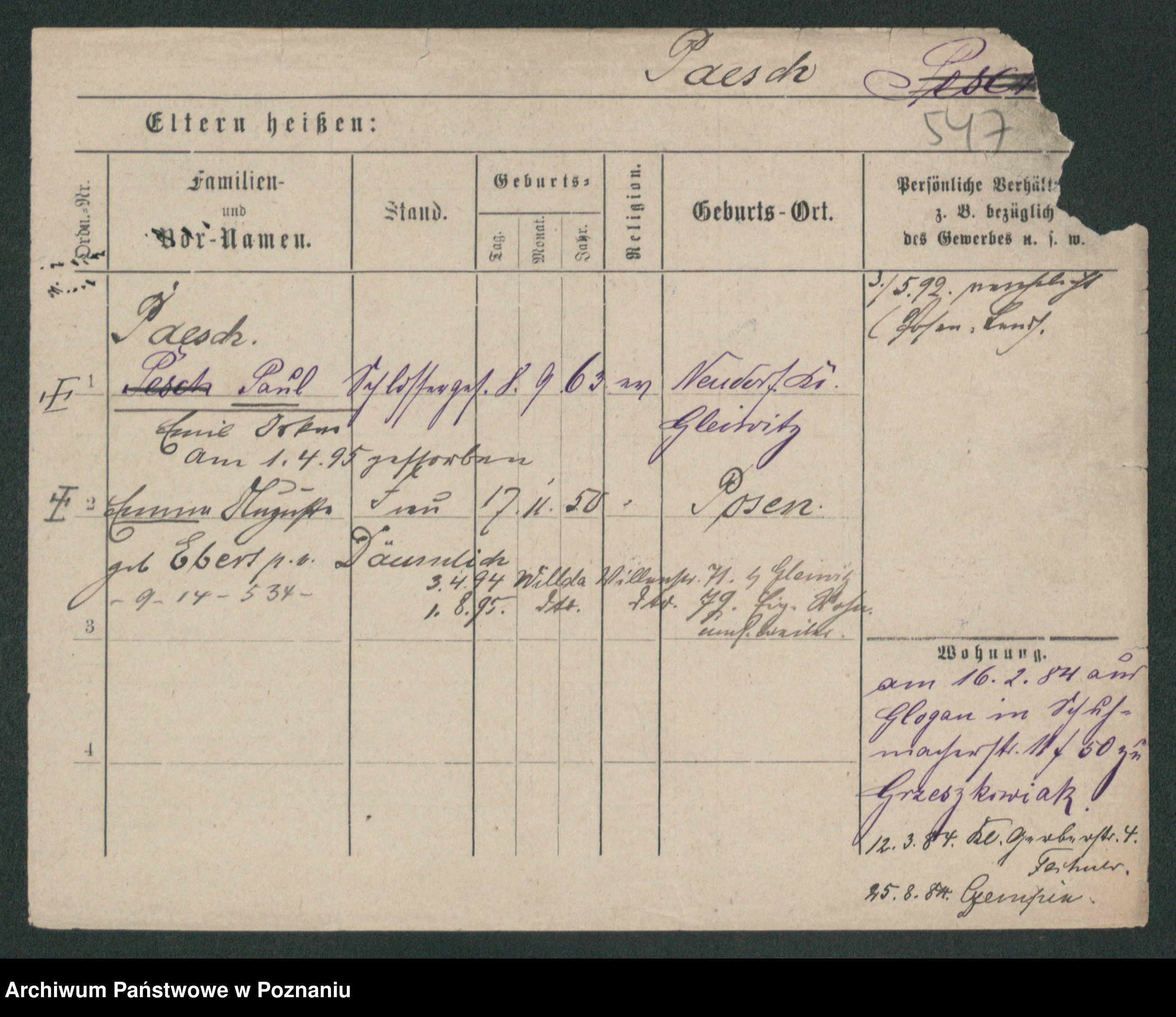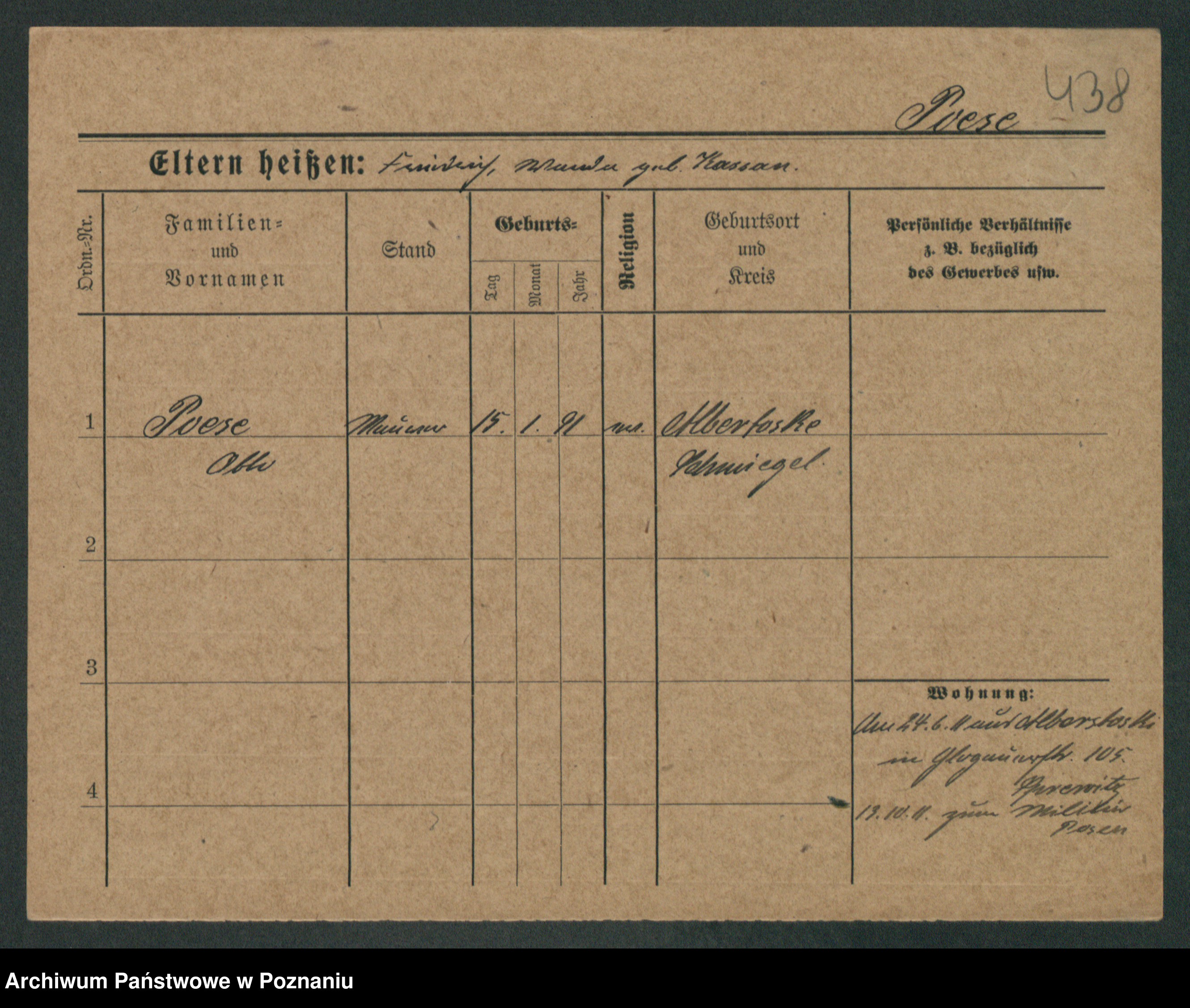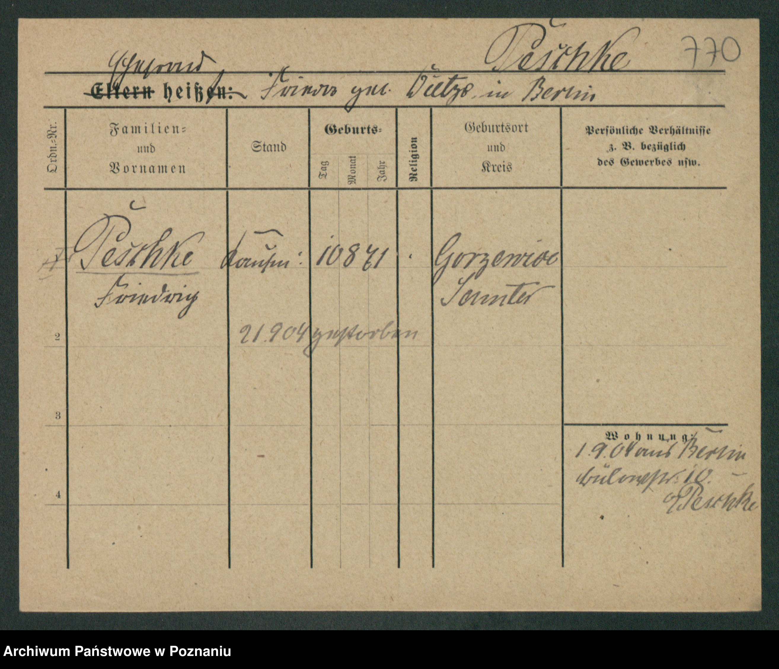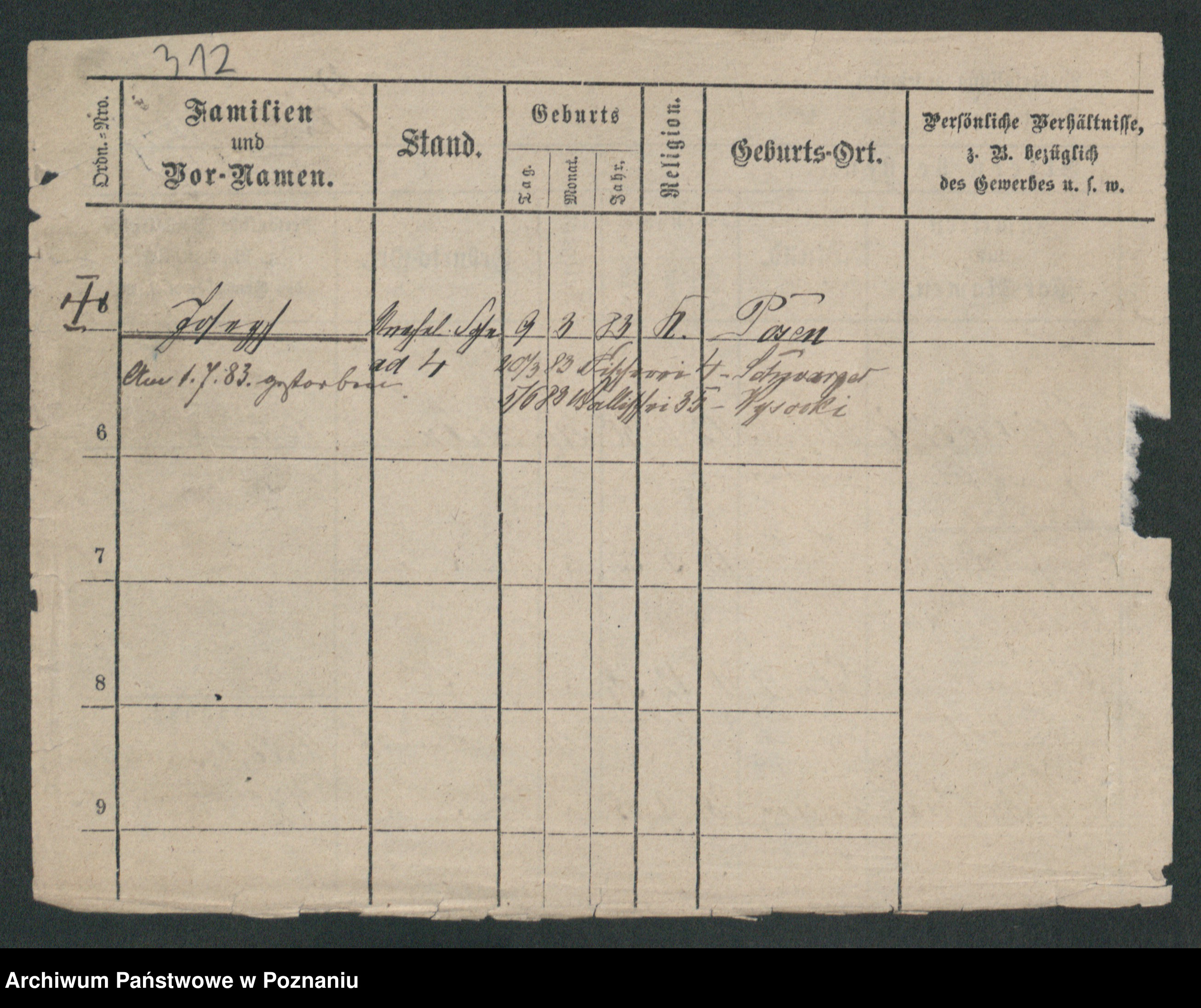 Podgląd karty osobowej dostępny jest po kliknięciu na nazwisko lub ikonkę karty. Można dokonywać powiększenia (ikony na górze) lub przechodzić między kolejnymi skanami (strzałki po bokach).
