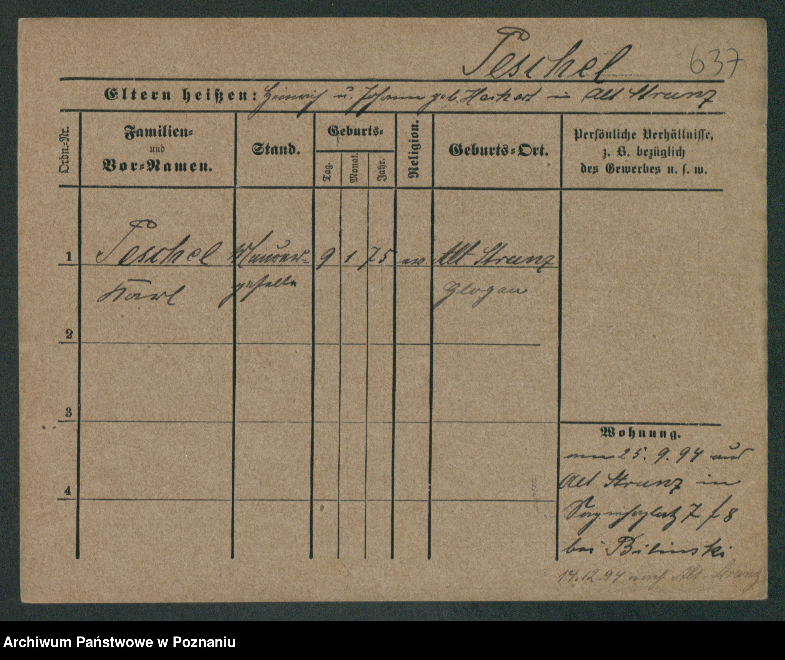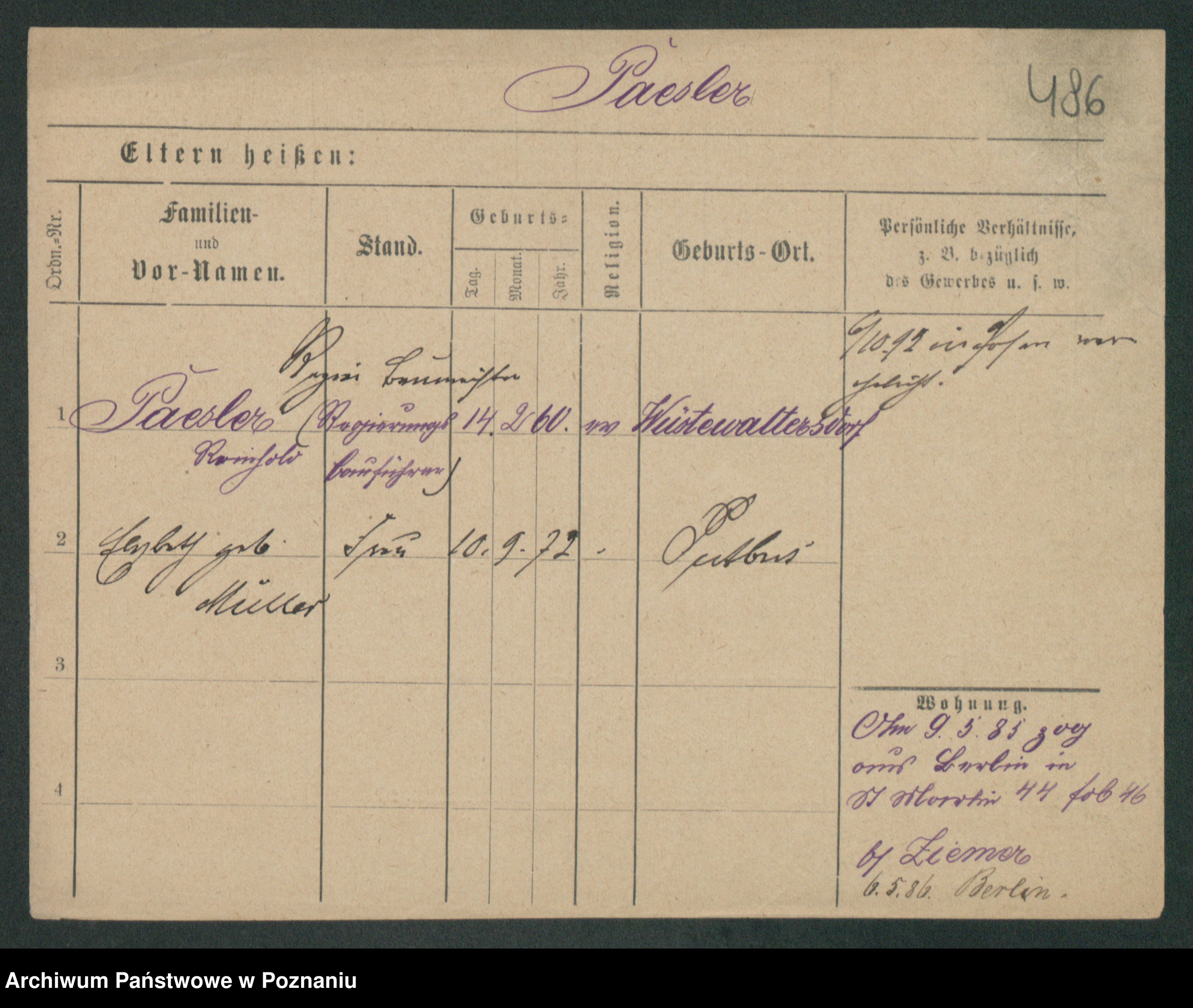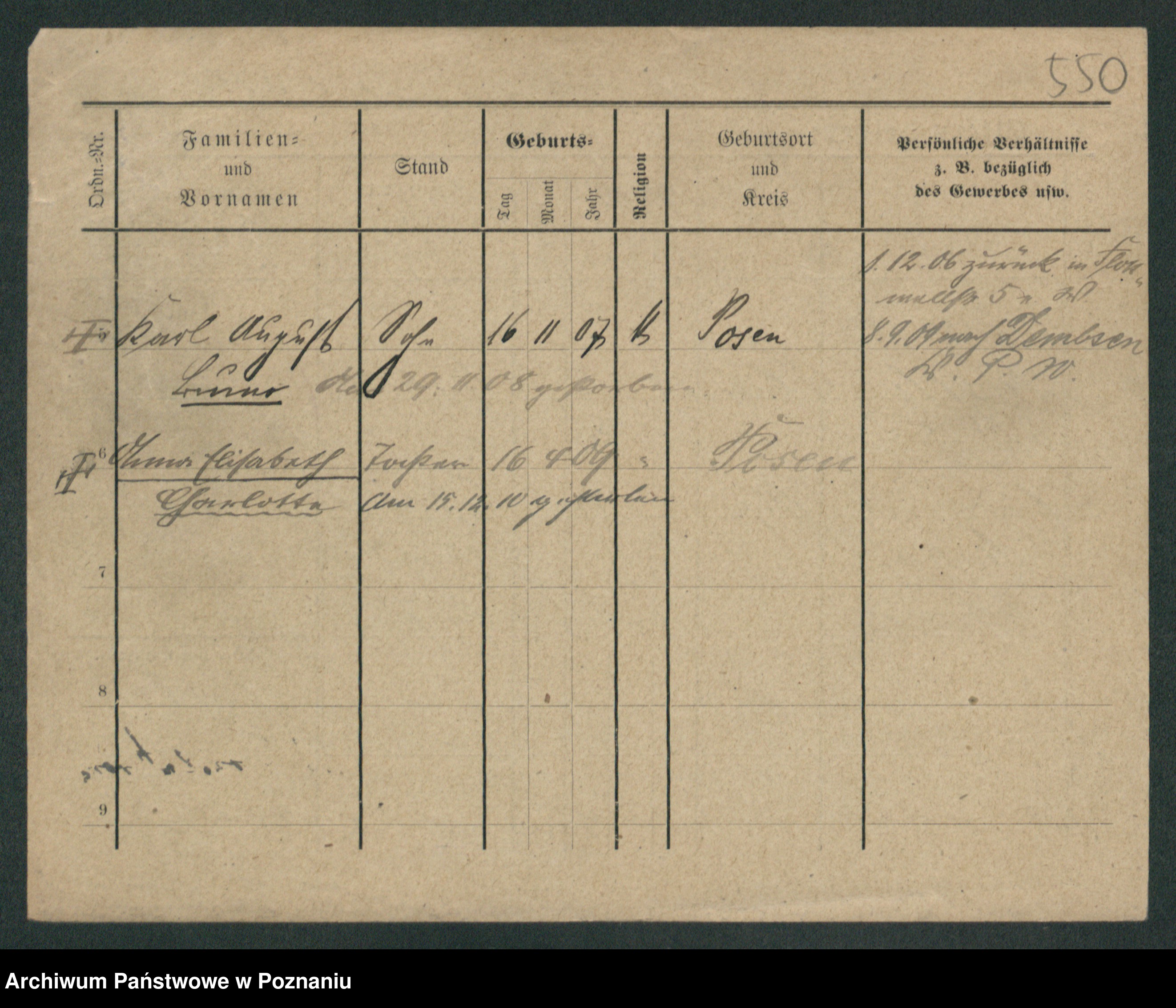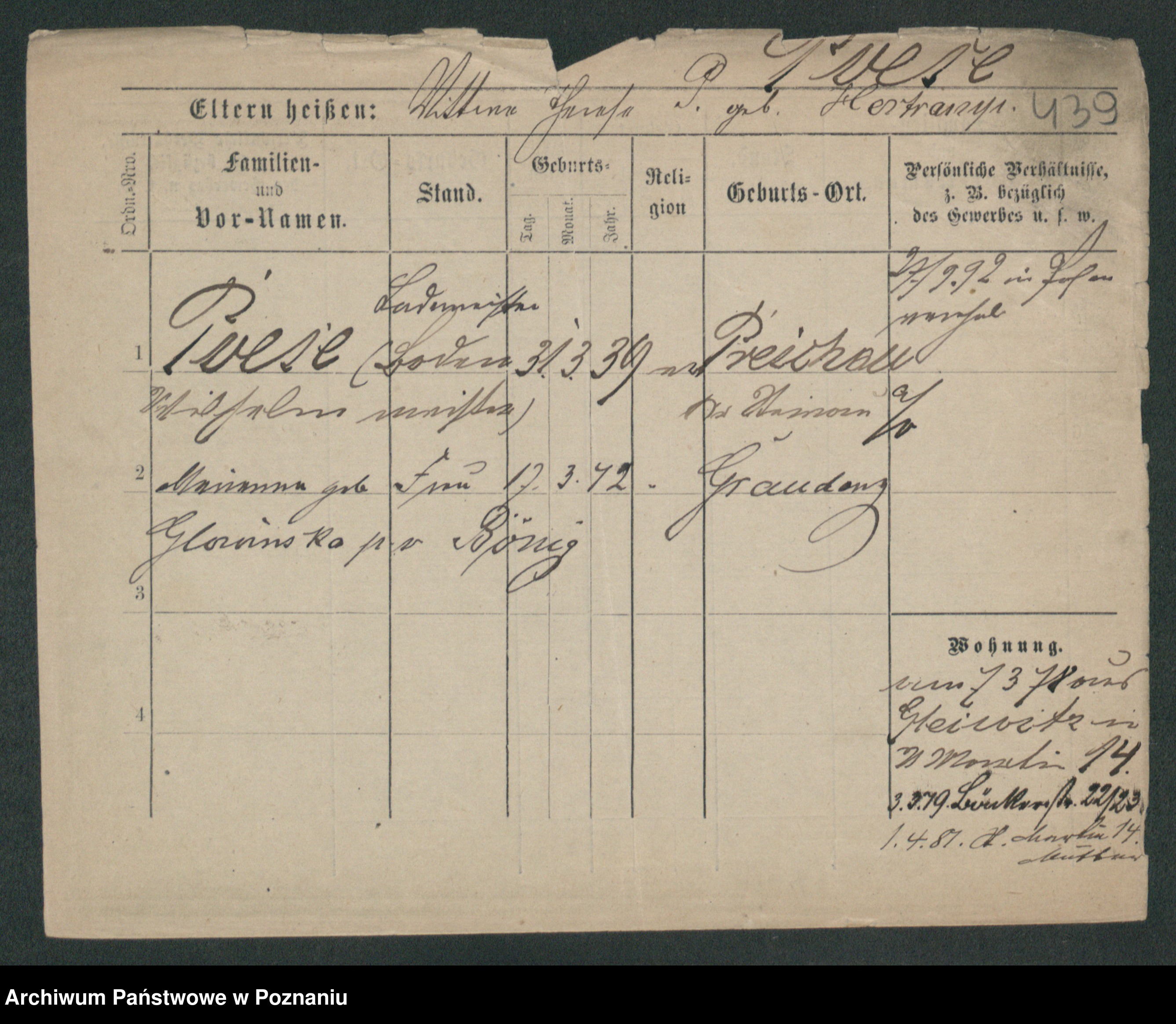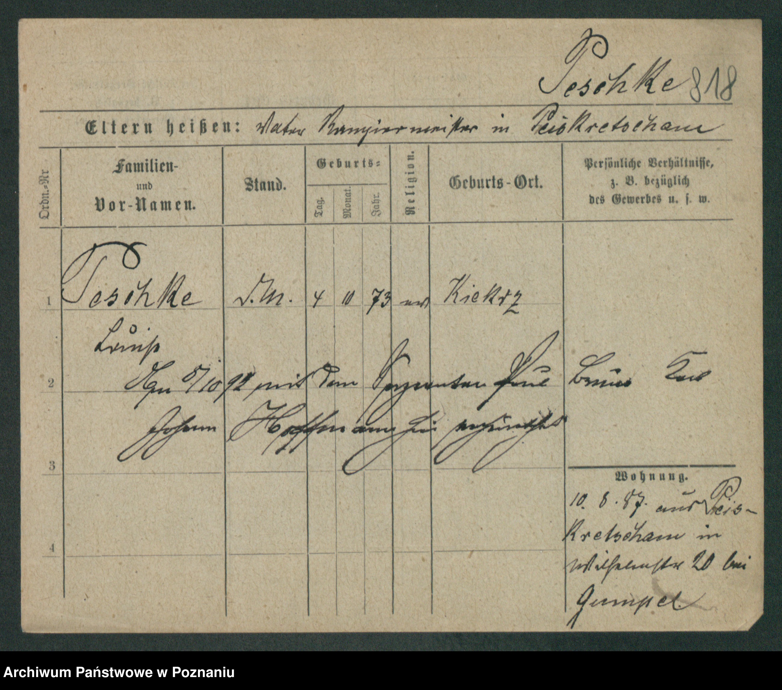 Podgląd karty osobowej dostępny jest po kliknięciu na nazwisko lub ikonkę karty. Można dokonywać powiększenia (ikony na górze) lub przechodzić między kolejnymi skanami (strzałki po bokach).