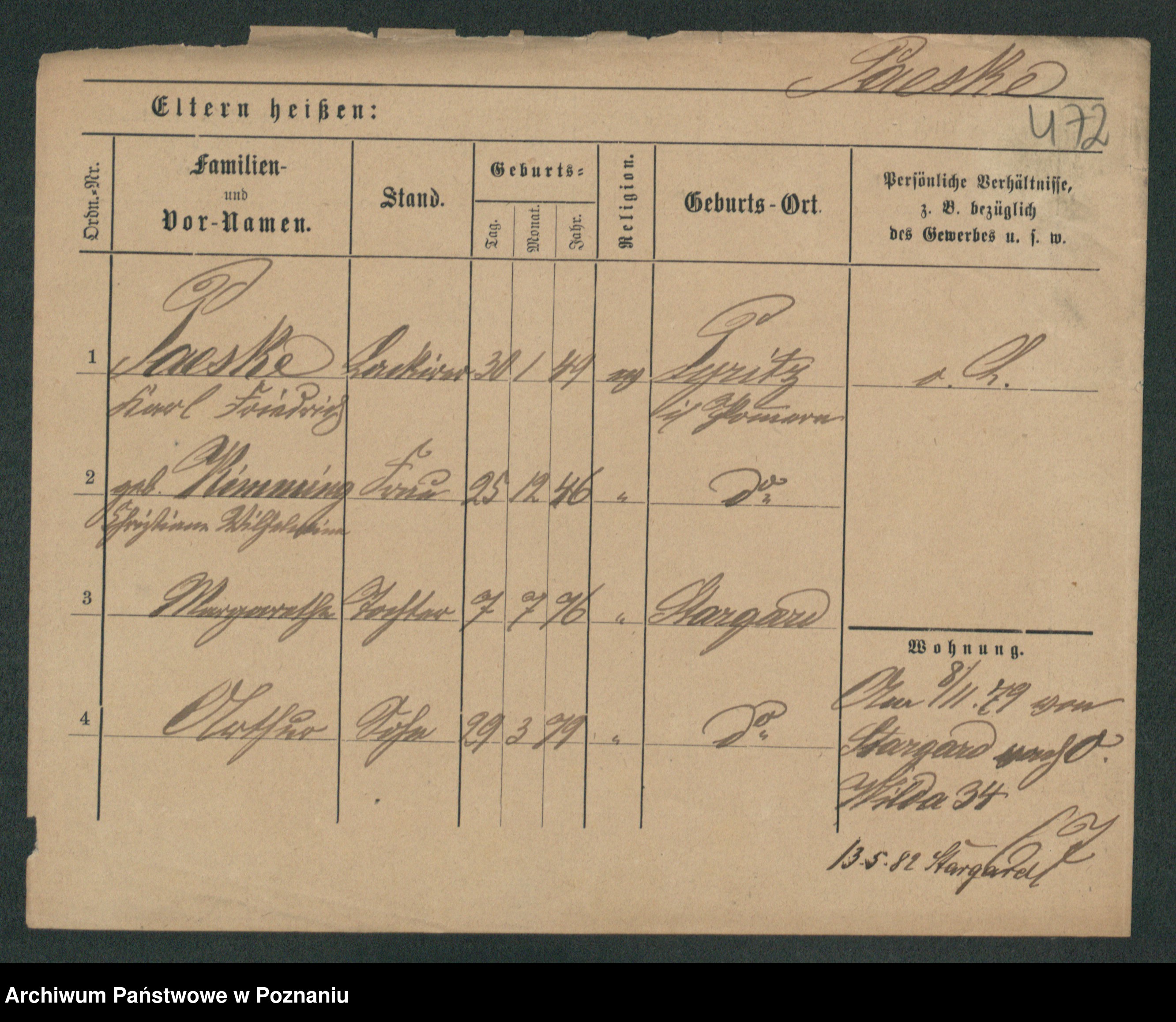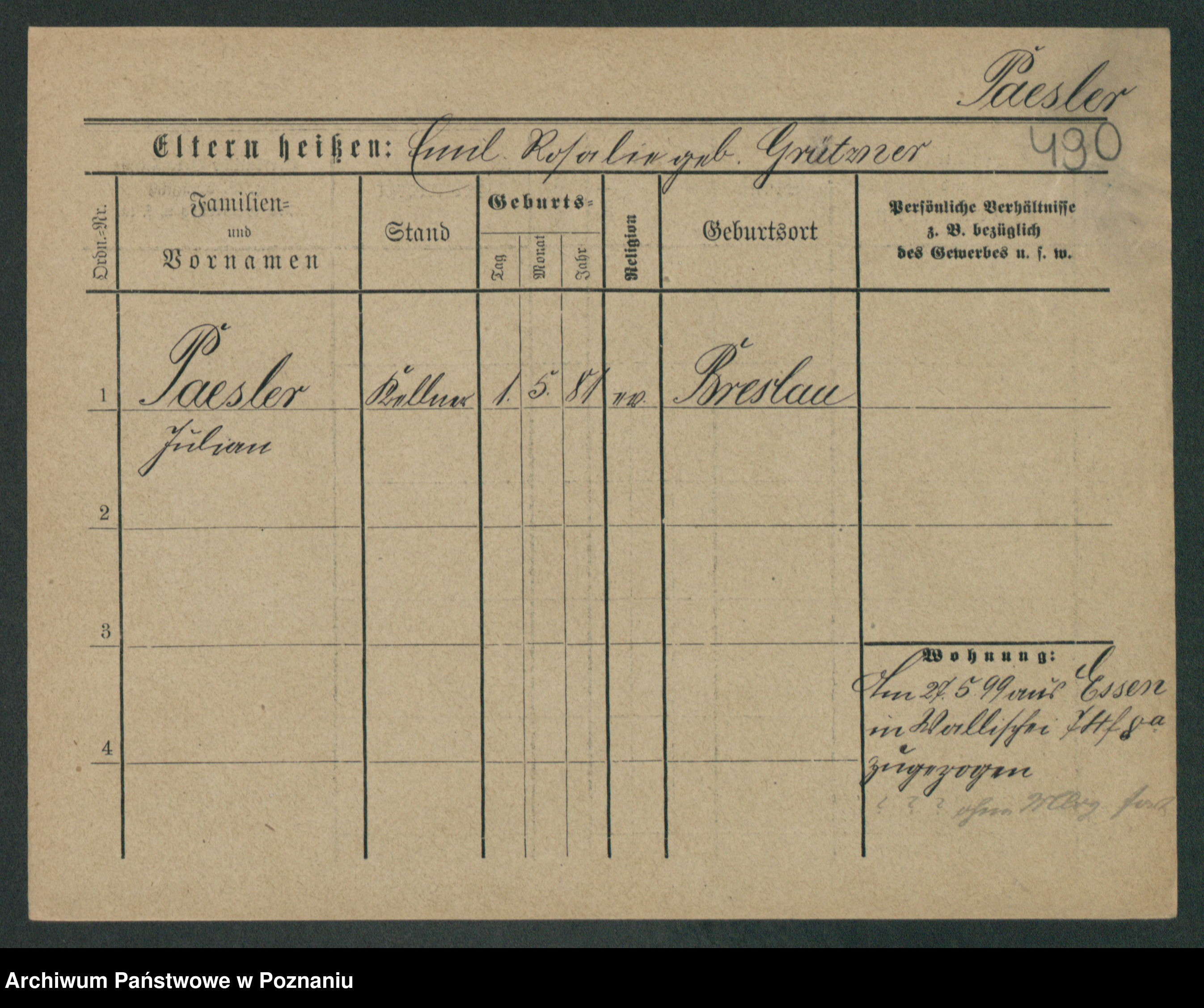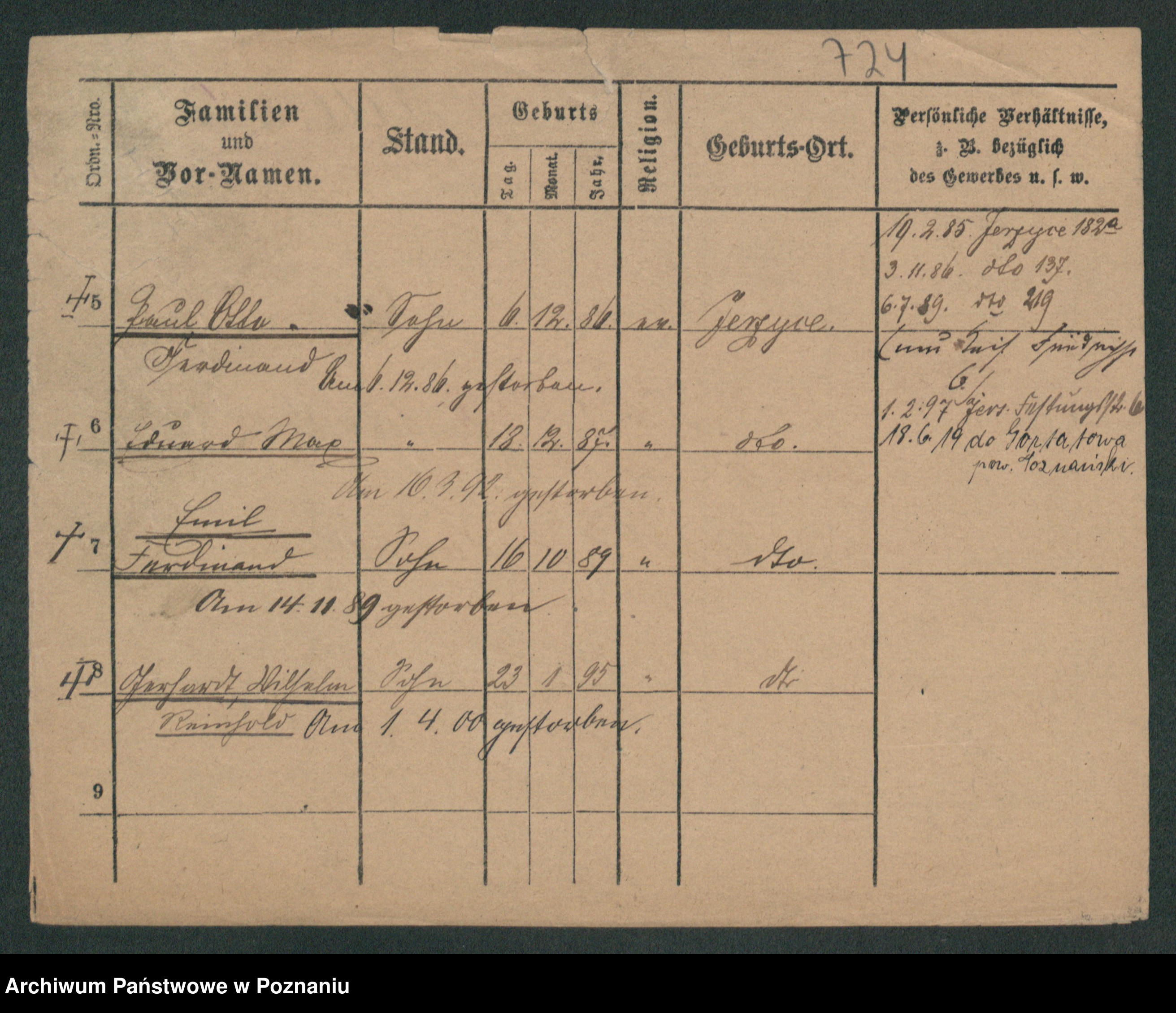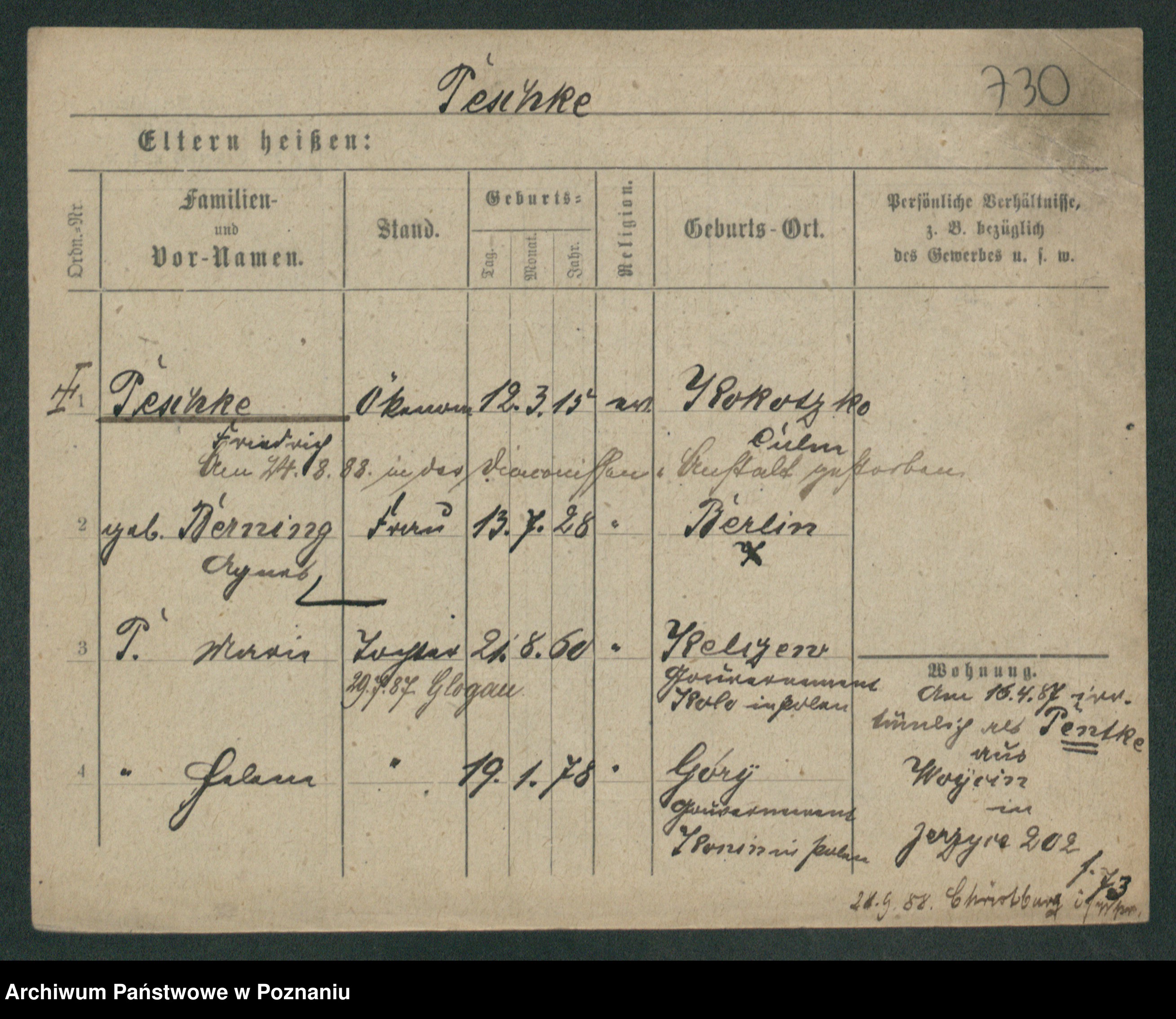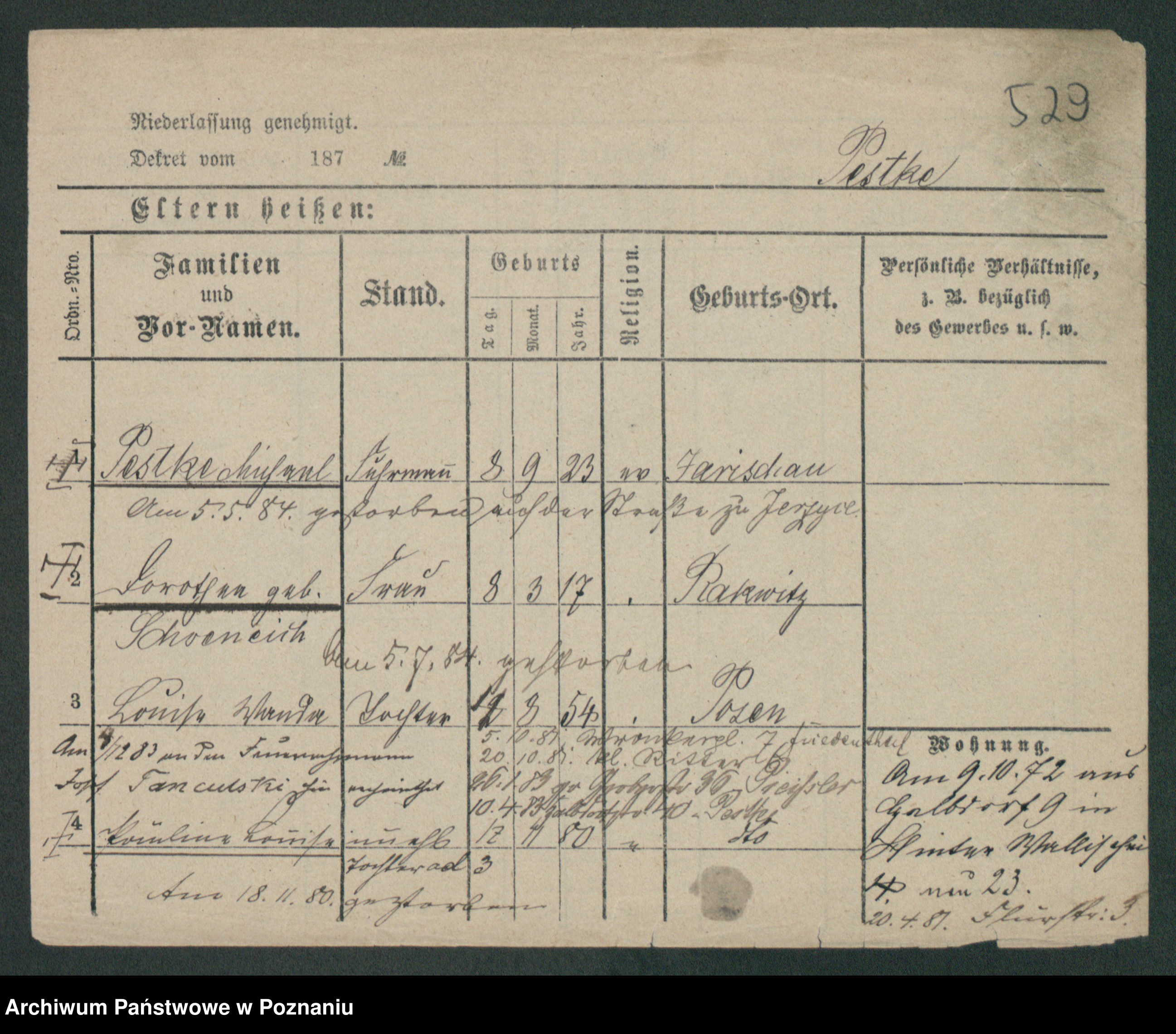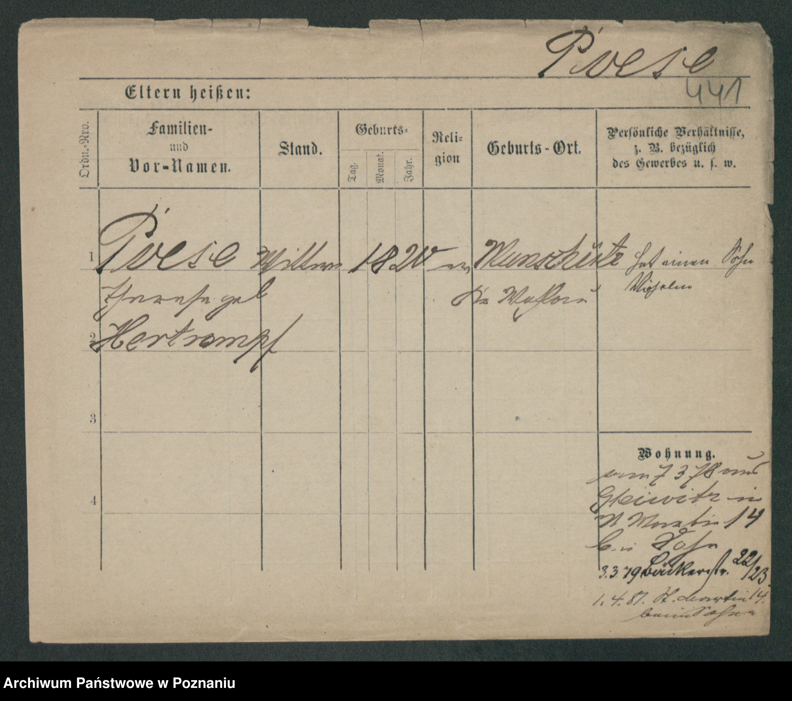 Podgląd karty osobowej dostępny jest po kliknięciu na nazwisko lub ikonkę karty. Można dokonywać powiększenia (ikony na górze) lub przechodzić między kolejnymi skanami (strzałki po bokach).