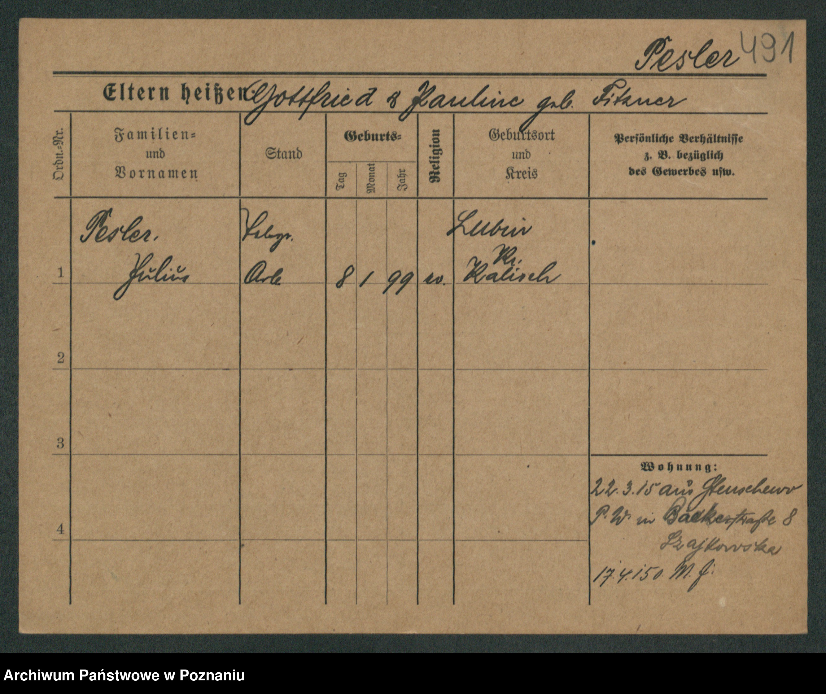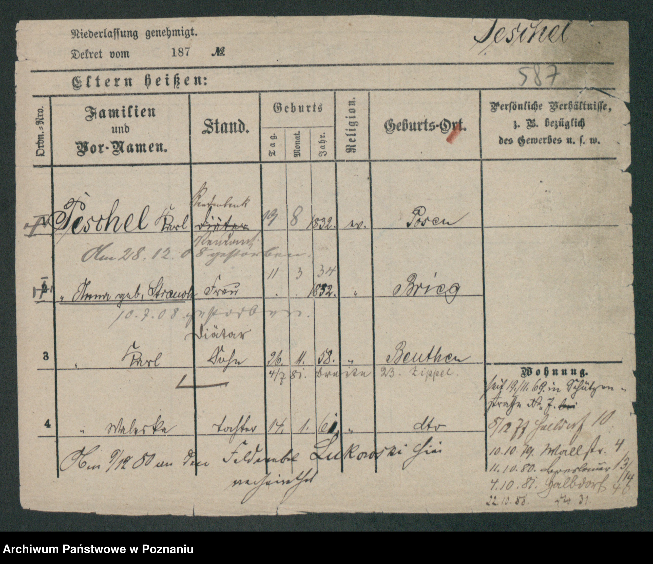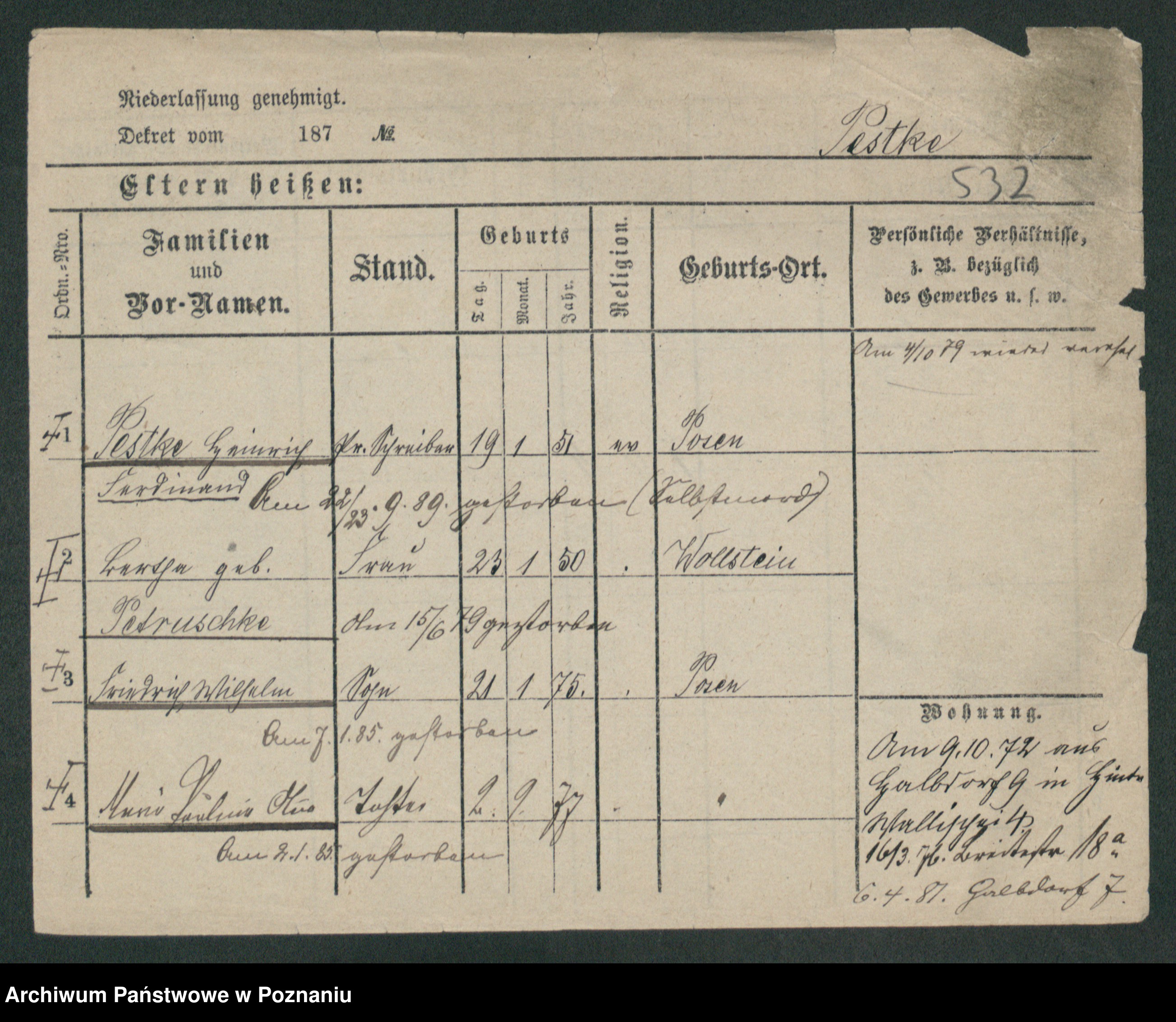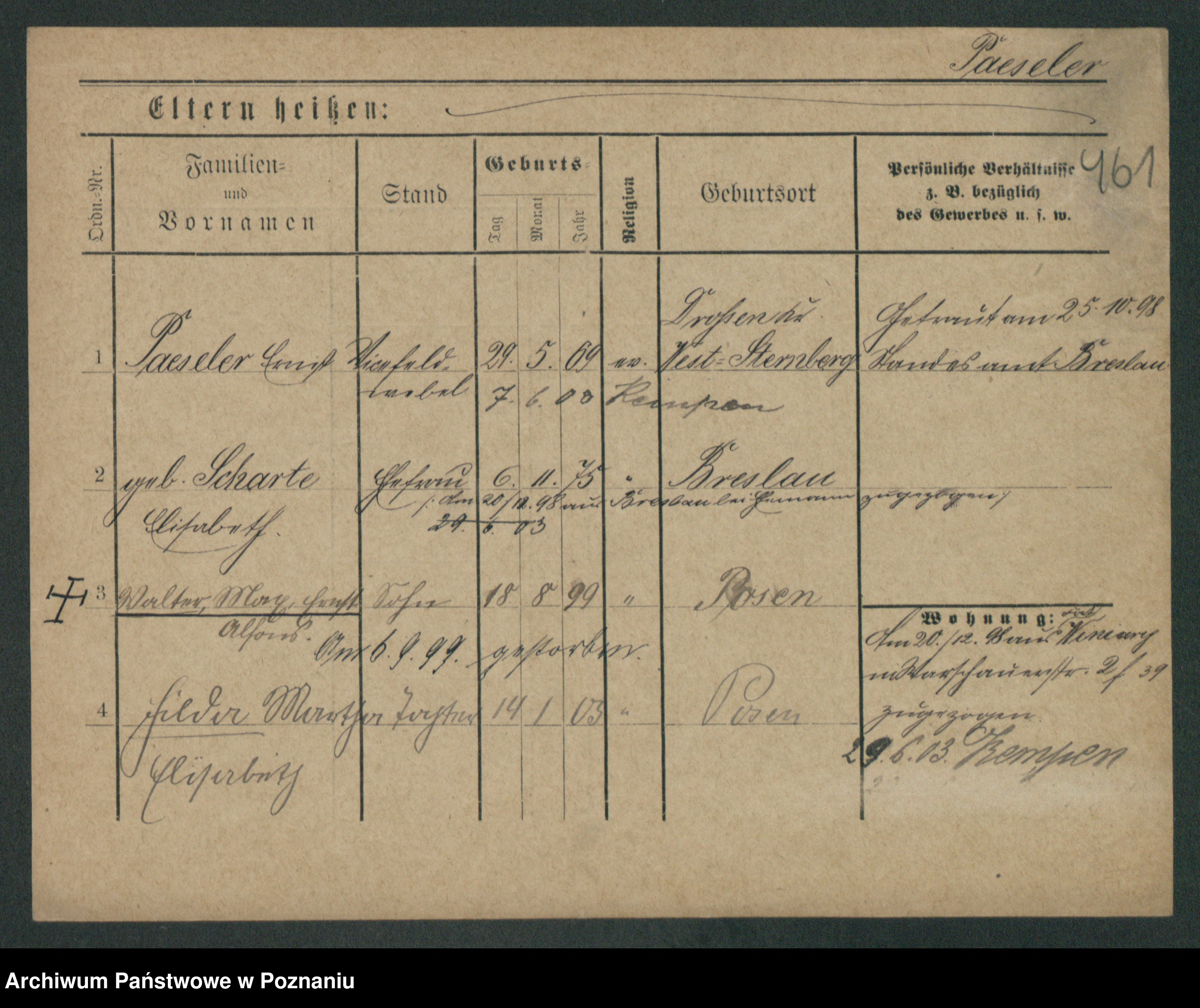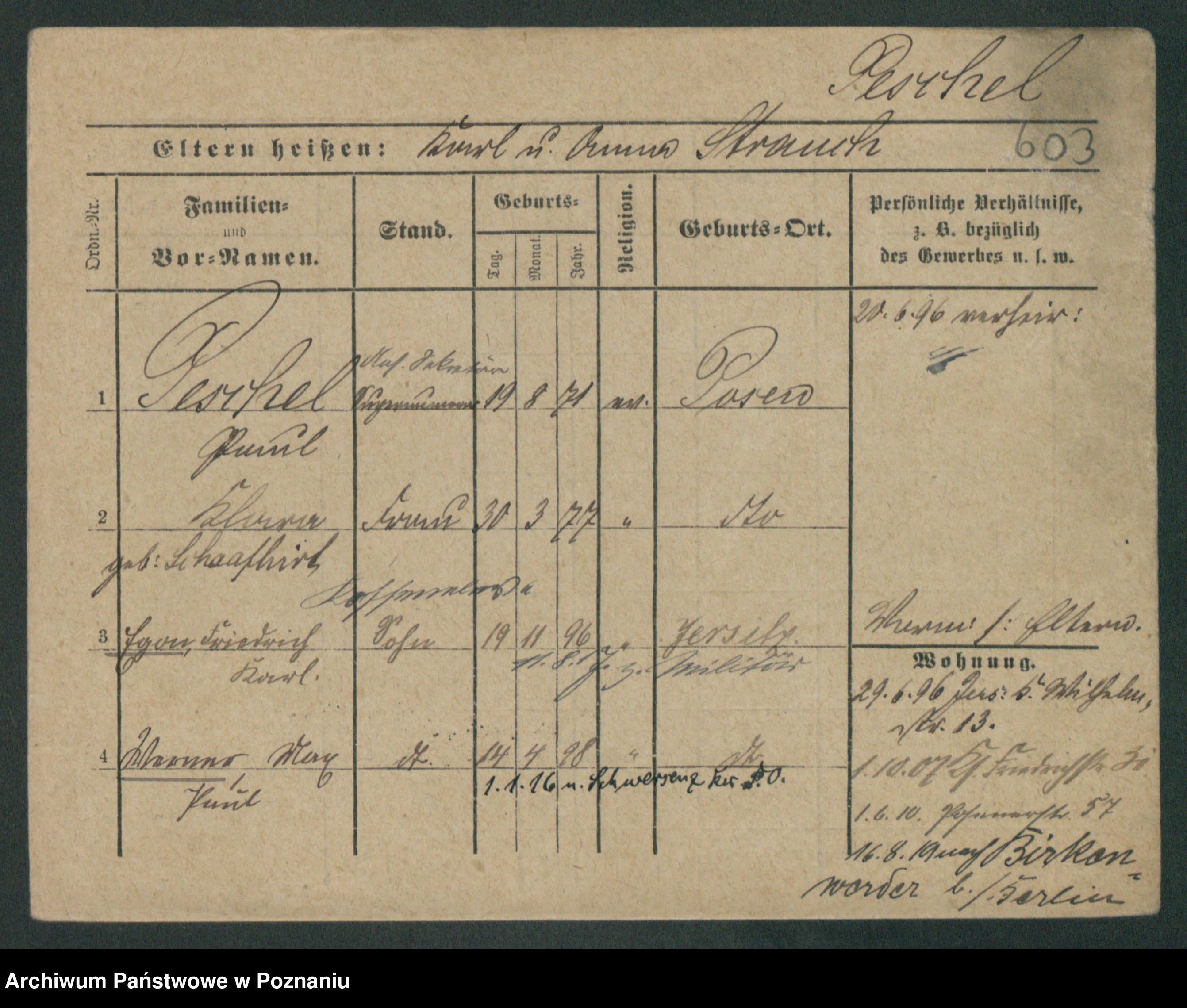 Podgląd karty osobowej dostępny jest po kliknięciu na nazwisko lub ikonkę karty. Można dokonywać powiększenia (ikony na górze) lub przechodzić między kolejnymi skanami (strzałki po bokach).