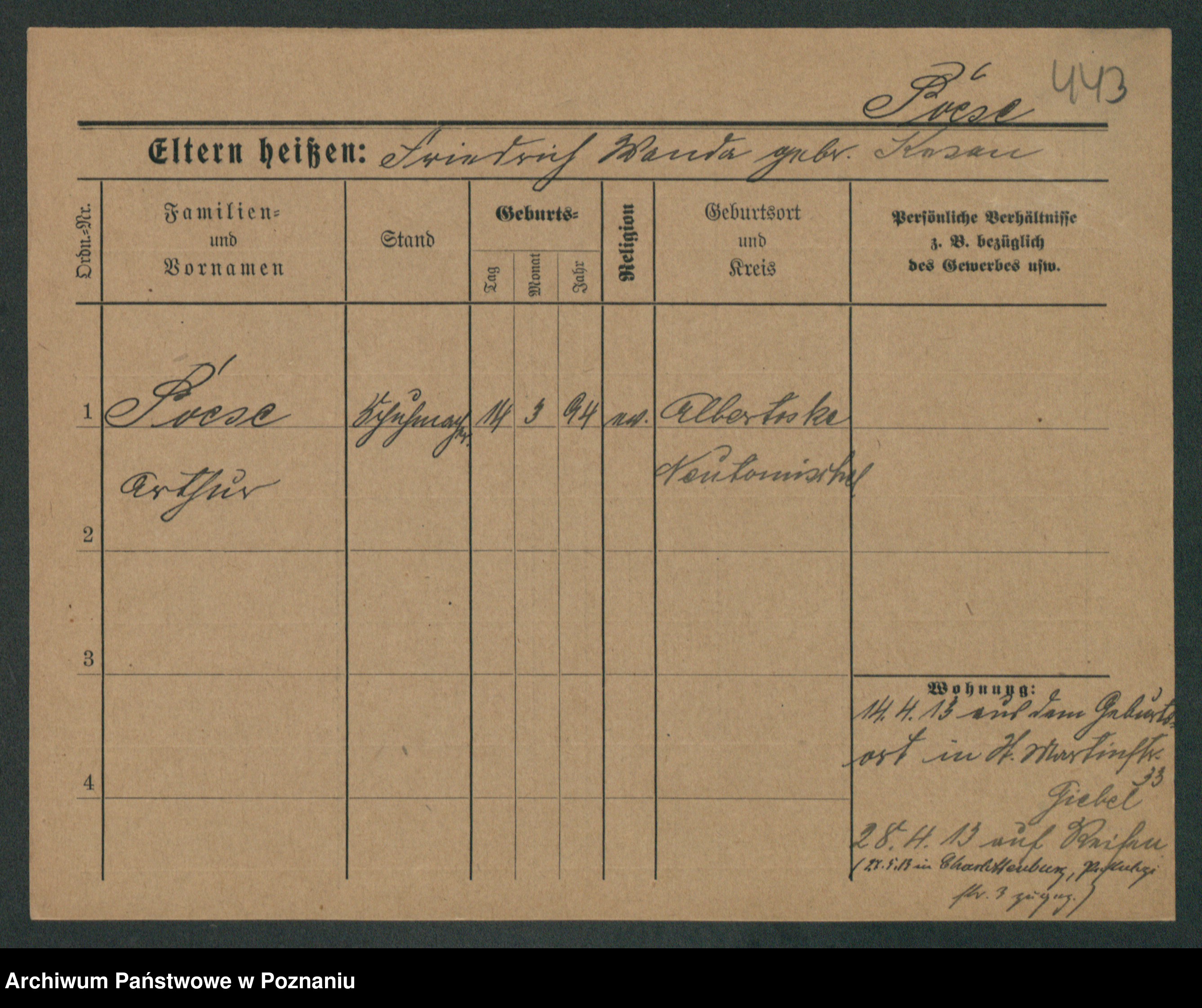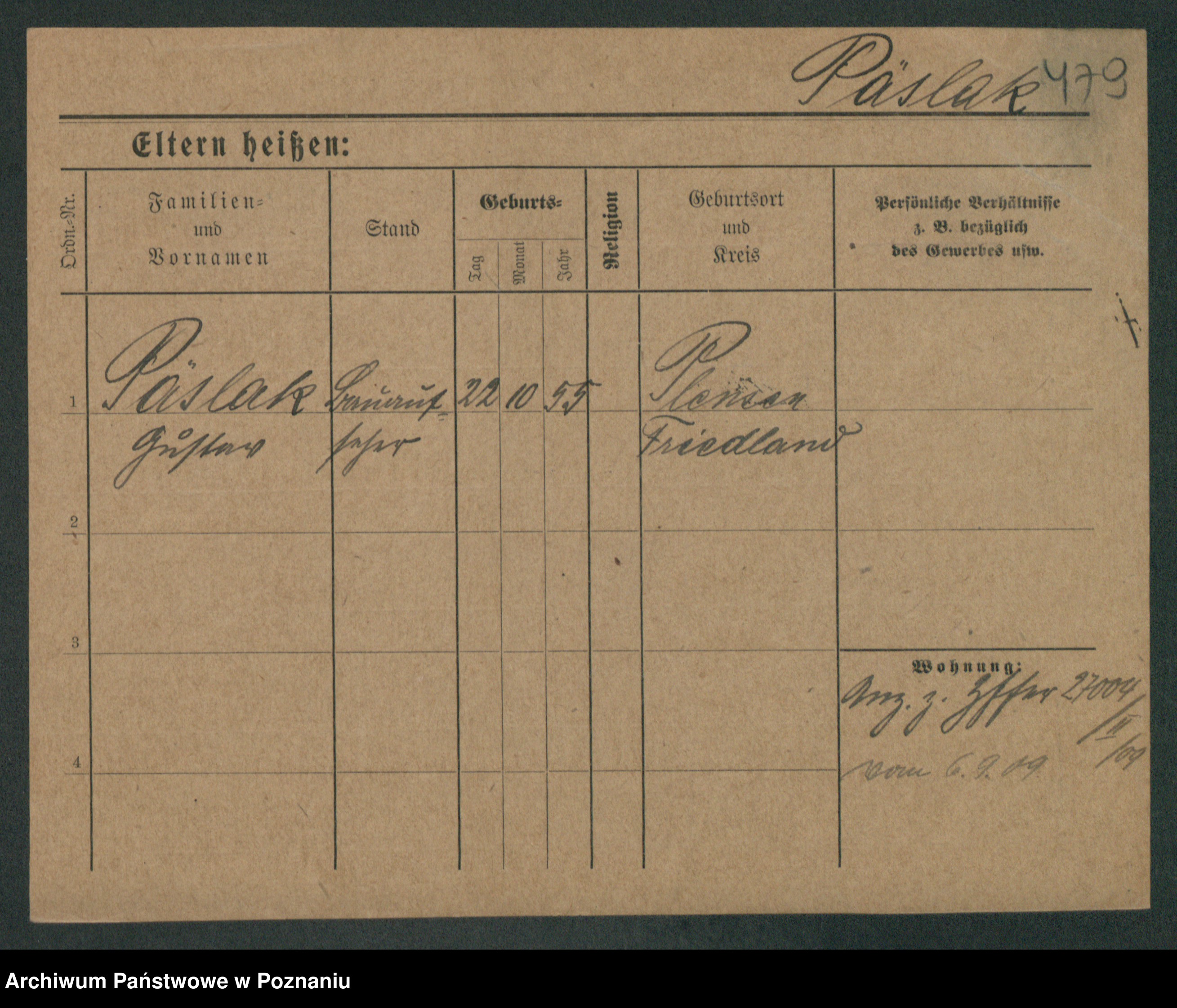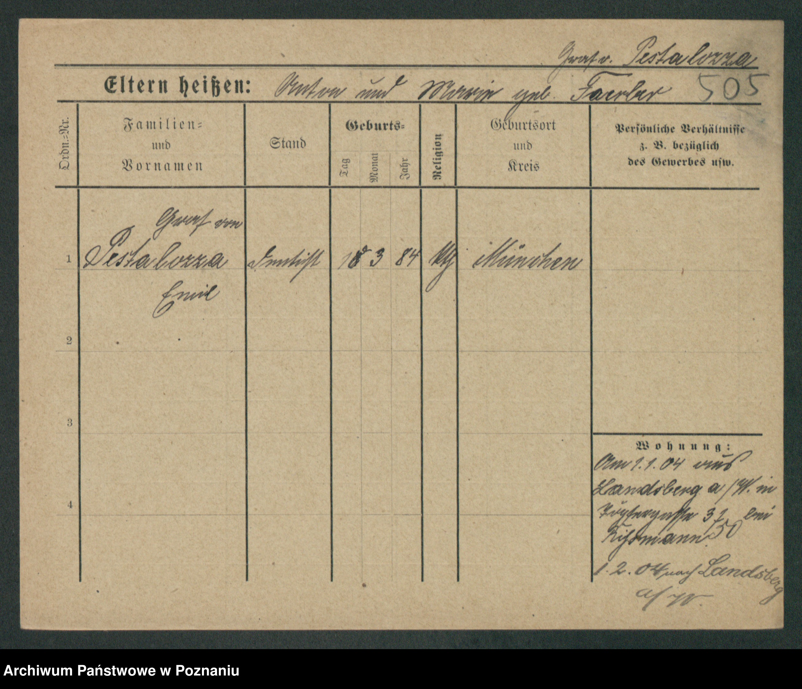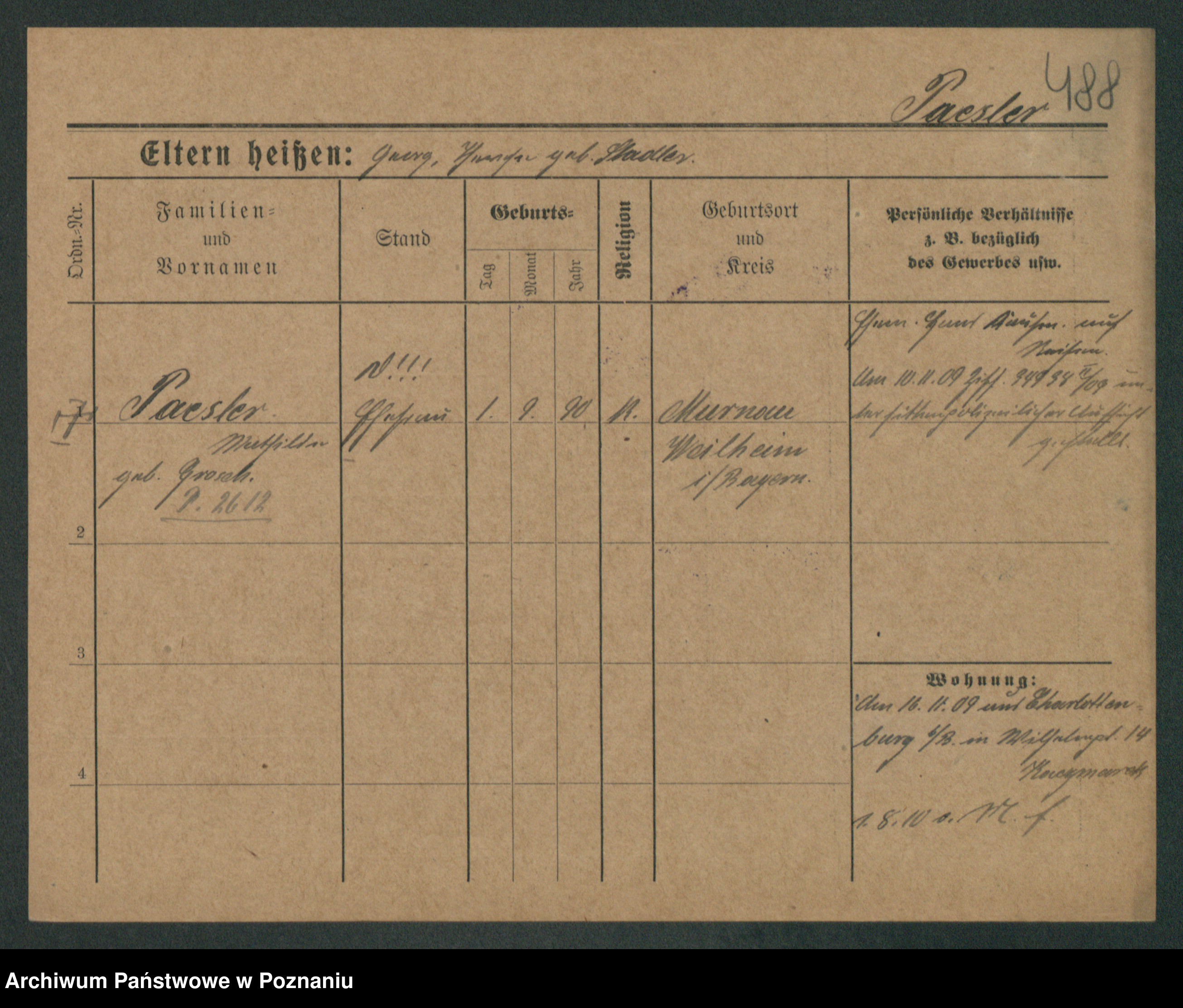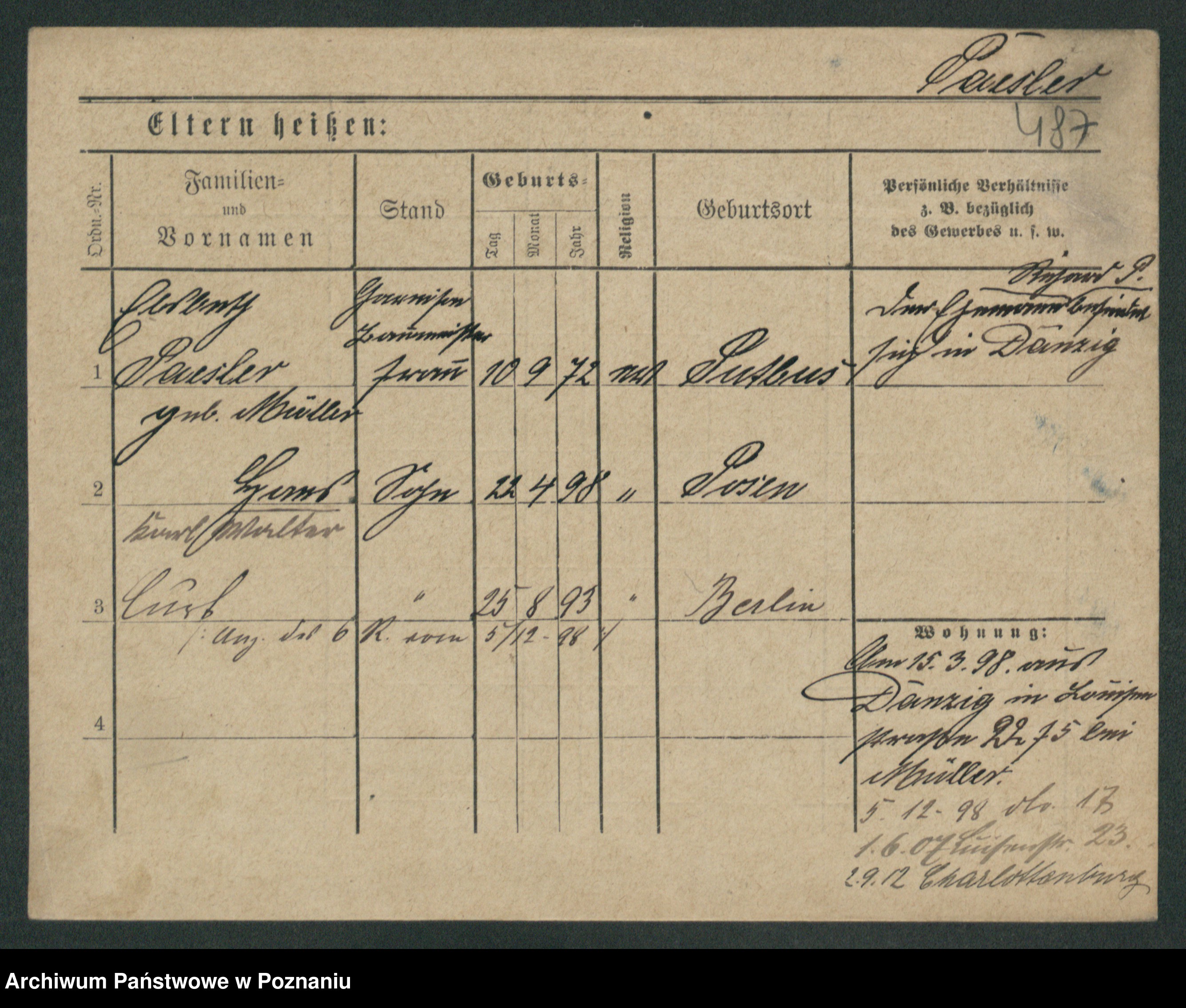 Podgląd karty osobowej dostępny jest po kliknięciu na nazwisko lub ikonkę karty. Można dokonywać powiększenia (ikony na górze) lub przechodzić między kolejnymi skanami (strzałki po bokach).