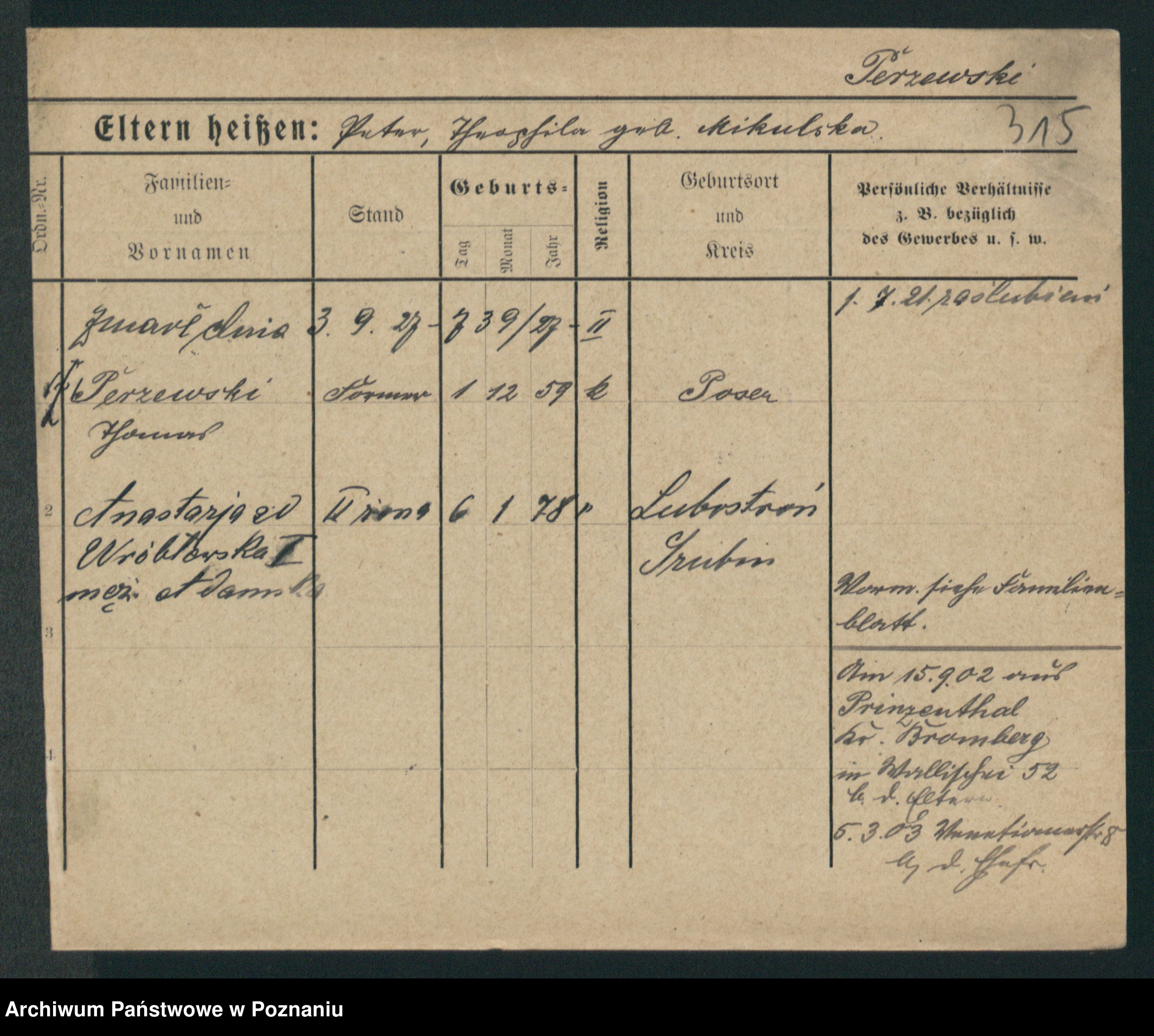 Perz z.d. Giebiorczyk, Marie