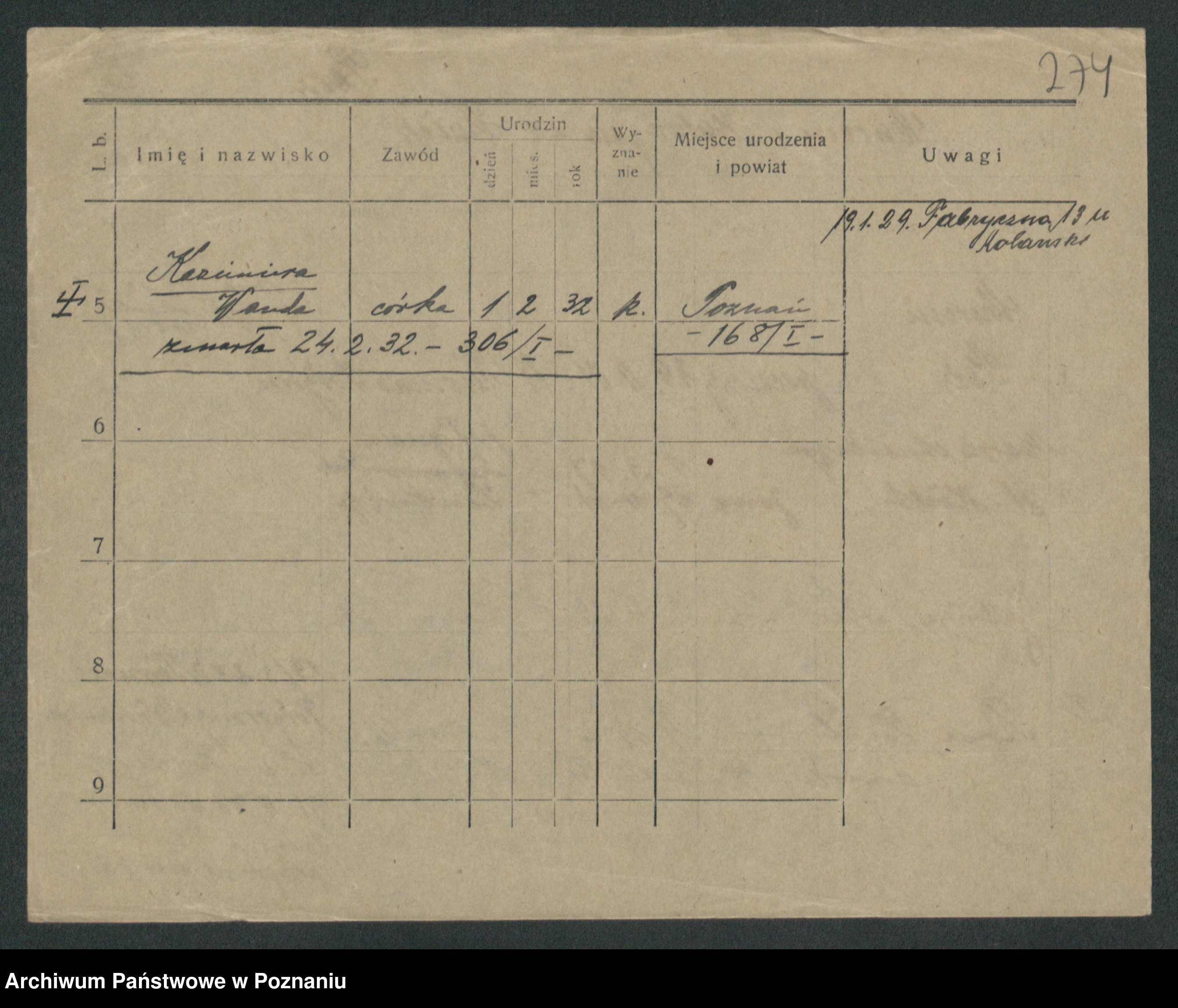 Perz z.d. Pacholska, Kaźmiera