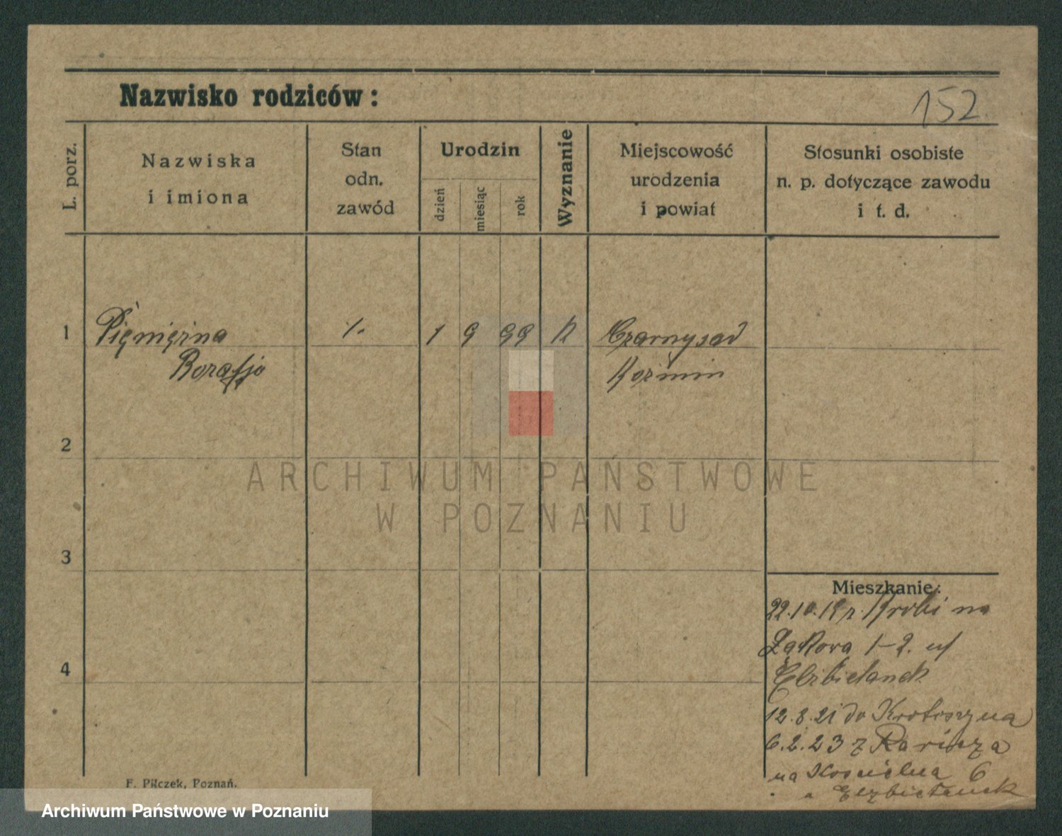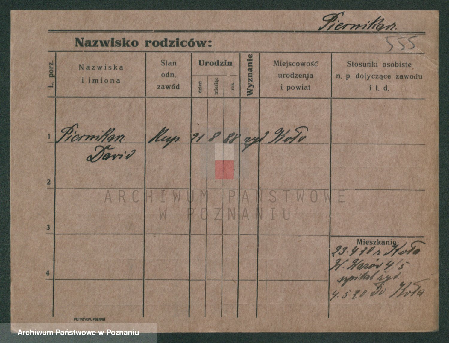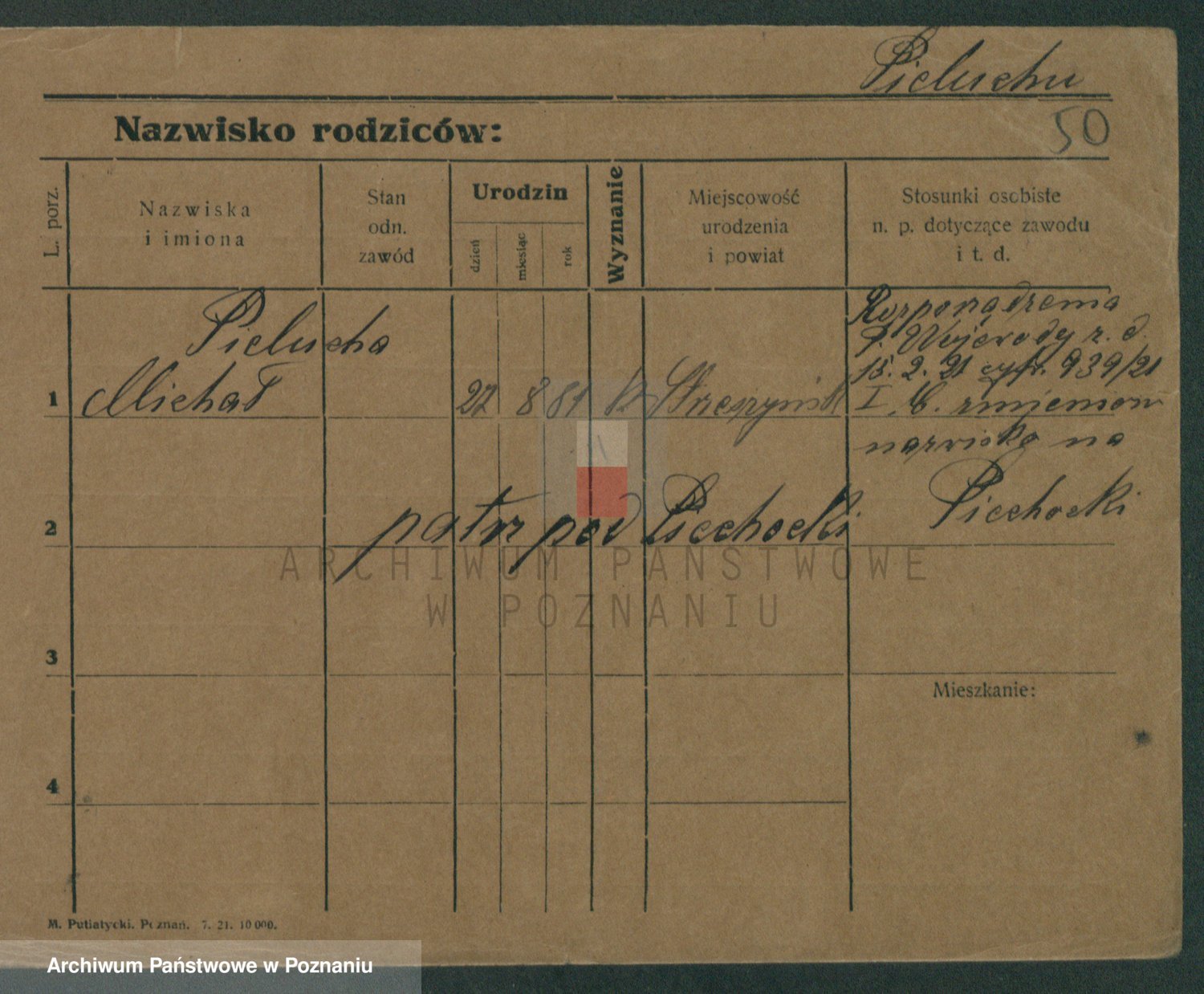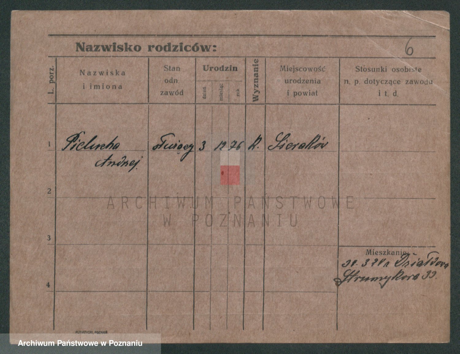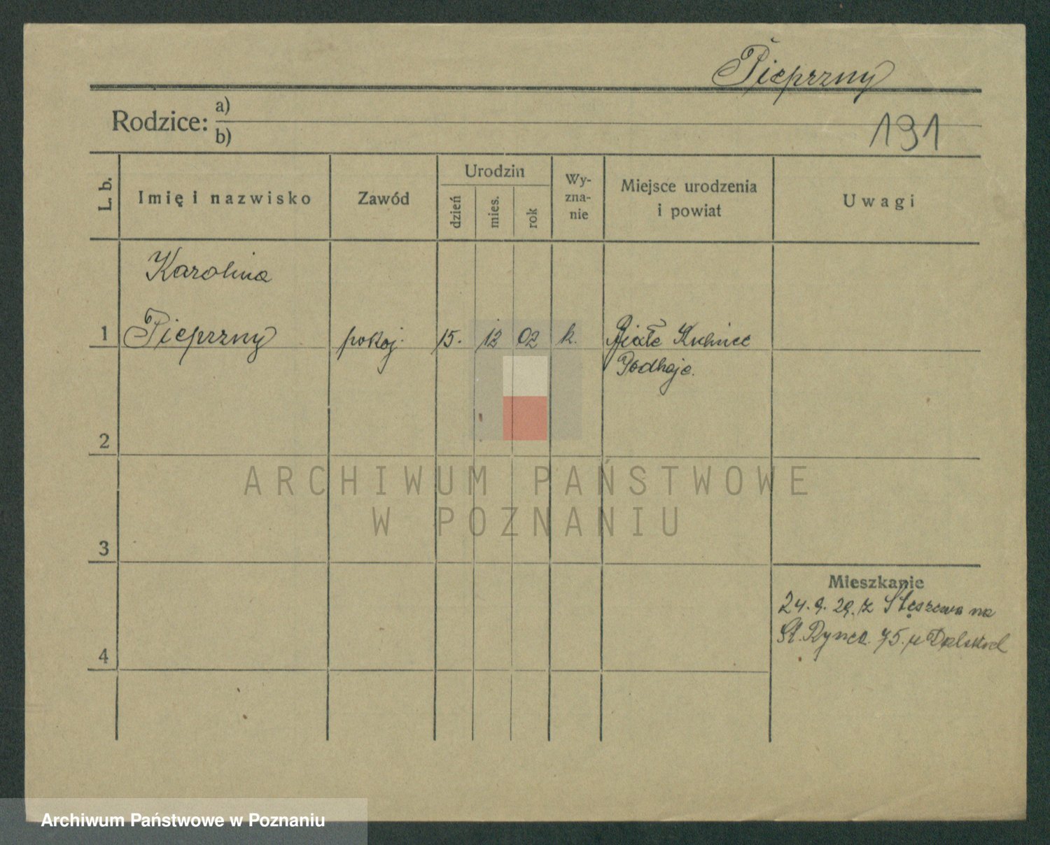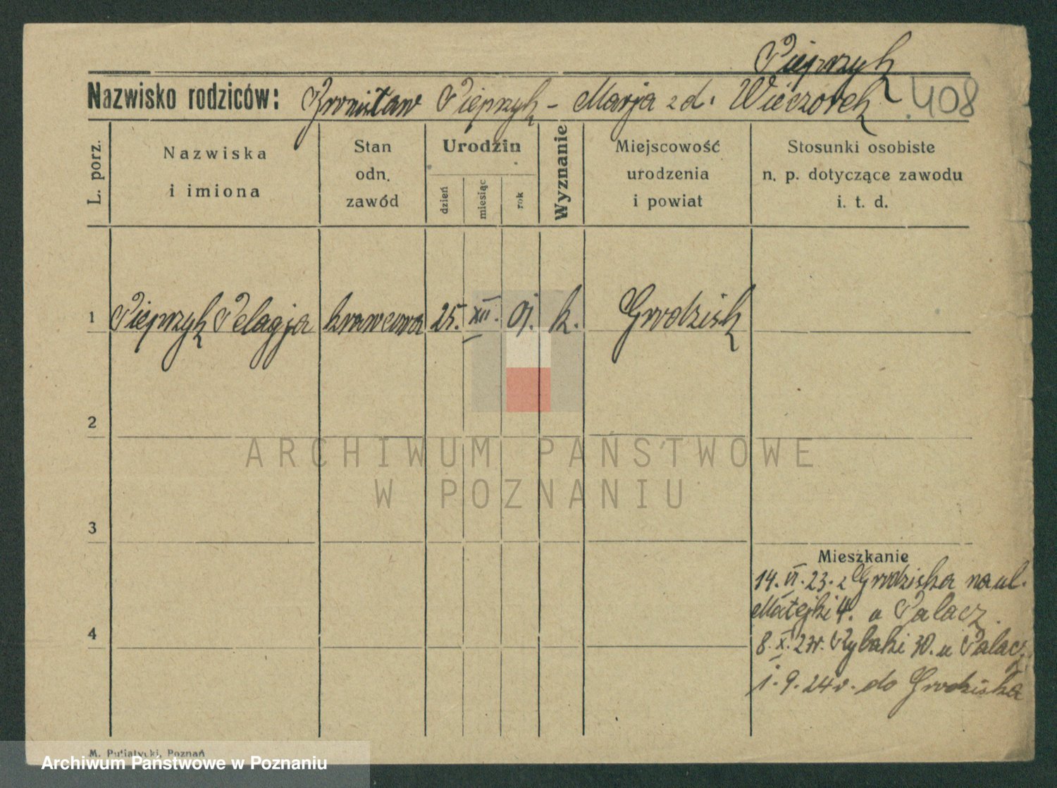 Podgląd karty osobowej dostępny jest po kliknięciu na nazwisko lub ikonkę karty. Można dokonywać powiększenia (ikony na górze) lub przechodzić między kolejnymi skanami (strzałki po bokach).