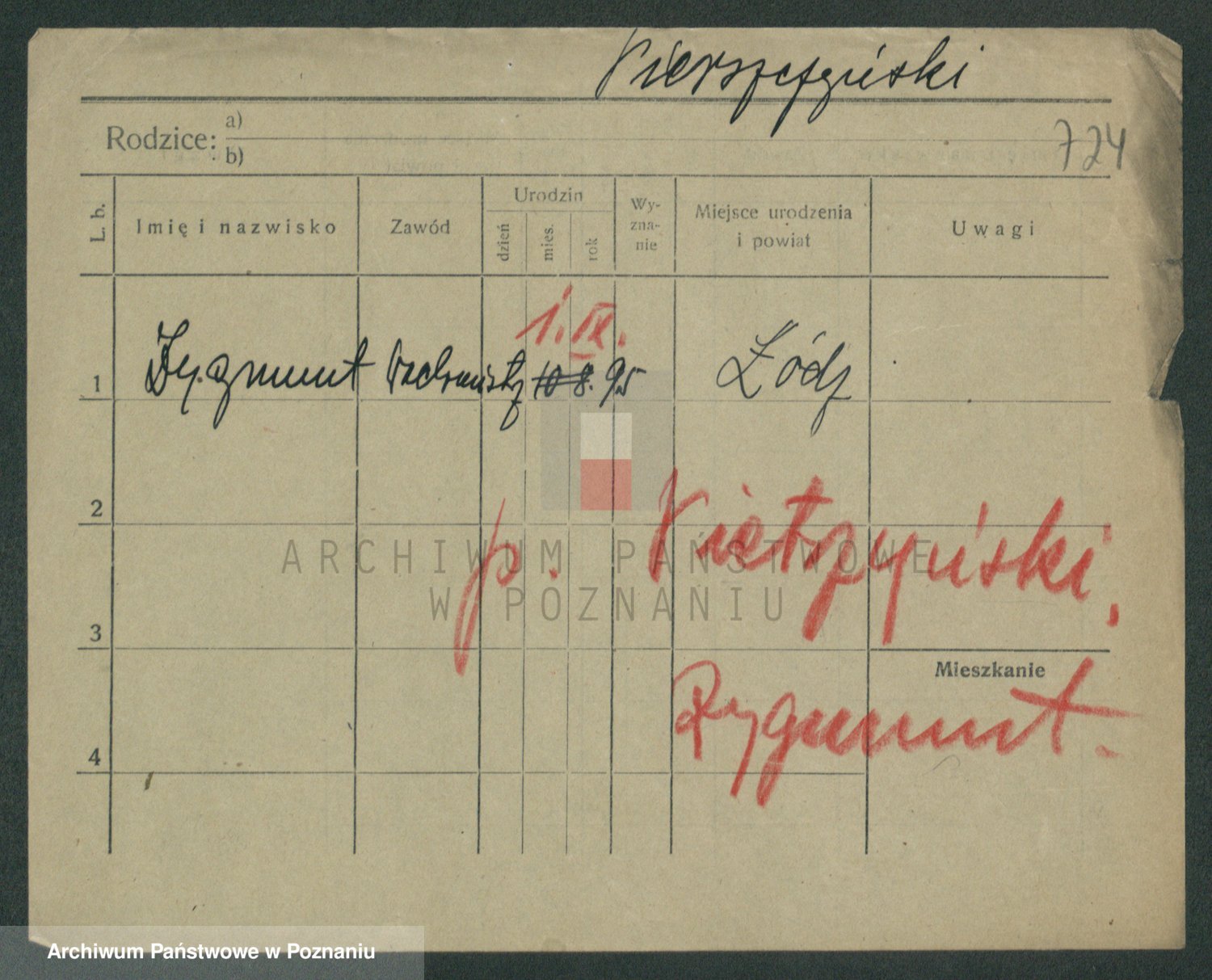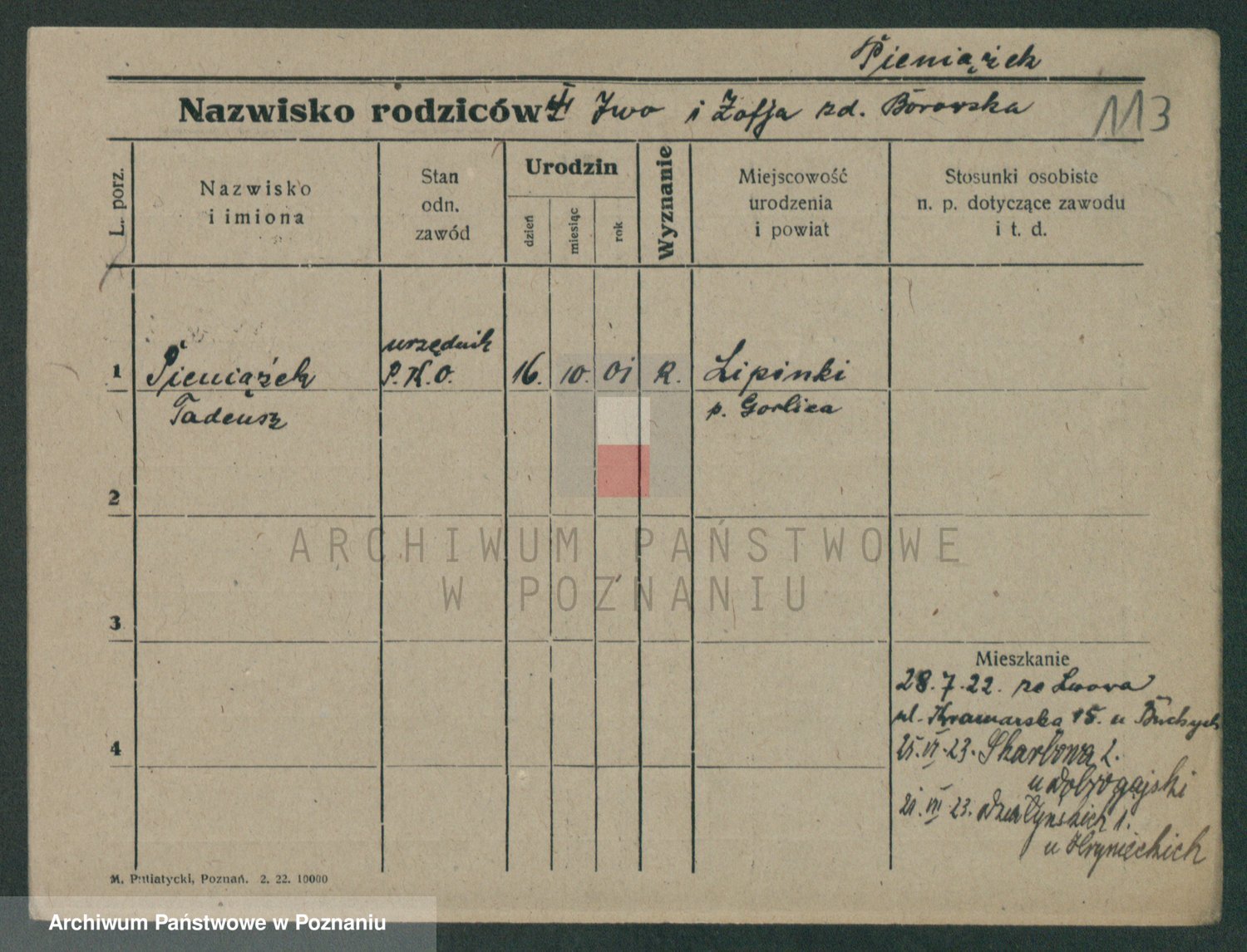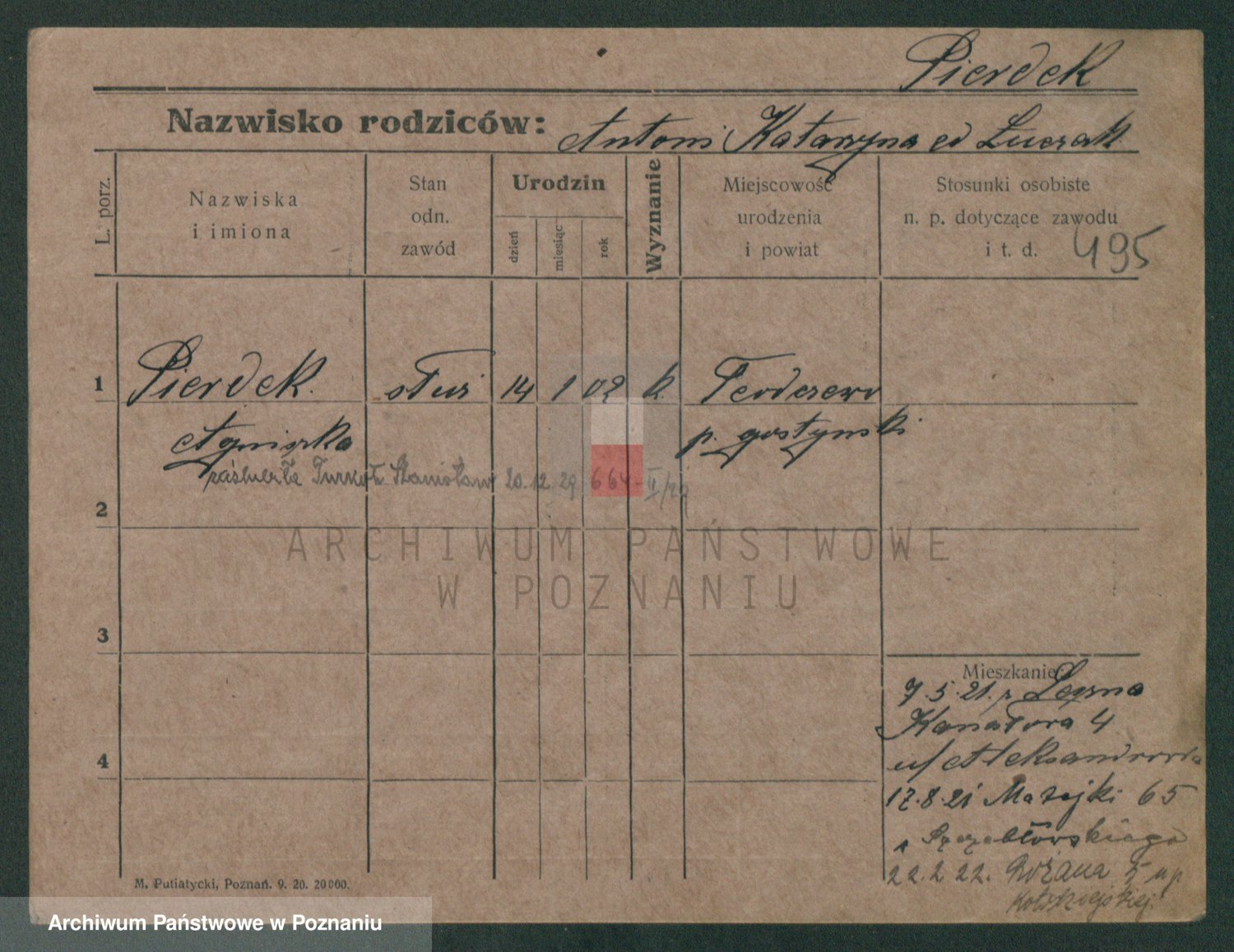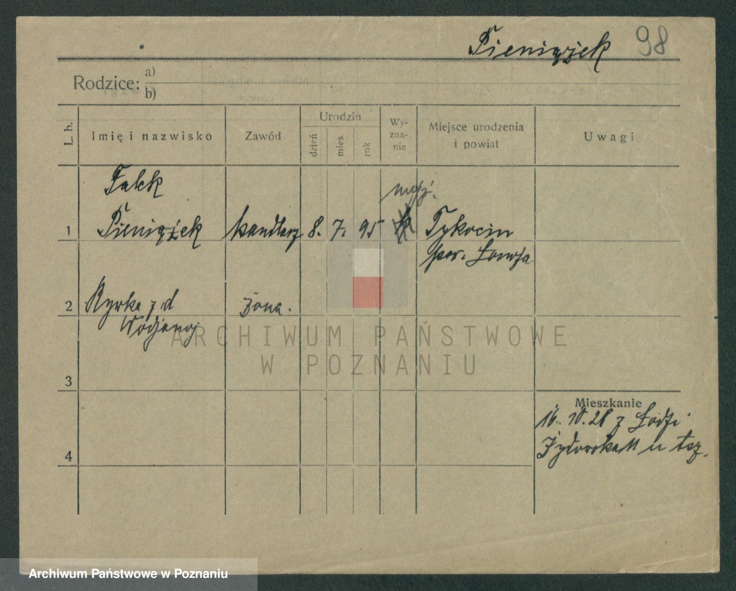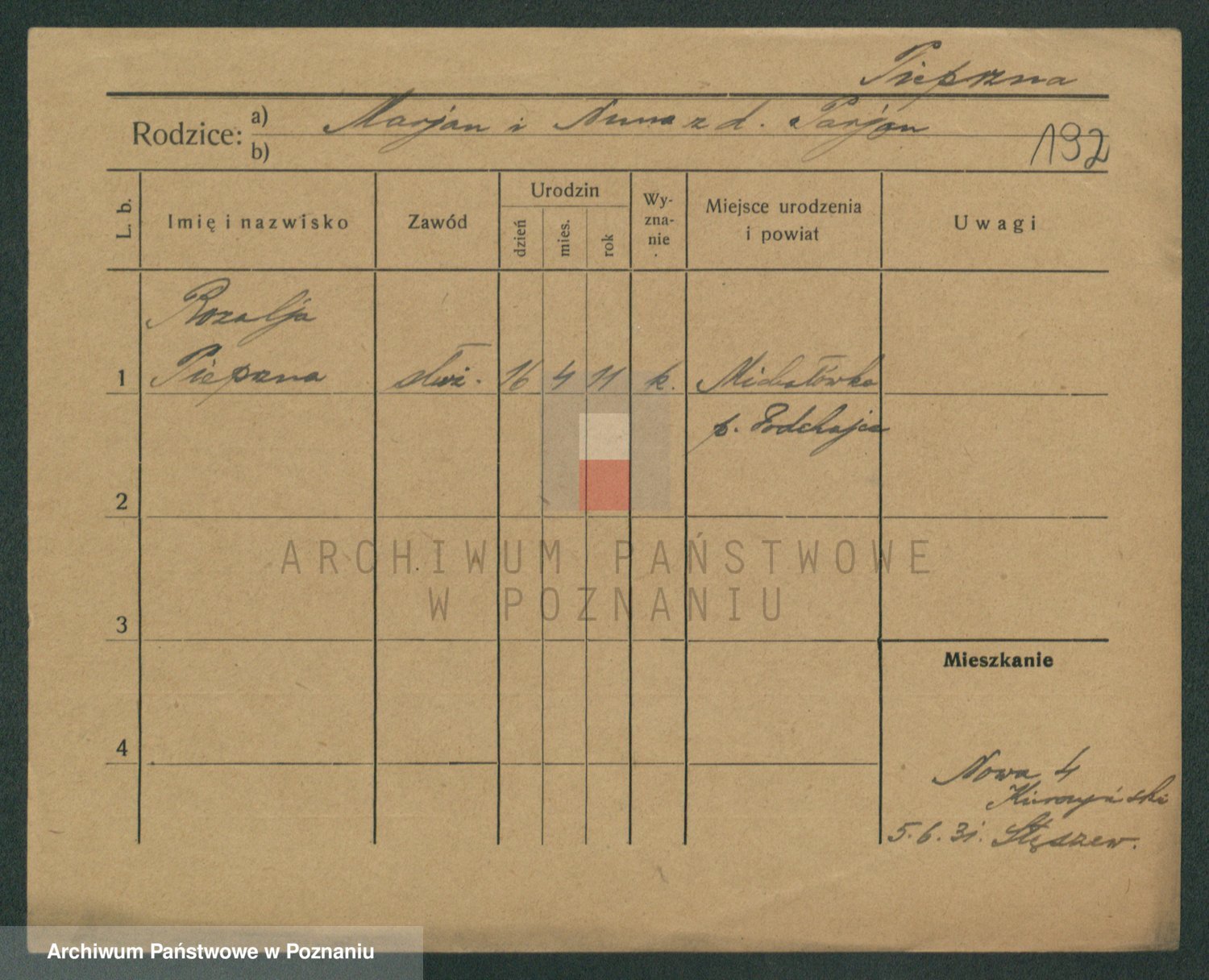Podgląd karty osobowej dostępny jest po kliknięciu na nazwisko lub ikonkę karty. Można dokonywać powiększenia (ikony na górze) lub przechodzić między kolejnymi skanami (strzałki po bokach).
