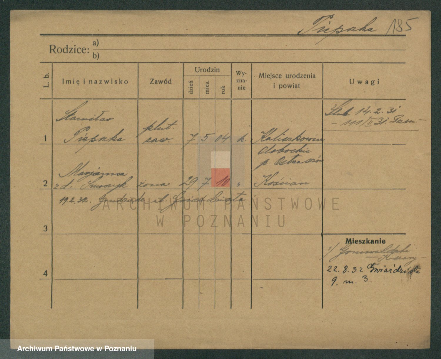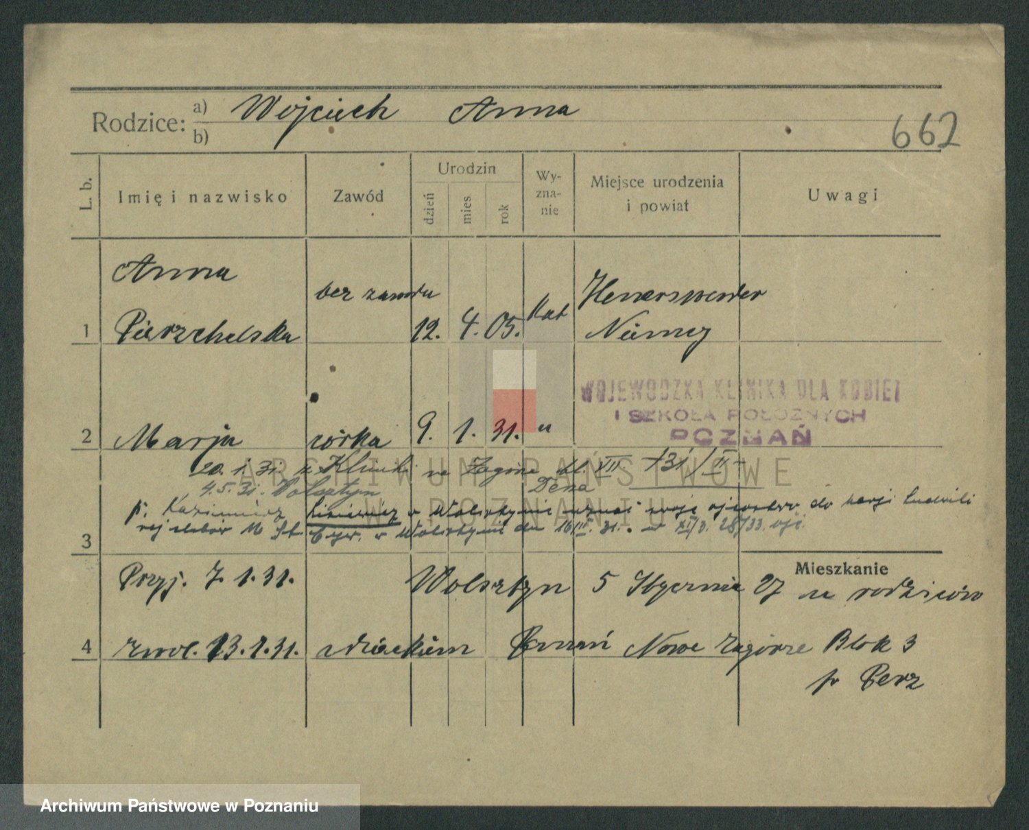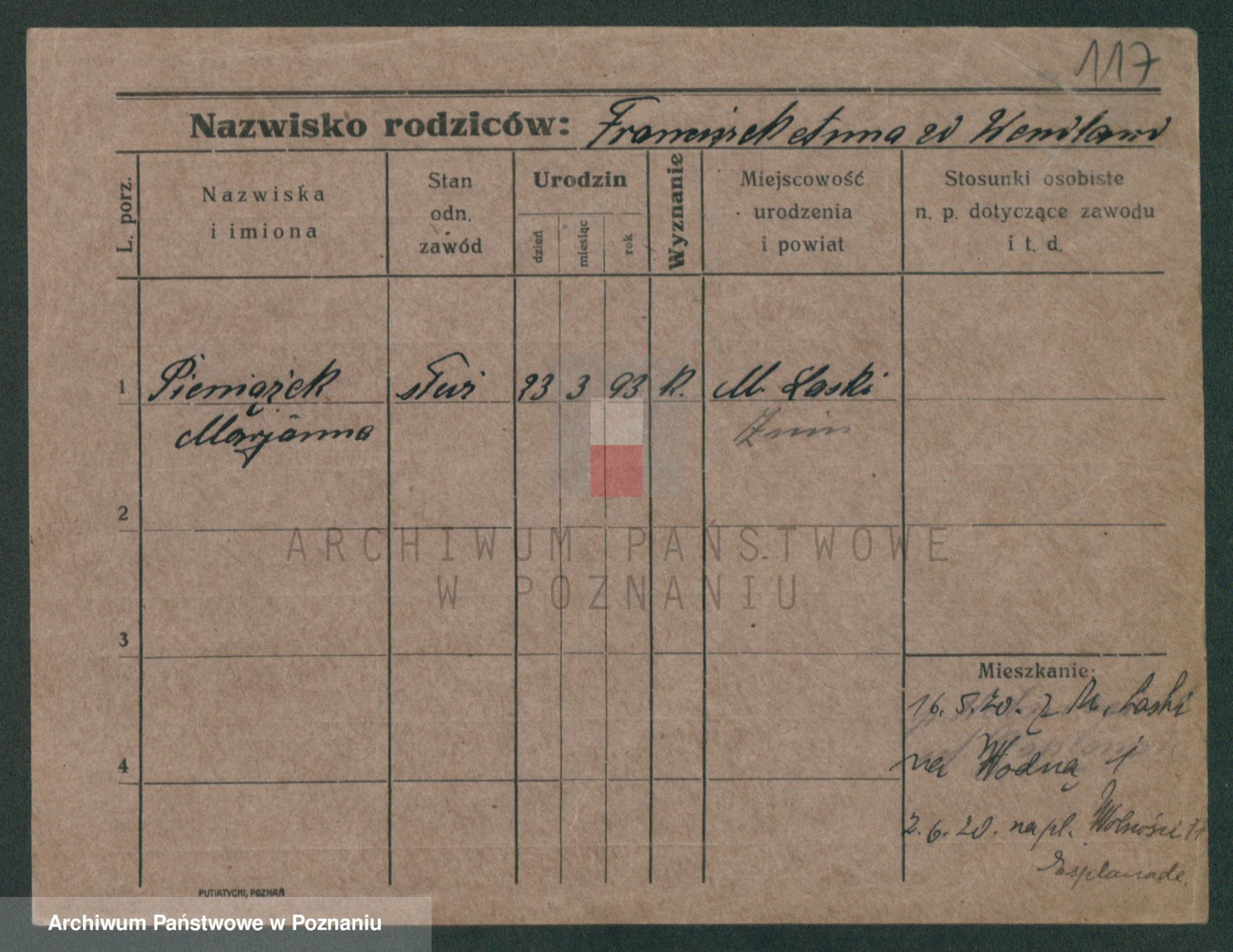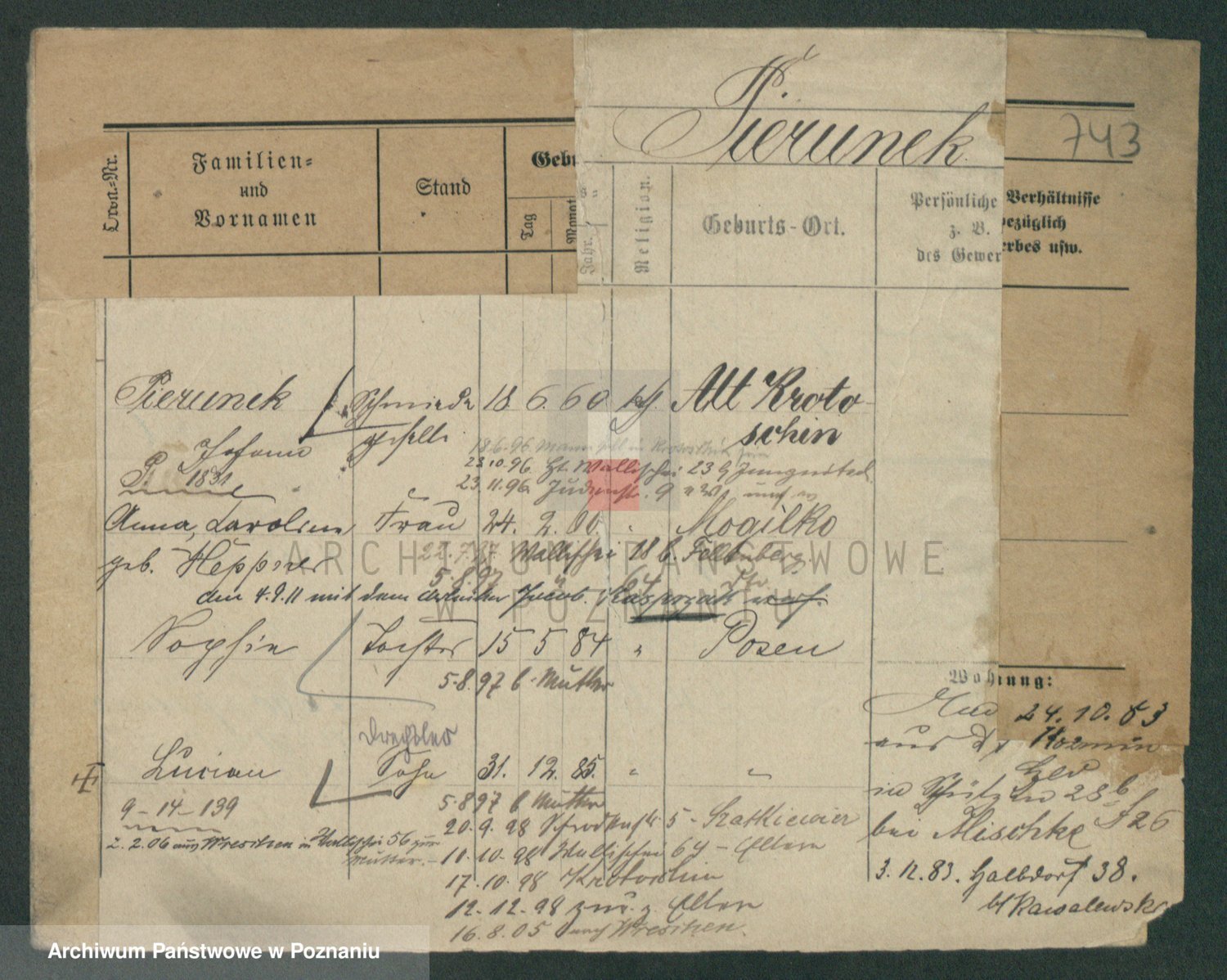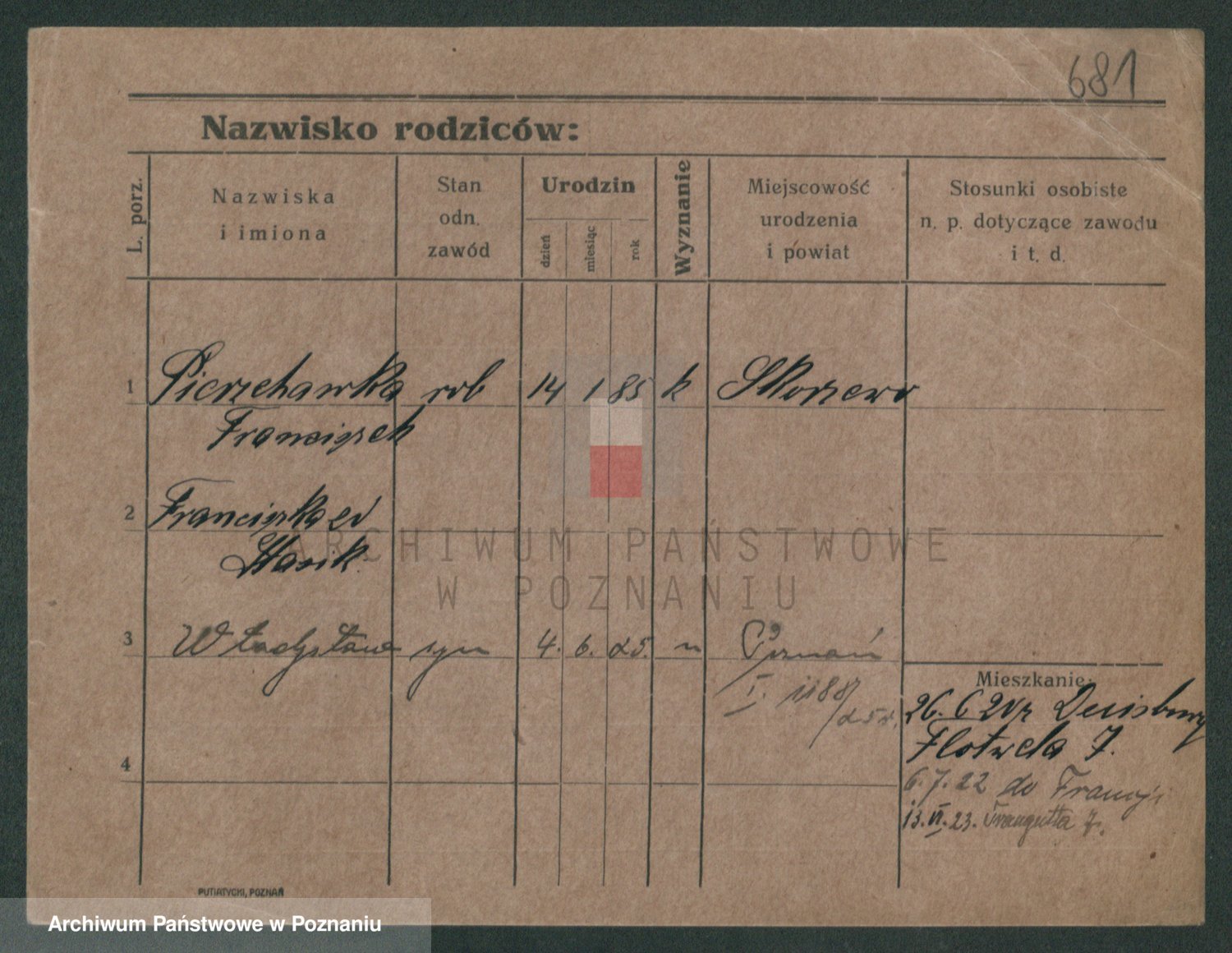 Podgląd karty osobowej dostępny jest po kliknięciu na nazwisko lub ikonkę karty. Można dokonywać powiększenia (ikony na górze) lub przechodzić między kolejnymi skanami (strzałki po bokach).