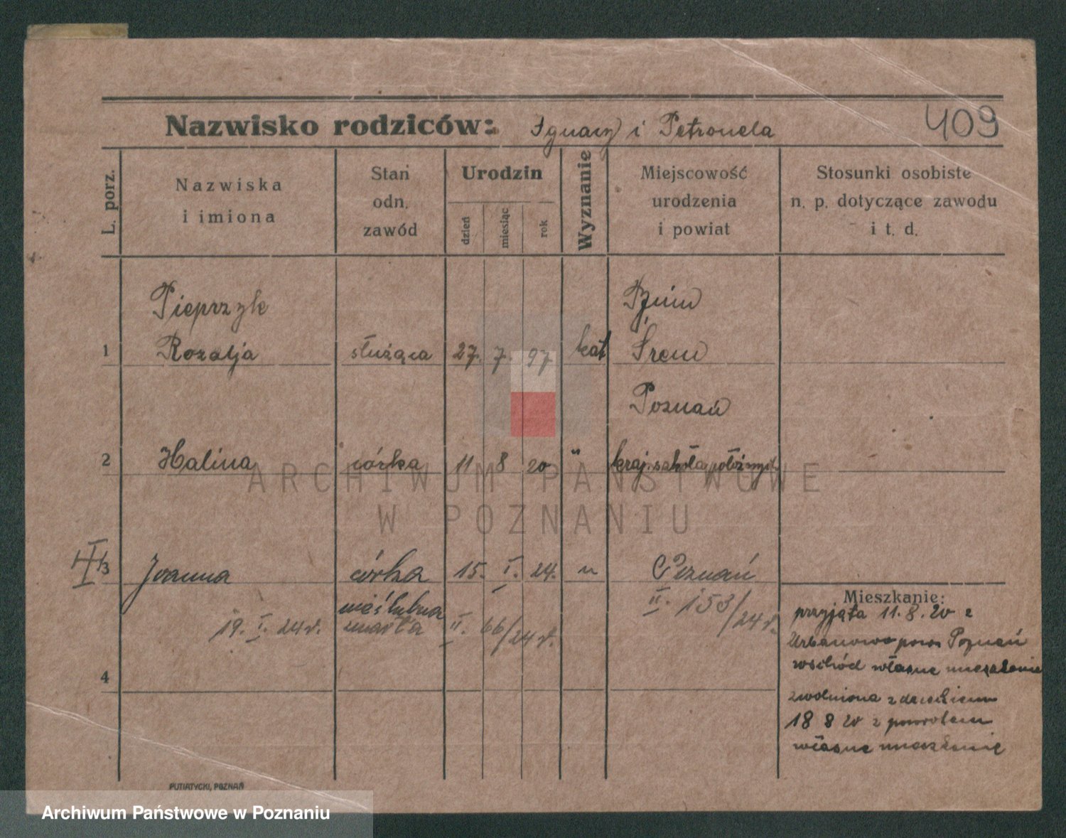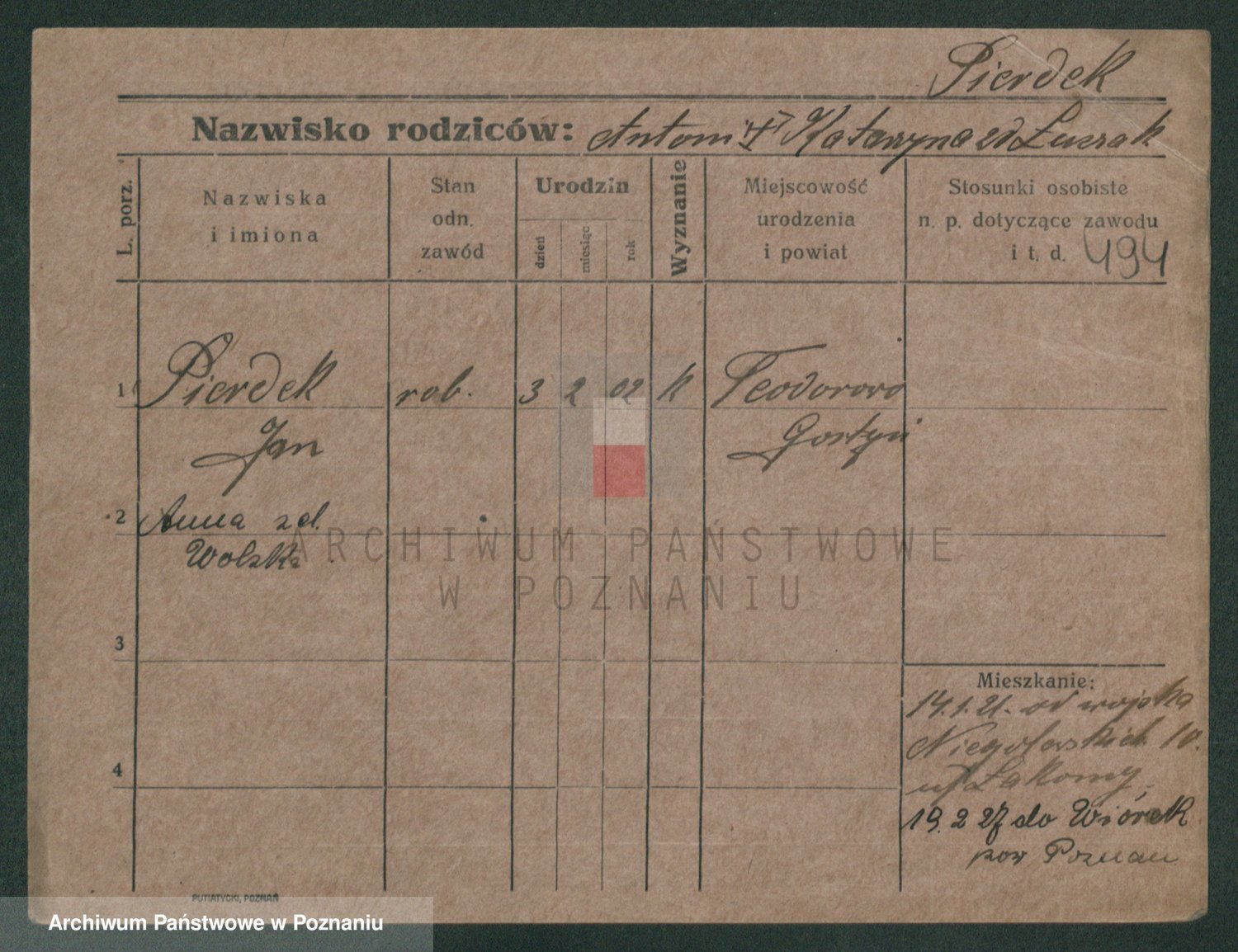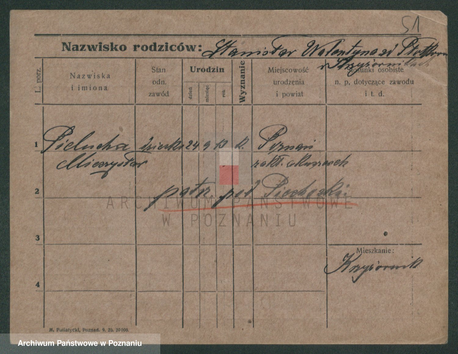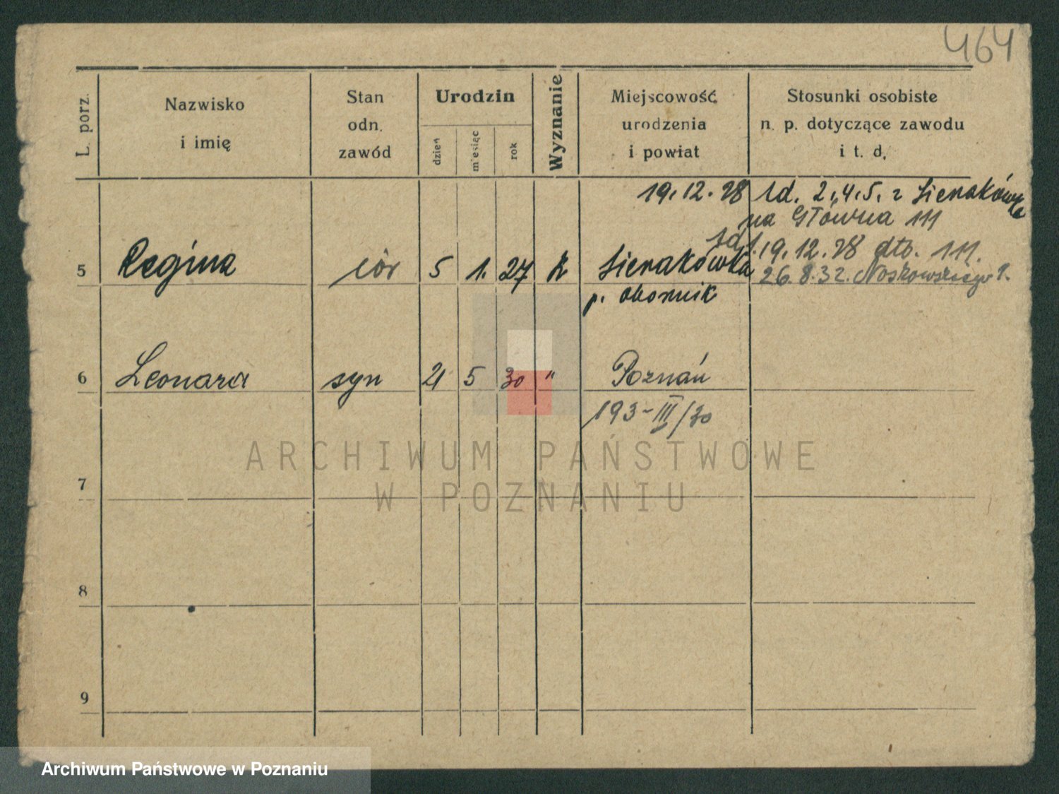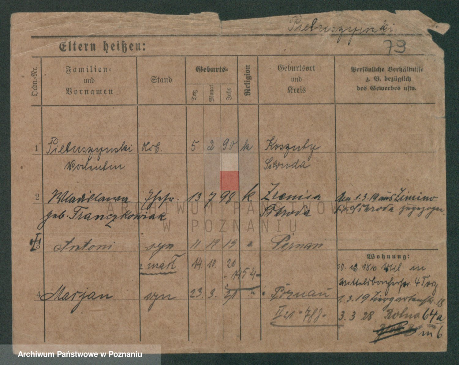 Podgląd karty osobowej dostępny jest po kliknięciu na nazwisko lub ikonkę karty. Można dokonywać powiększenia (ikony na górze) lub przechodzić między kolejnymi skanami (strzałki po bokach).