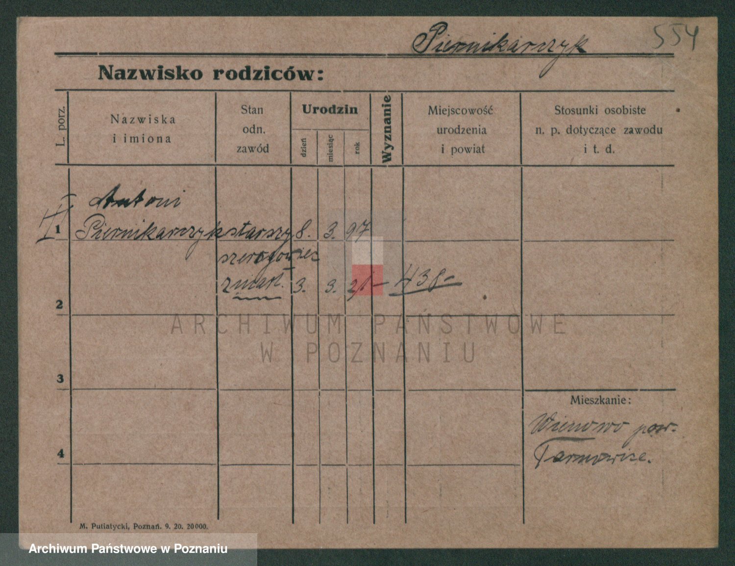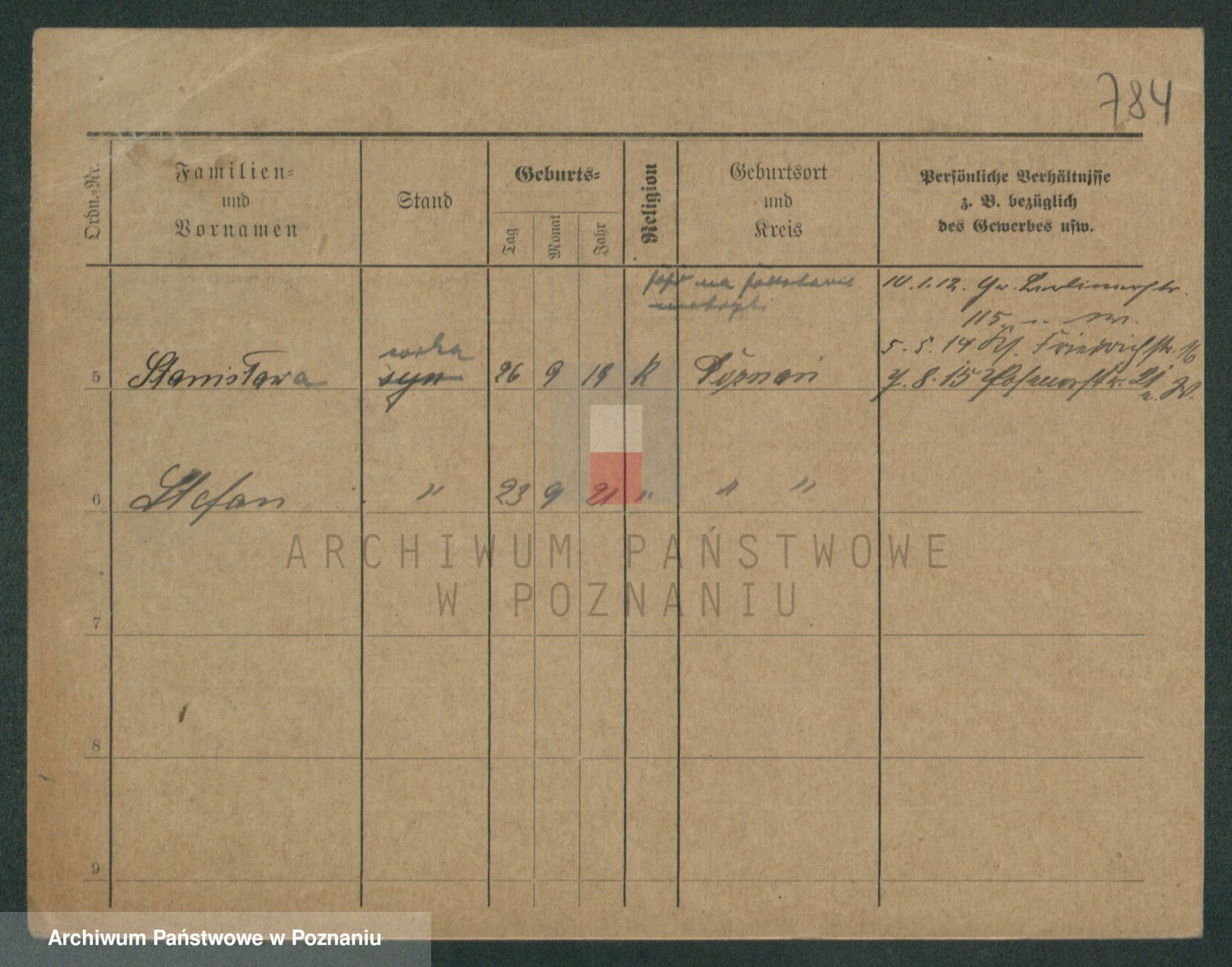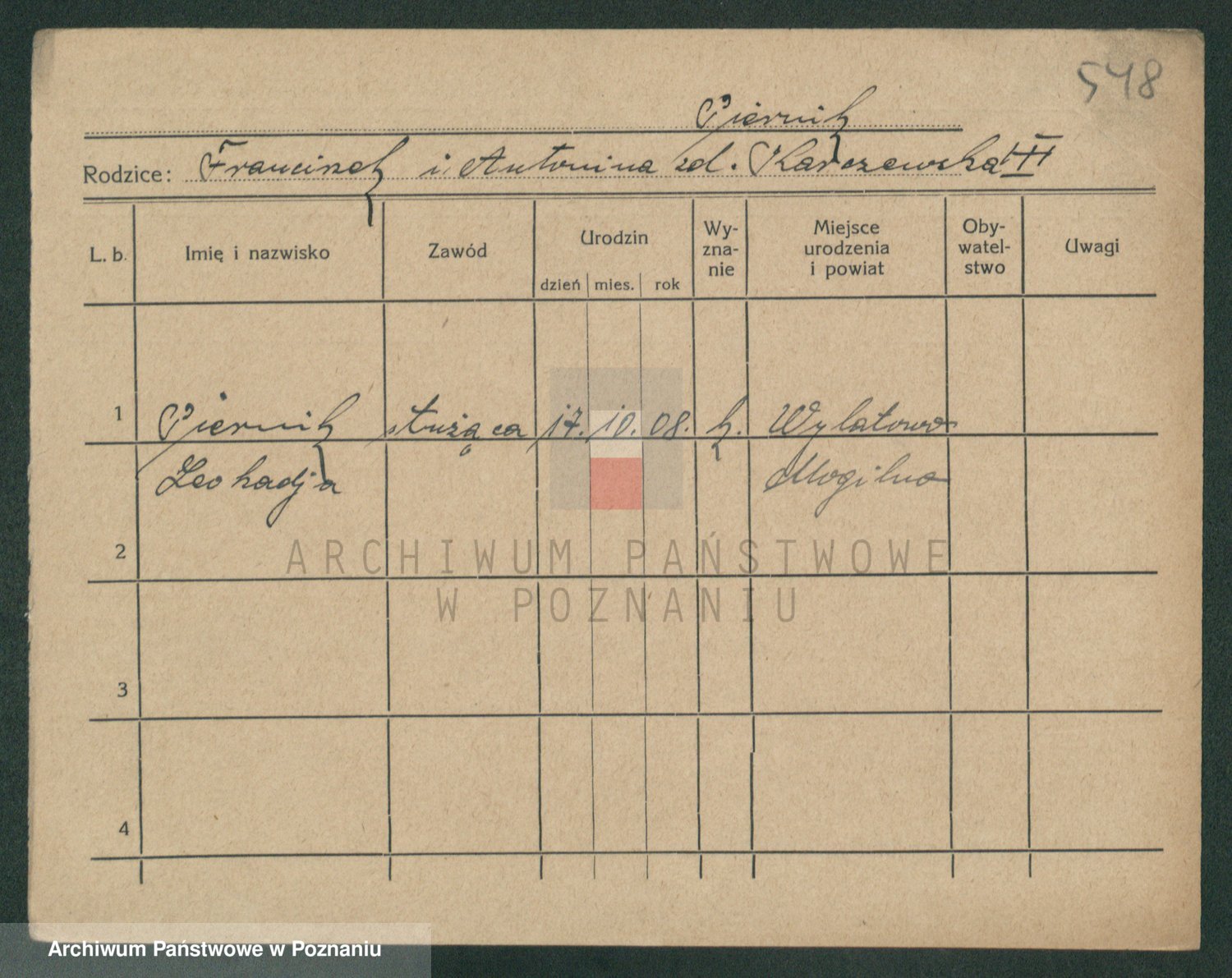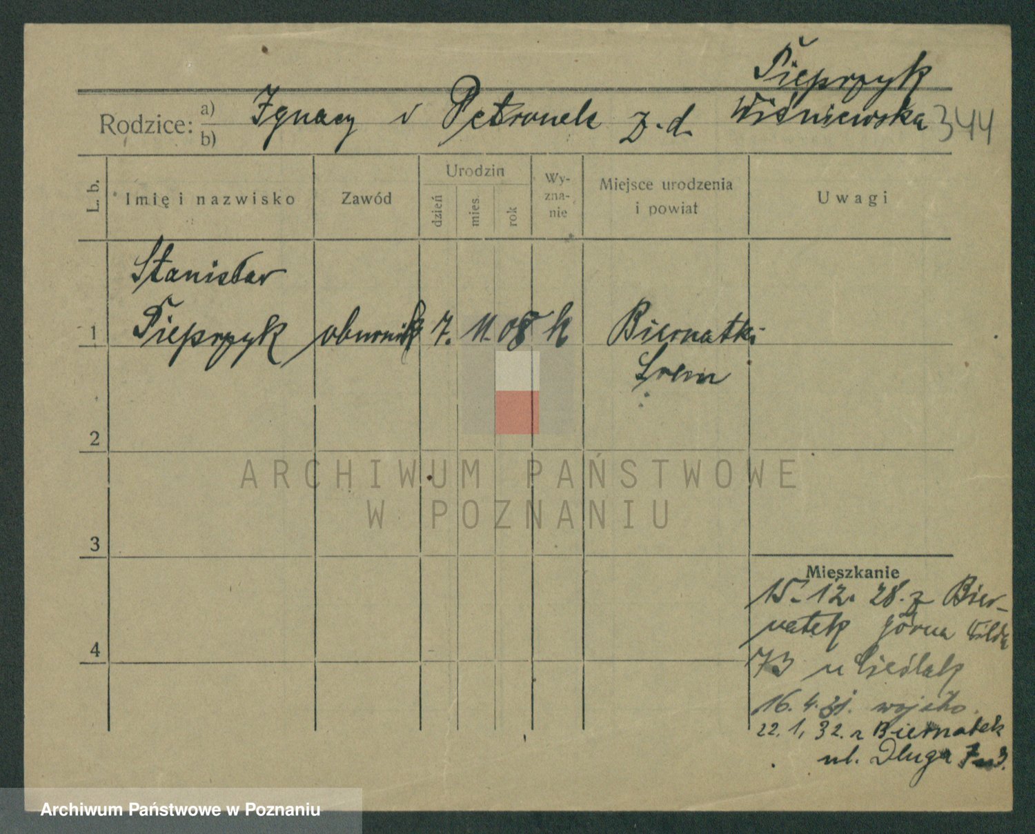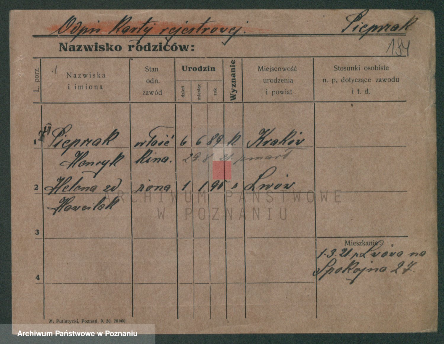 Podgląd karty osobowej dostępny jest po kliknięciu na nazwisko lub ikonkę karty. Można dokonywać powiększenia (ikony na górze) lub przechodzić między kolejnymi skanami (strzałki po bokach).