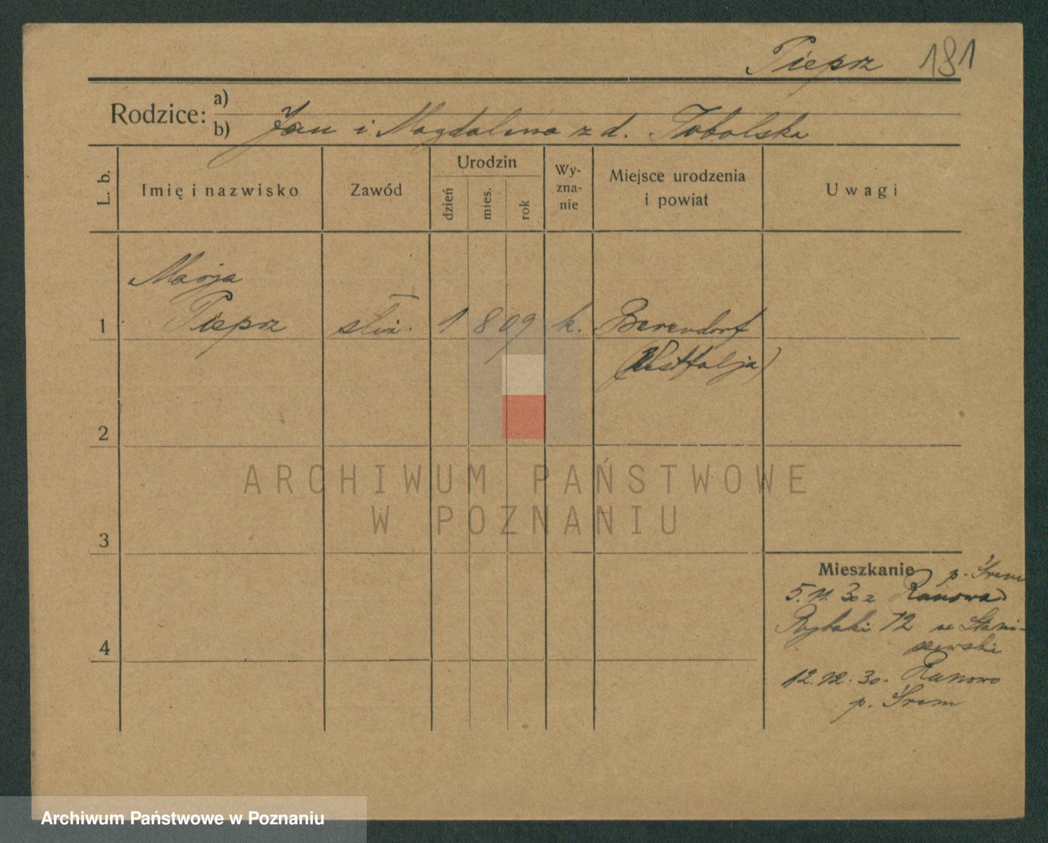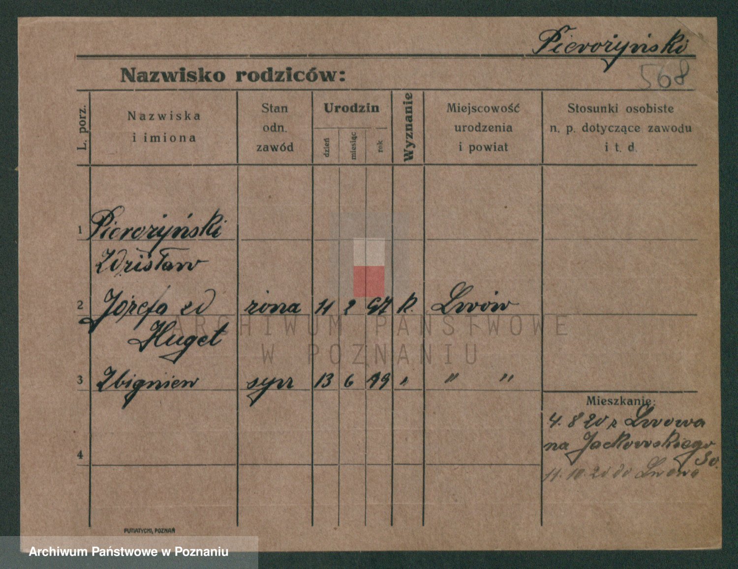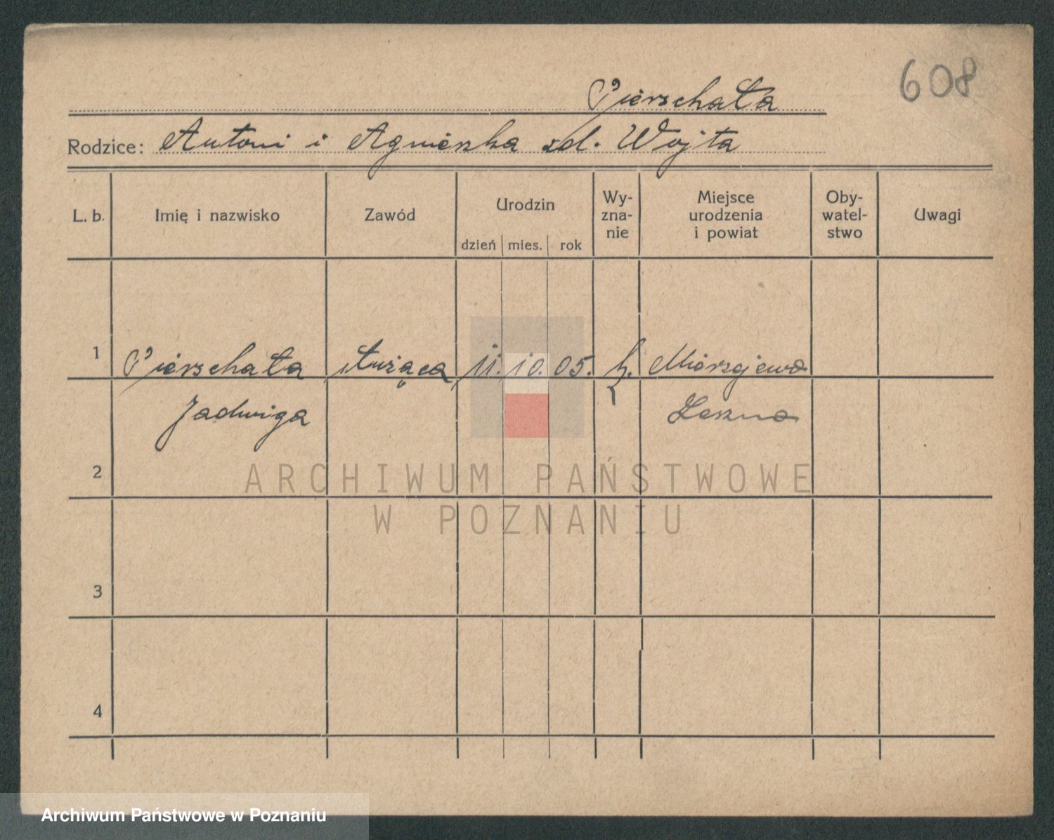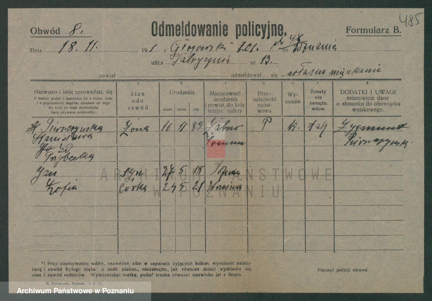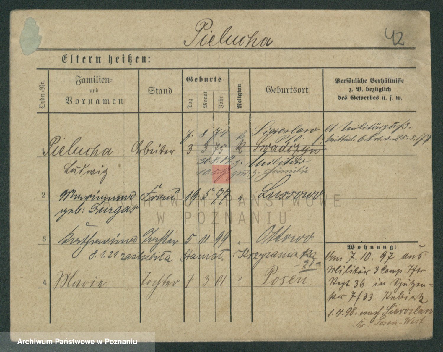 Podgląd karty osobowej dostępny jest po kliknięciu na nazwisko lub ikonkę karty. Można dokonywać powiększenia (ikony na górze) lub przechodzić między kolejnymi skanami (strzałki po bokach).