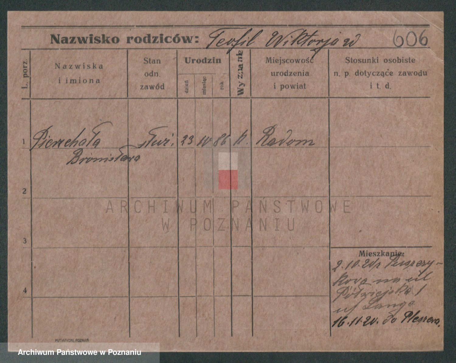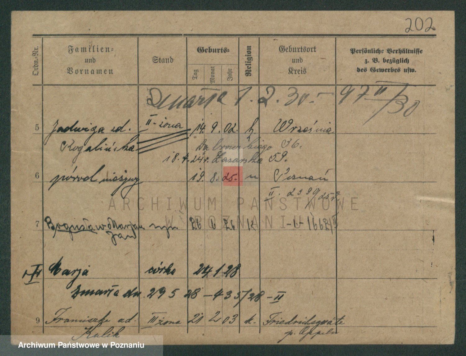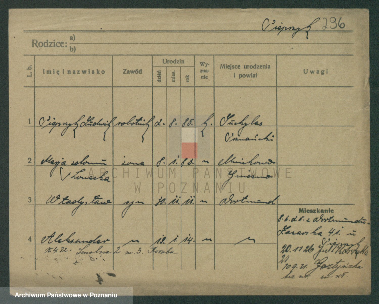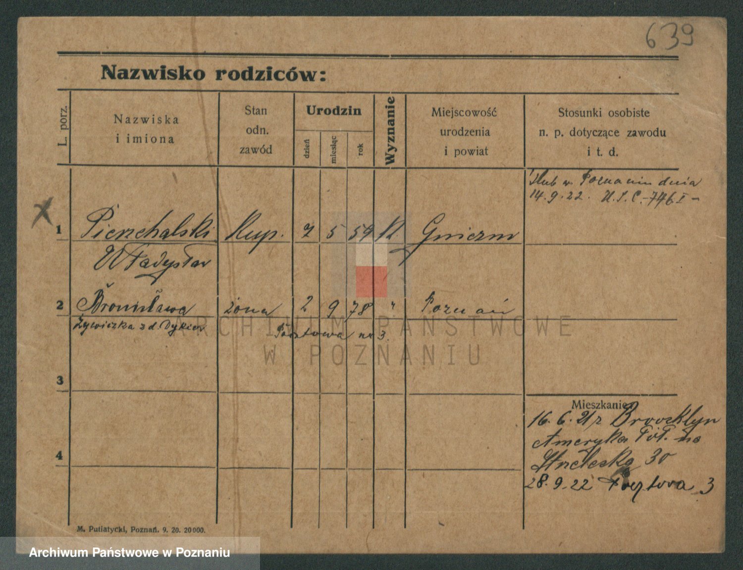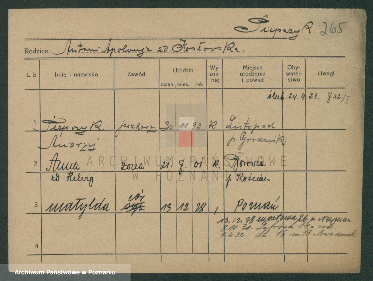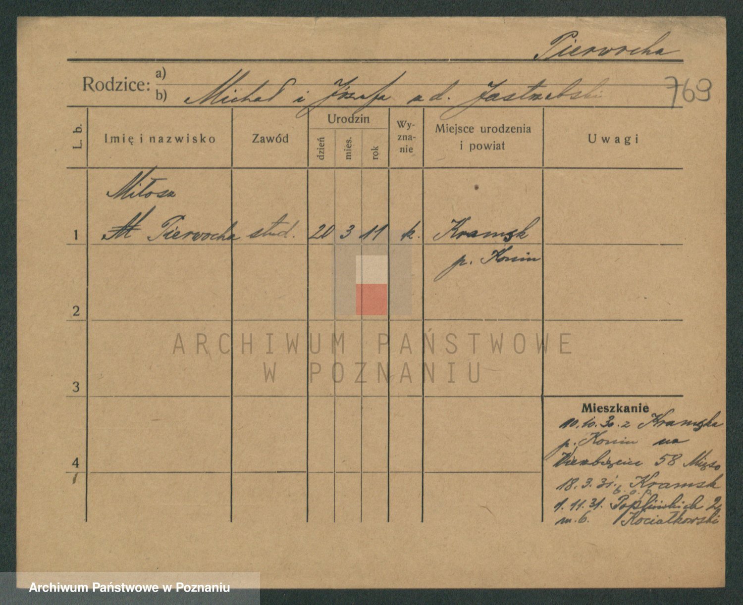 Podgląd karty osobowej dostępny jest po kliknięciu na nazwisko lub ikonkę karty. Można dokonywać powiększenia (ikony na górze) lub przechodzić między kolejnymi skanami (strzałki po bokach).