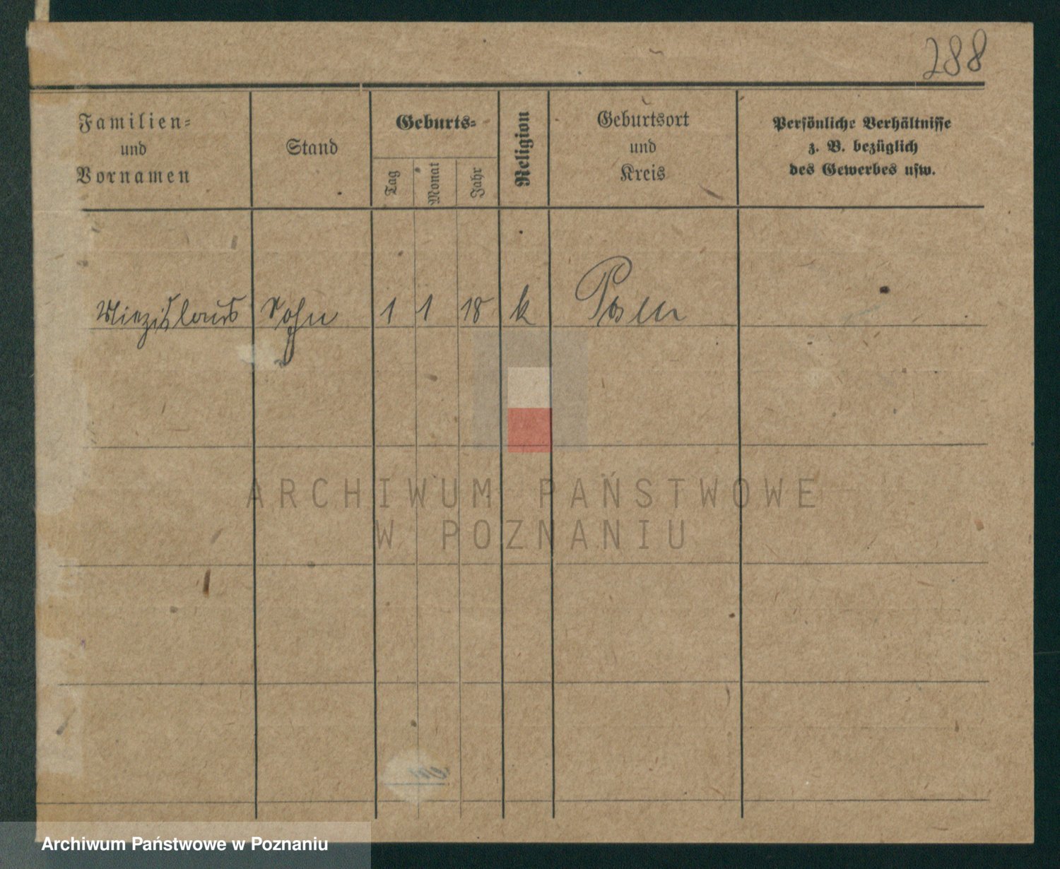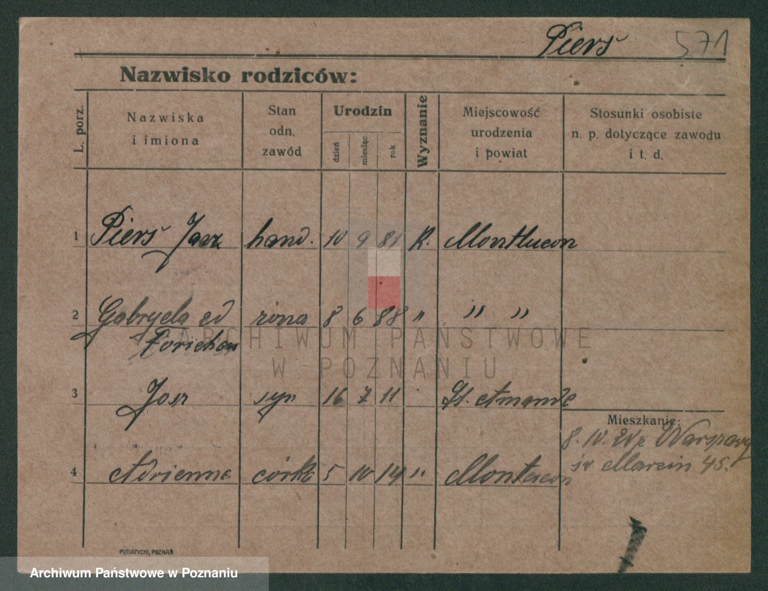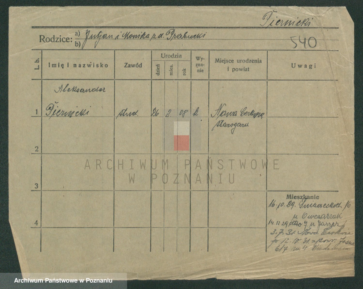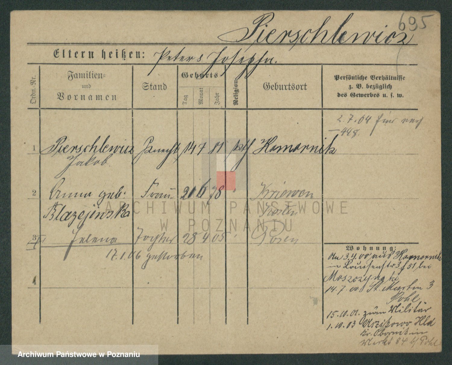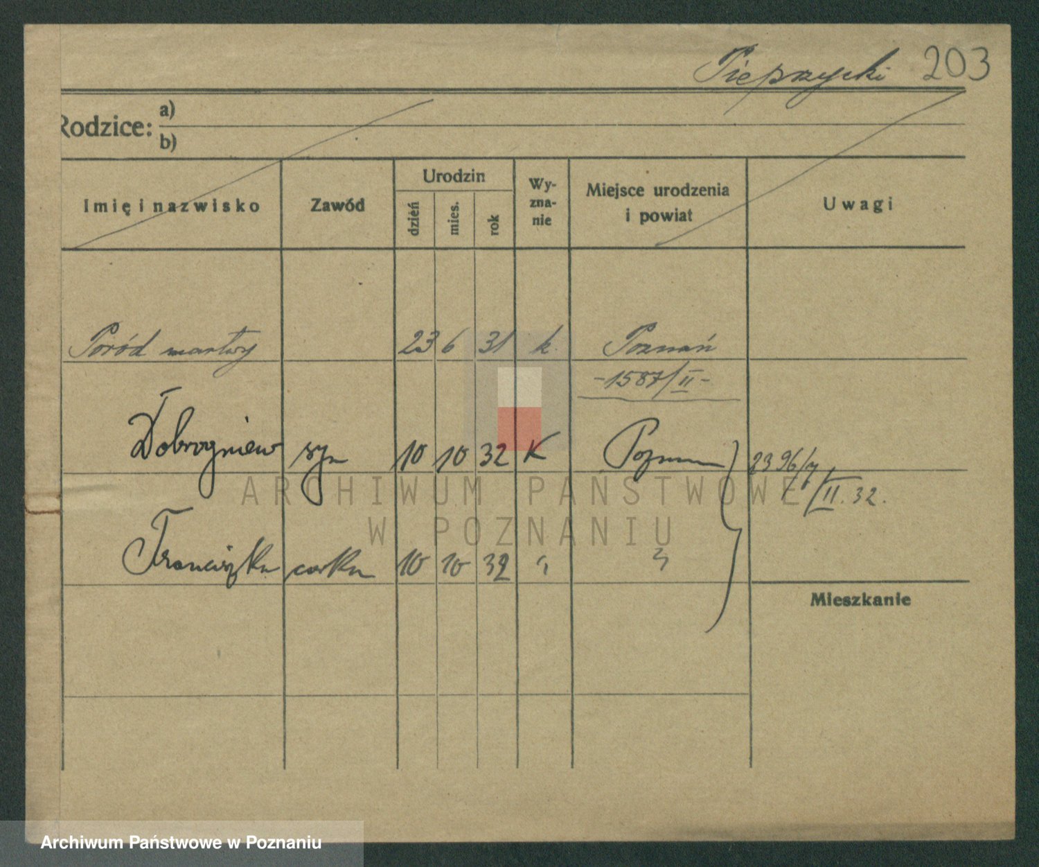 Podgląd karty osobowej dostępny jest po kliknięciu na nazwisko lub ikonkę karty. Można dokonywać powiększenia (ikony na górze) lub przechodzić między kolejnymi skanami (strzałki po bokach).