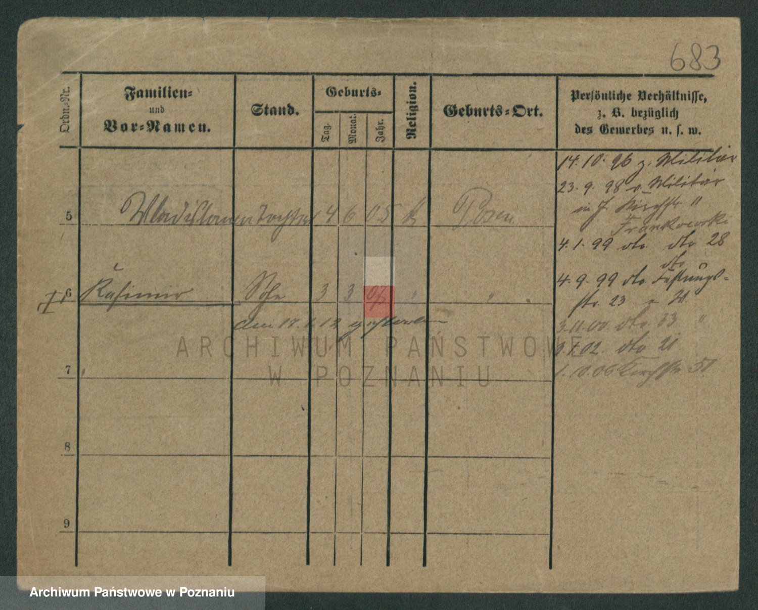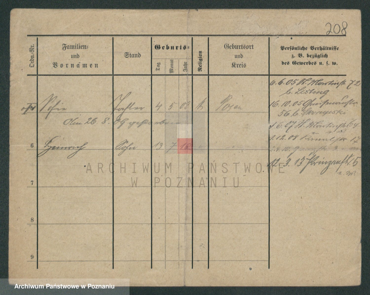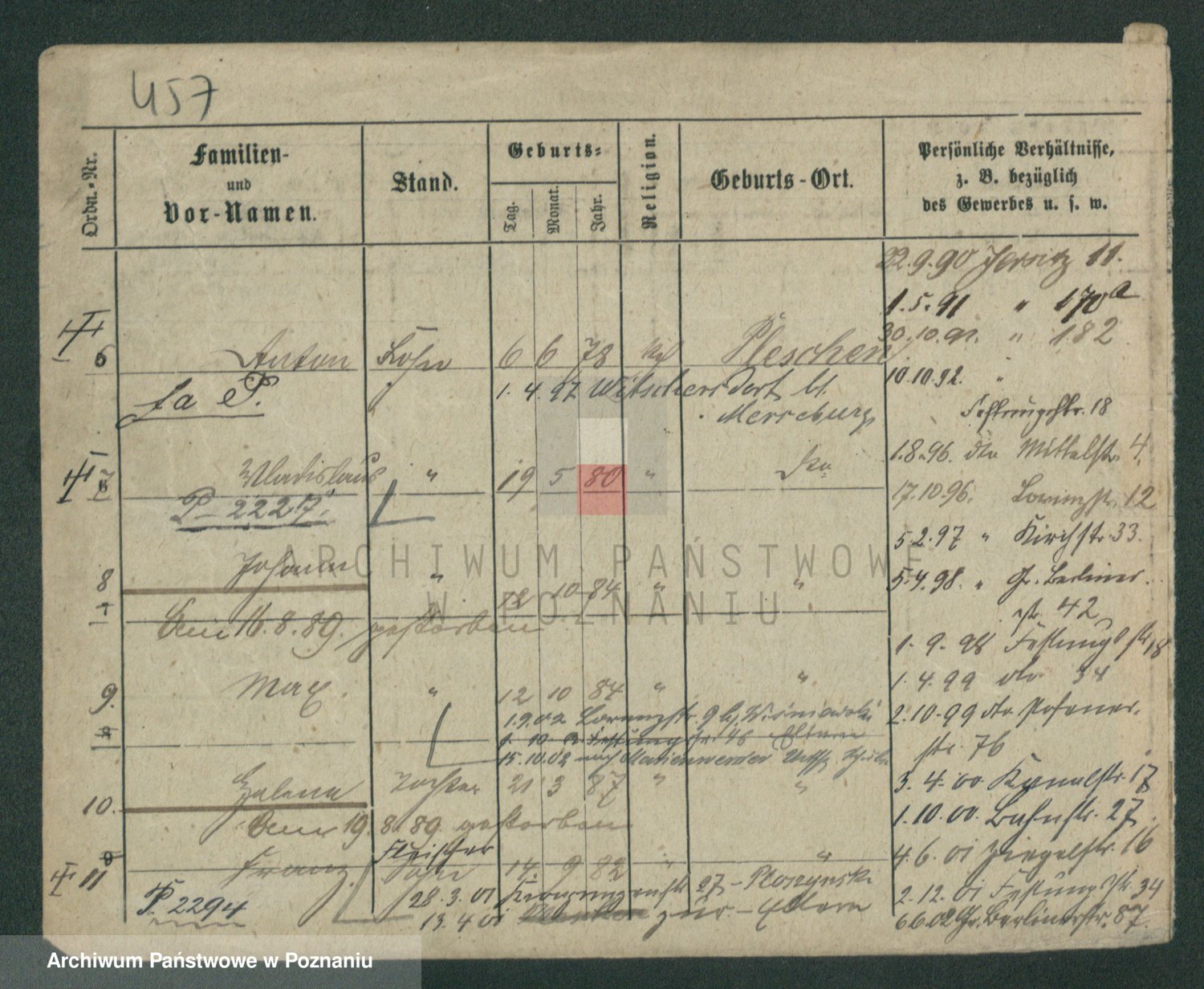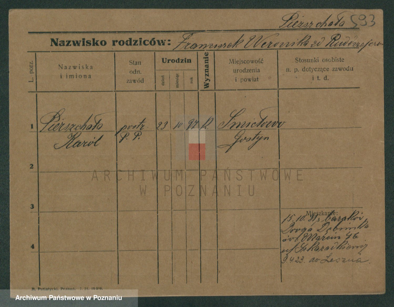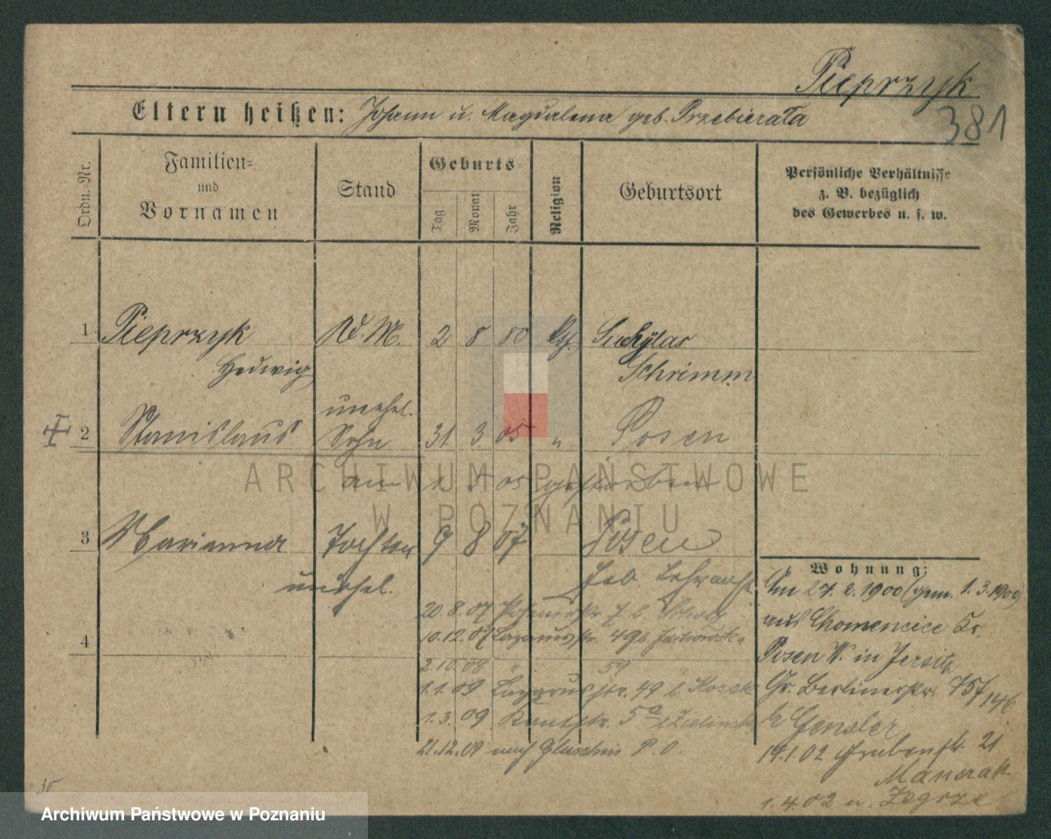 Podgląd karty osobowej dostępny jest po kliknięciu na nazwisko lub ikonkę karty. Można dokonywać powiększenia (ikony na górze) lub przechodzić między kolejnymi skanami (strzałki po bokach).