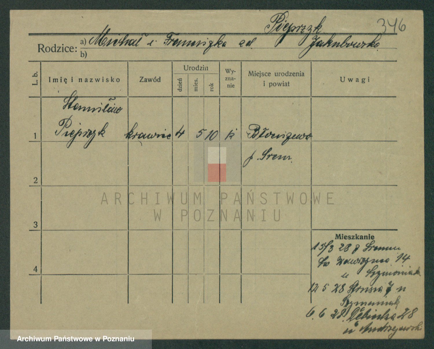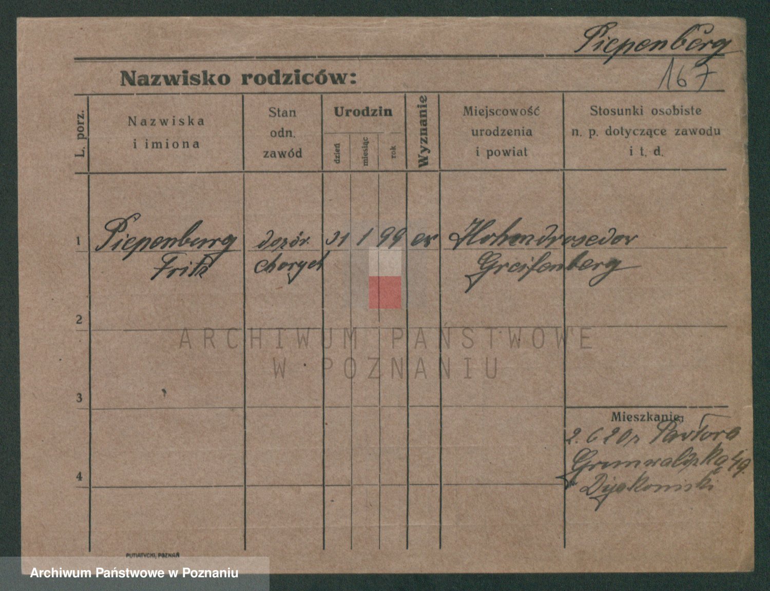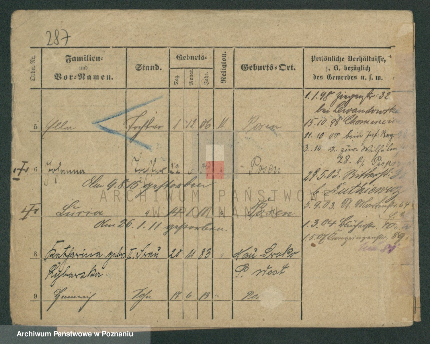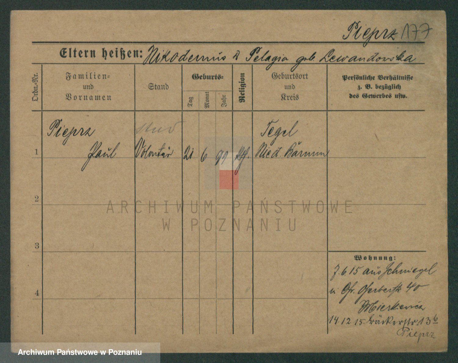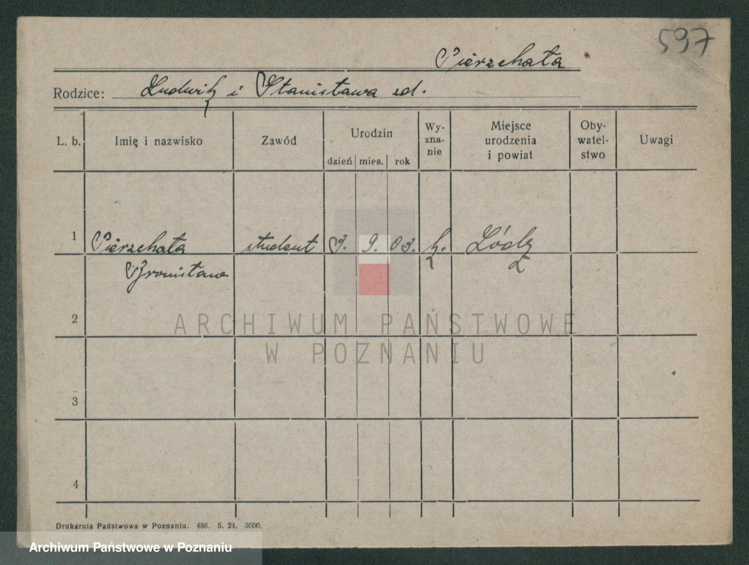 Podgląd karty osobowej dostępny jest po kliknięciu na nazwisko lub ikonkę karty. Można dokonywać powiększenia (ikony na górze) lub przechodzić między kolejnymi skanami (strzałki po bokach).