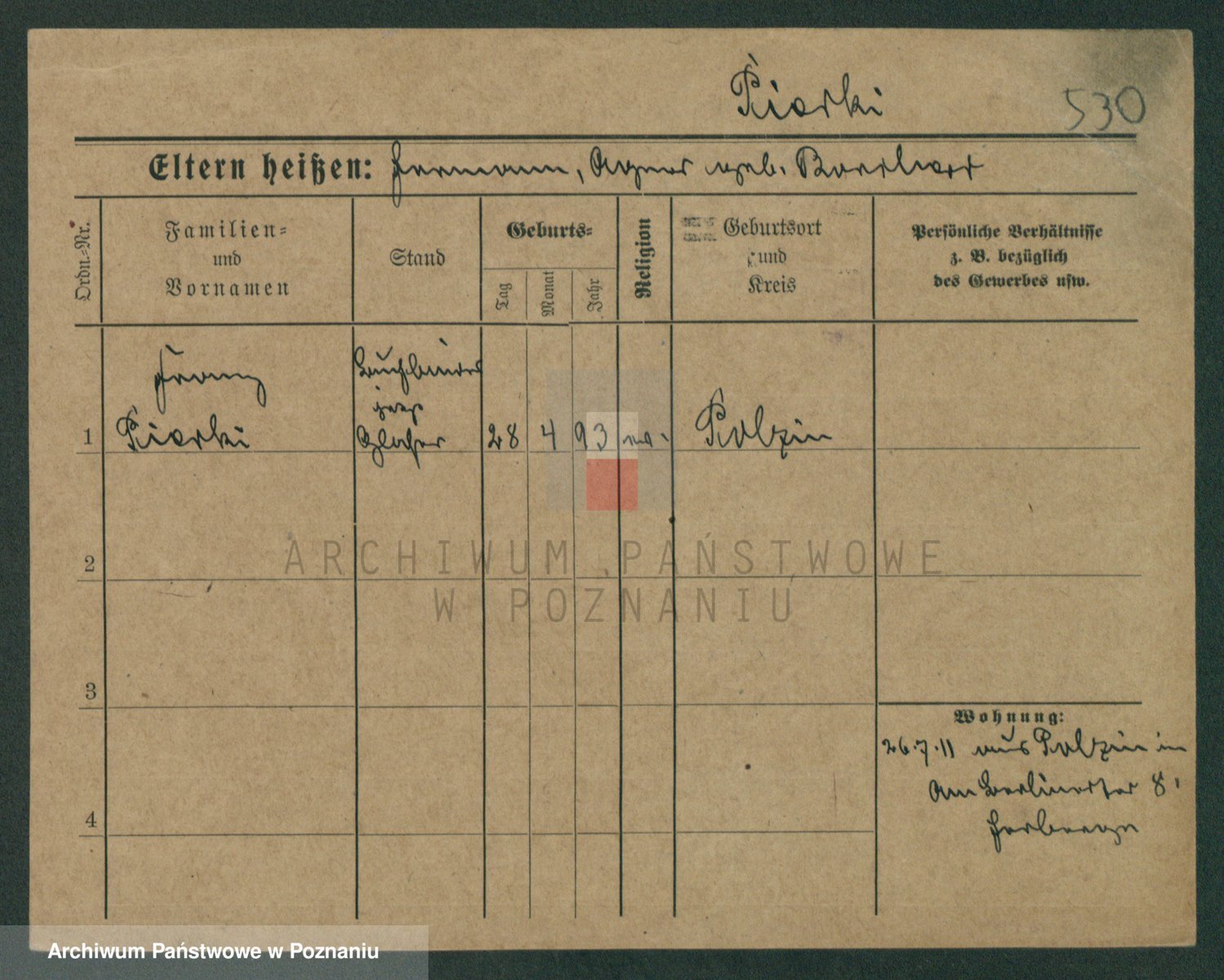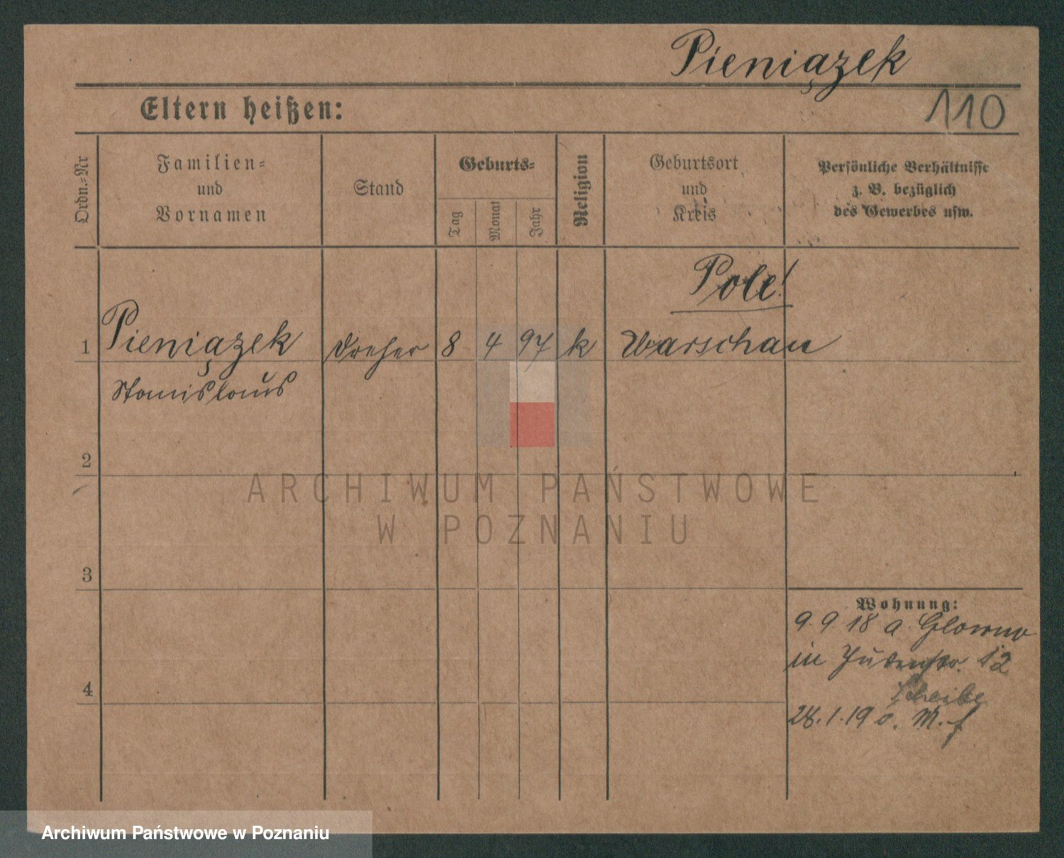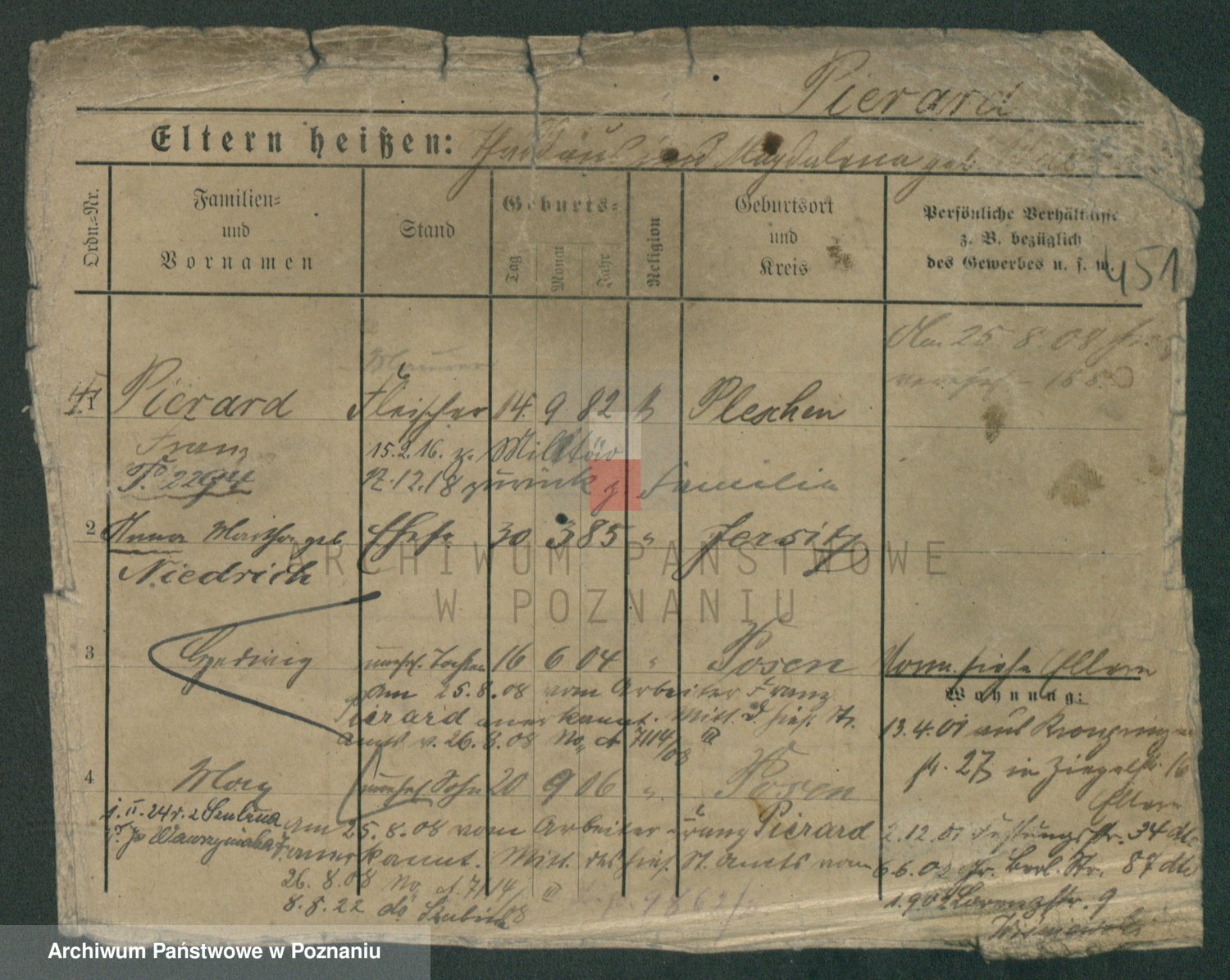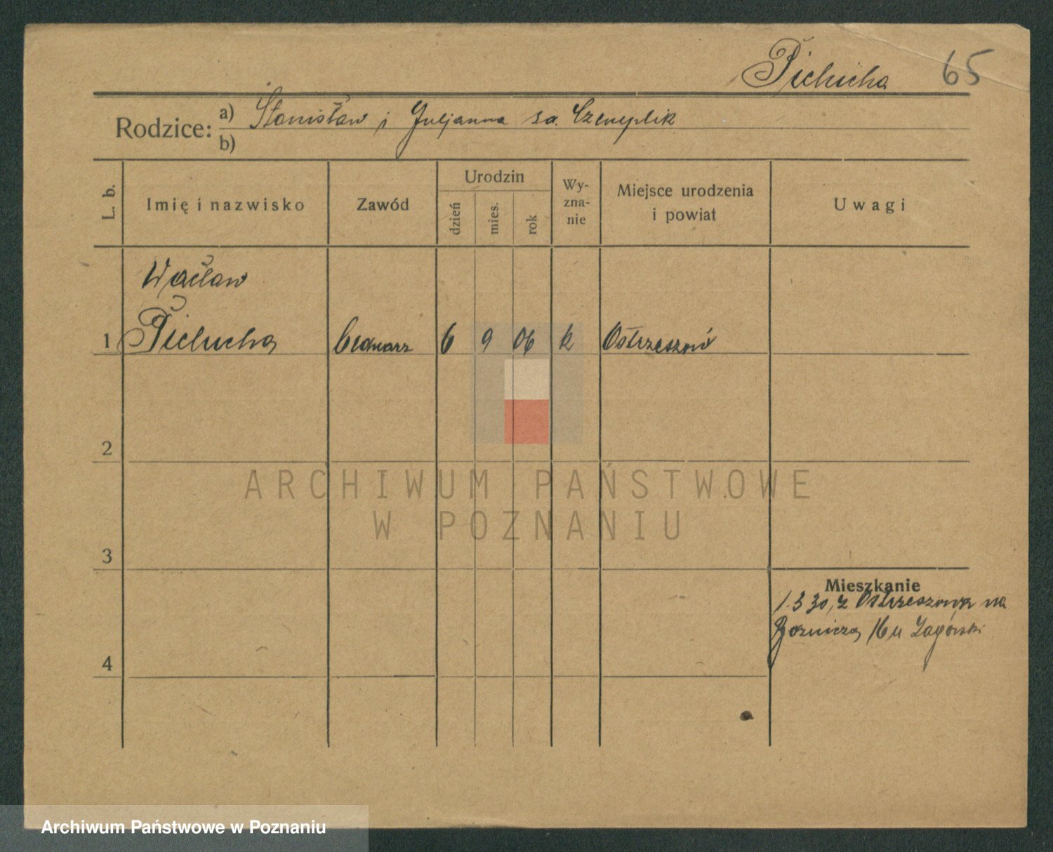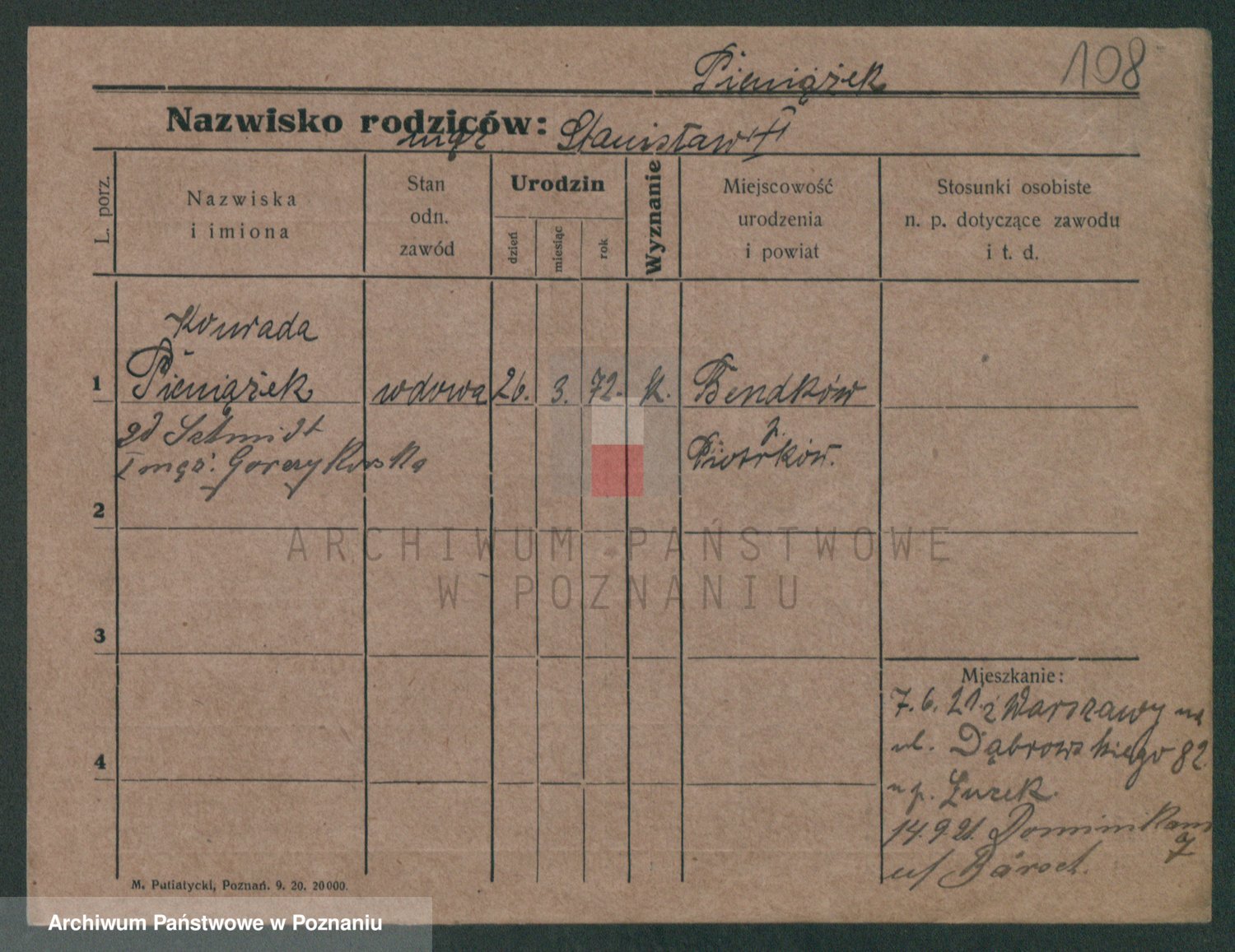 Podgląd karty osobowej dostępny jest po kliknięciu na nazwisko lub ikonkę karty. Można dokonywać powiększenia (ikony na górze) lub przechodzić między kolejnymi skanami (strzałki po bokach).