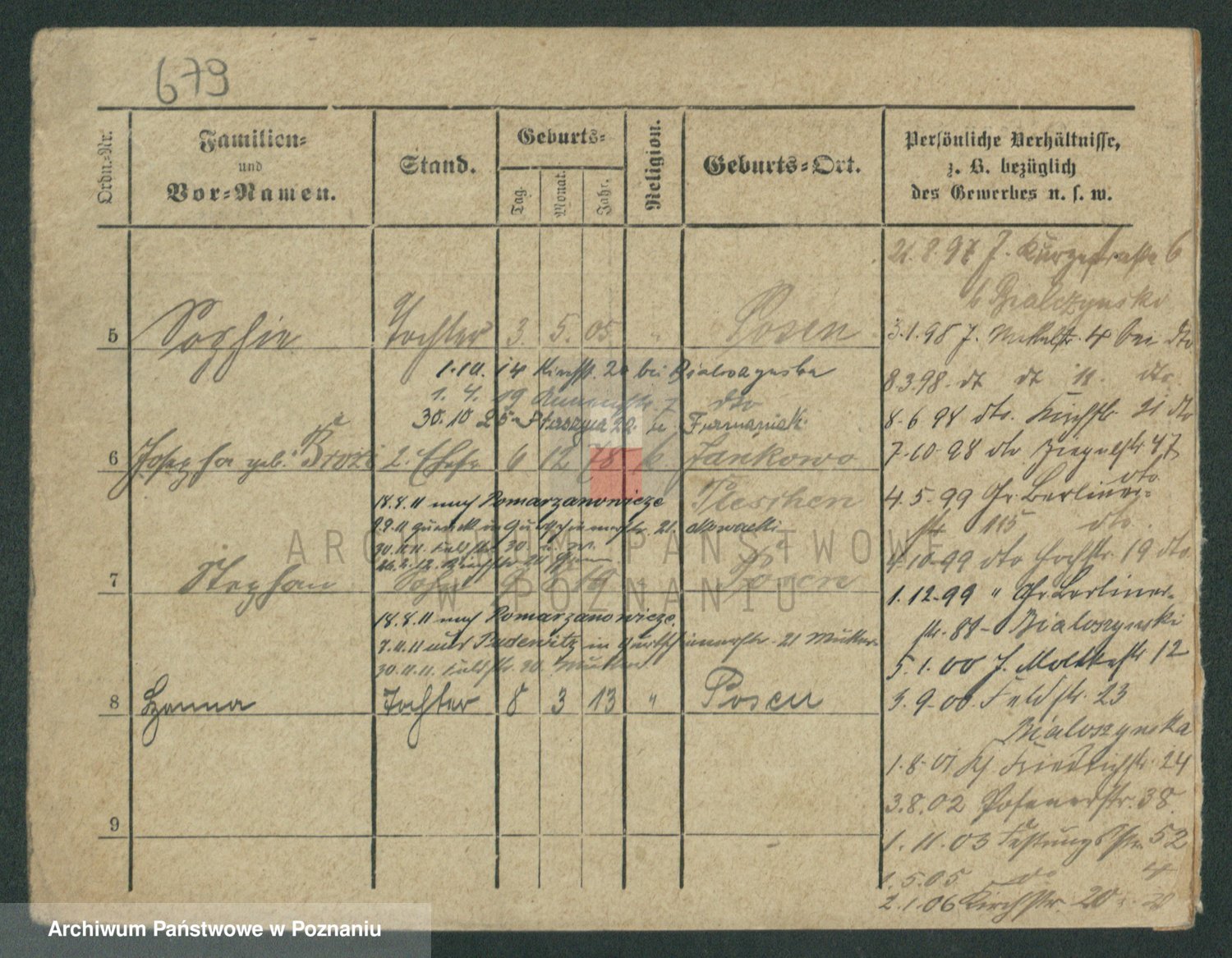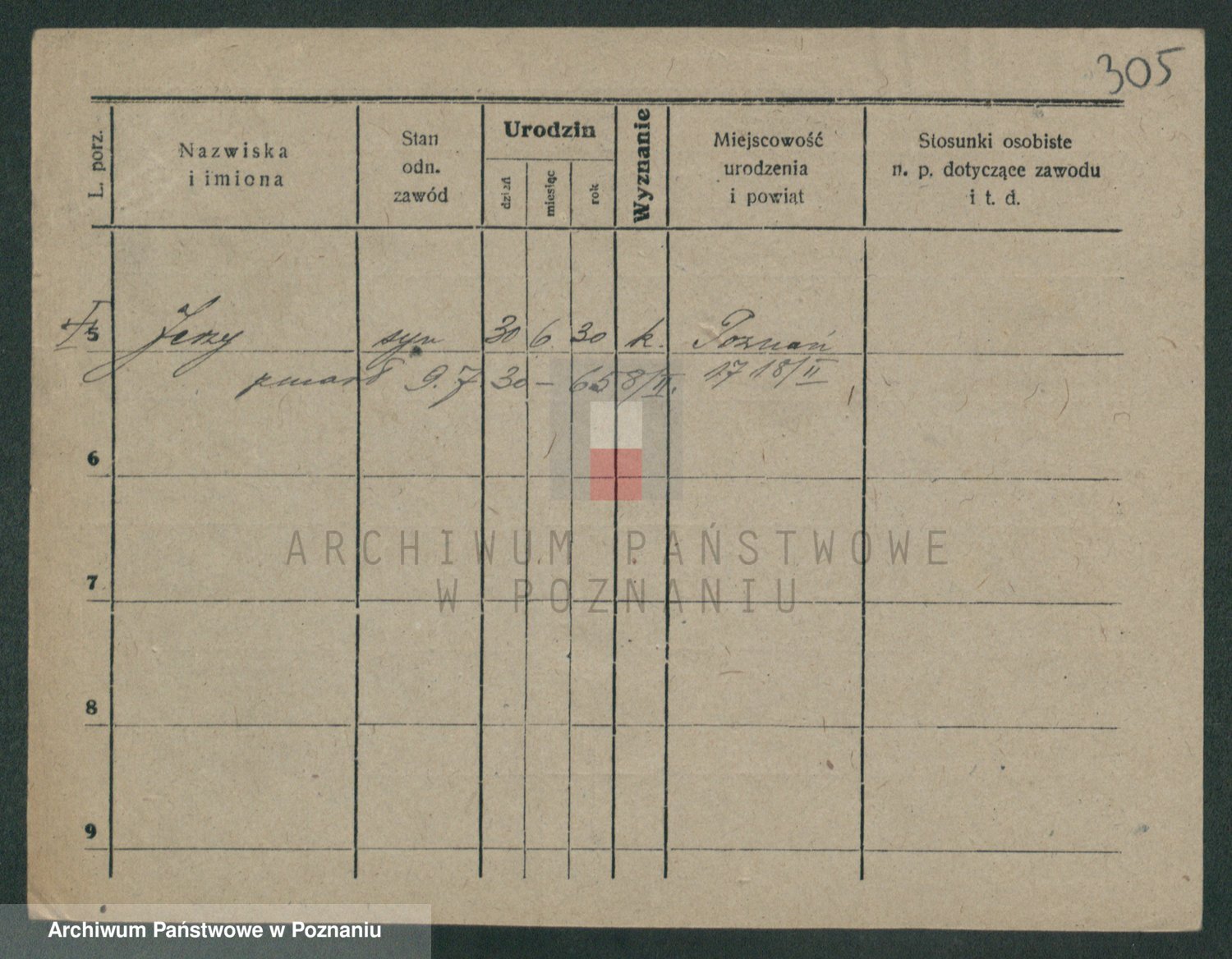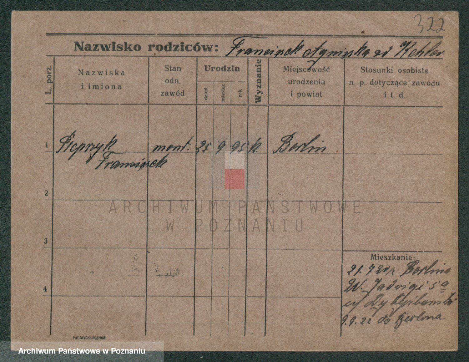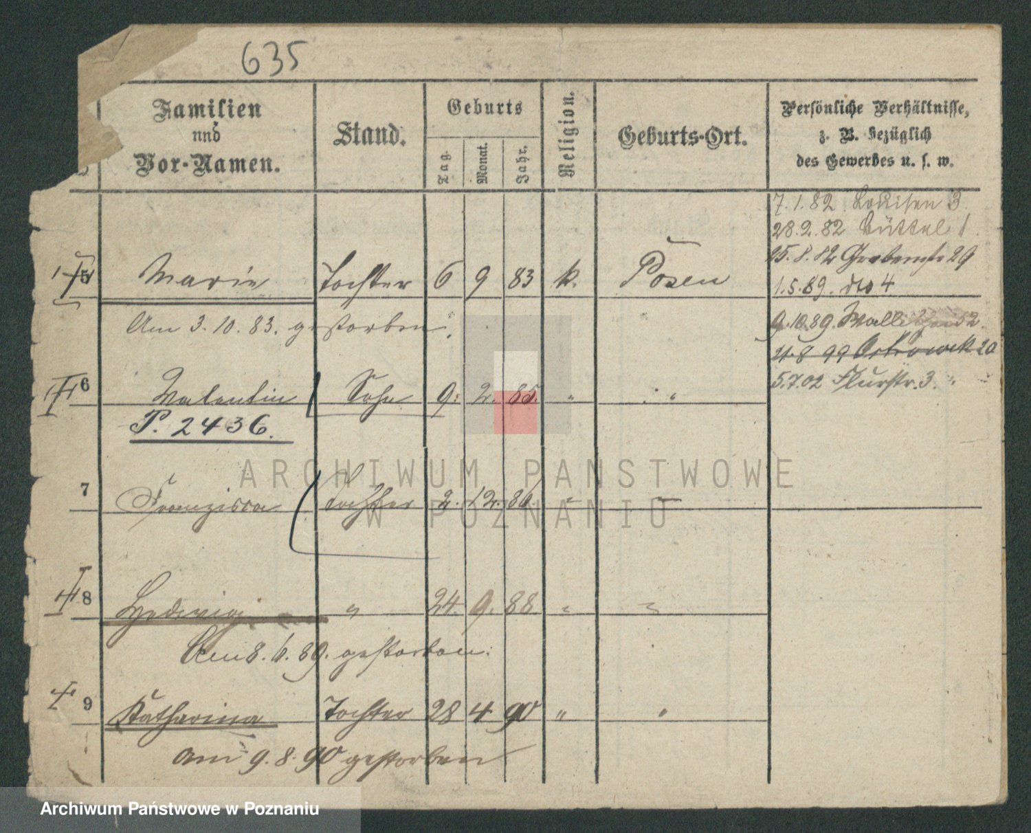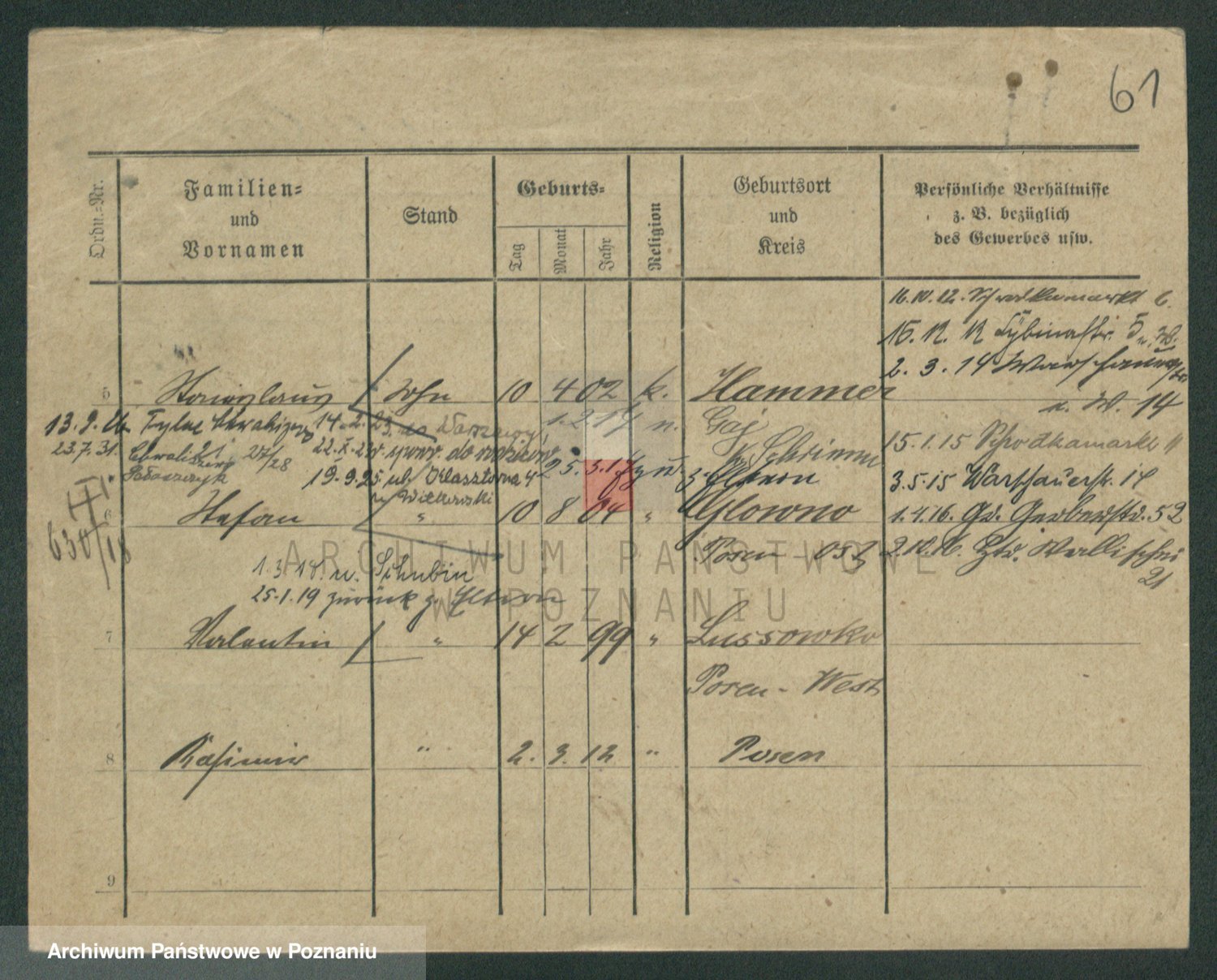 Podgląd karty osobowej dostępny jest po kliknięciu na nazwisko lub ikonkę karty. Można dokonywać powiększenia (ikony na górze) lub przechodzić między kolejnymi skanami (strzałki po bokach).