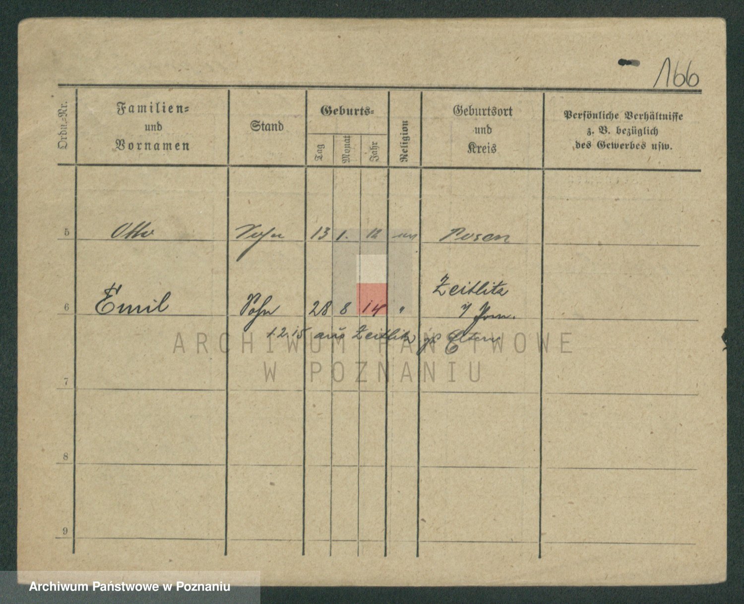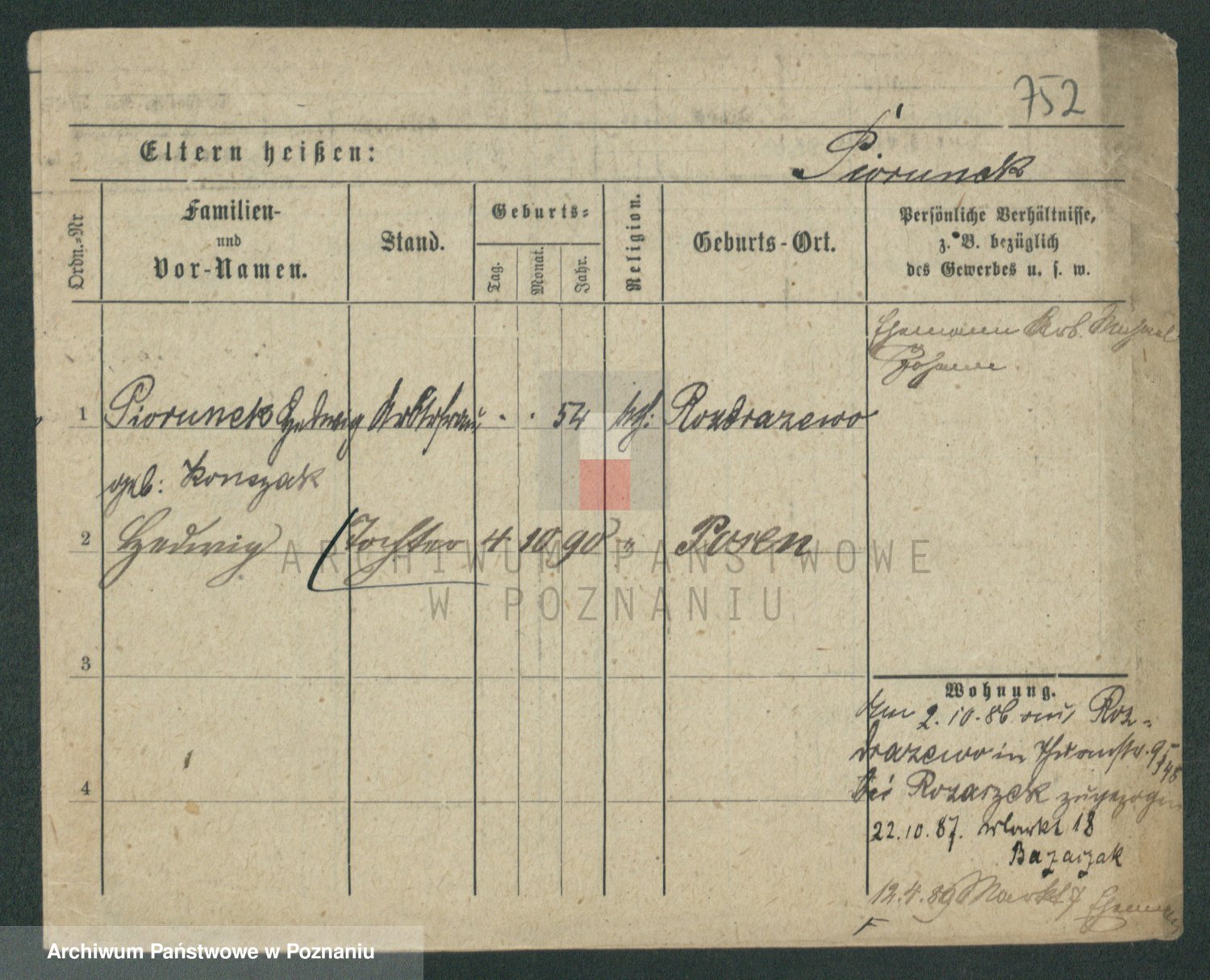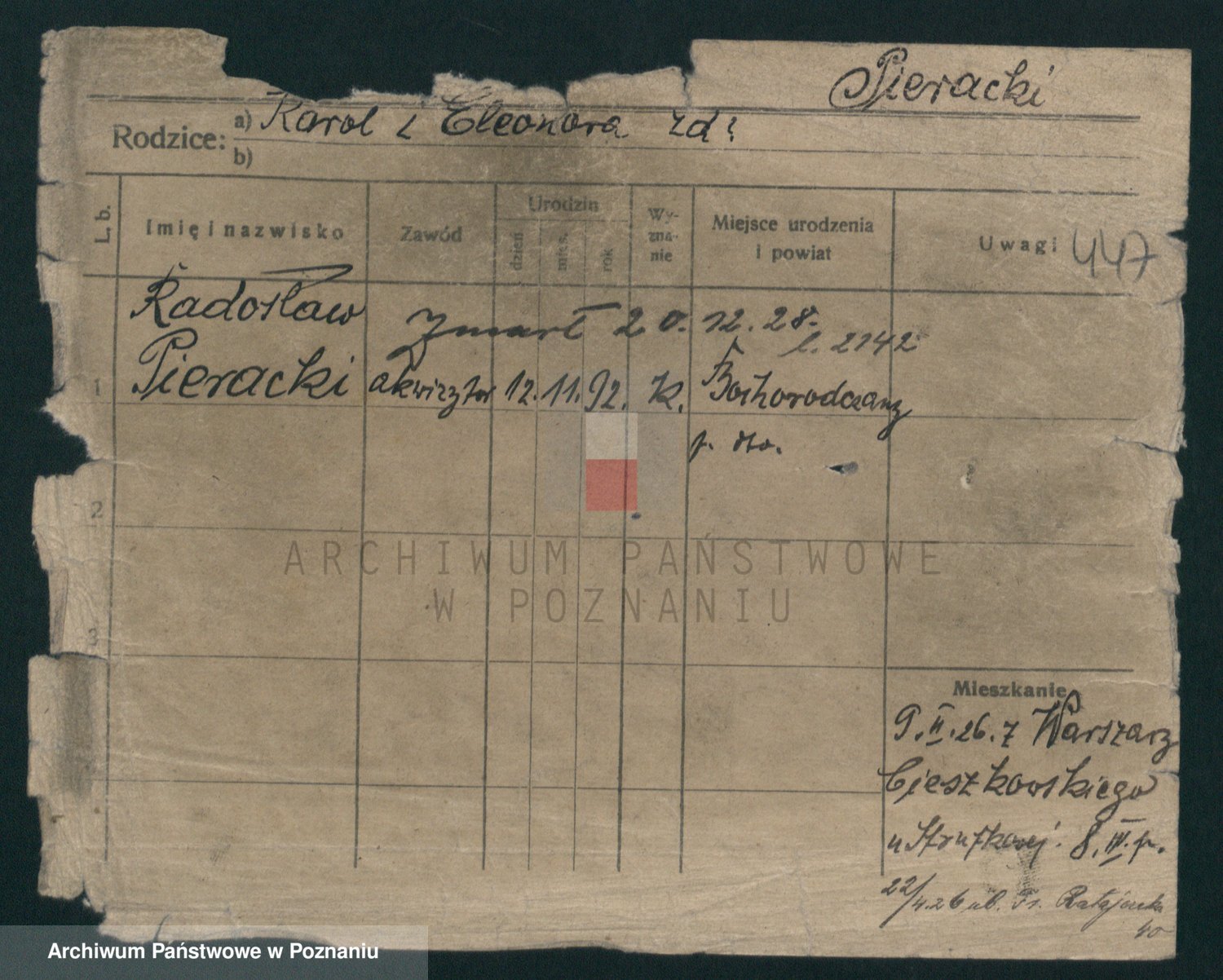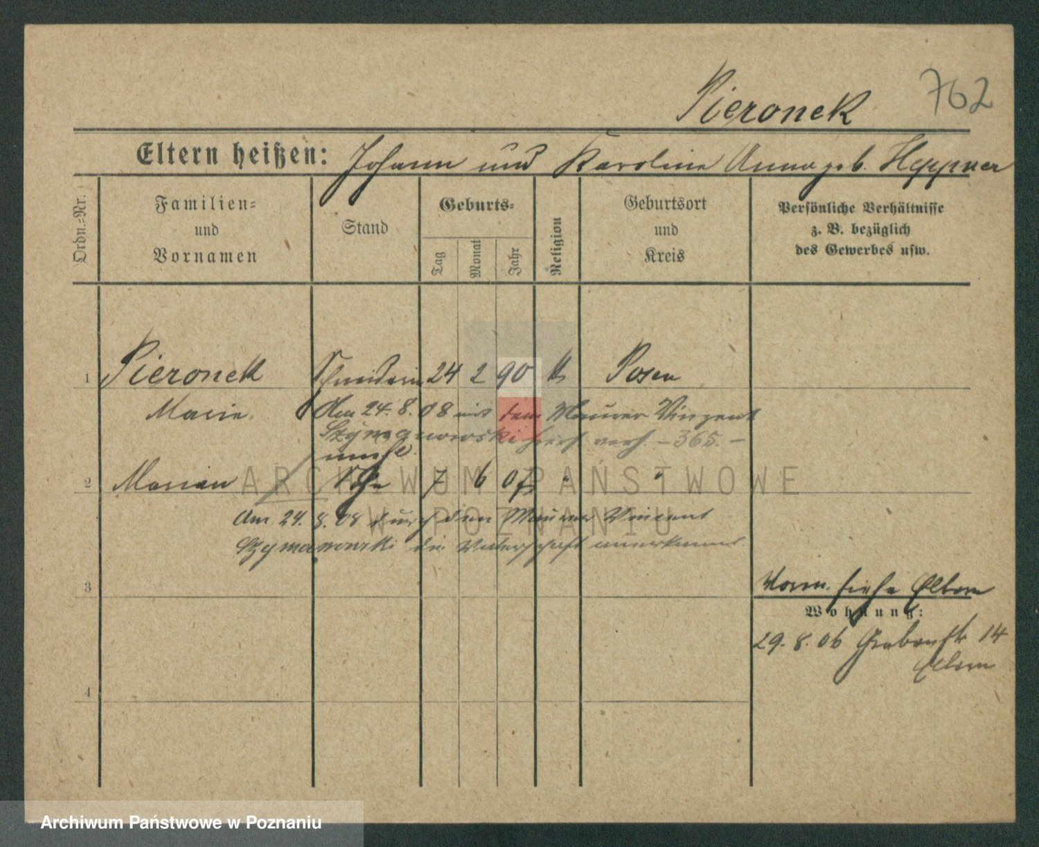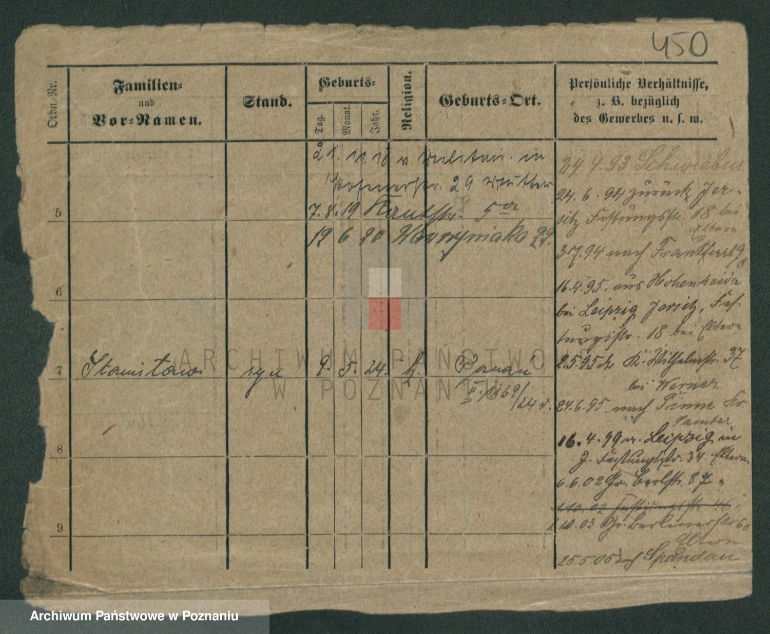 Podgląd karty osobowej dostępny jest po kliknięciu na nazwisko lub ikonkę karty. Można dokonywać powiększenia (ikony na górze) lub przechodzić między kolejnymi skanami (strzałki po bokach).
