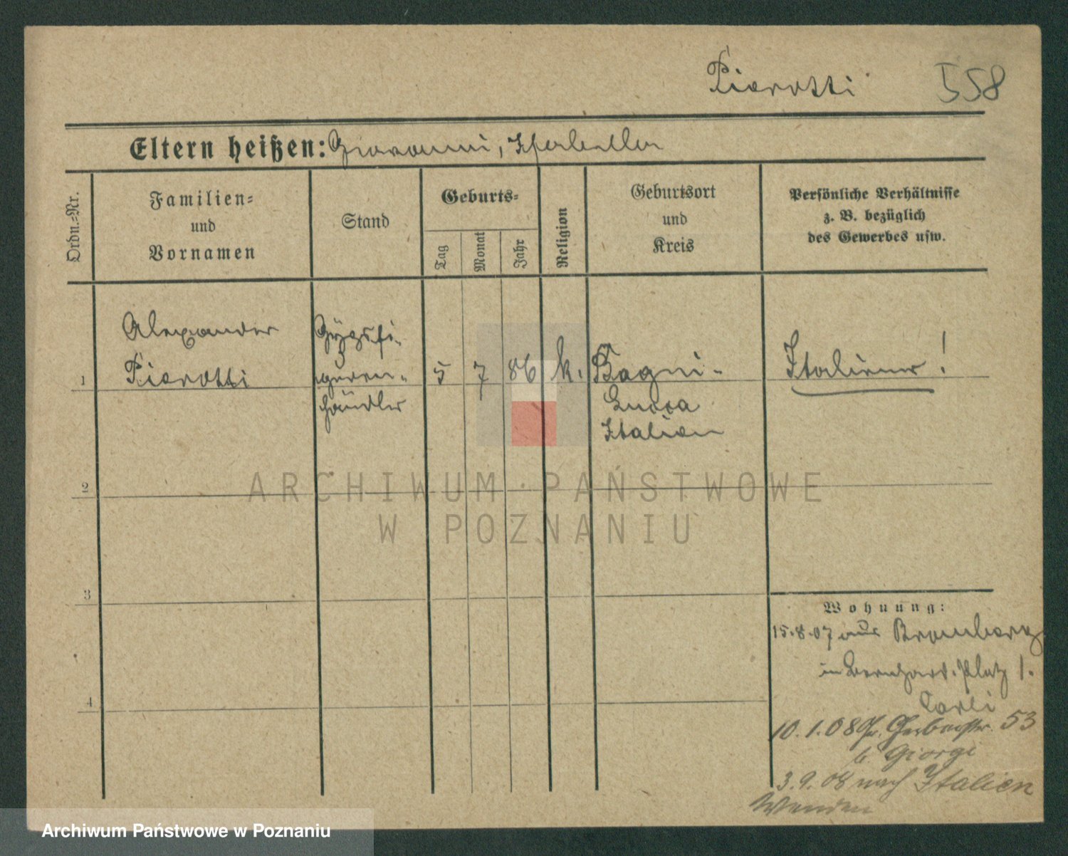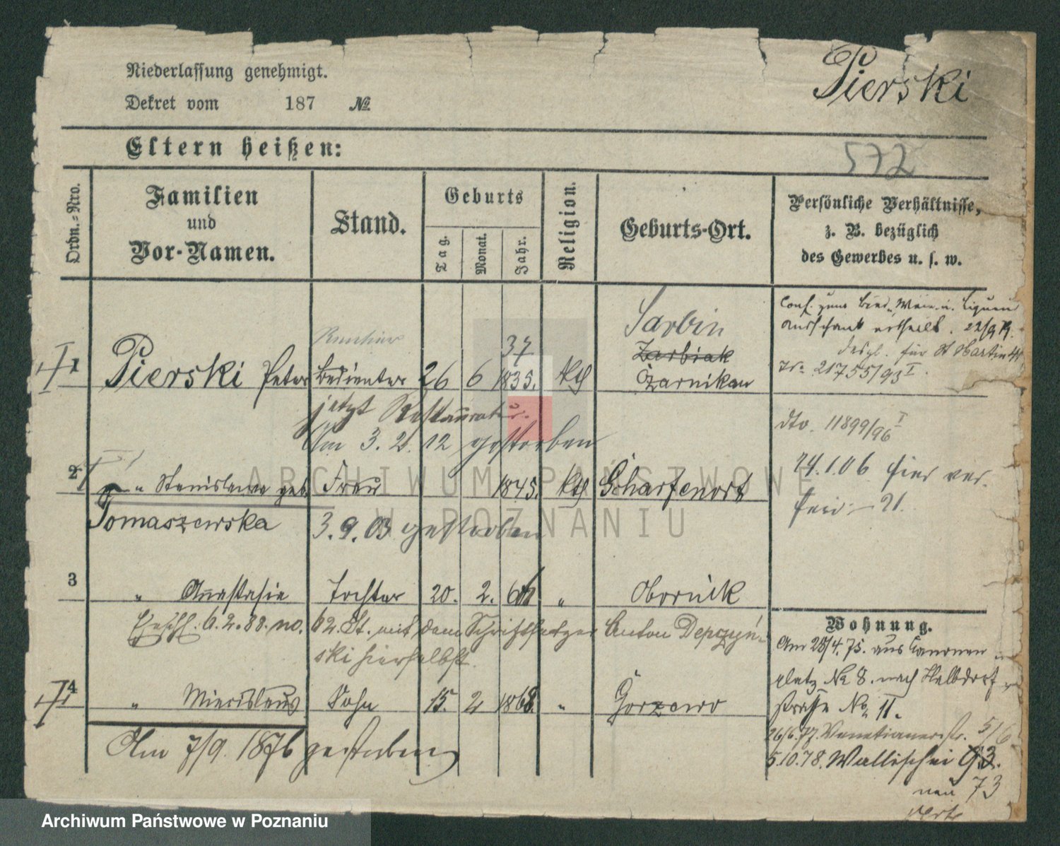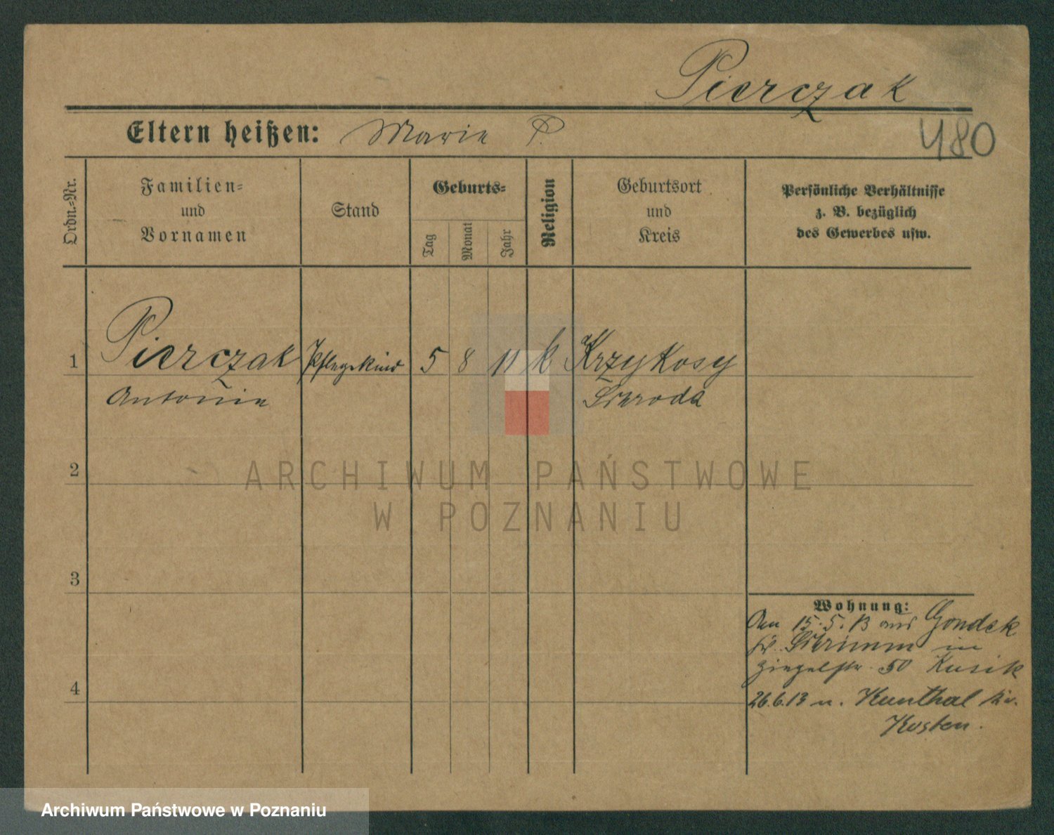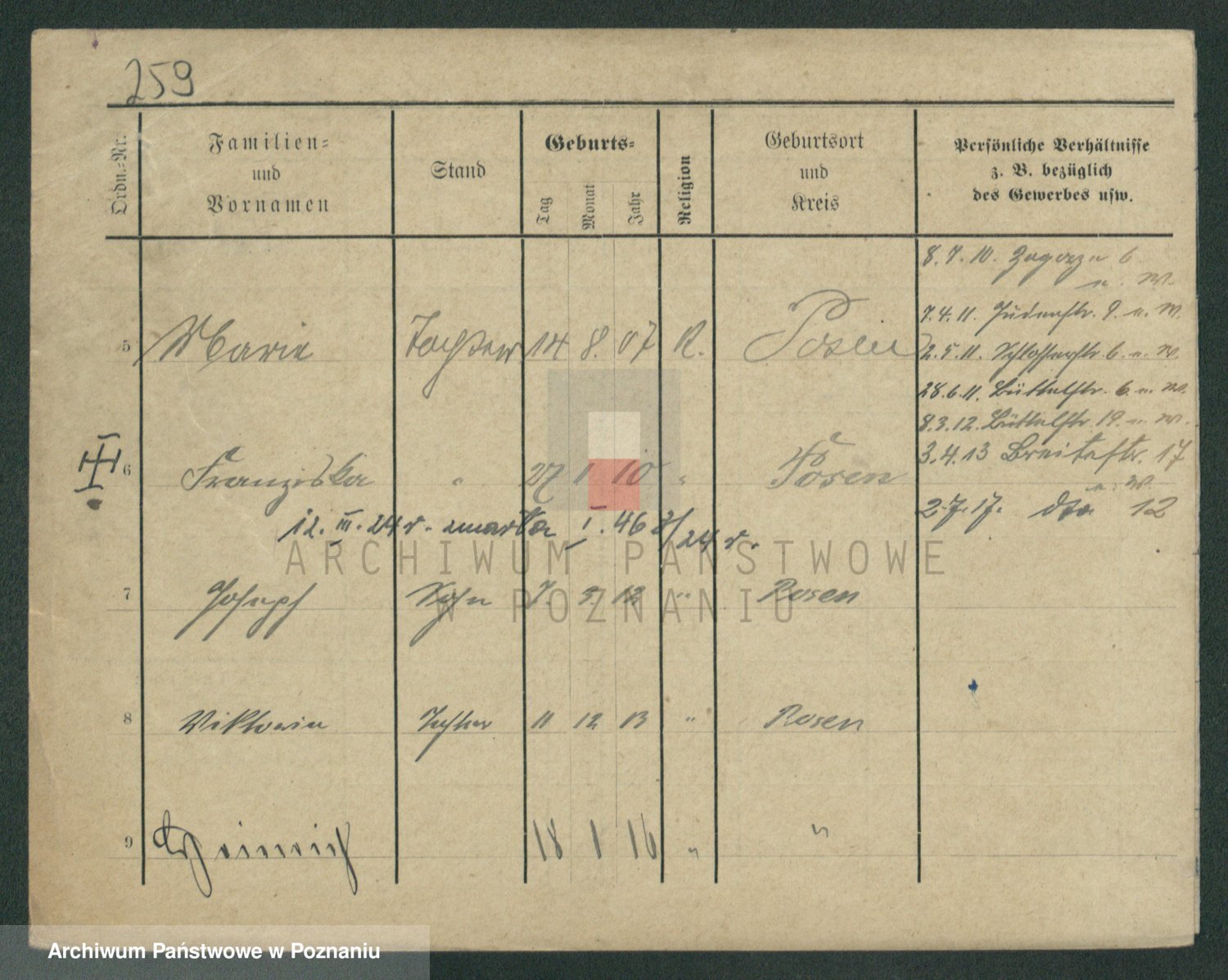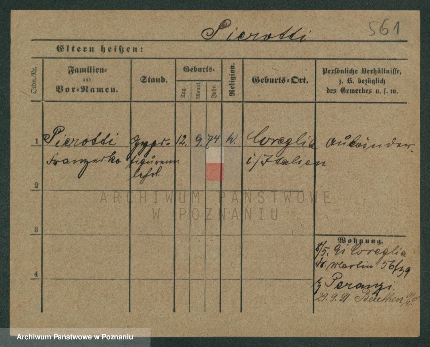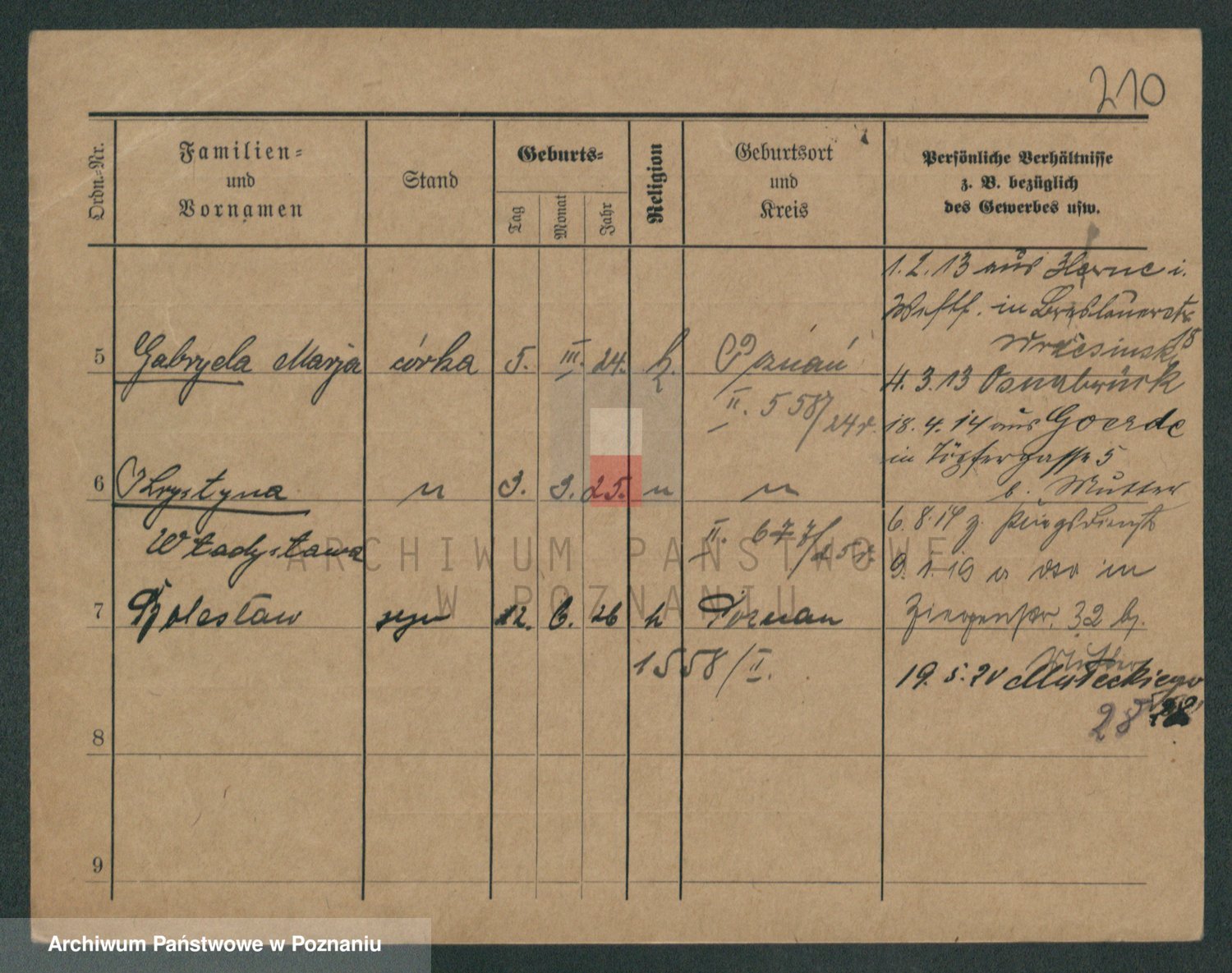 Podgląd karty osobowej dostępny jest po kliknięciu na nazwisko lub ikonkę karty. Można dokonywać powiększenia (ikony na górze) lub przechodzić między kolejnymi skanami (strzałki po bokach).